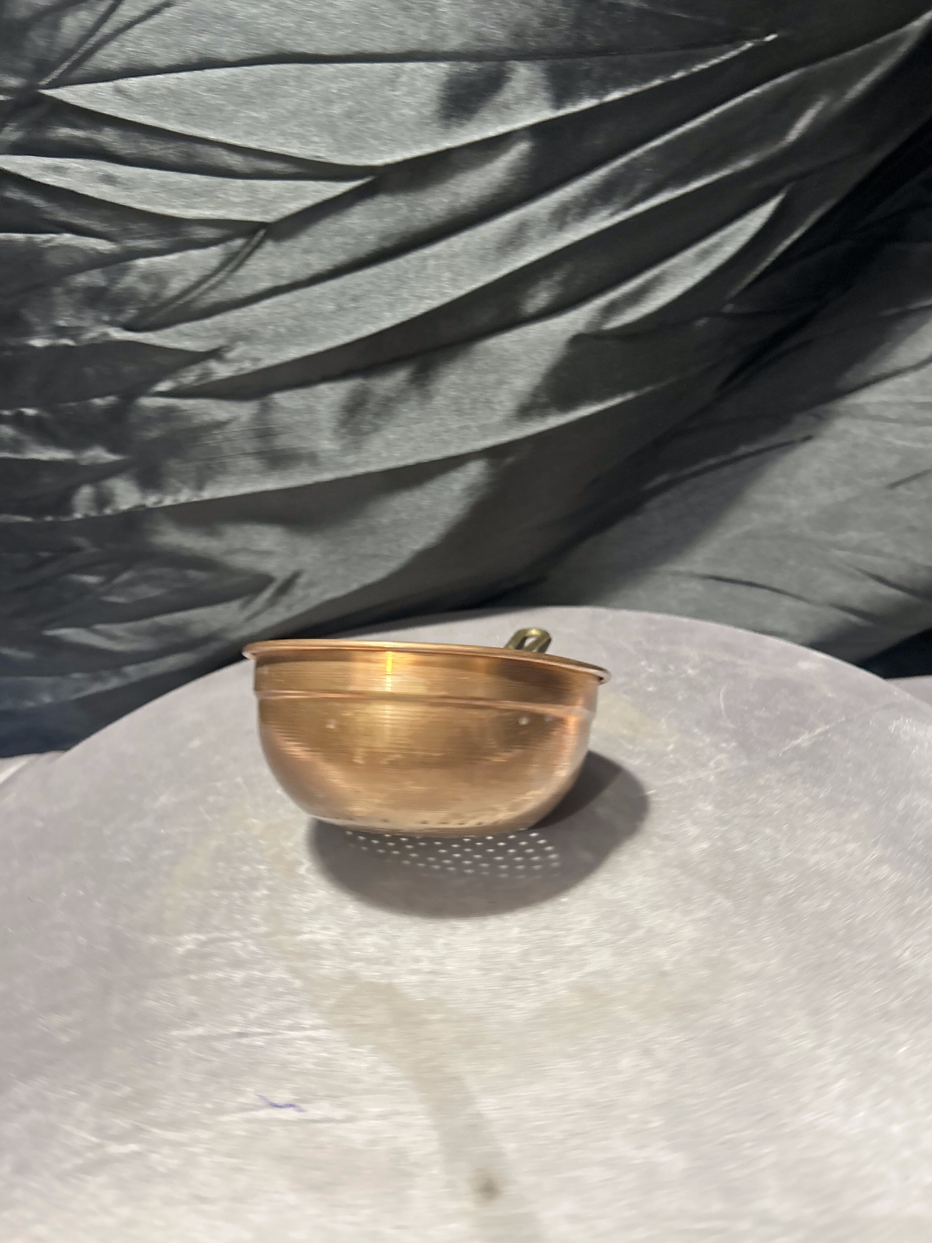 Miedziany czerpak z mosiężną rączką – Napis 0,50 L – Styl rustykalny