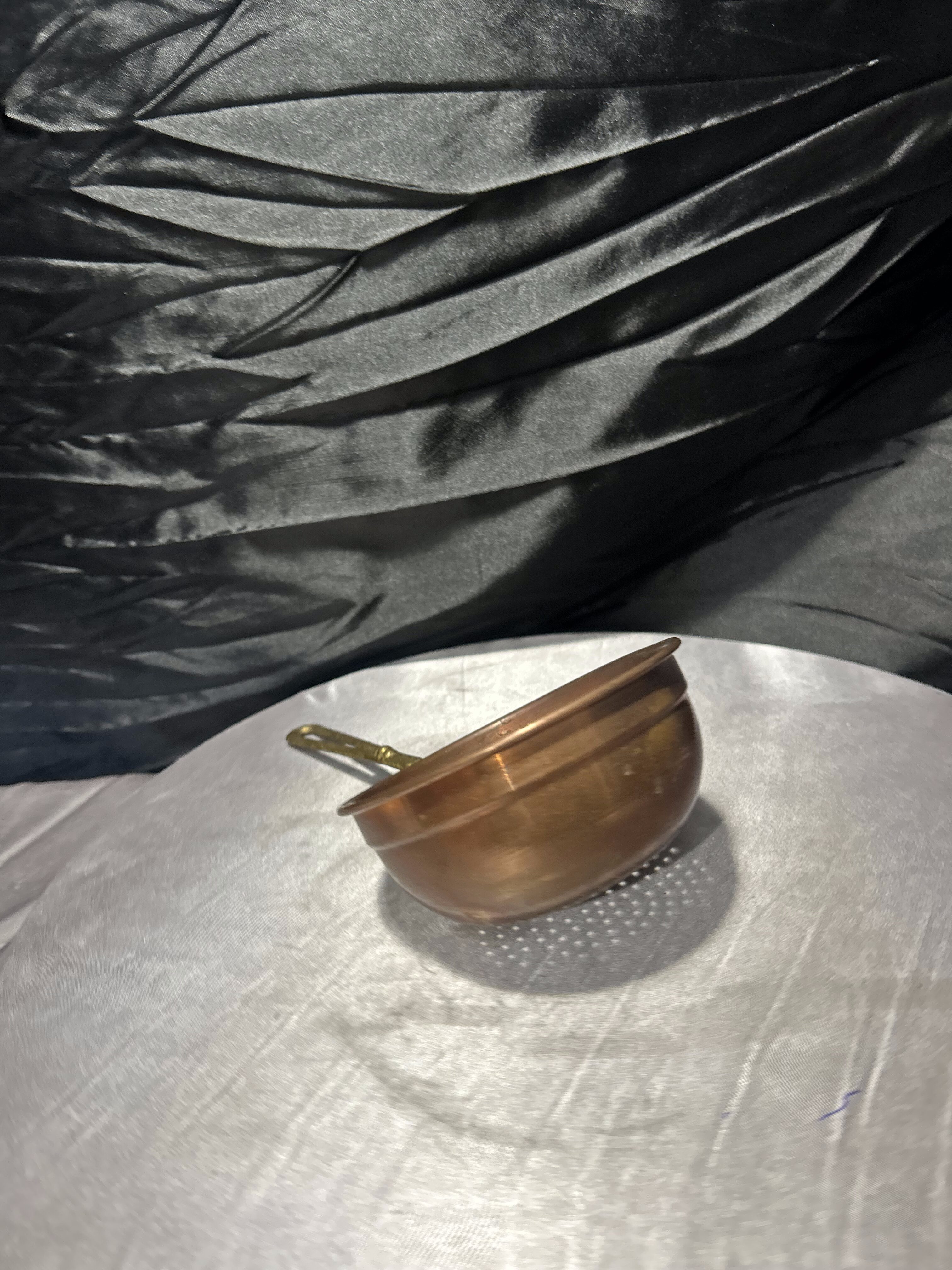Miedziana chochla / rondel – Kuta rączka z zawijasem – Styl rustykalny