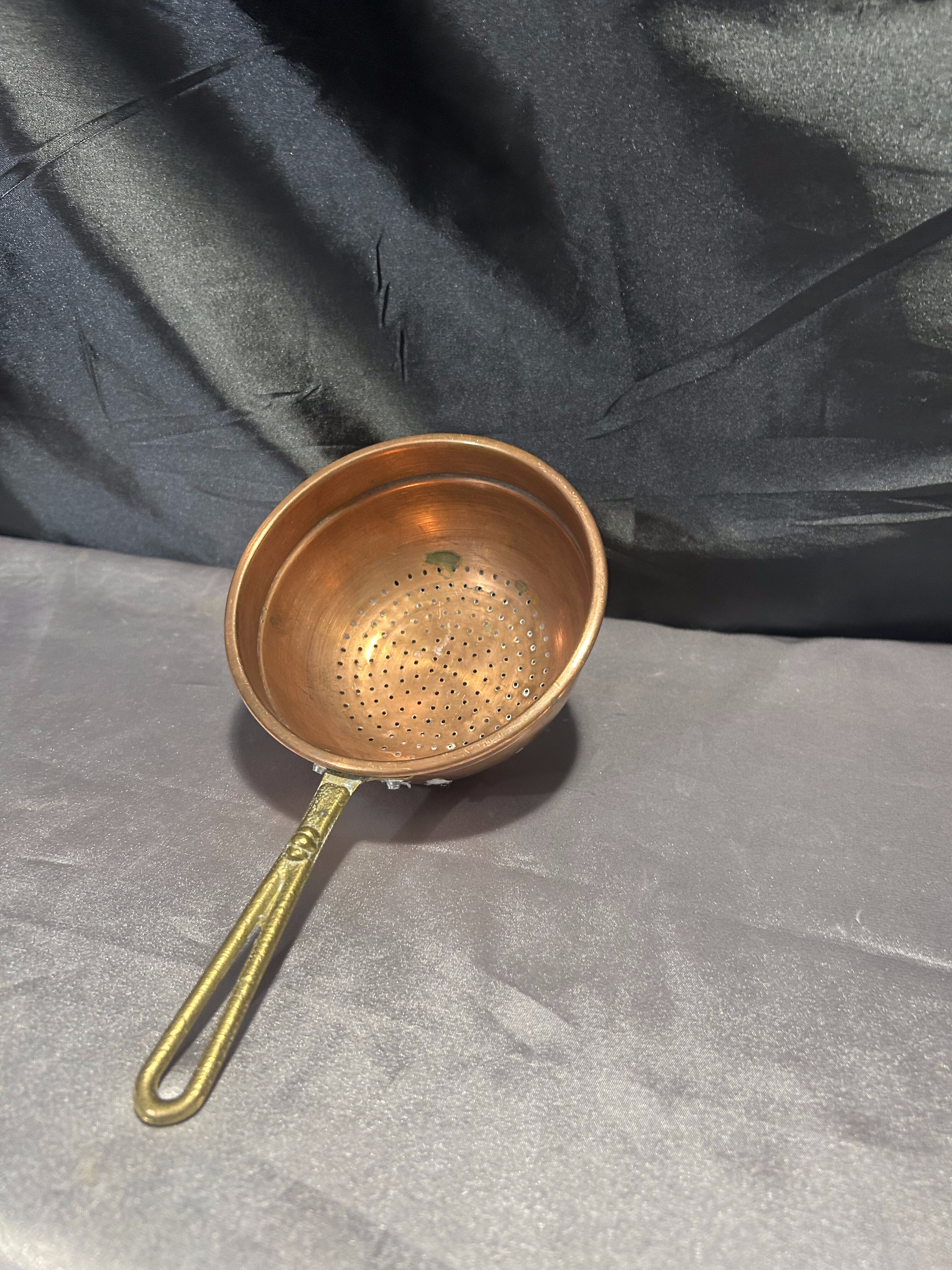 Łyżka cedzakowa – Miedziana z mosiężną rączką – Głęboka forma