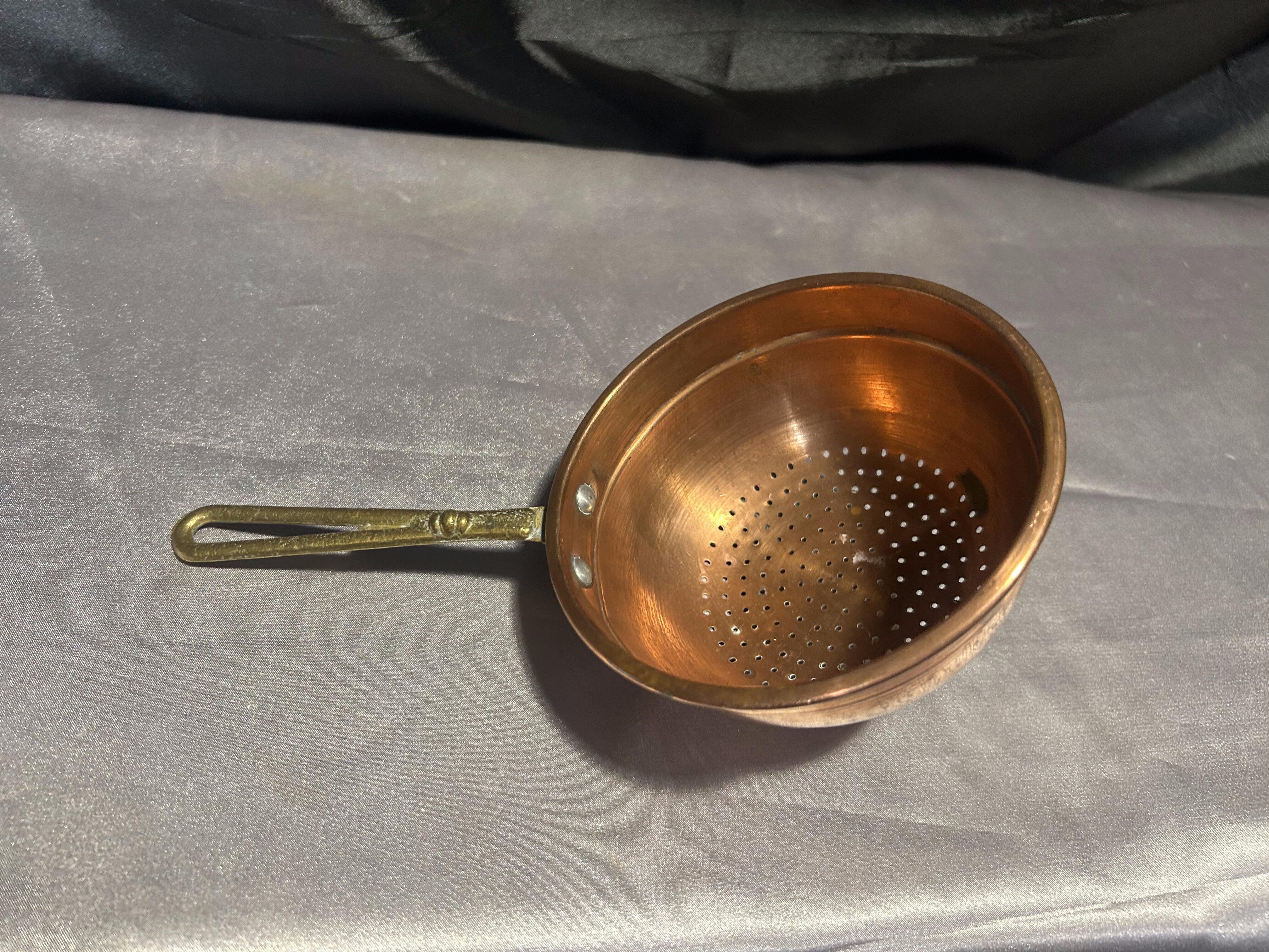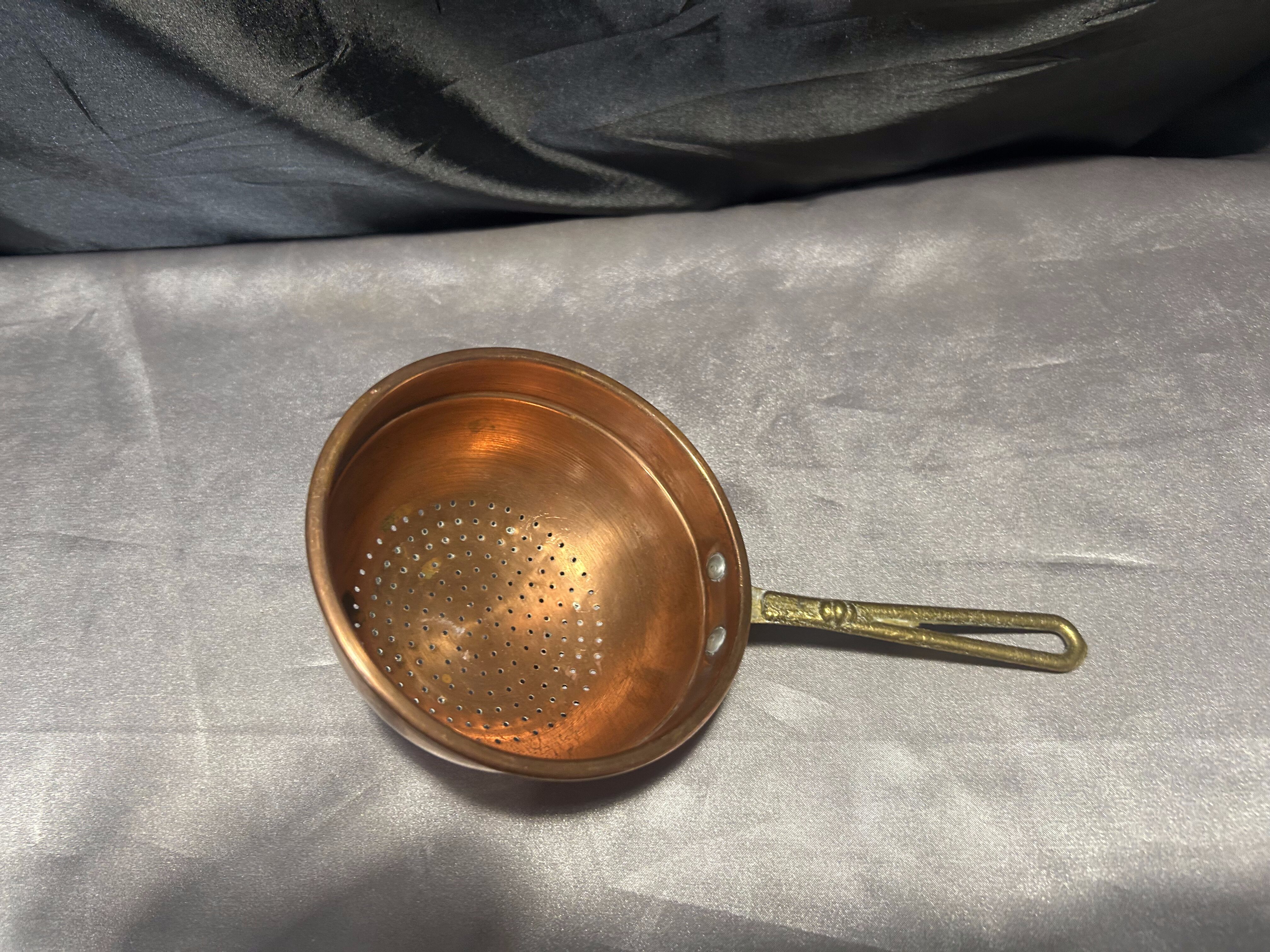 - Łyżka cedzakowa – Miedziana z mosiężną rączką – Głęboka forma