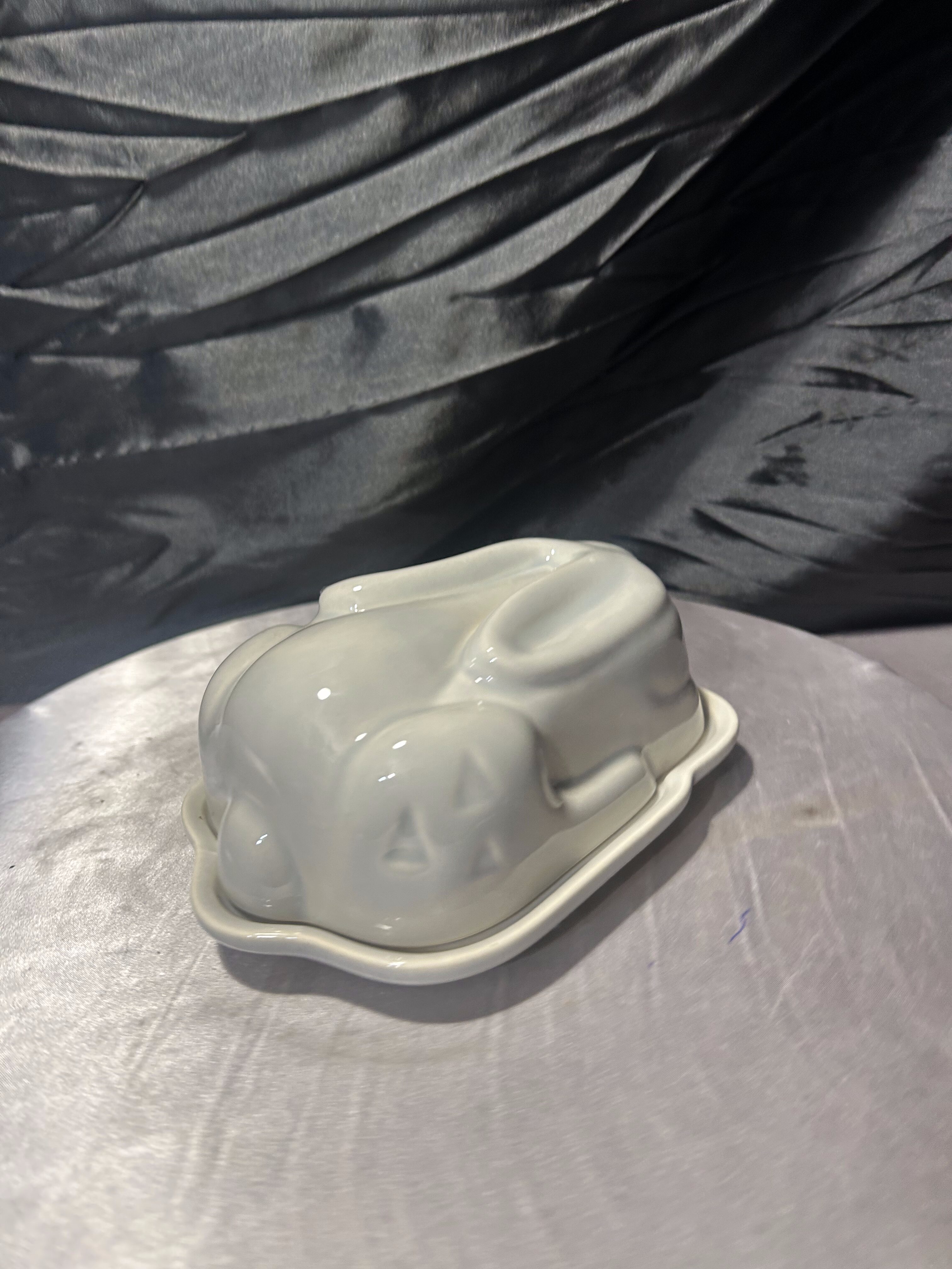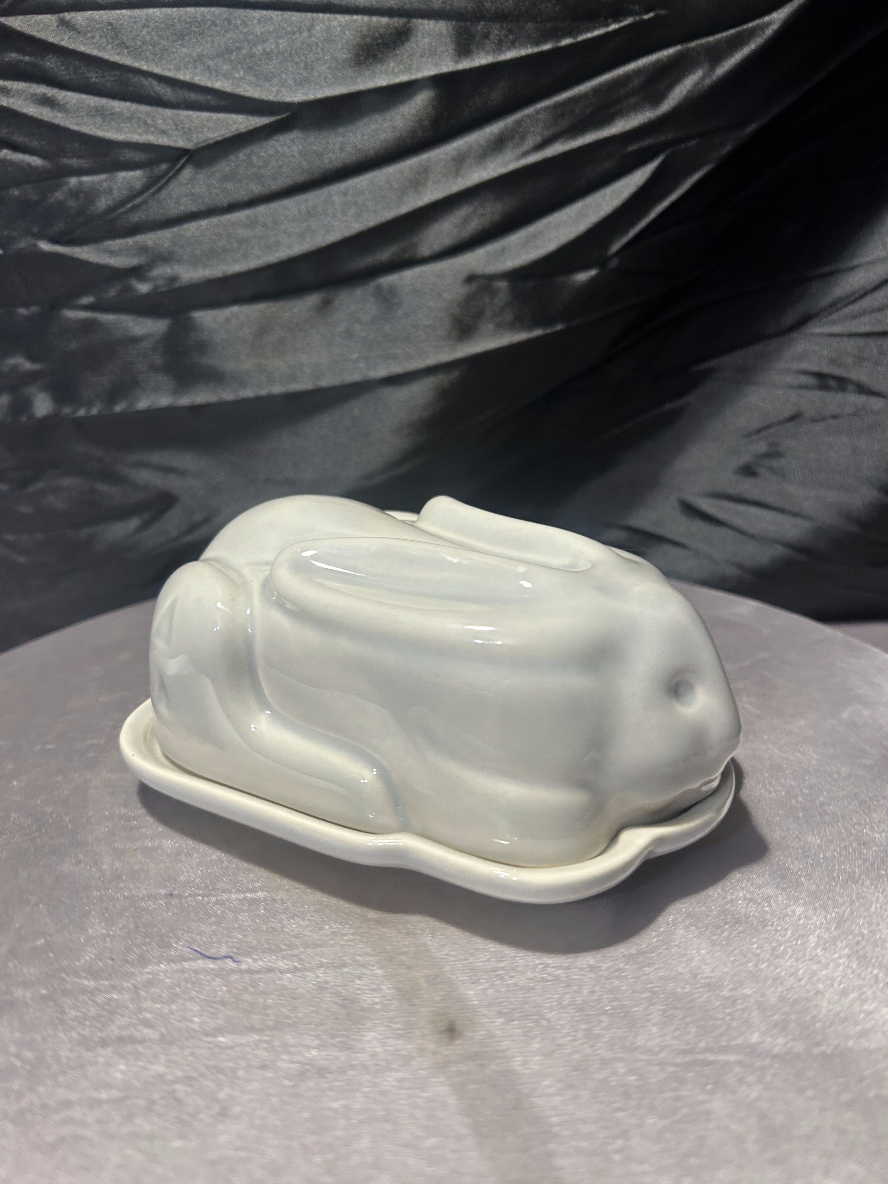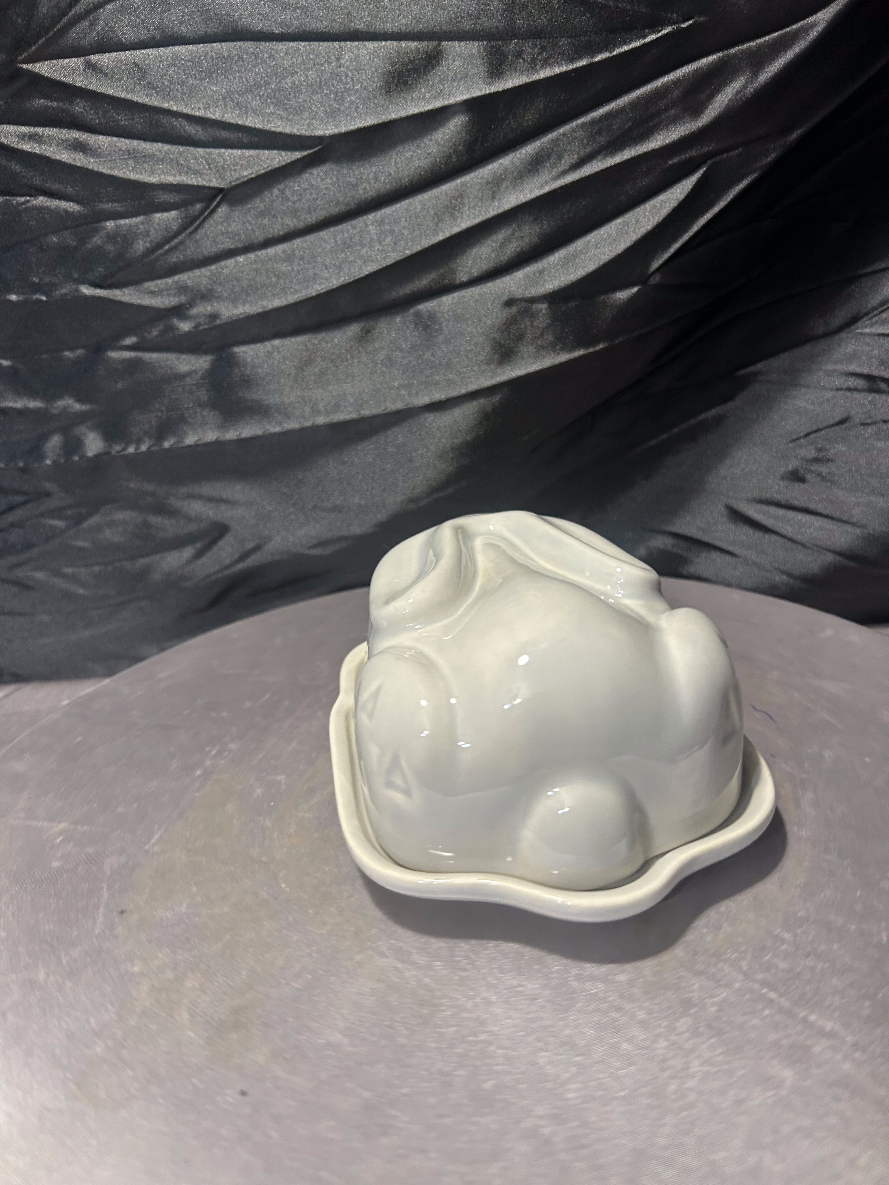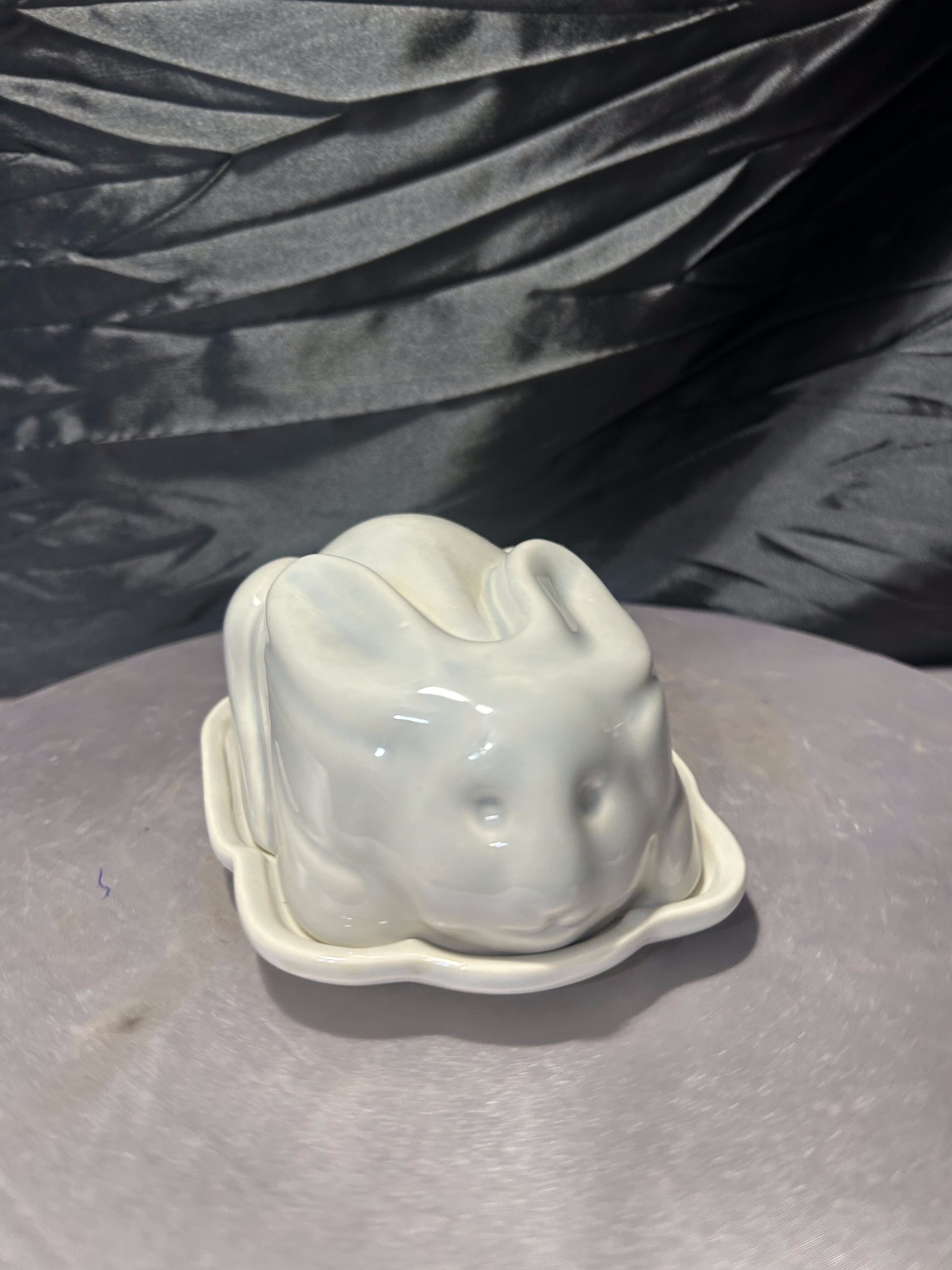 Pokrywa w kształcie zająca nadaje maselnicy oryginalny i lekko humorystyczny wygląd, a jednocześnie tworzy elegancką, minimalistyczną formę. Delikatny, jasny odcień ceramiki sprawia, że przedmiot doskonale pasuje do wnętrz w stylu skandynawskim, rustykalnym lub nowoczesnym.