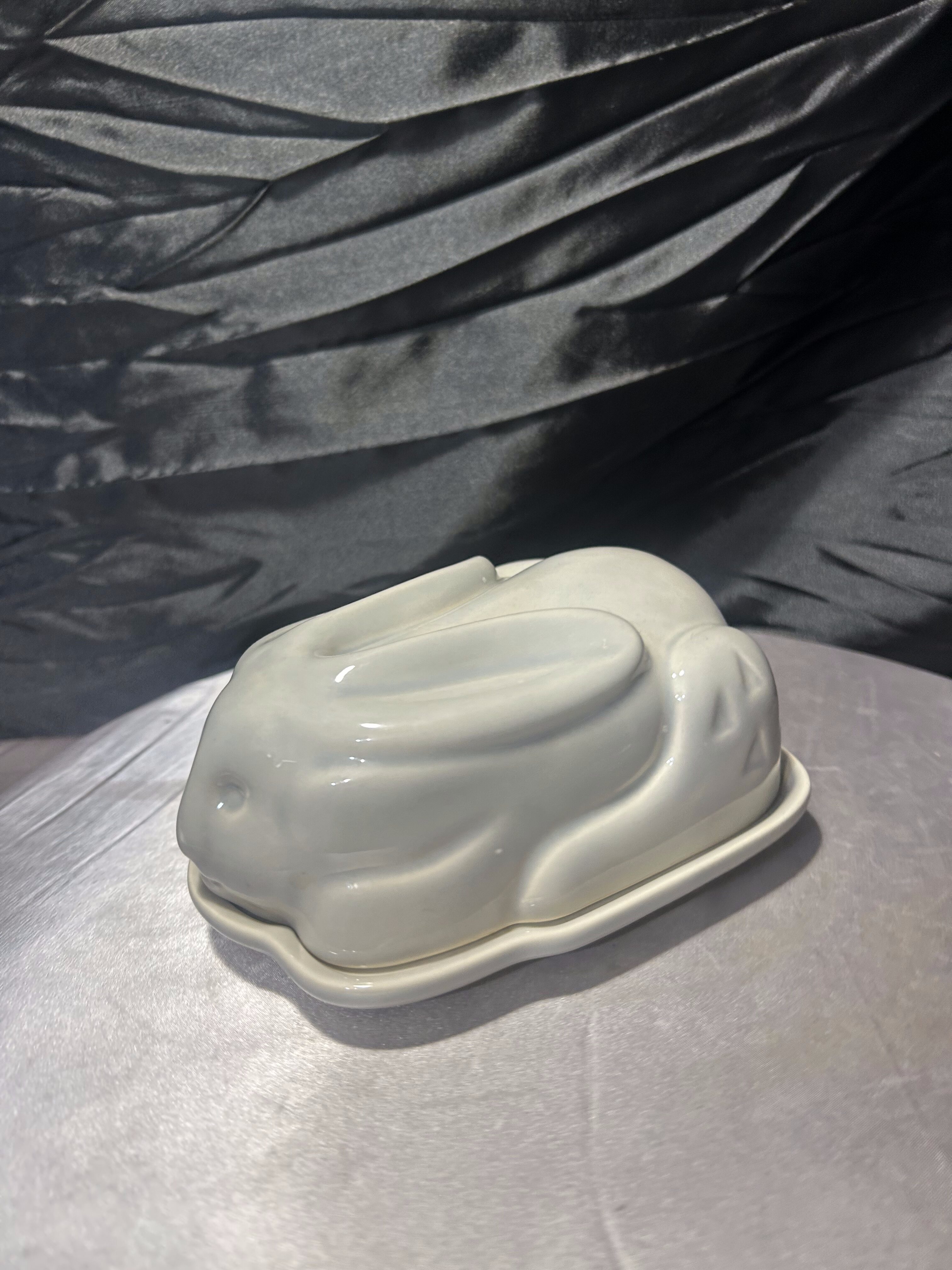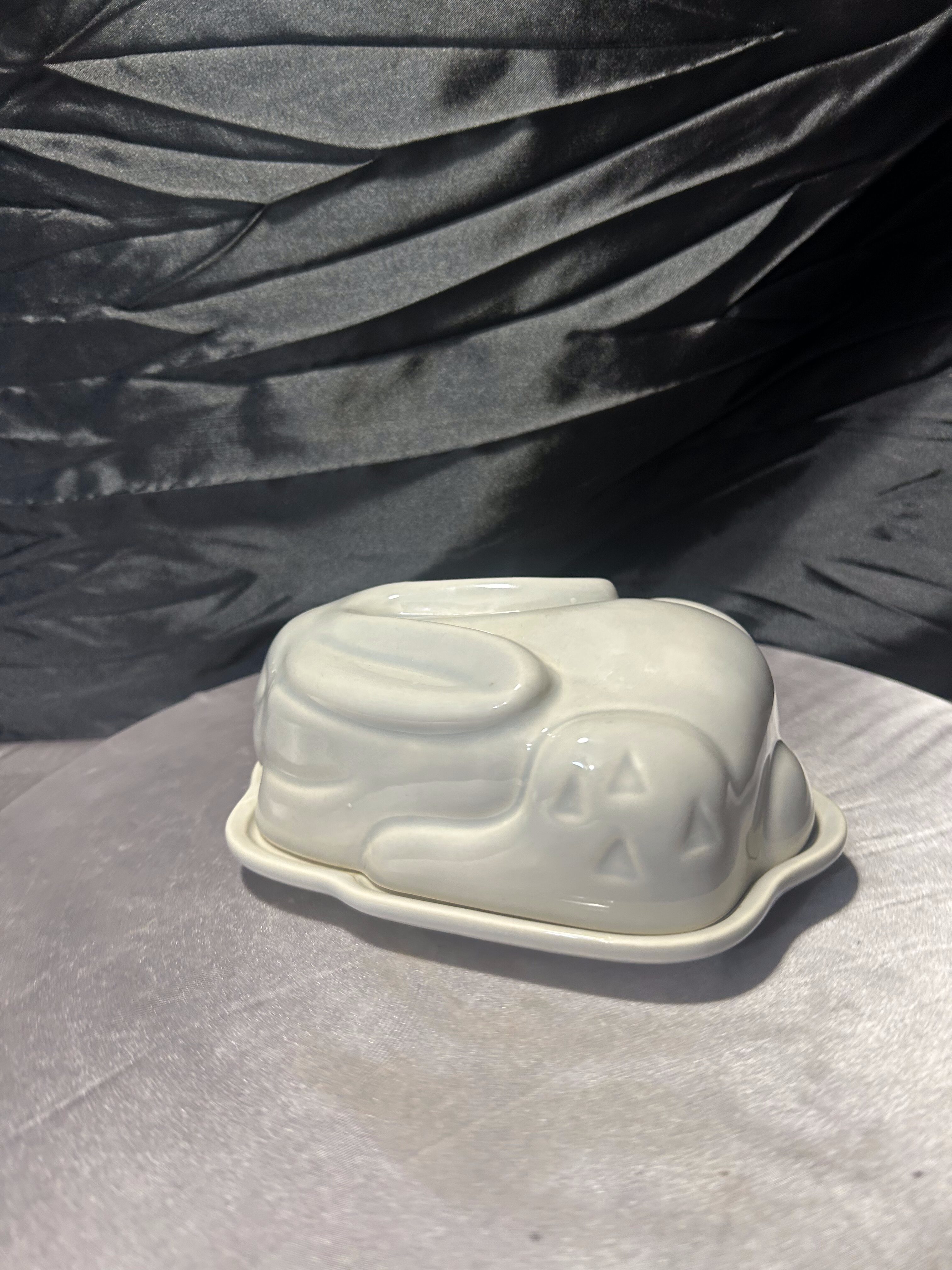 Urocza ceramiczna maselnica wykonana w formie leżącego zająca, zaprojektowana przez markę Bliss in the Woods. Przedmiot łączy funkcjonalność z dekoracyjnym charakterem i stanowi wyjątkowy element wyposażenia kuchni lub stołu.