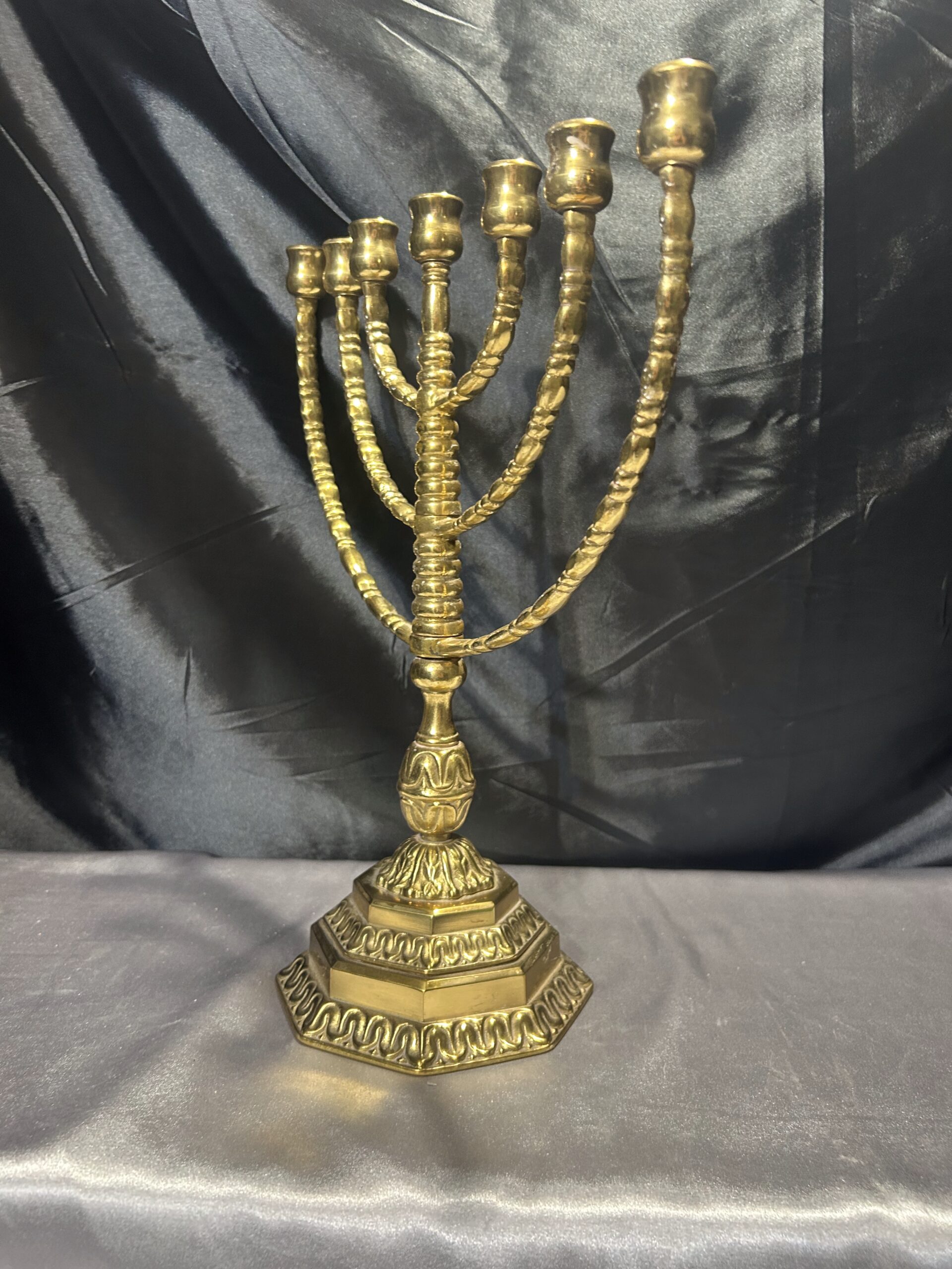 Menora – Siedmioramienny Żydowski Świecznik z Mosiądzu
