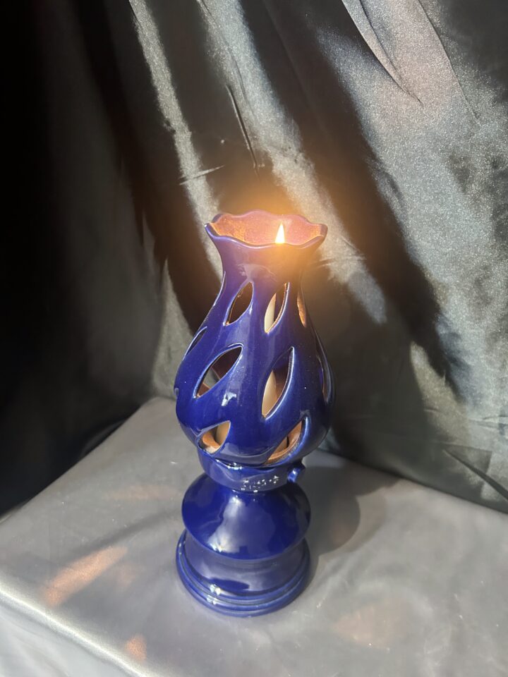 Świecznik Ceramiczny – W Kształcie Lampy Naftowej, Granatowy