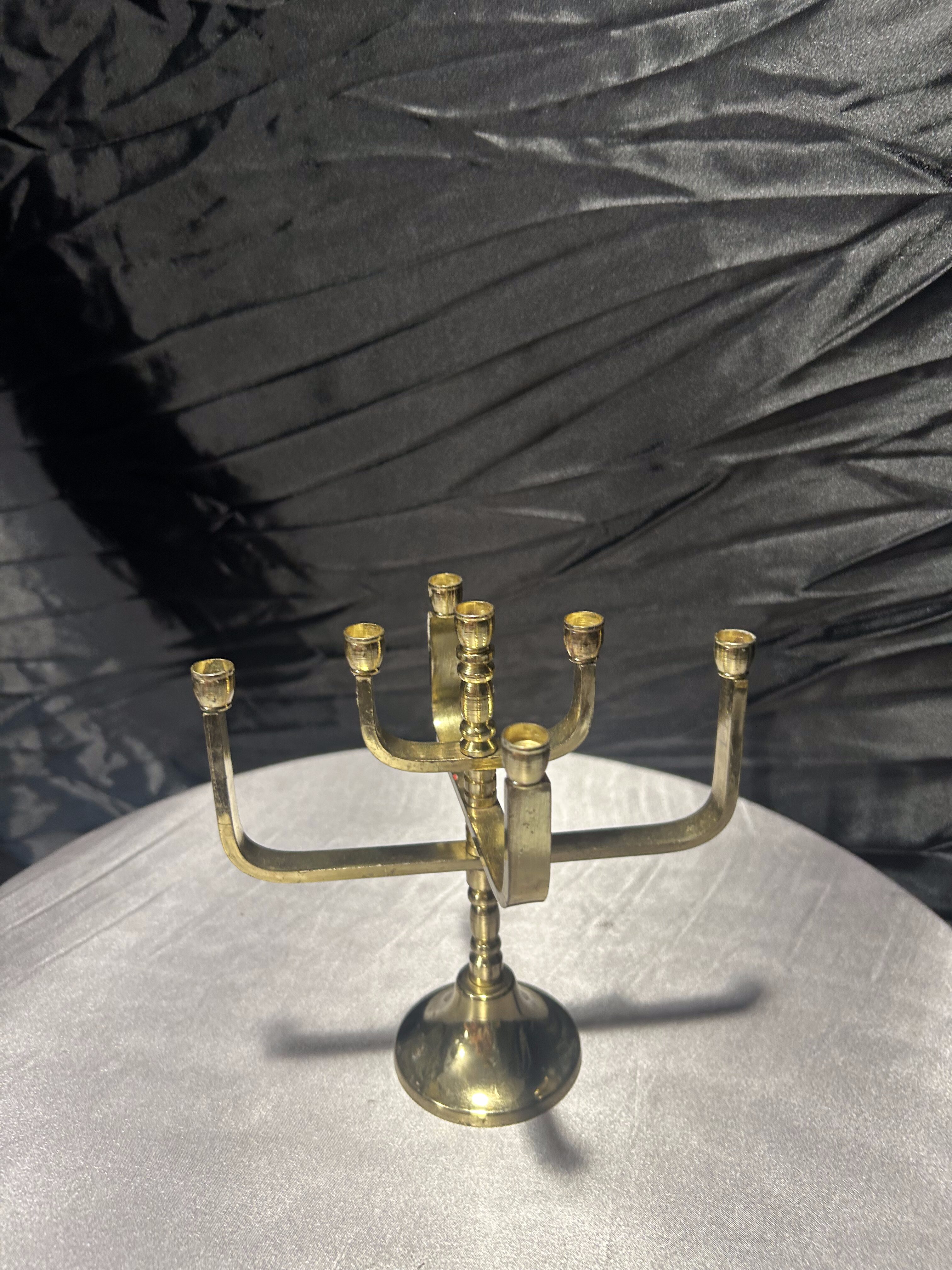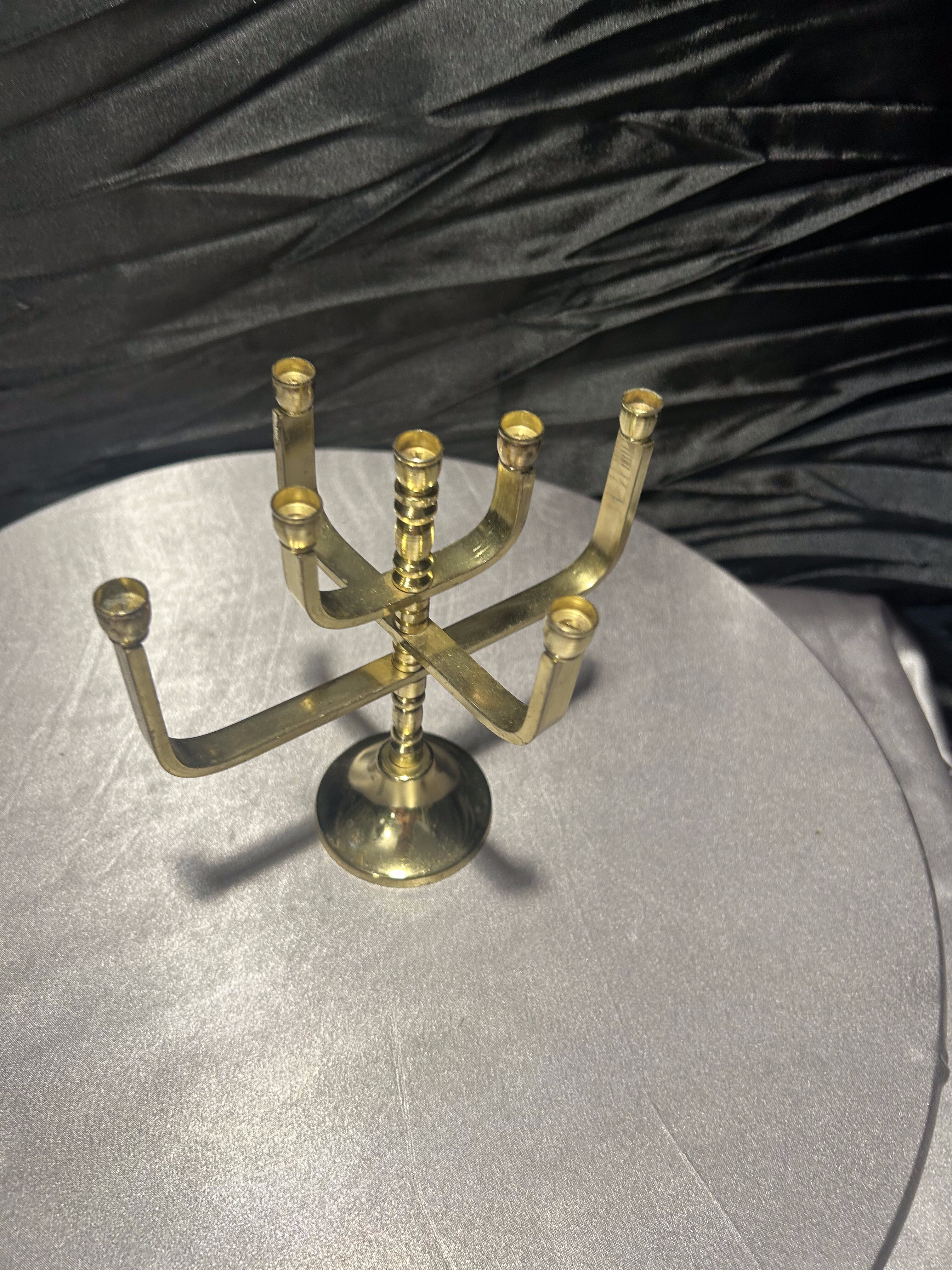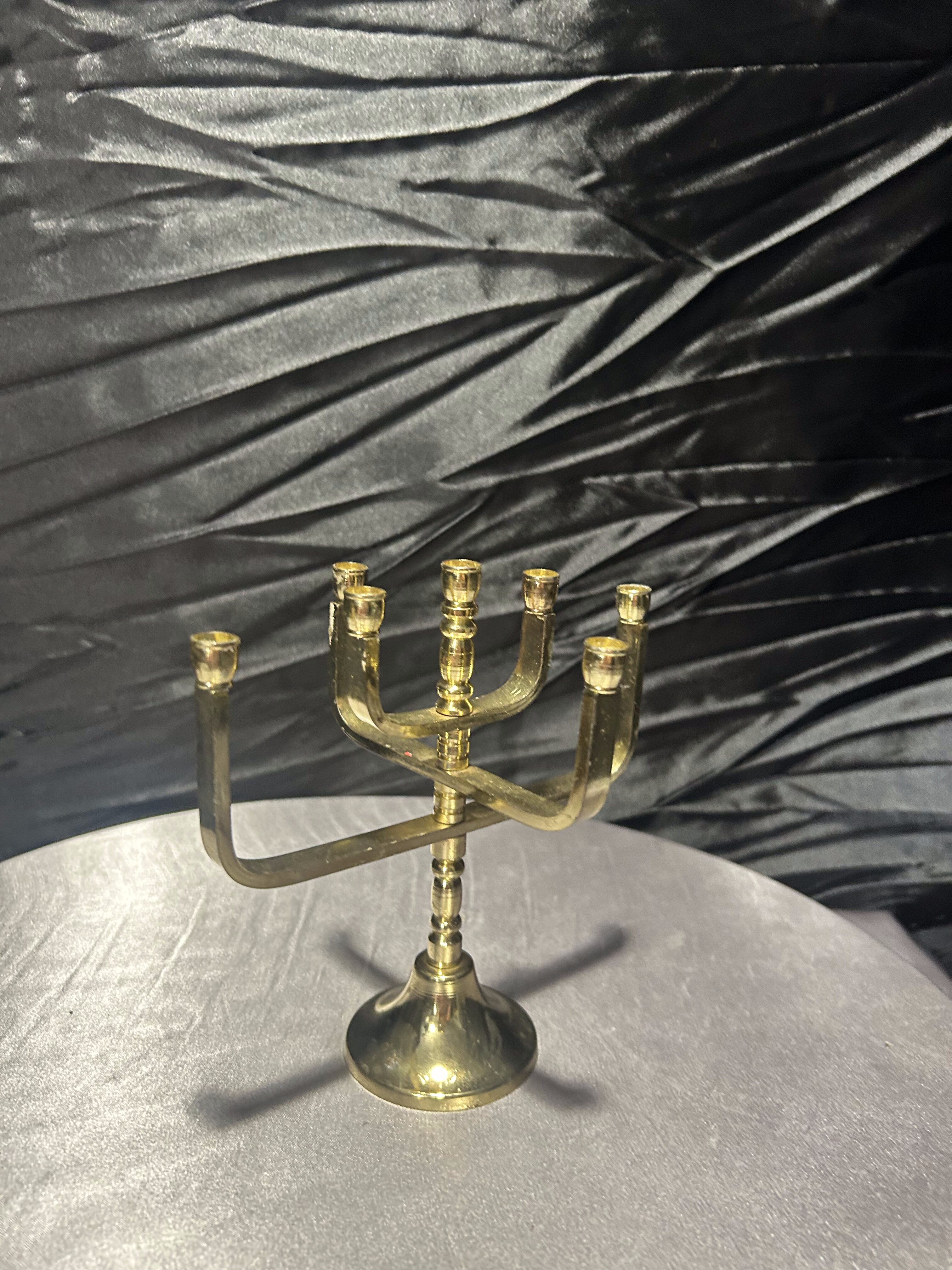 Elegancka menora wykonana z polerowanego mosiądzu, przeznaczona na 7 świec. Ten charakterystyczny świecznik, symboliczny dla tradycji judaistycznej, zachwyca prostą, ale wyrazistą formą. Idealny zarówno jako element kolekcji, jak i dekoracyjny akcent w domu – pełen znaczeń i historii. Stabilna podstawa oraz wyważona forma gwarantują nie tylko estetykę, ale i praktyczne zastosowanie.