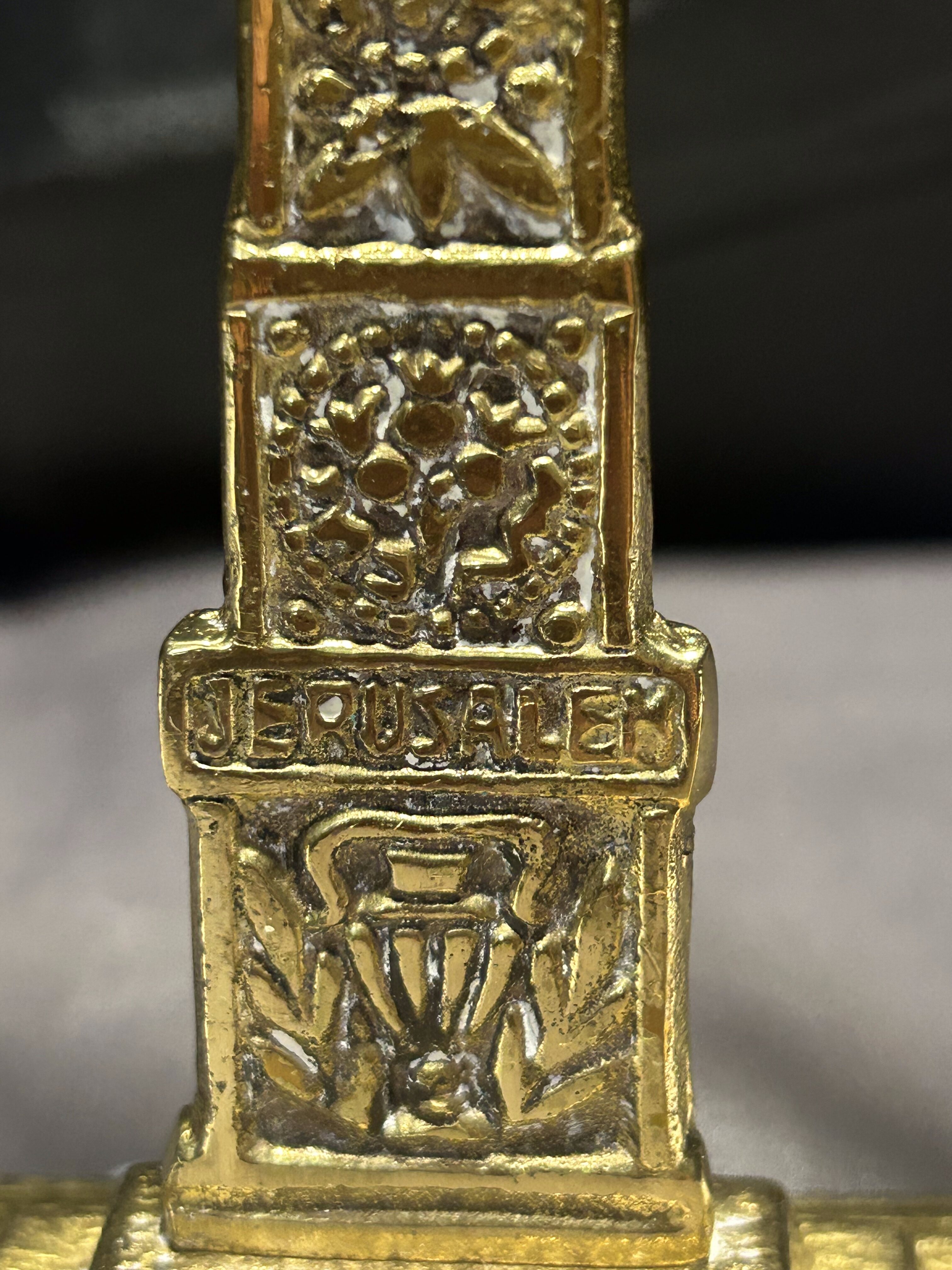 - Menora z mosiądzu – z napisem Jerusalem – bogato zdobiona