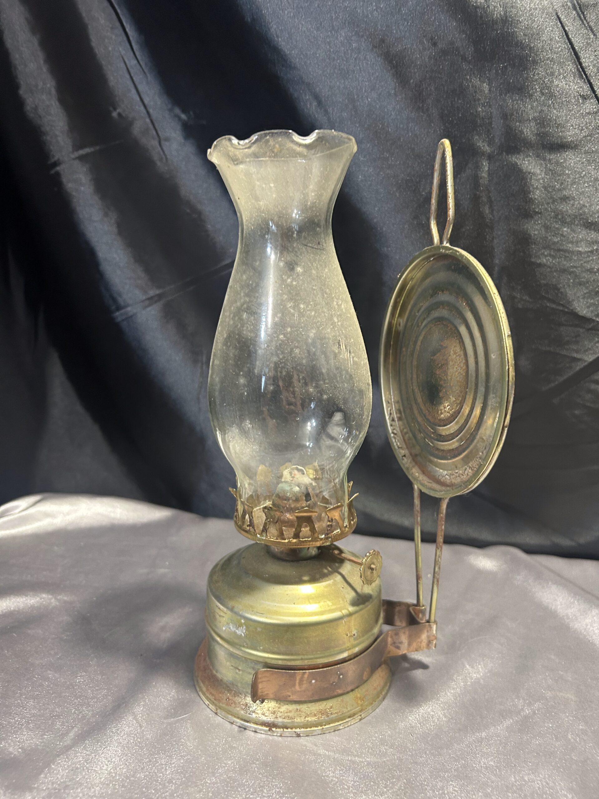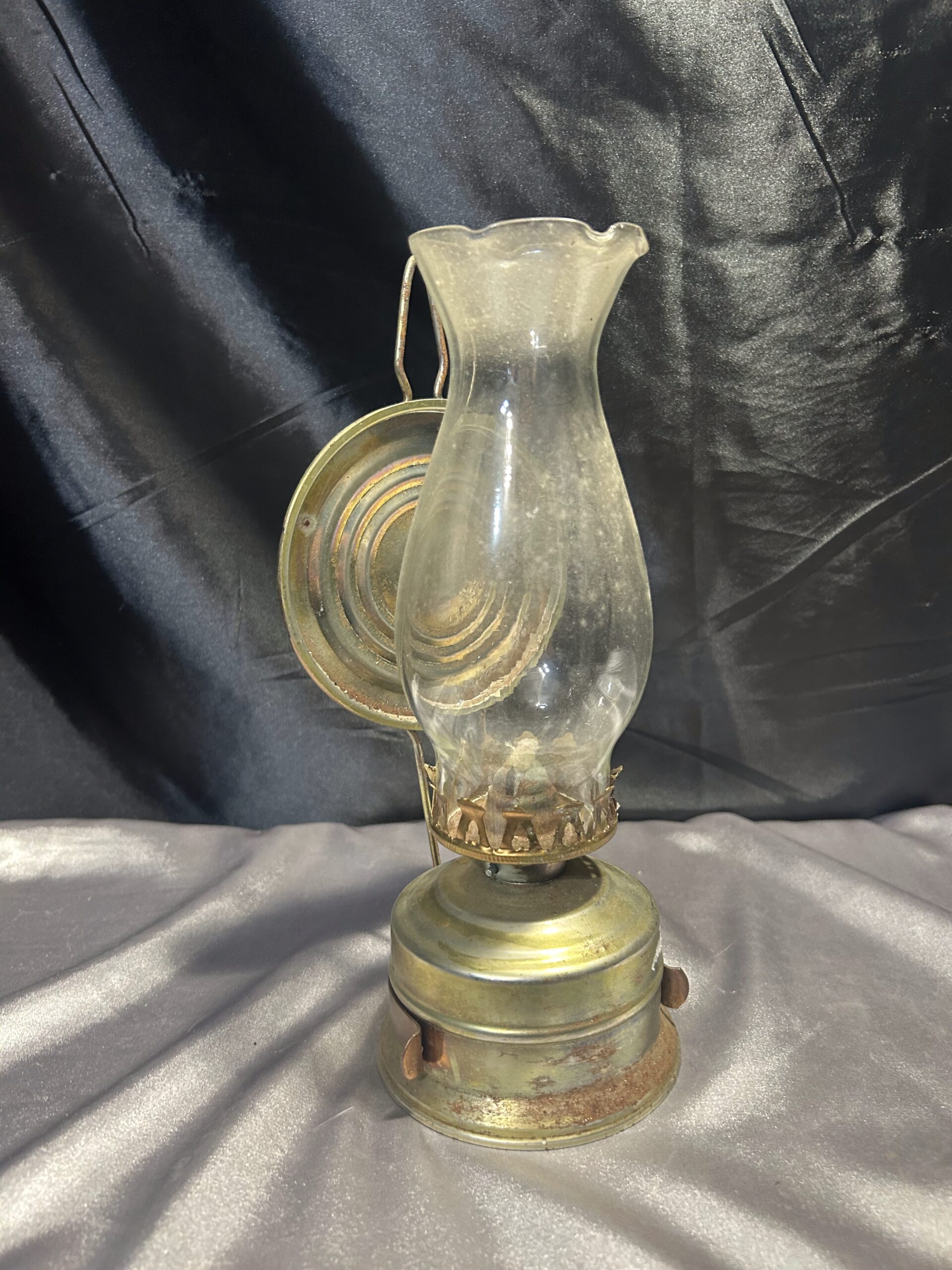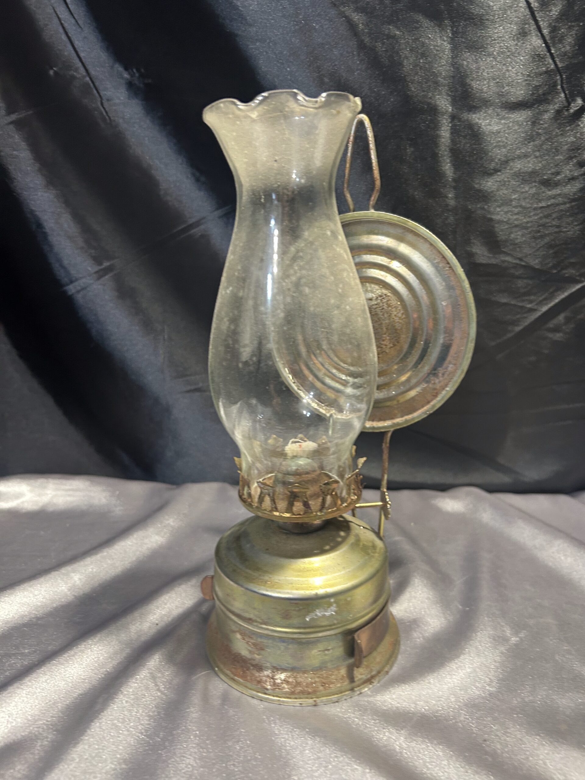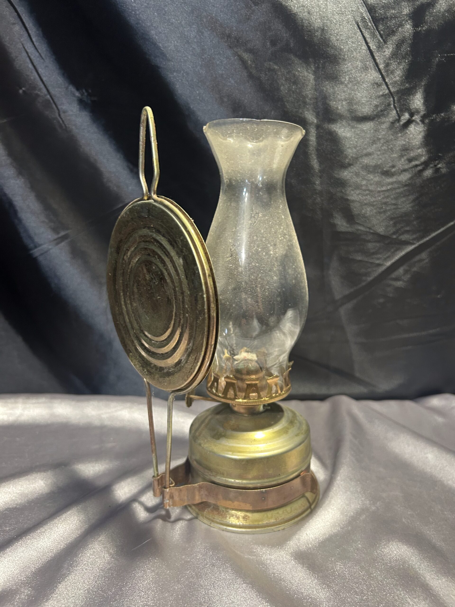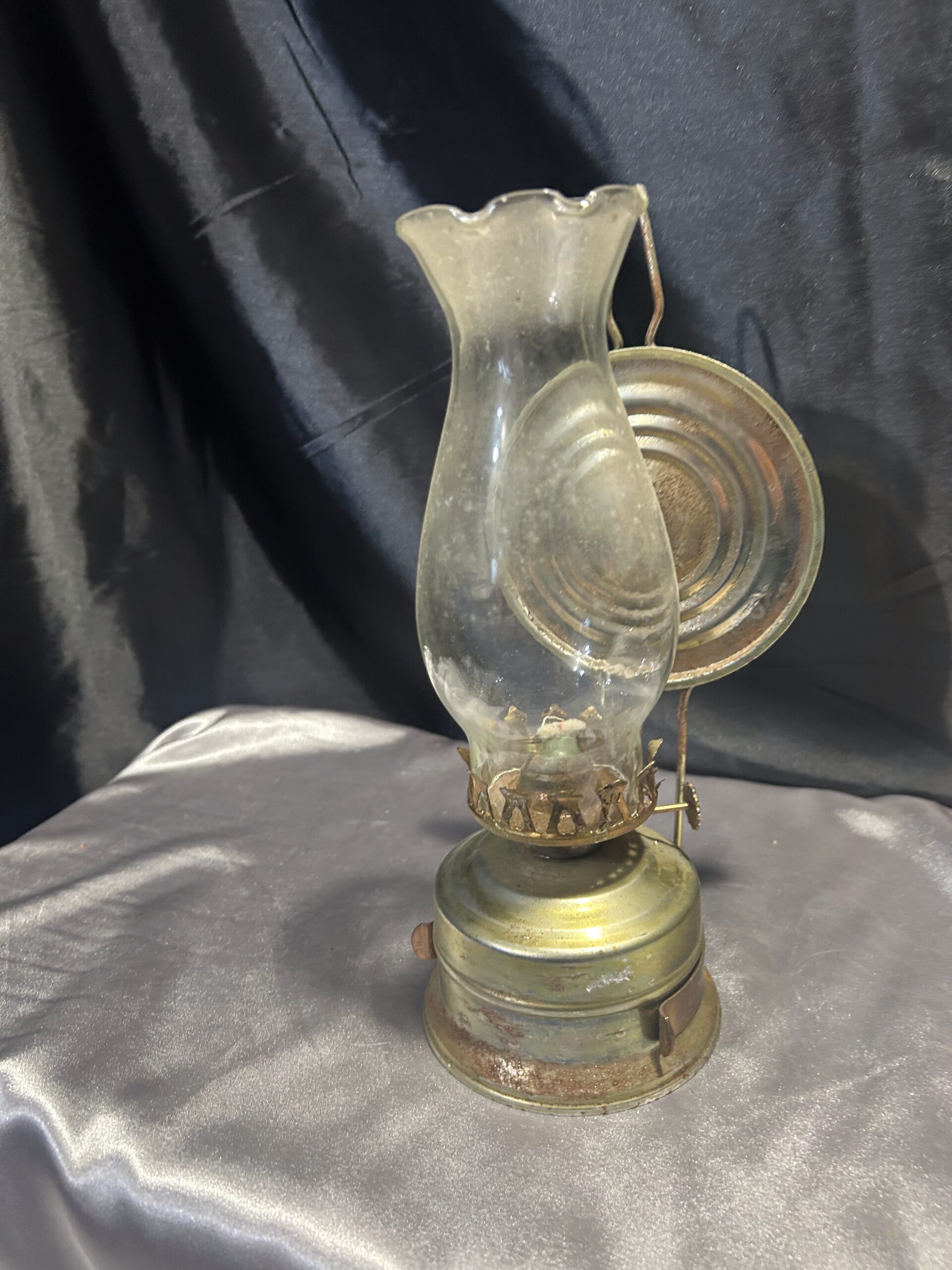 Metalowa Lampa Naftowa z Falbanką i Talerzem Odbijającym Światło
