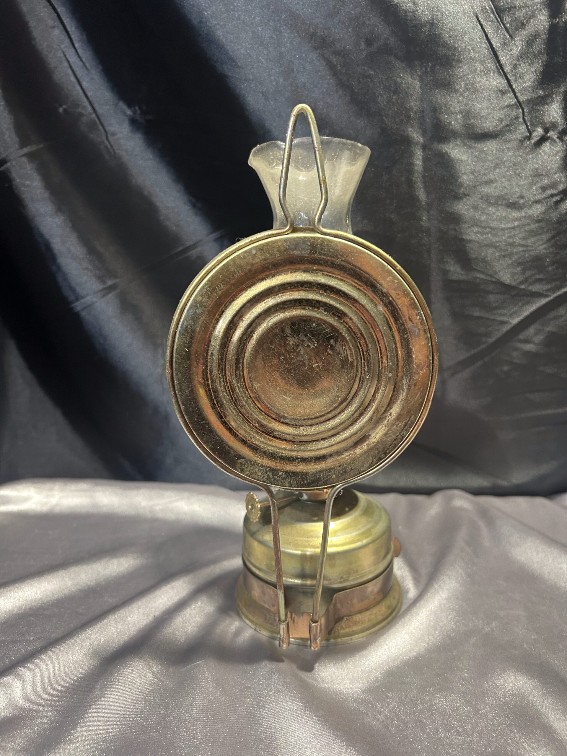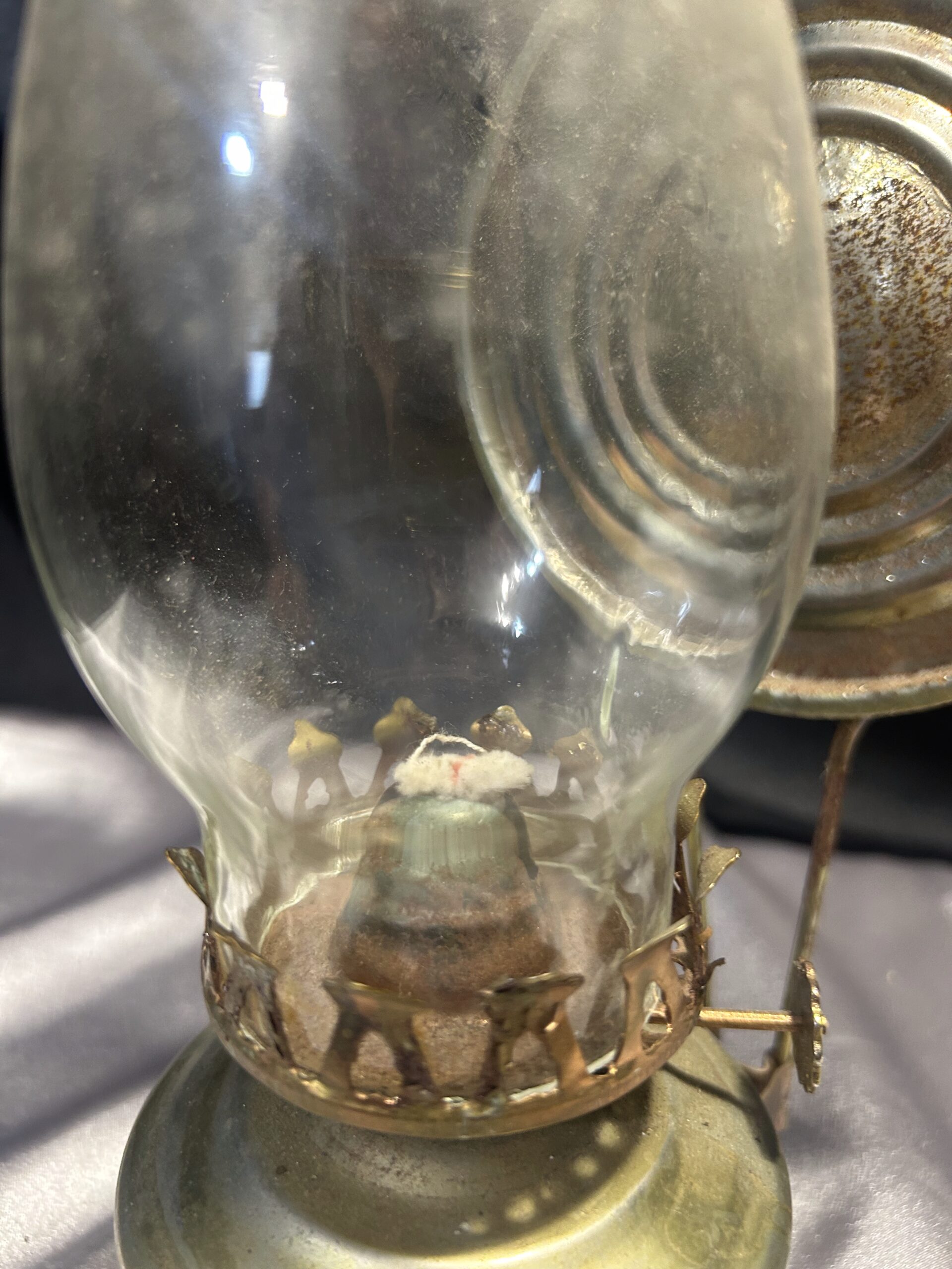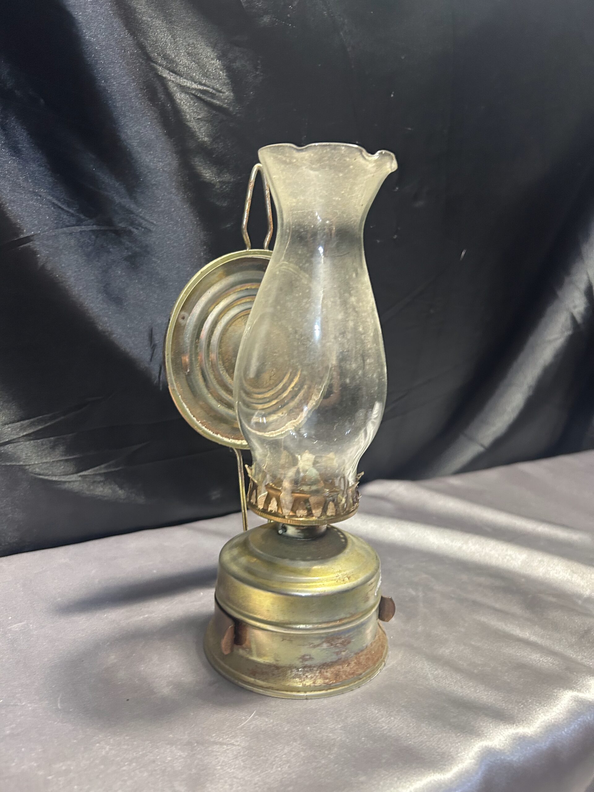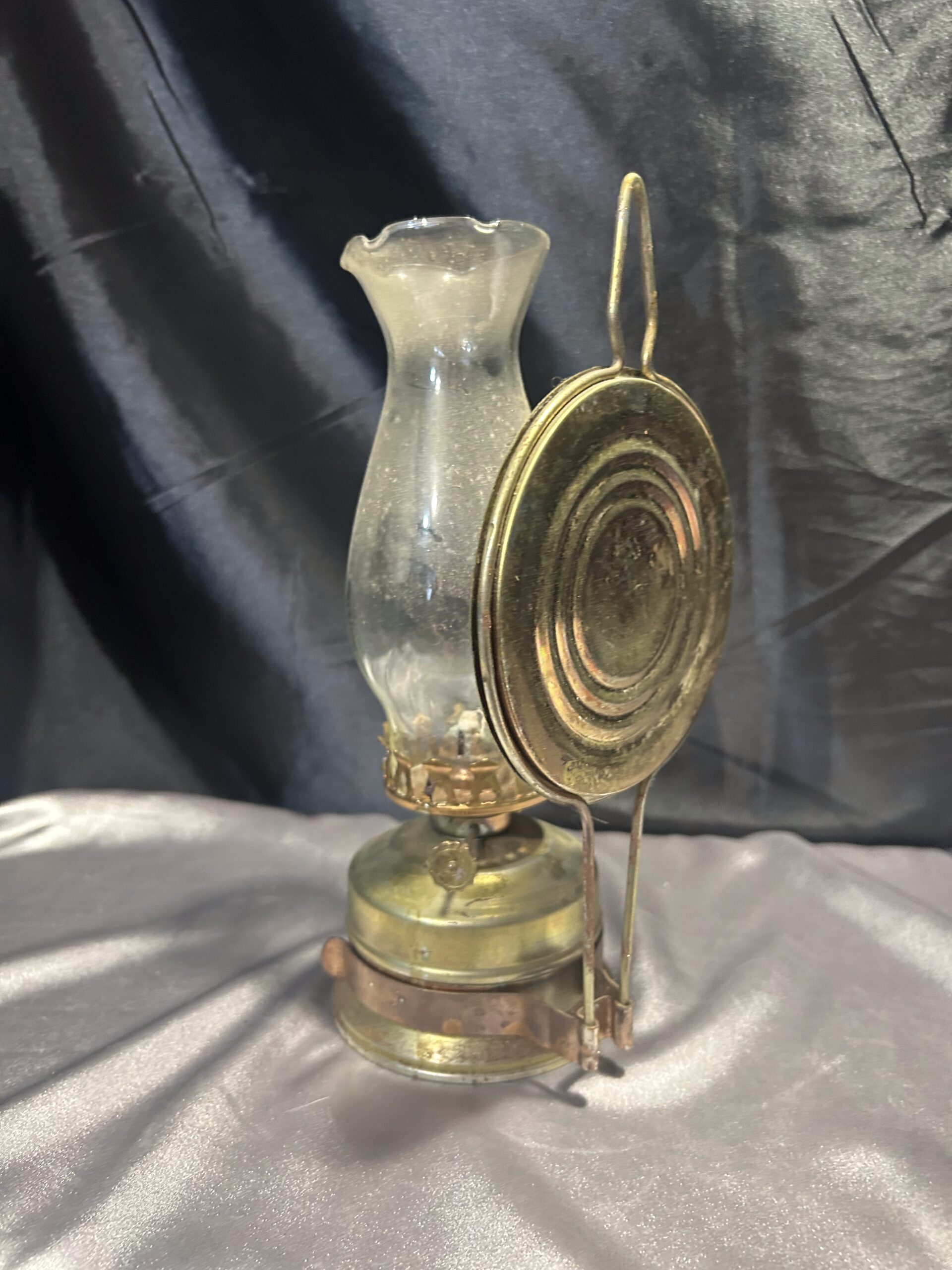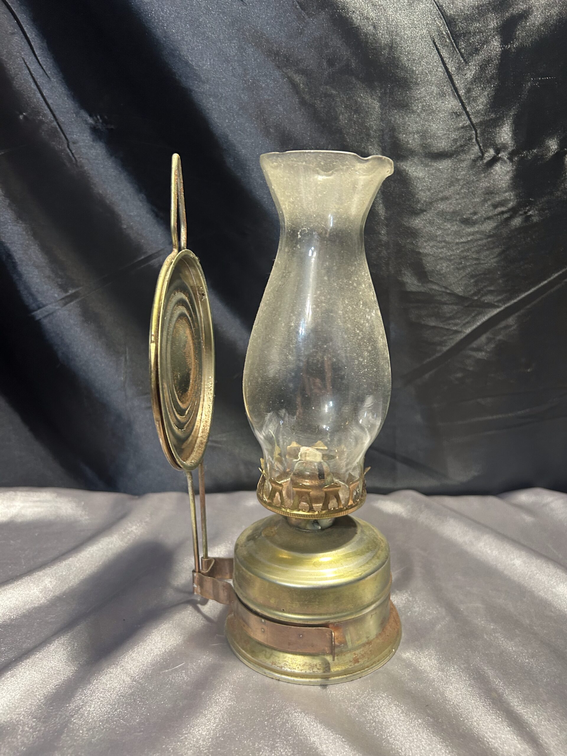 Metalowa Lampa Naftowa z Falbanką i Talerzem Odbijającym Światło