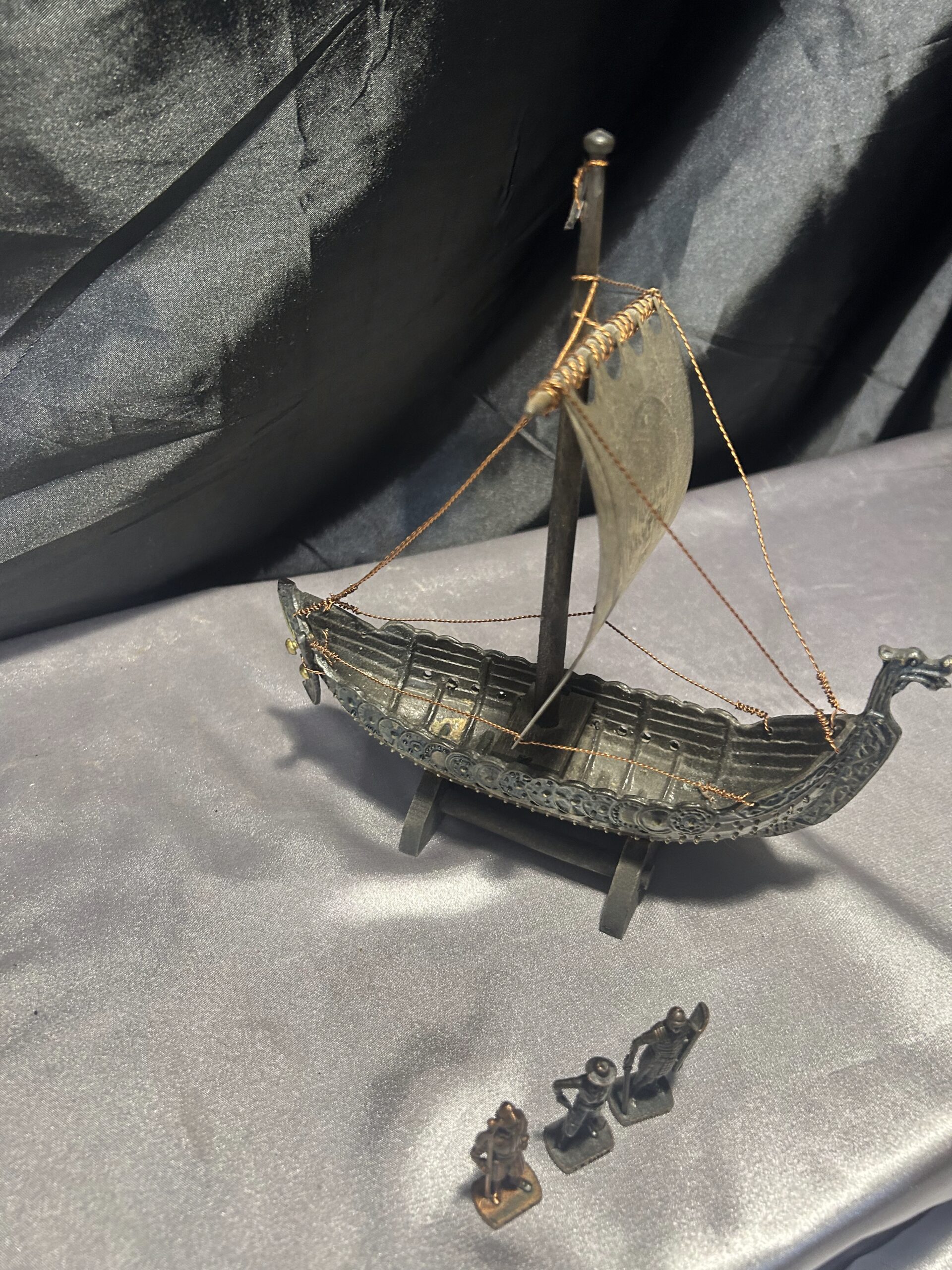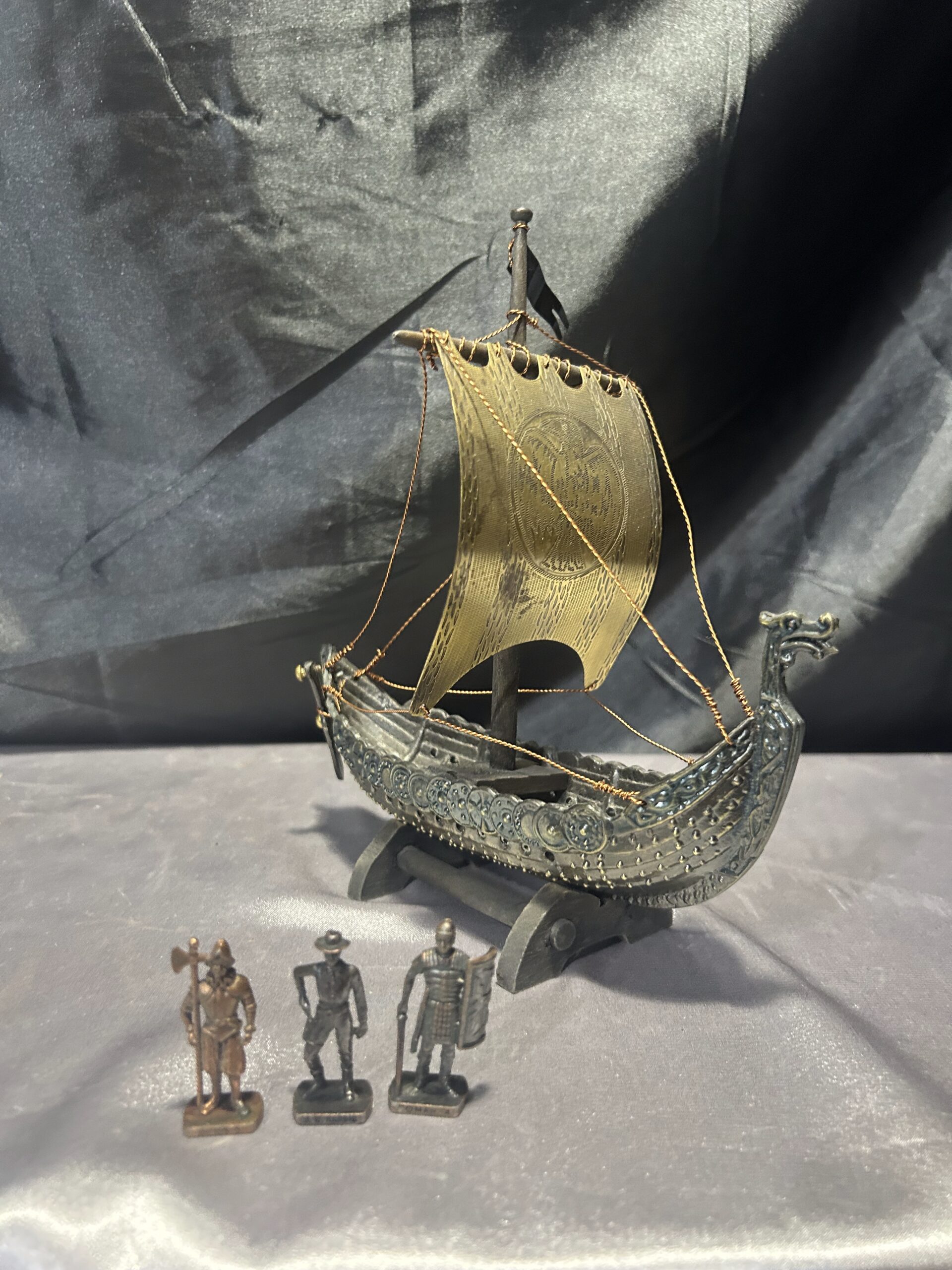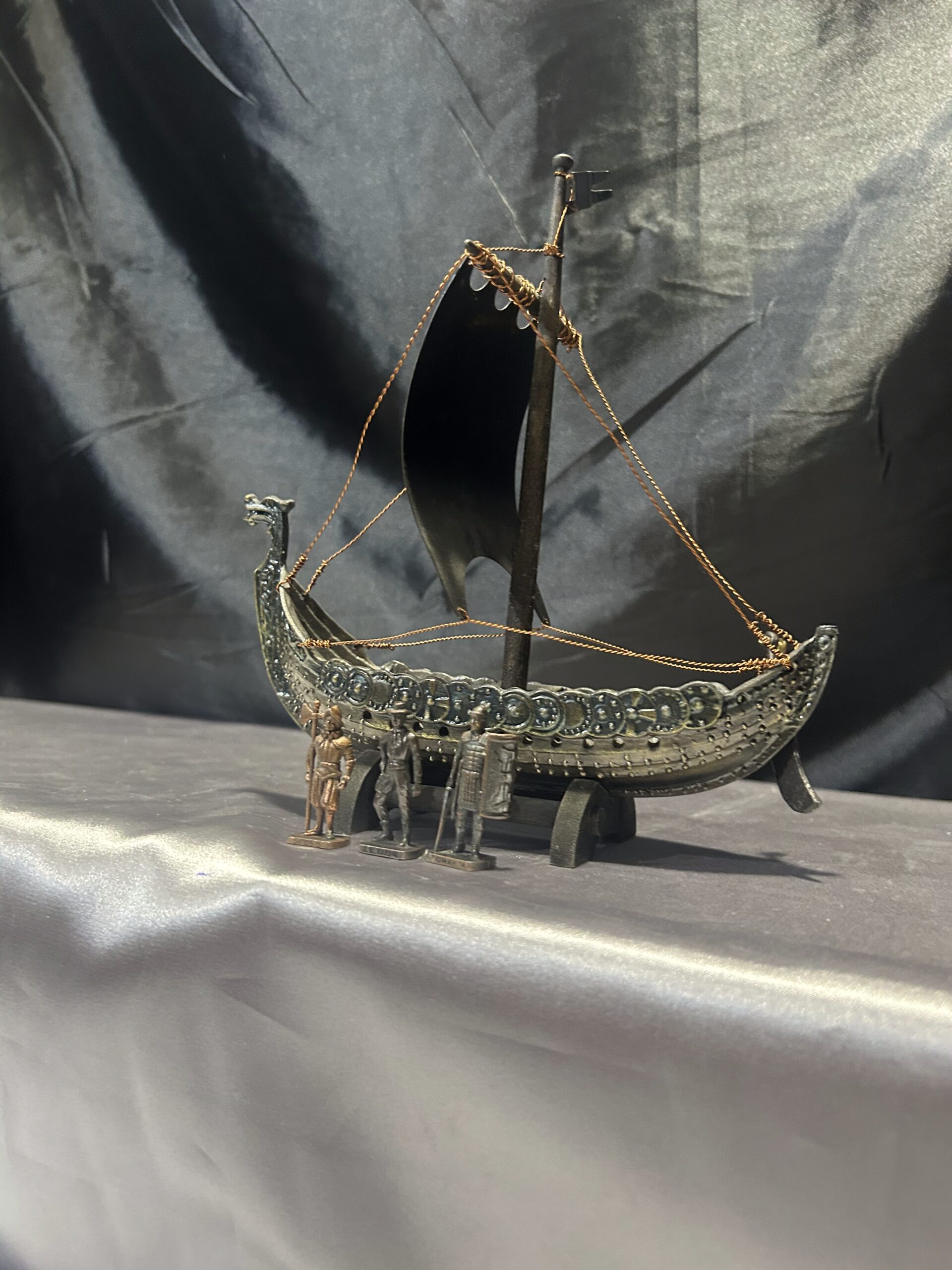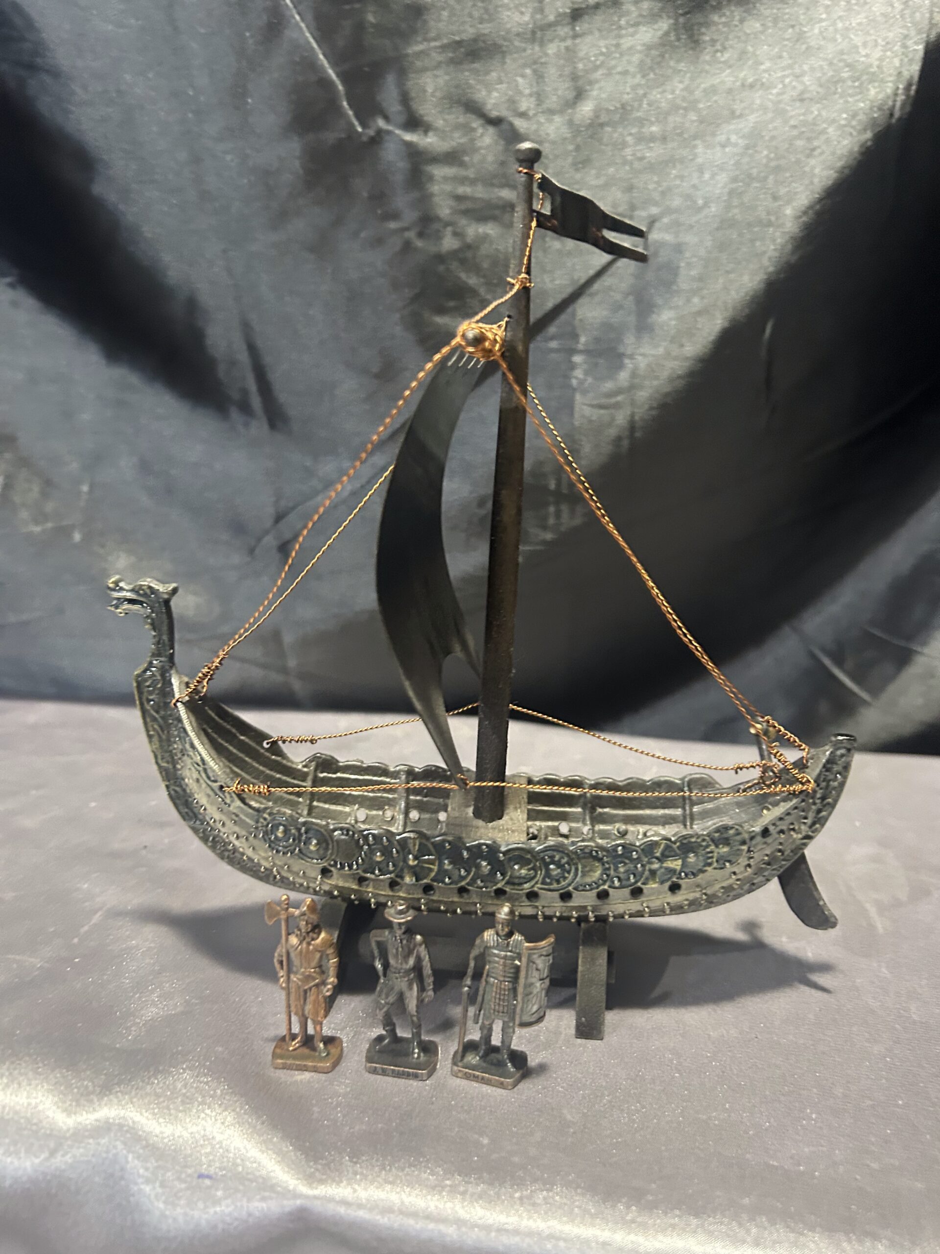 Metalowa łódź wikingów – realistyczna figurka kolekcjonerska