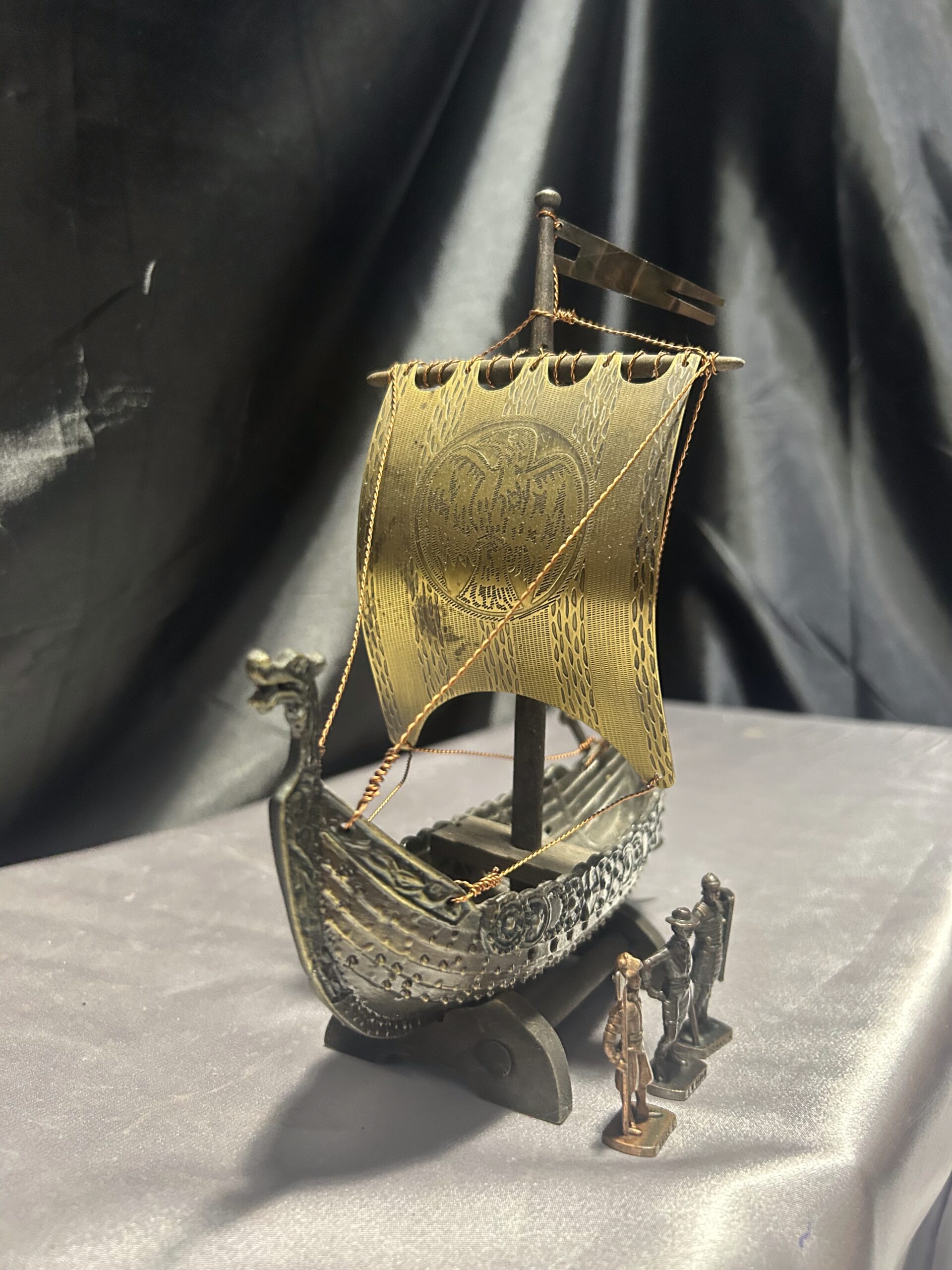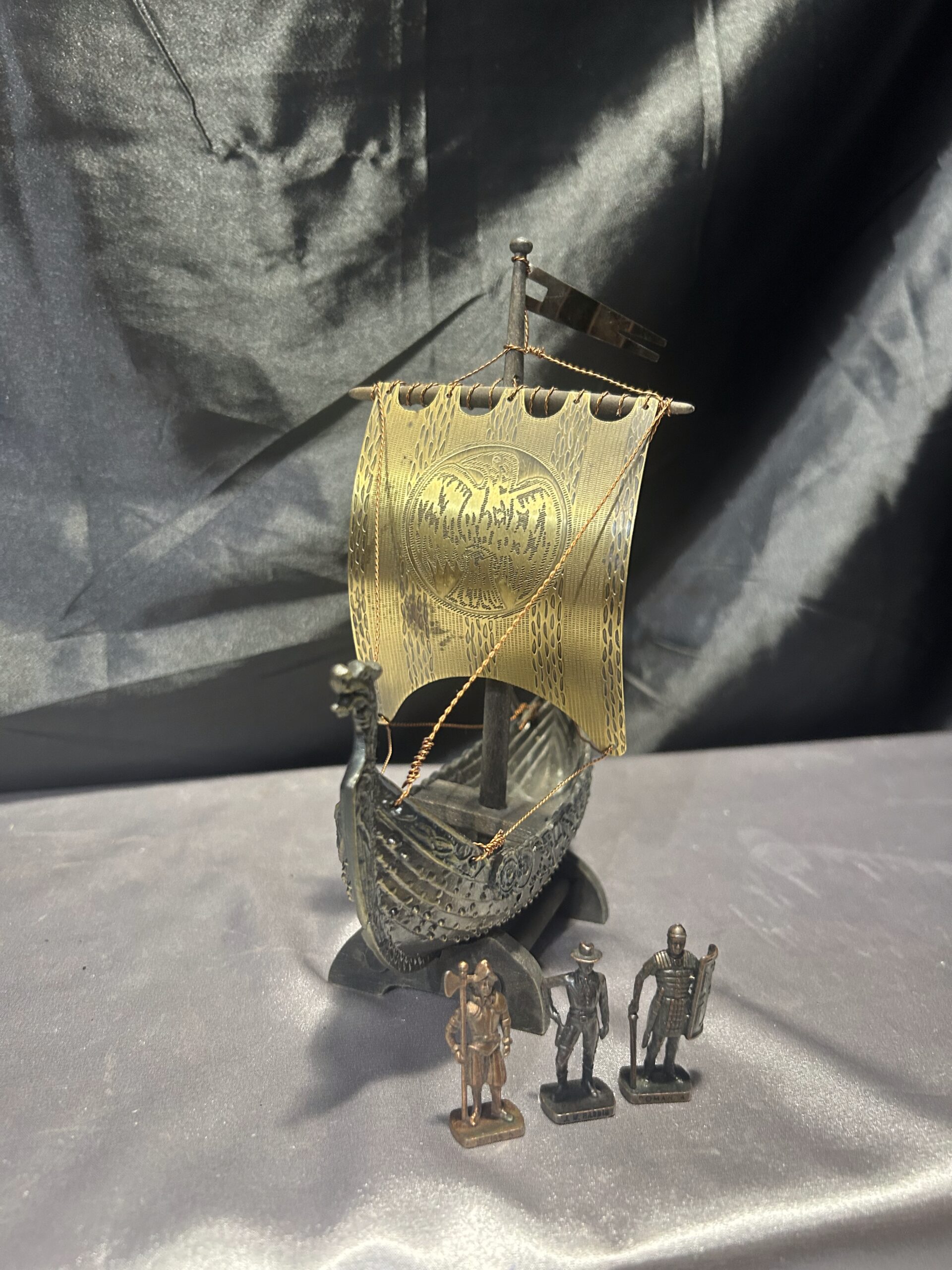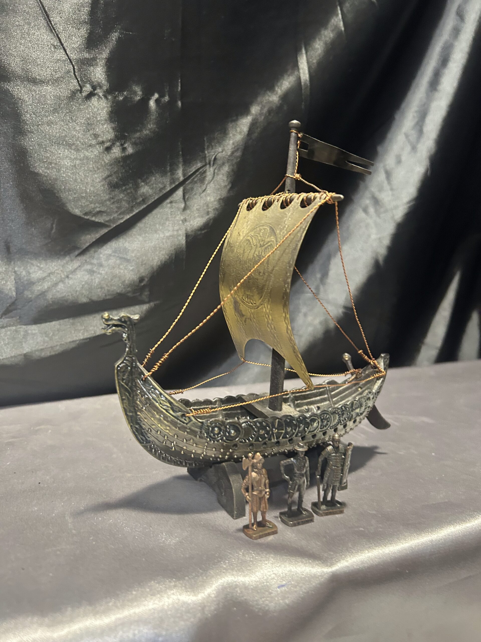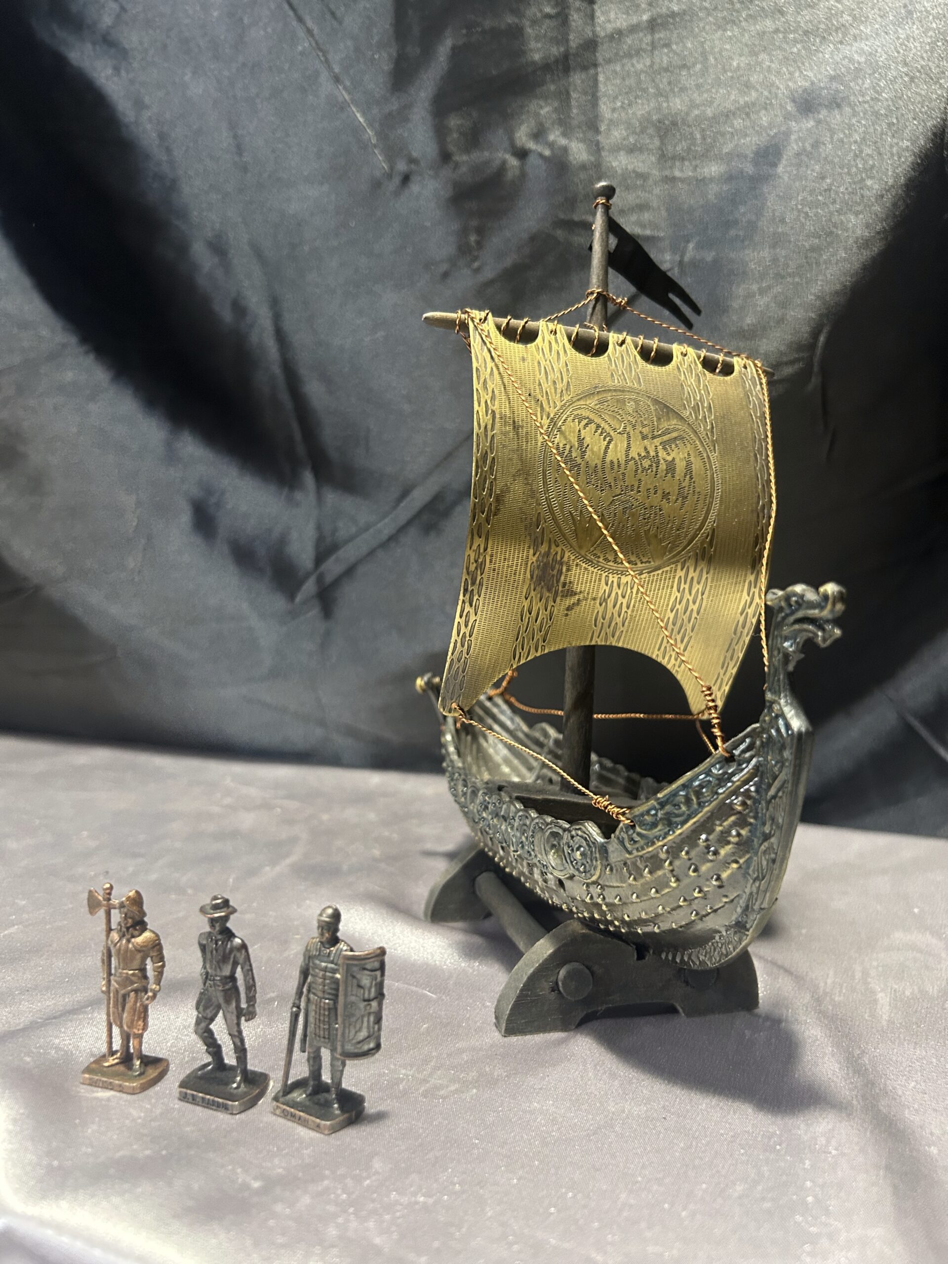 Metalowa łódź wikingów – realistyczna figurka kolekcjonerska