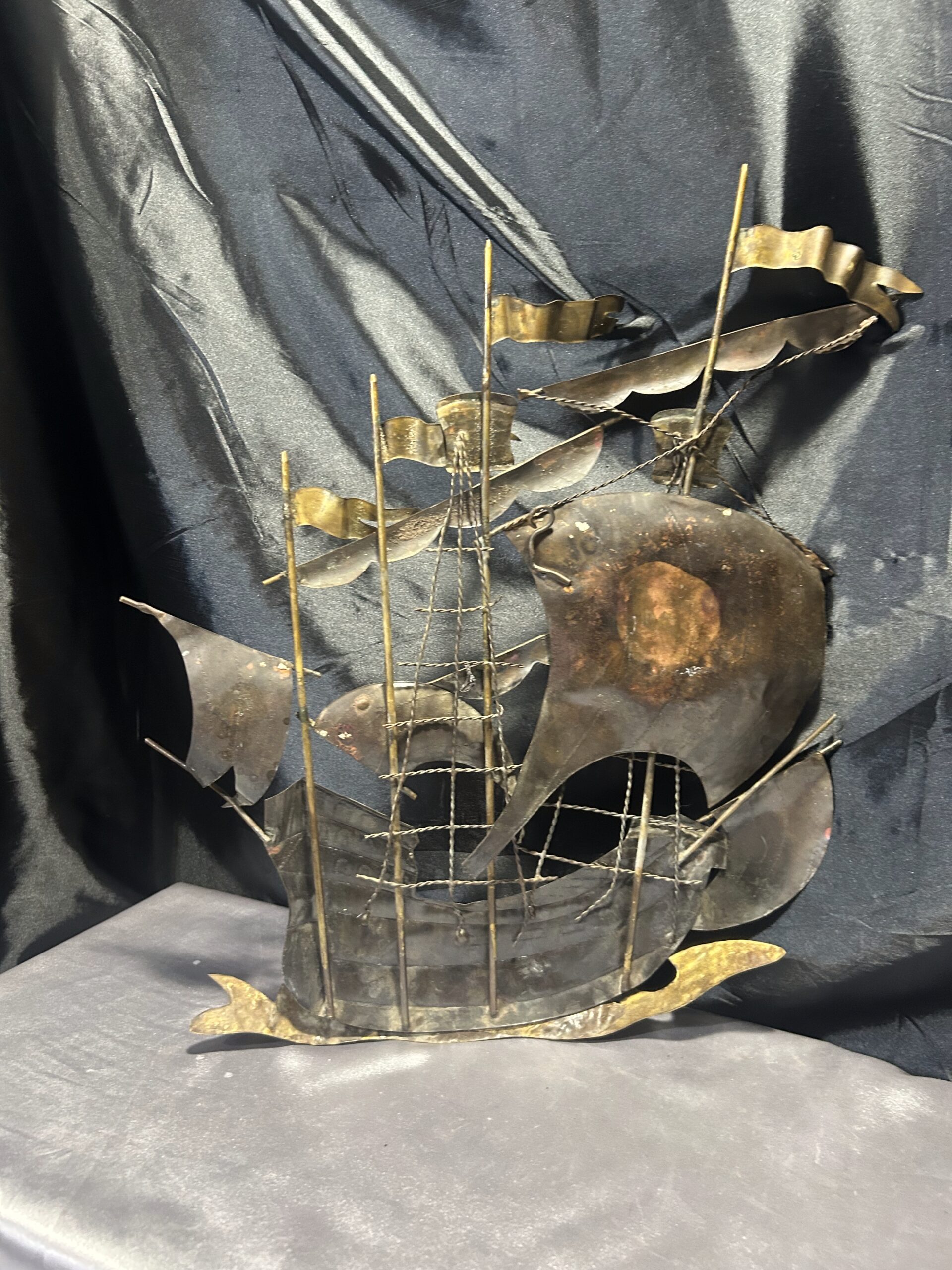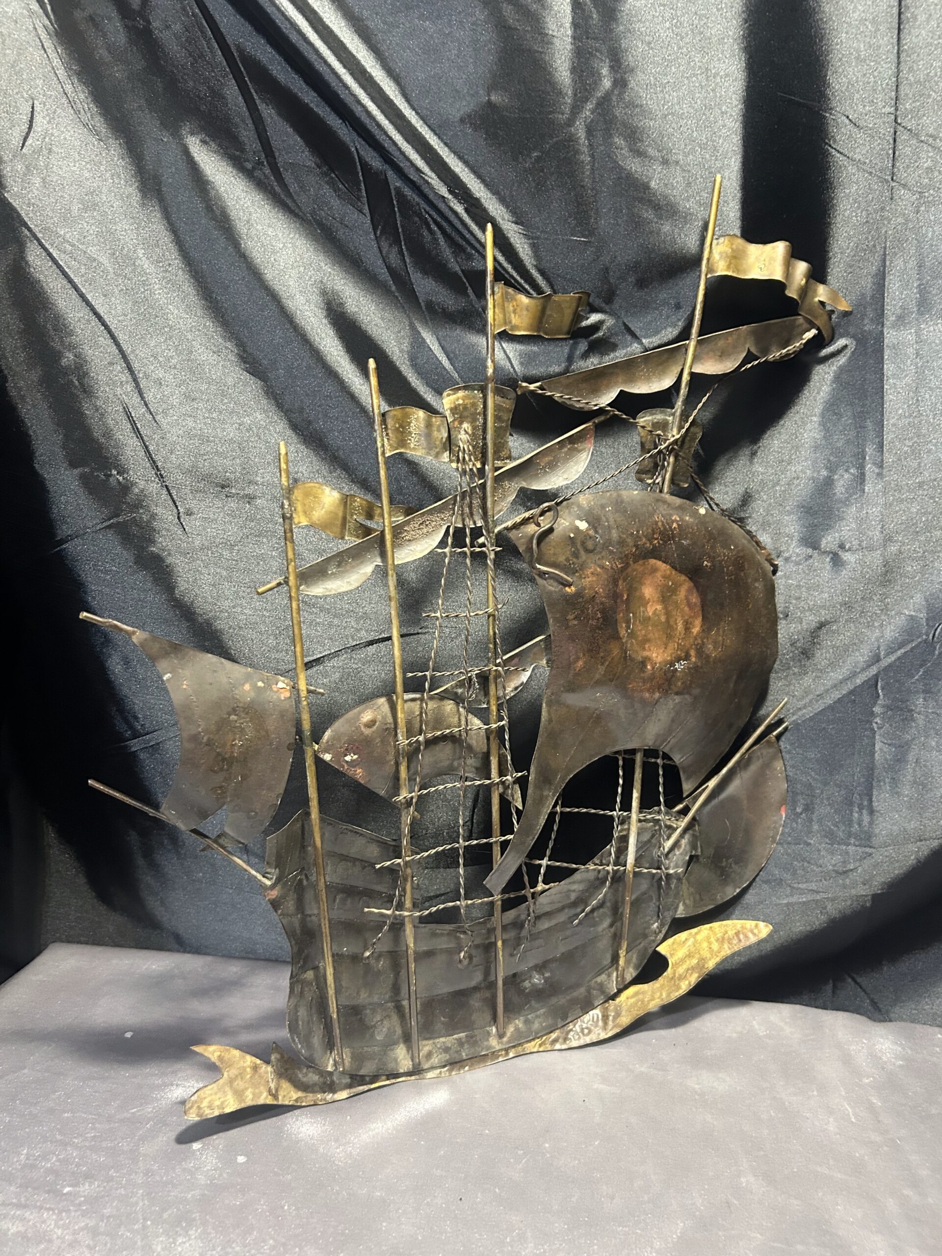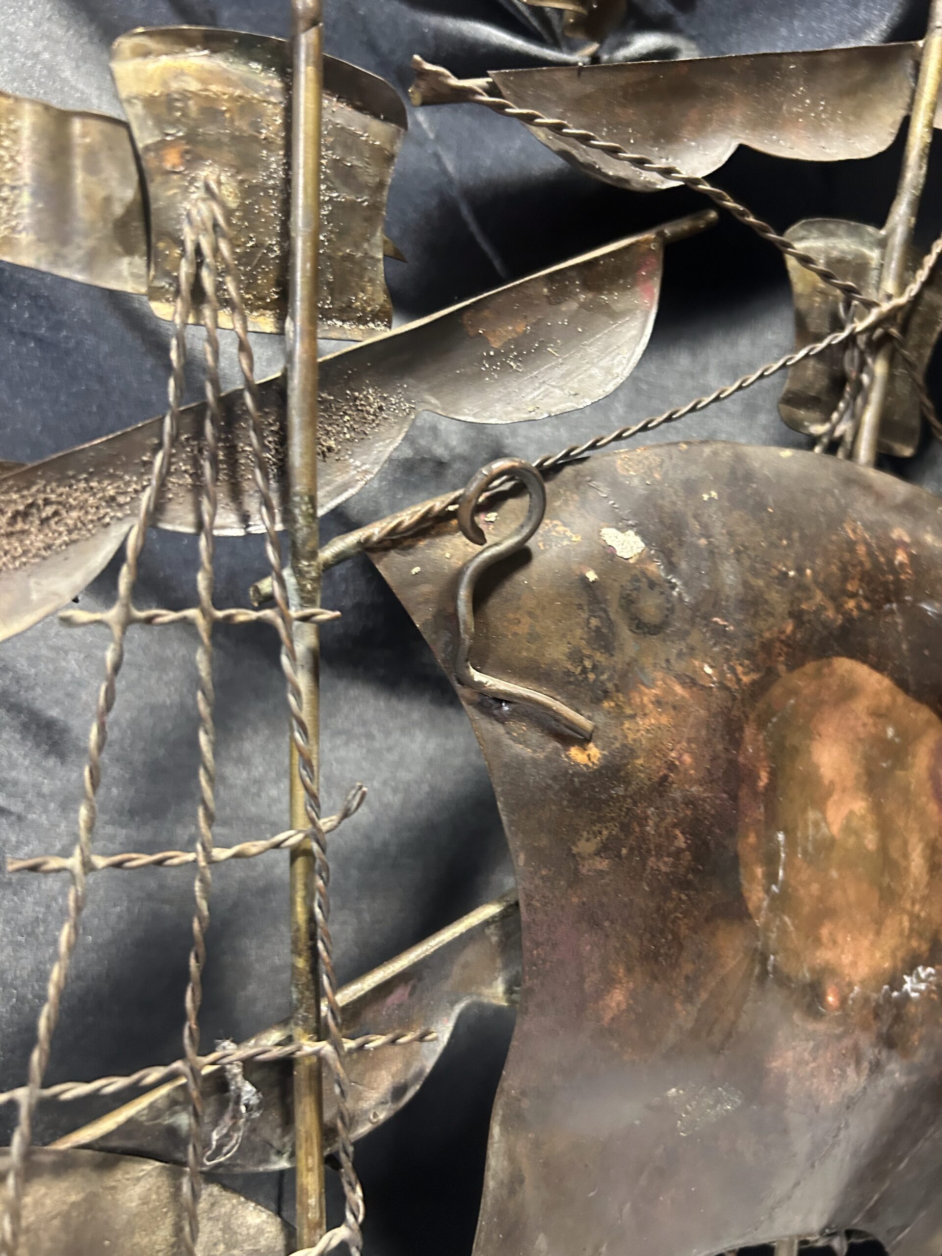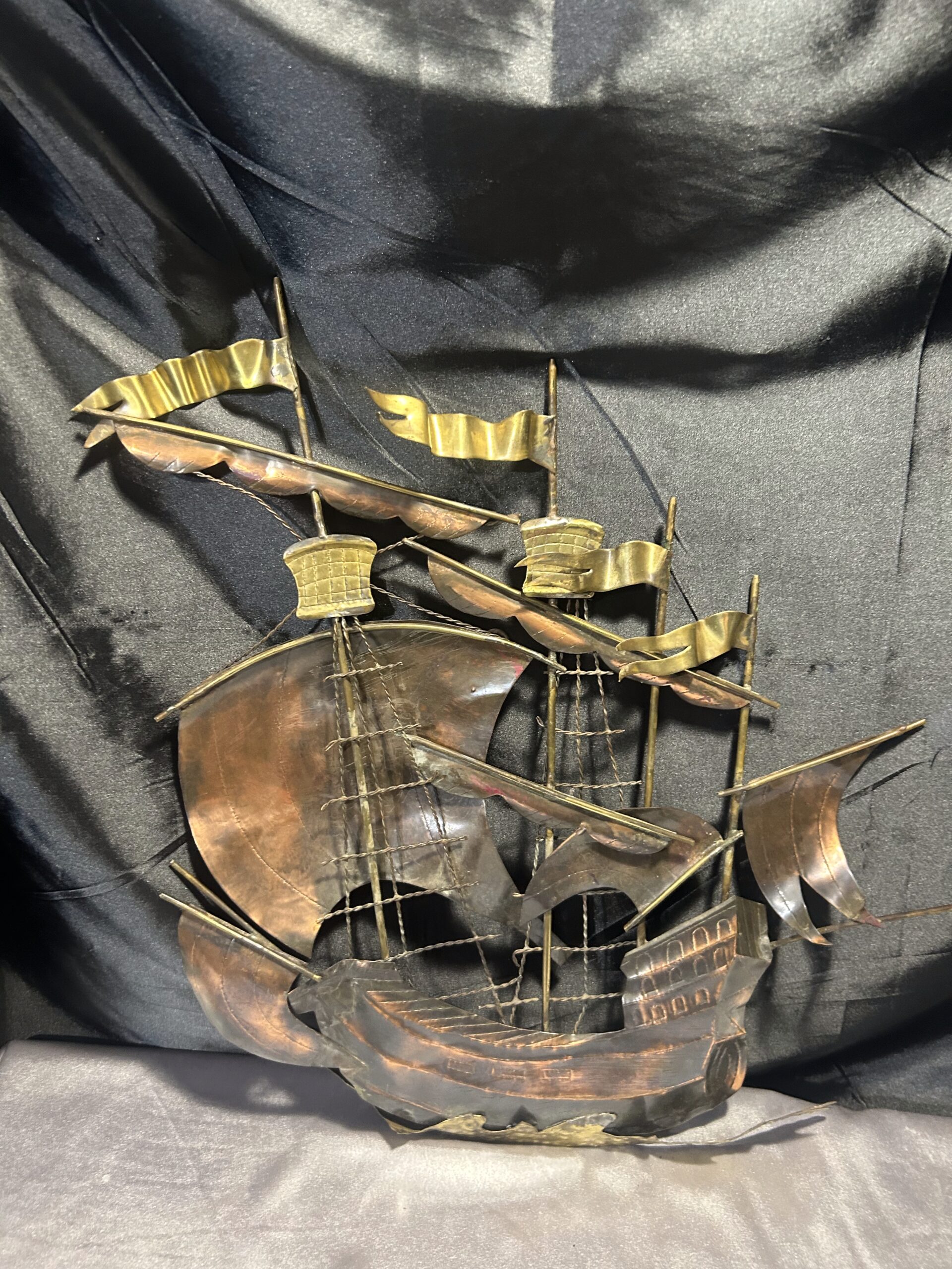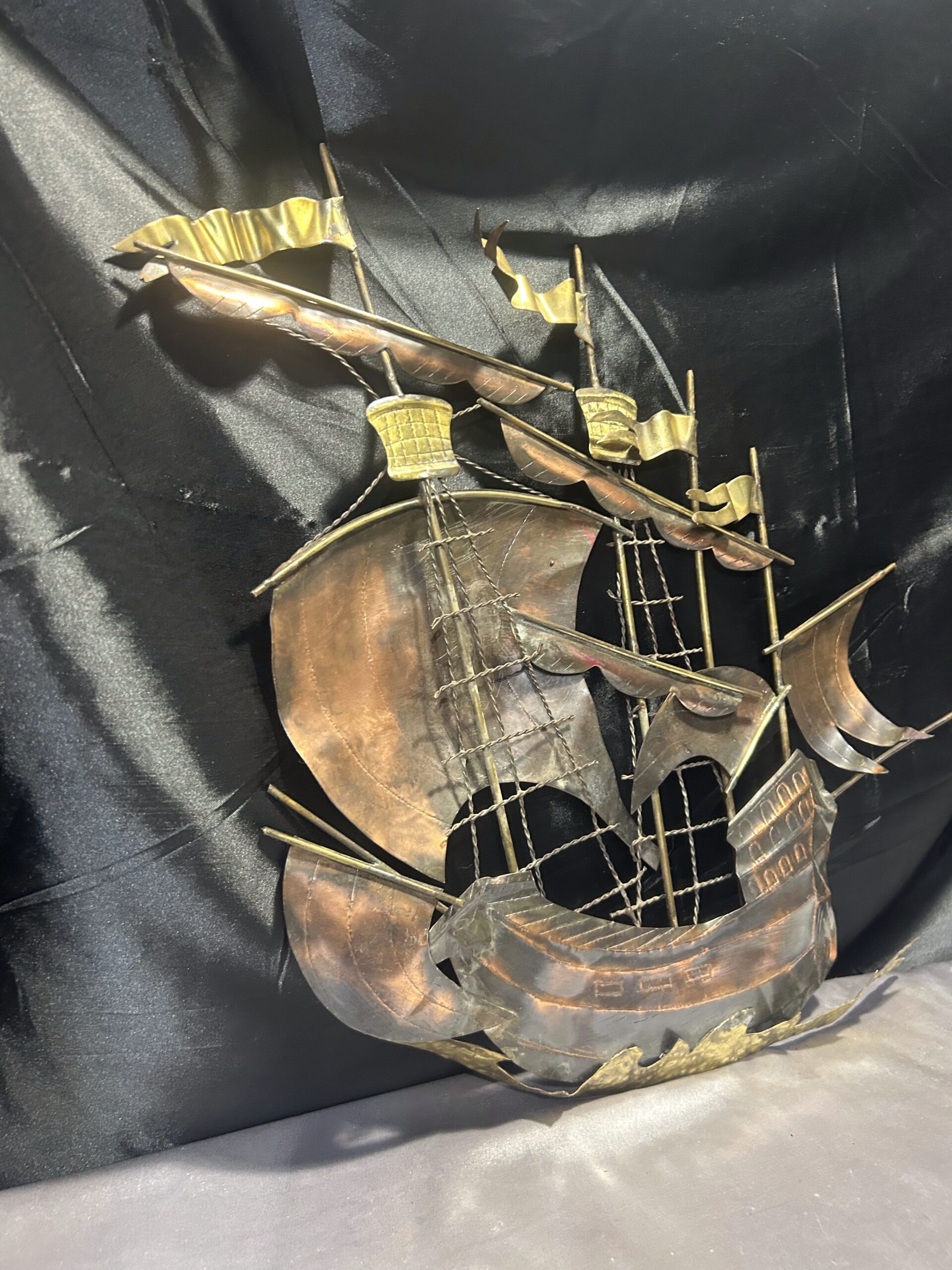 Metalowa płaskorzeźba statku – miedź i mosiądz, unikatowa dekoracja ścienna