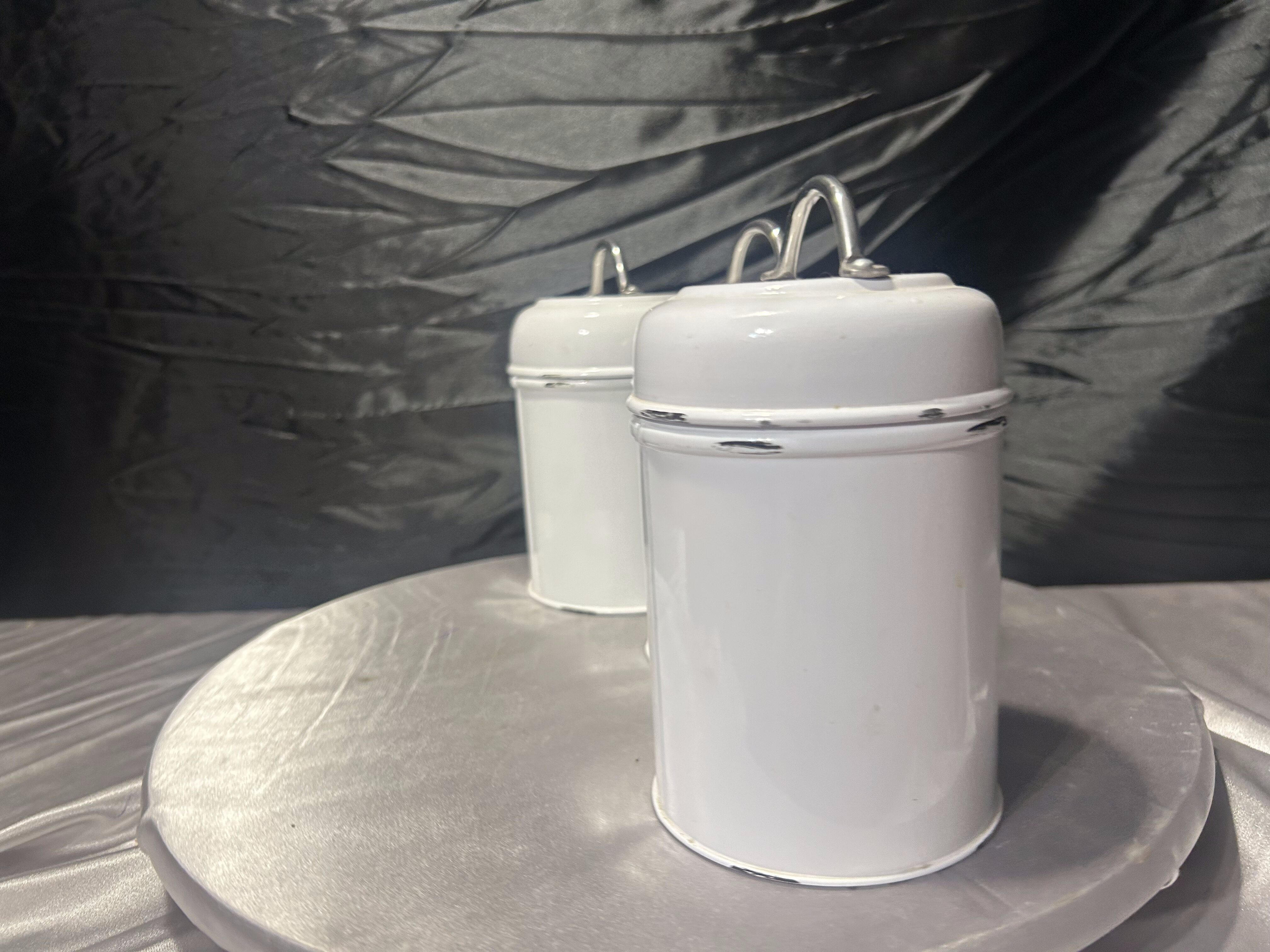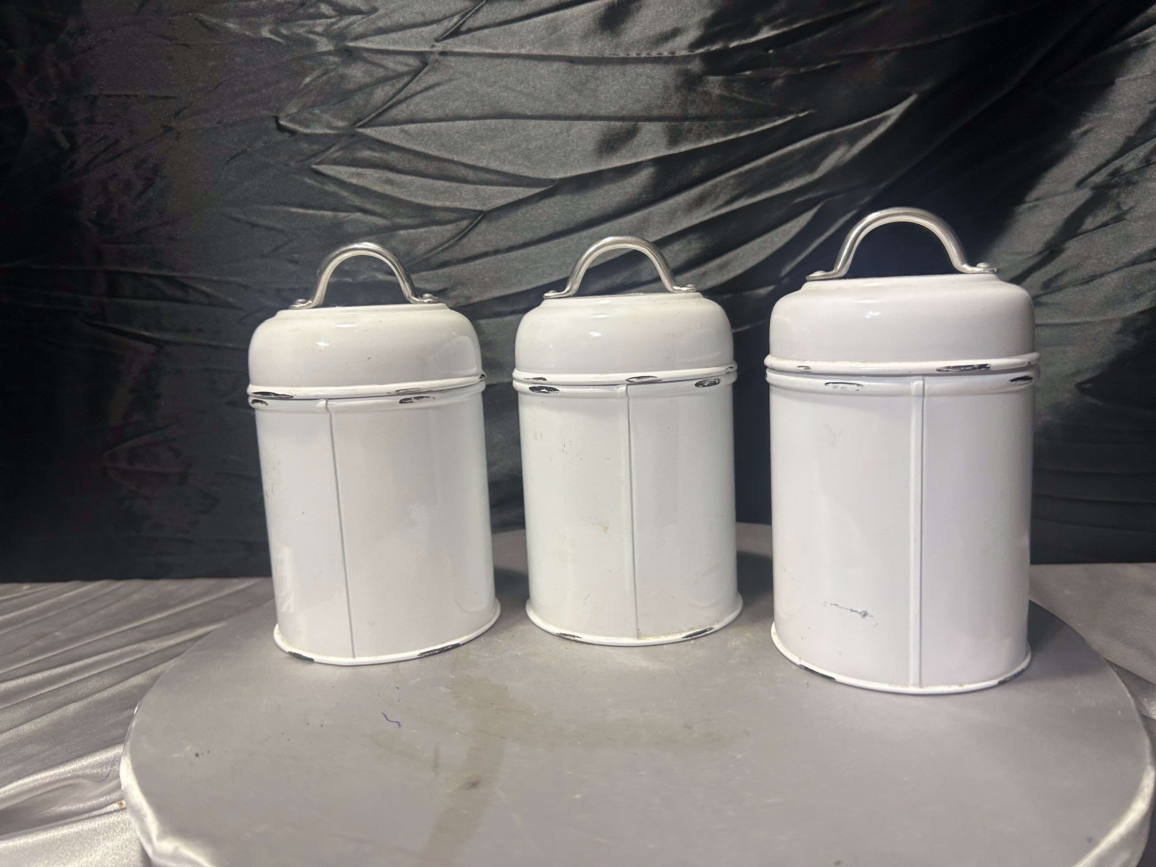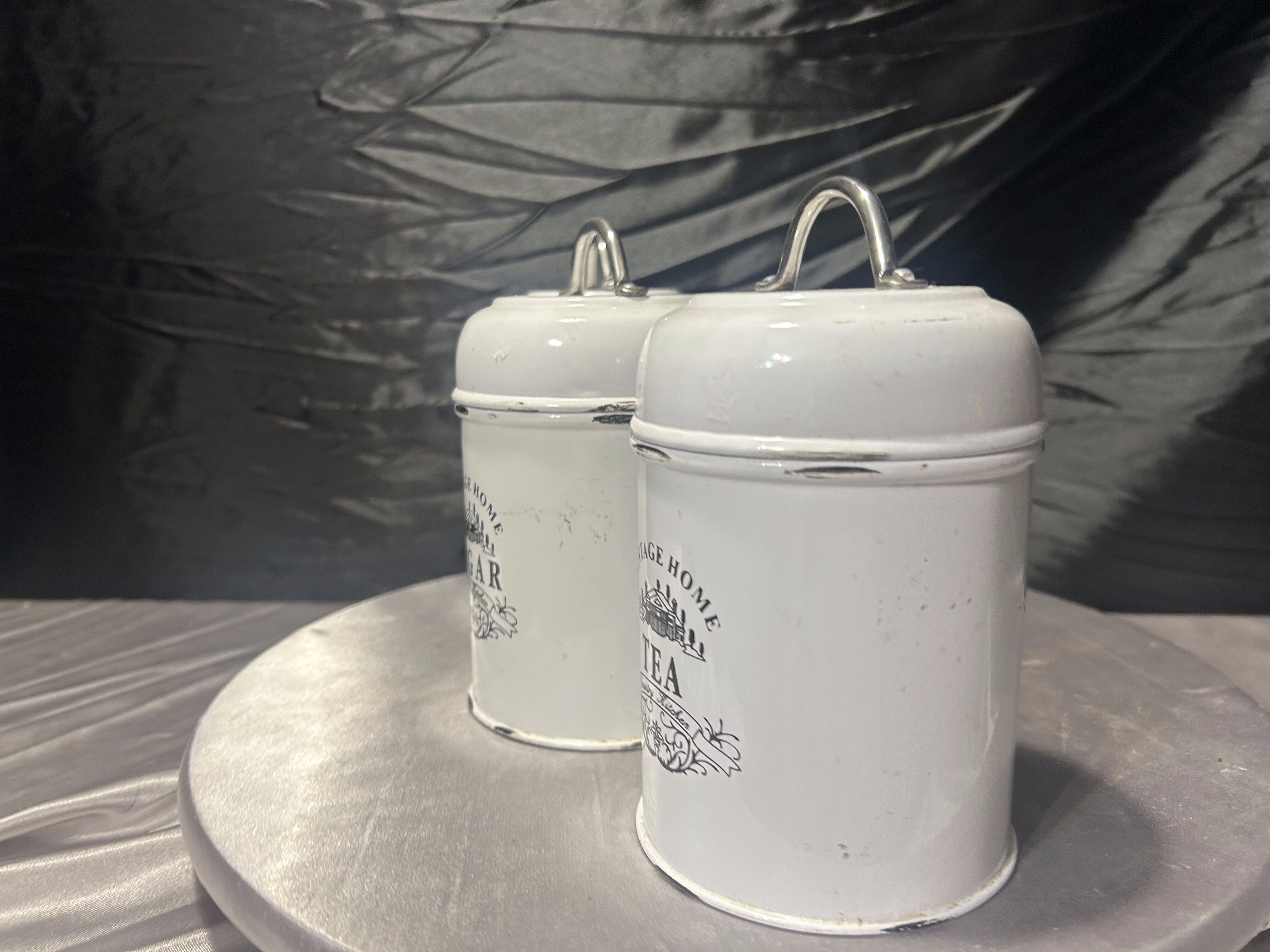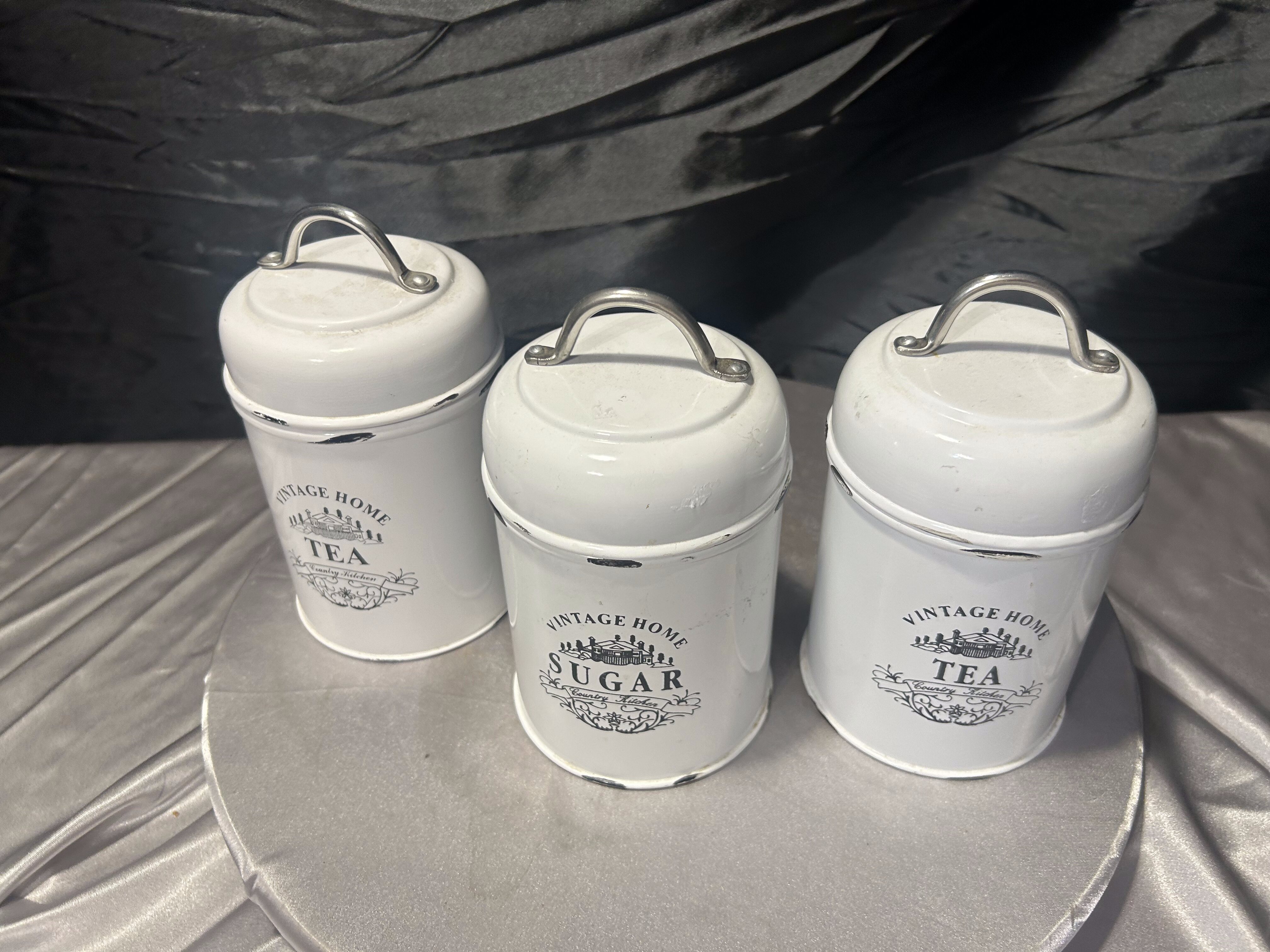 Metalowe pojemniki kuchenne Tea i Sugar komplet 3 sztuki styl vintage biały