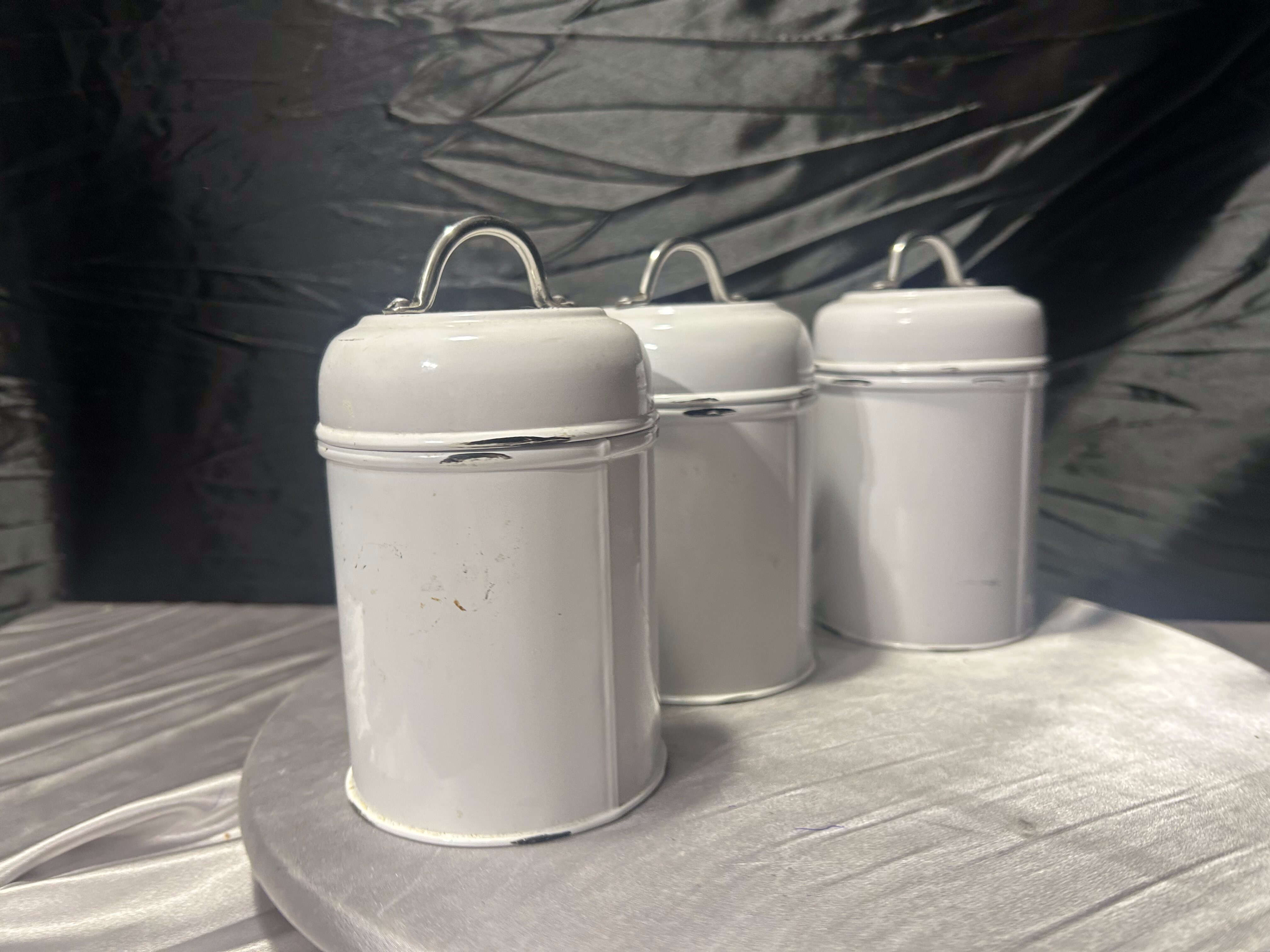 komplet trzech pojemników z metalowymi pokrywkami