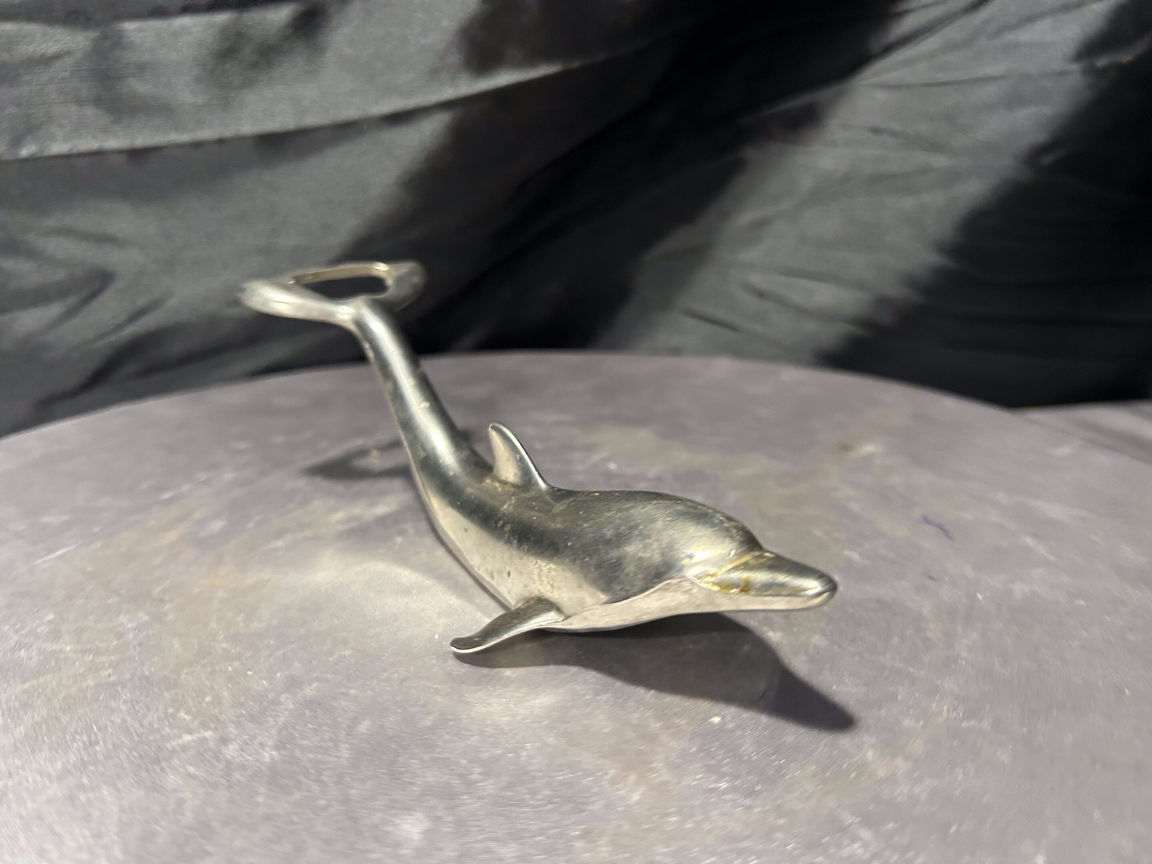 Metalowy delfin – podwójny otwieracz do butelek – dekoracyjna forma