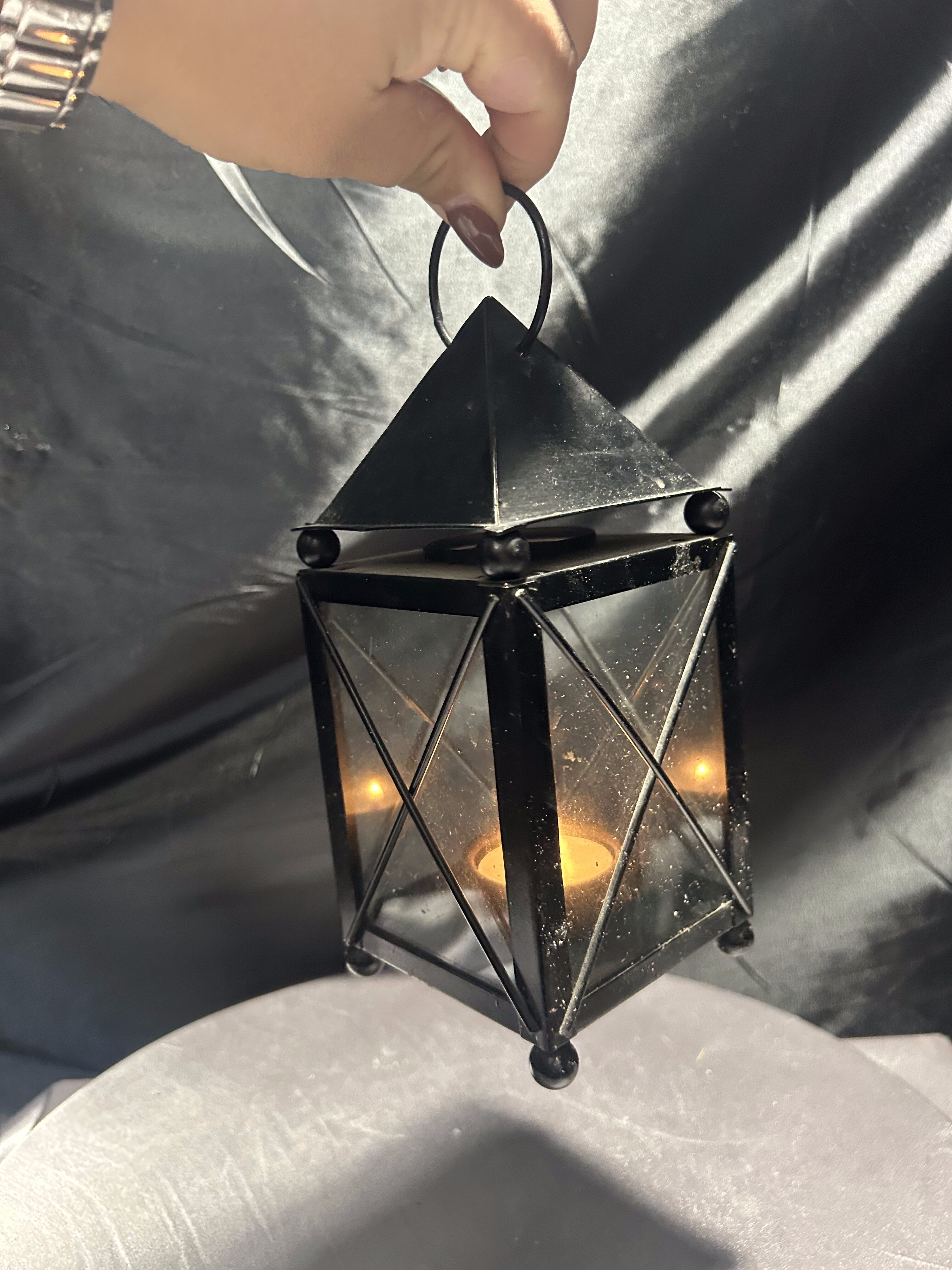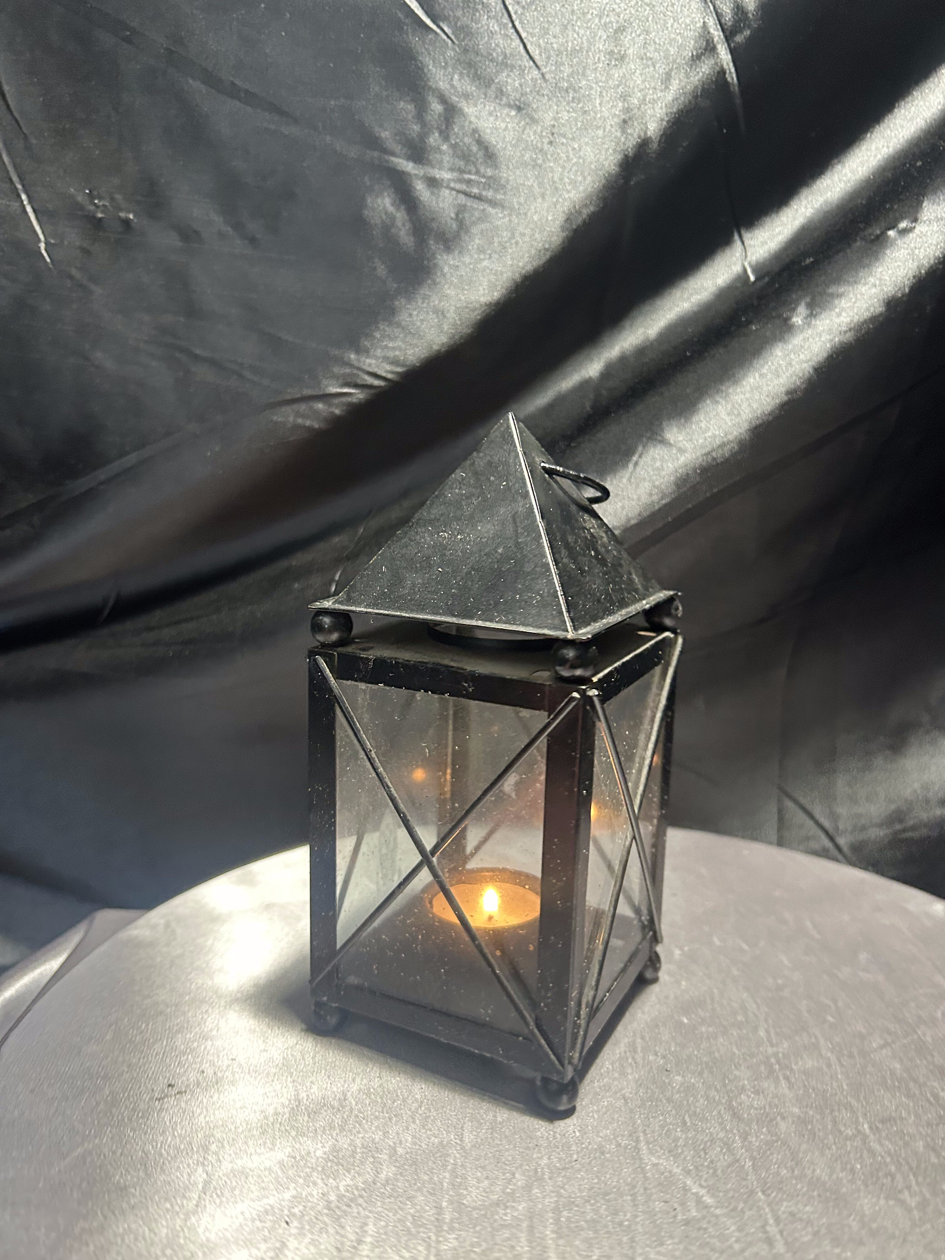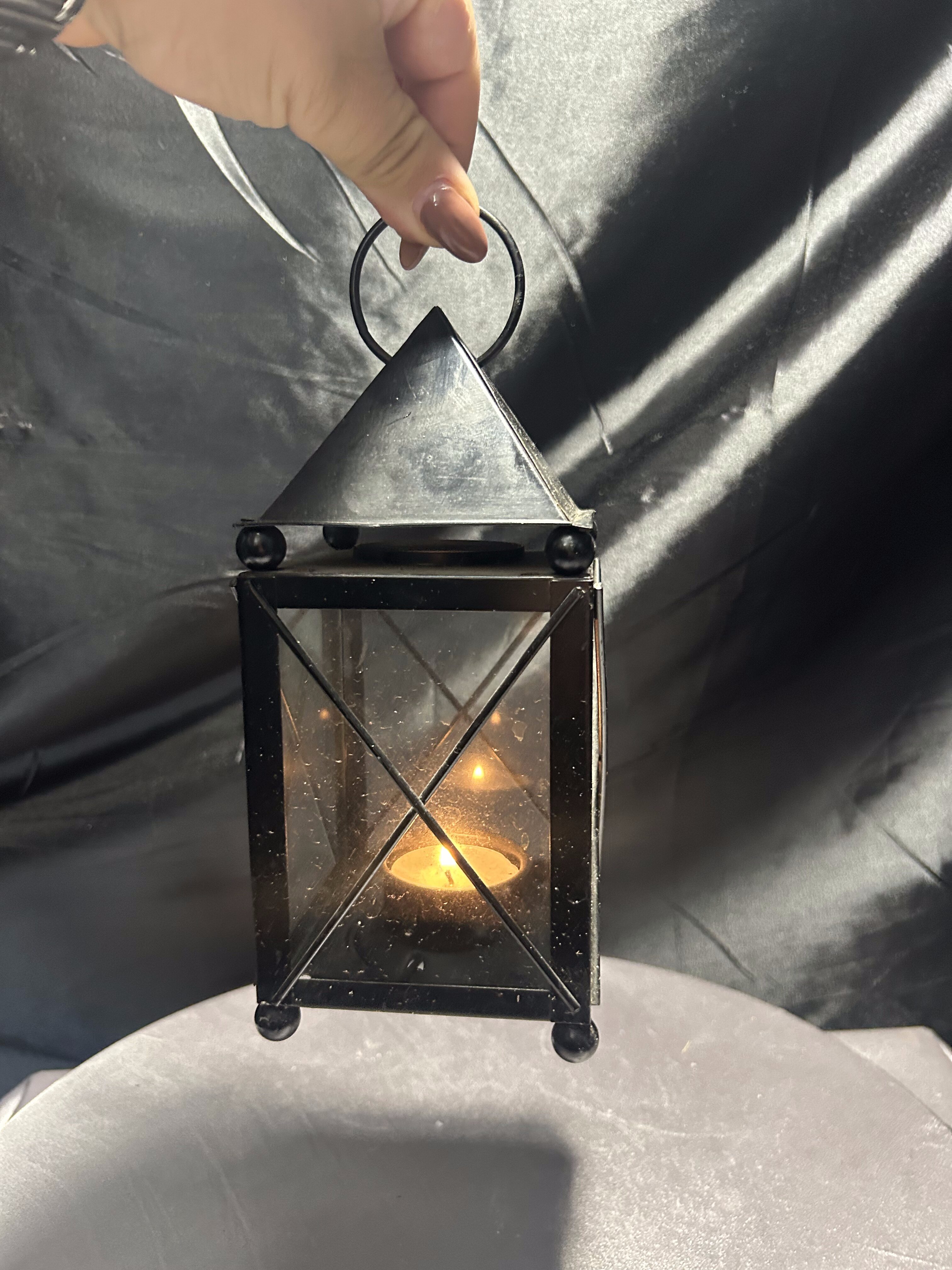 - Metalowy lampion na tealight – czarny – do powieszenia