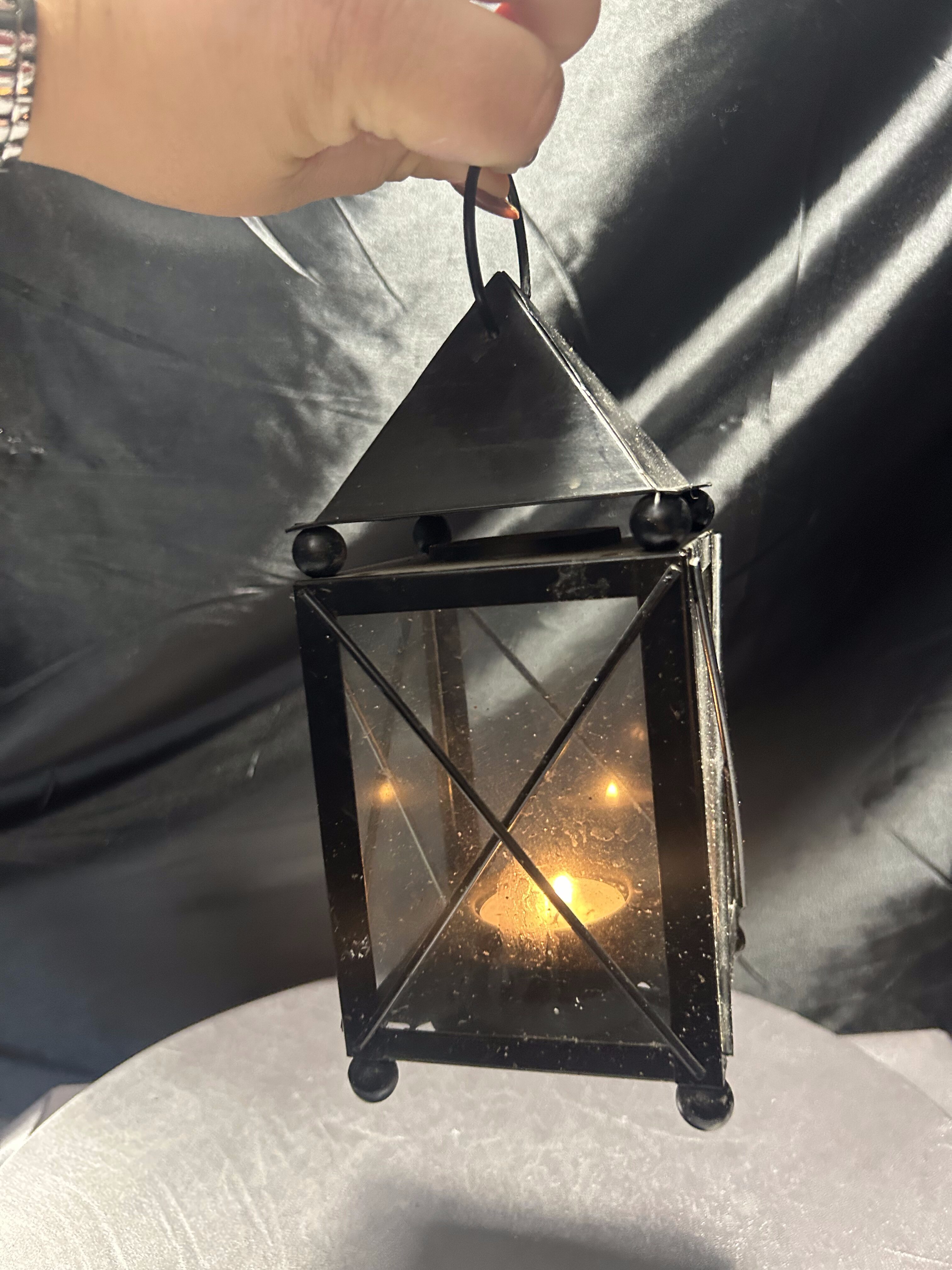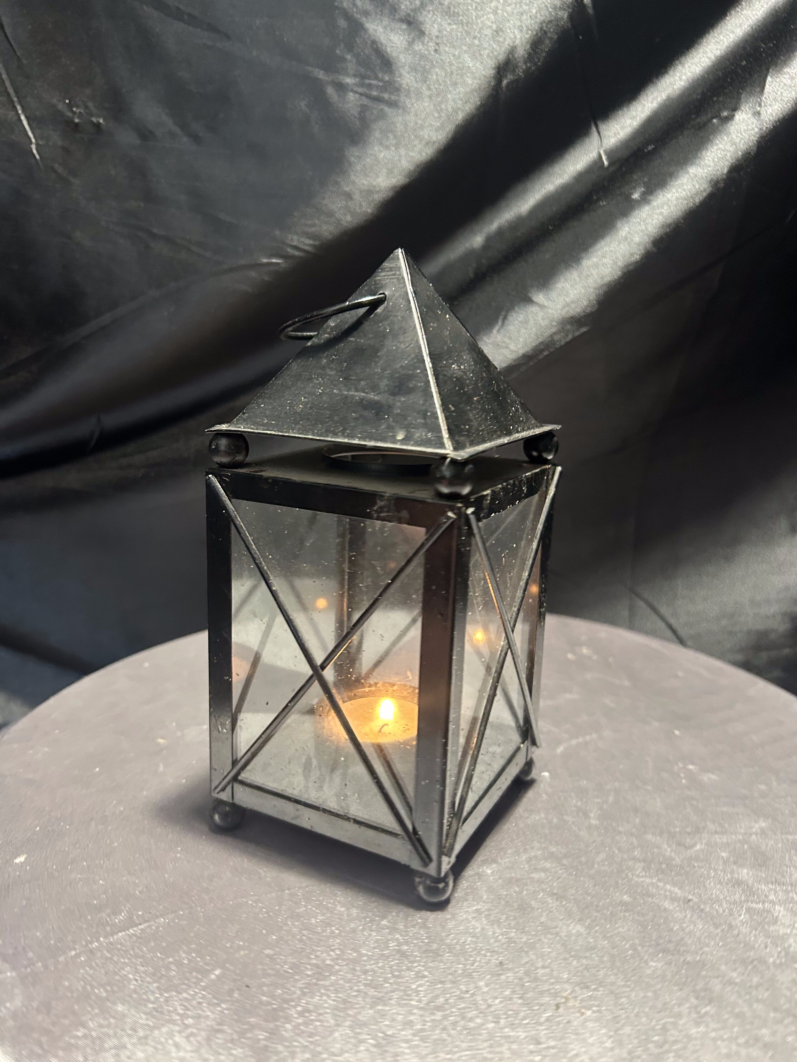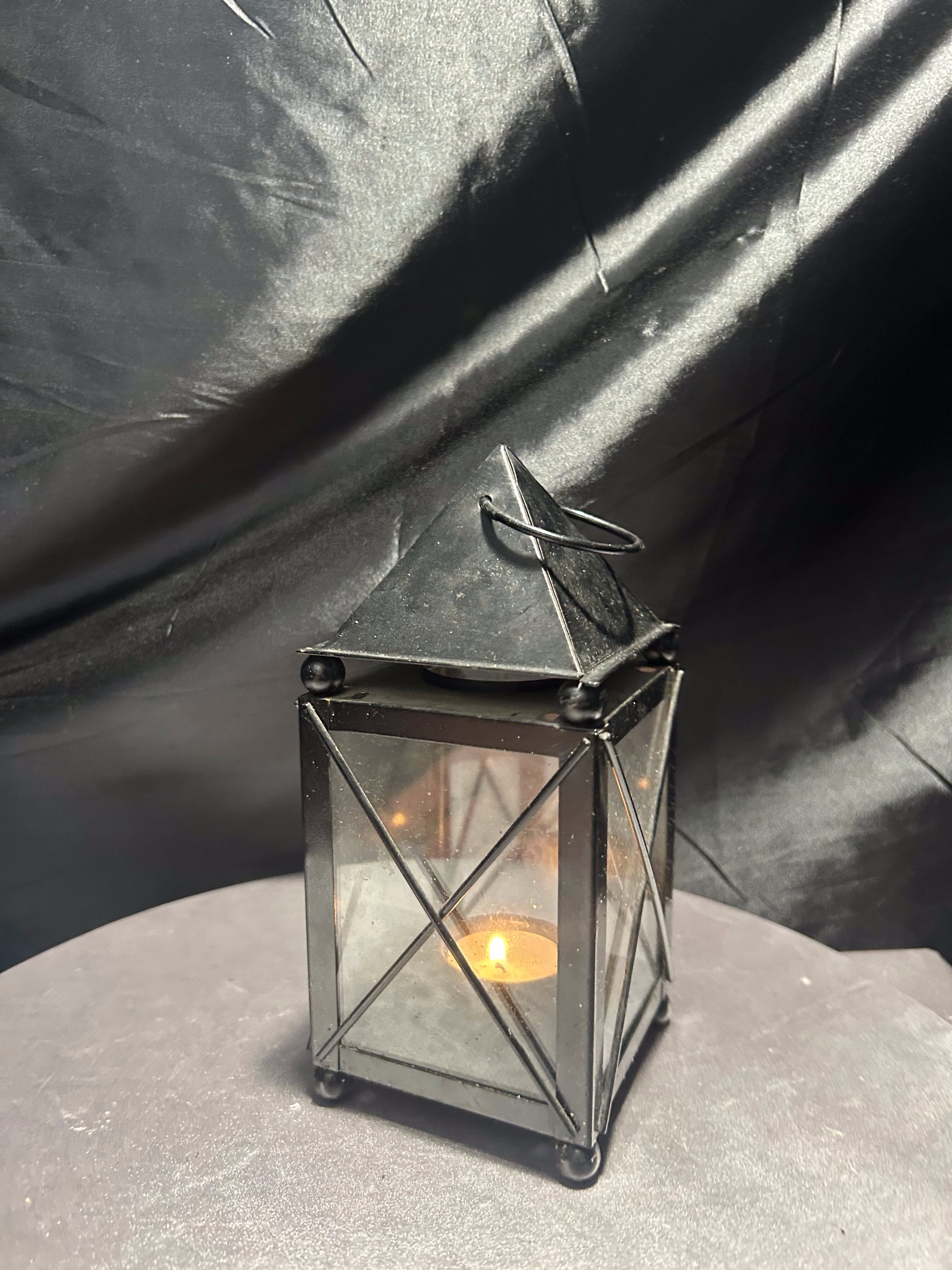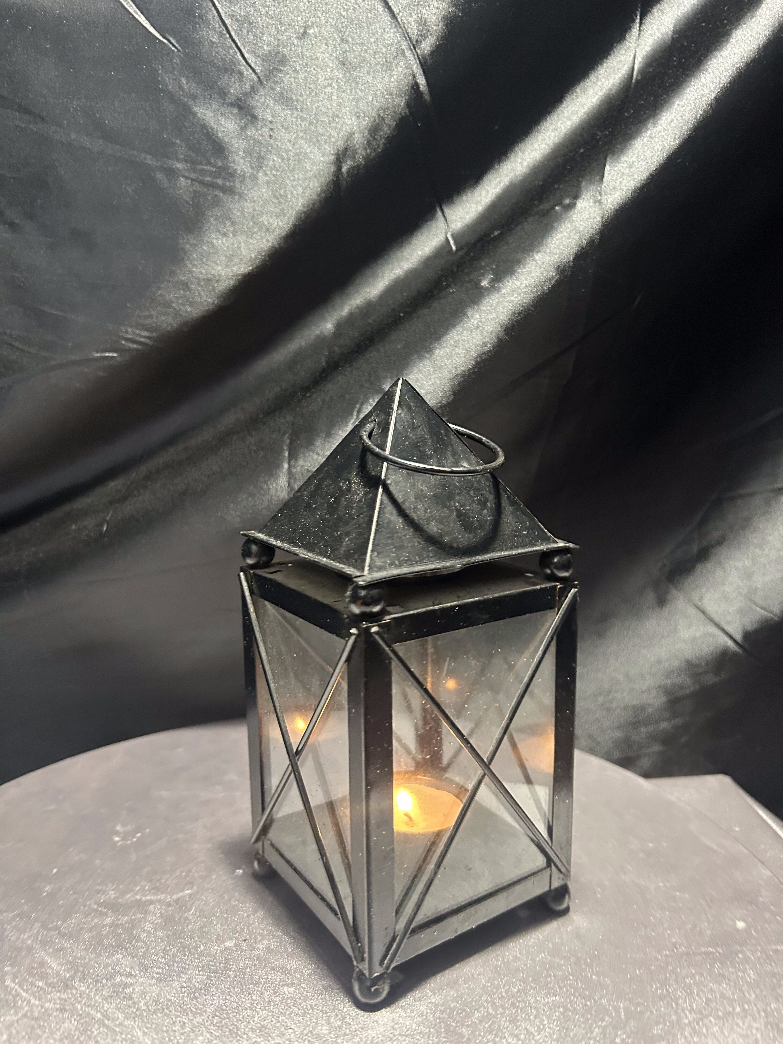 - Metalowy lampion na tealight – czarny – do powieszenia