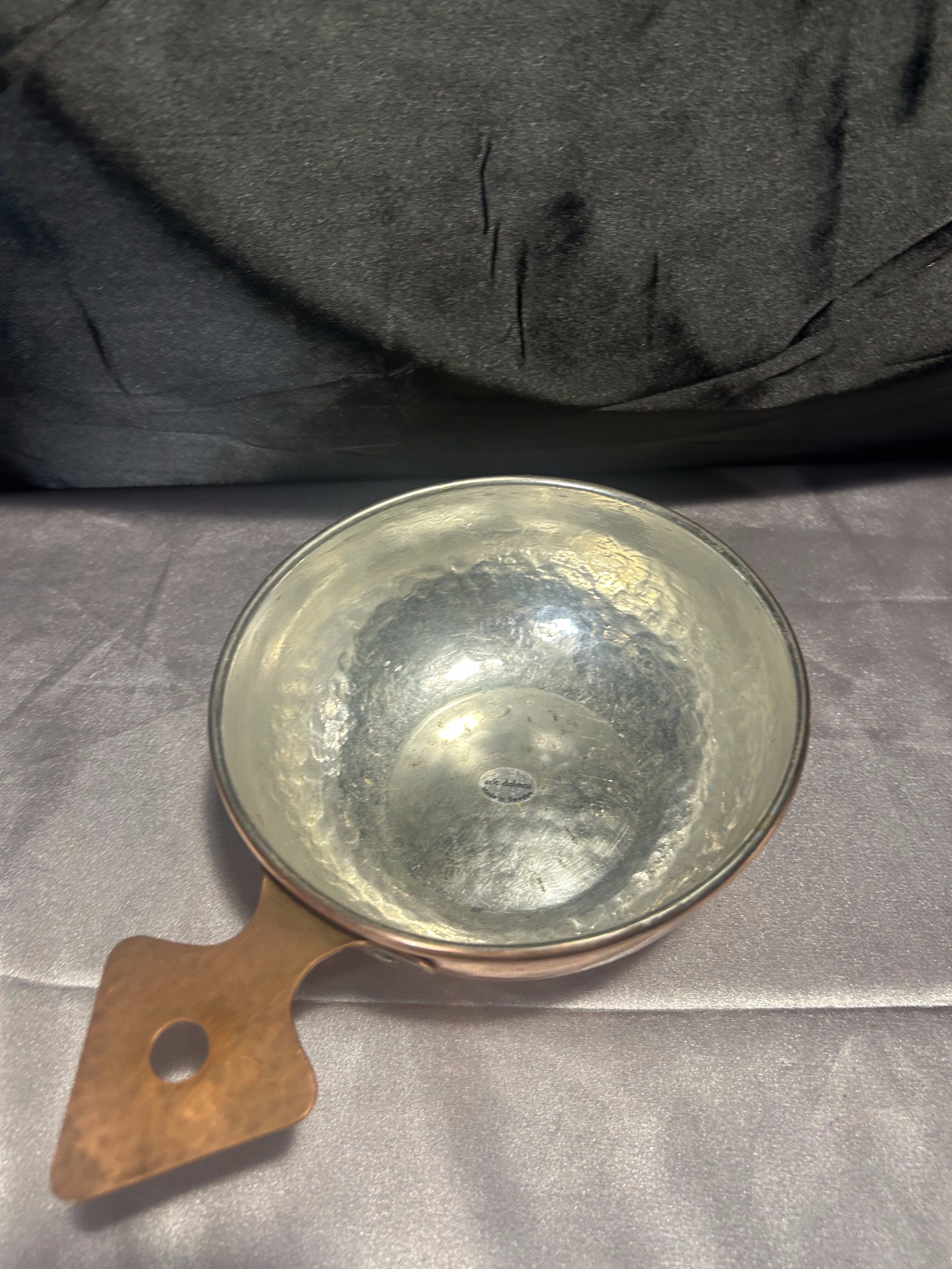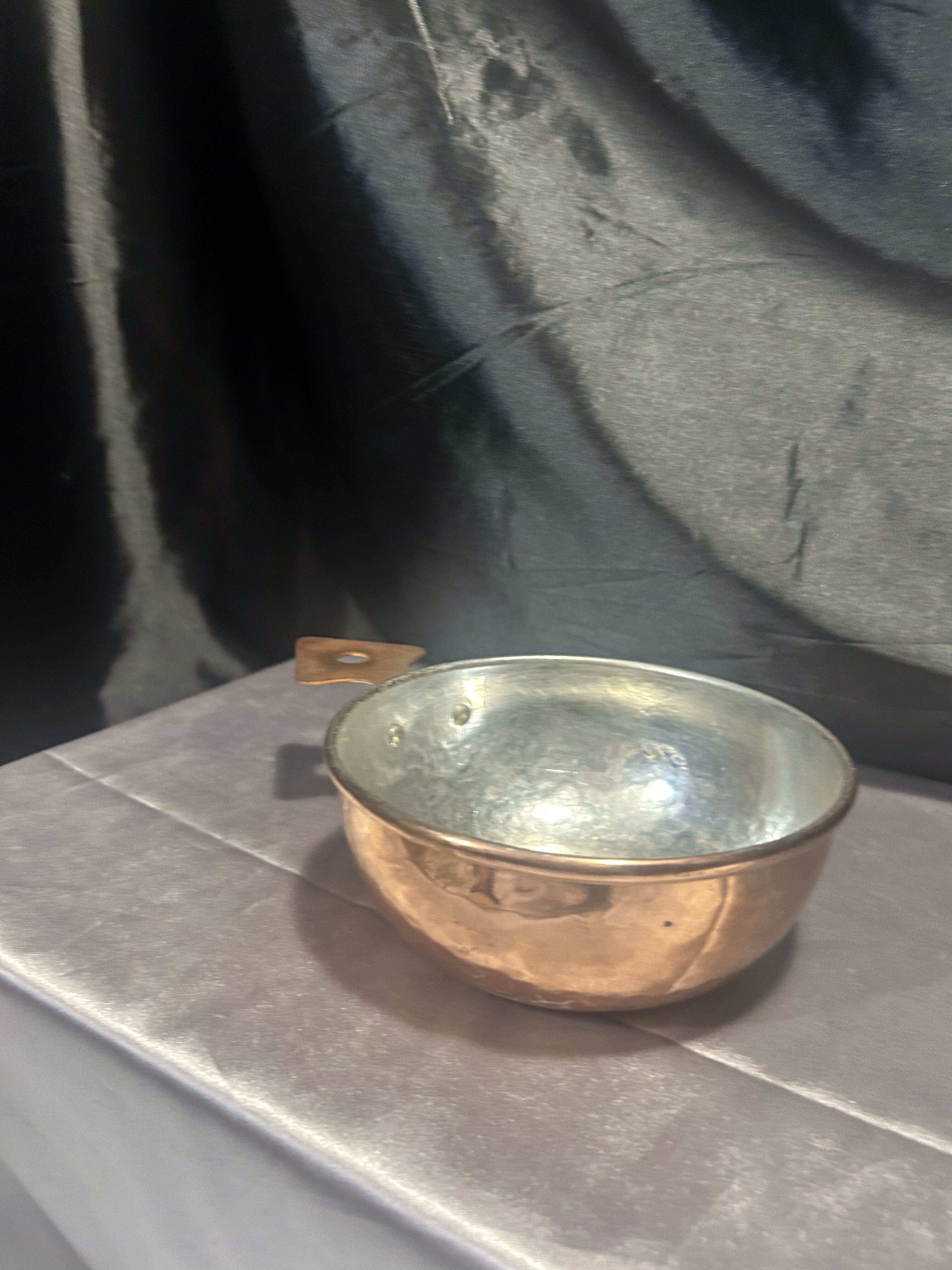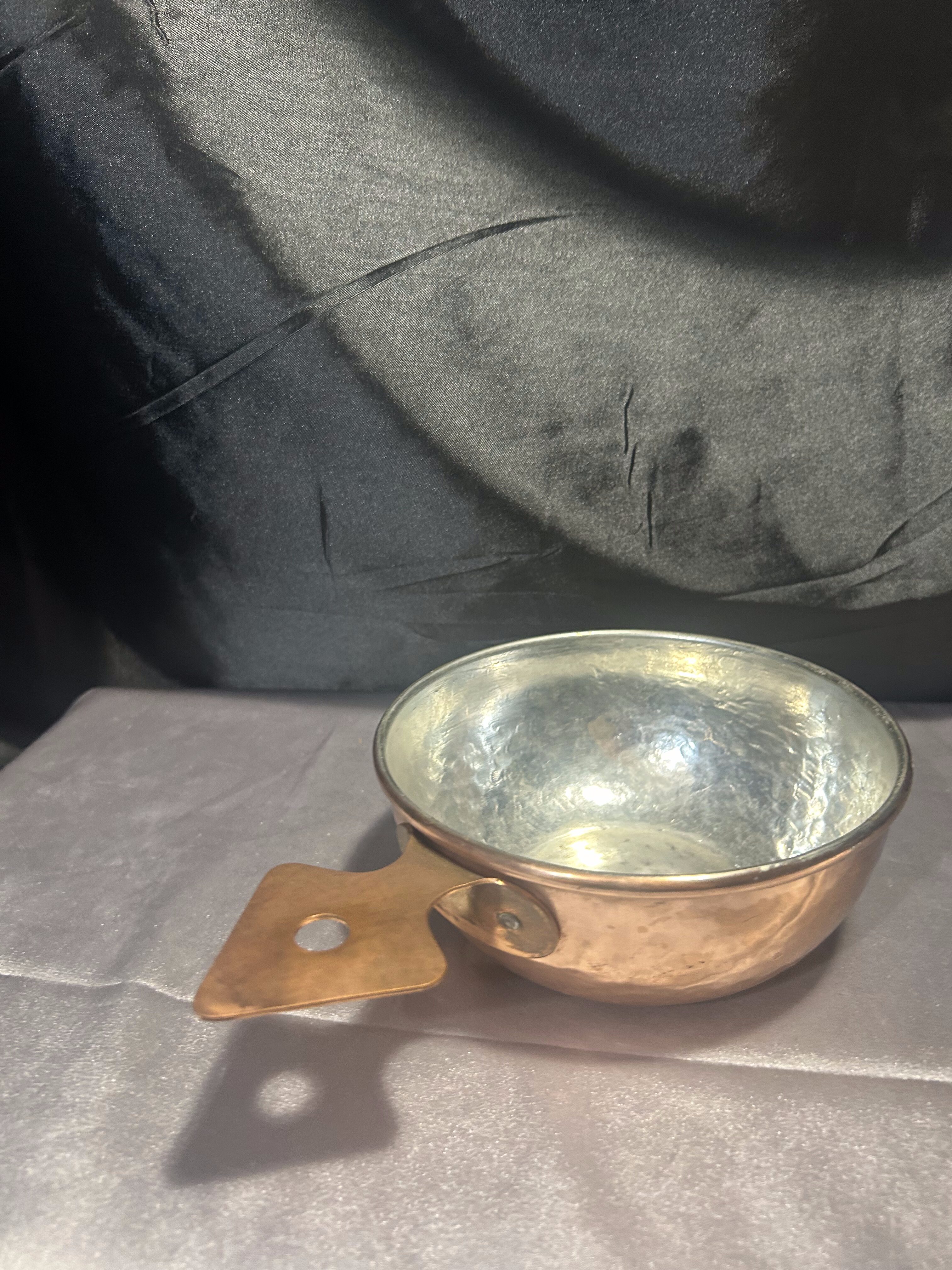 Miedziana chochla / rondel – Kuta rączka w kształcie strzałki – Dekoracyjny akcent