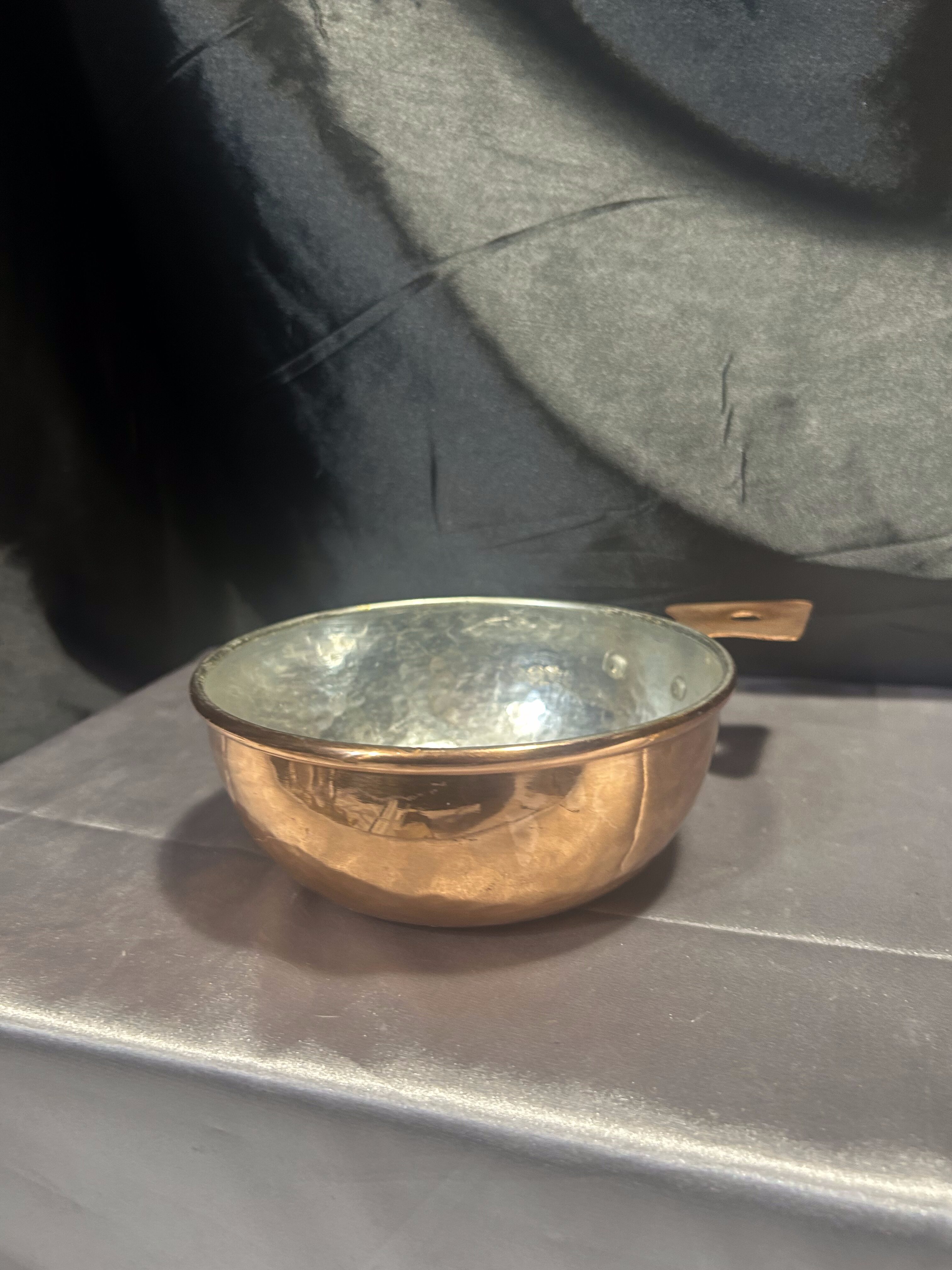 Miedziana chochla / rondel – Kuta rączka – Styl rustykalny