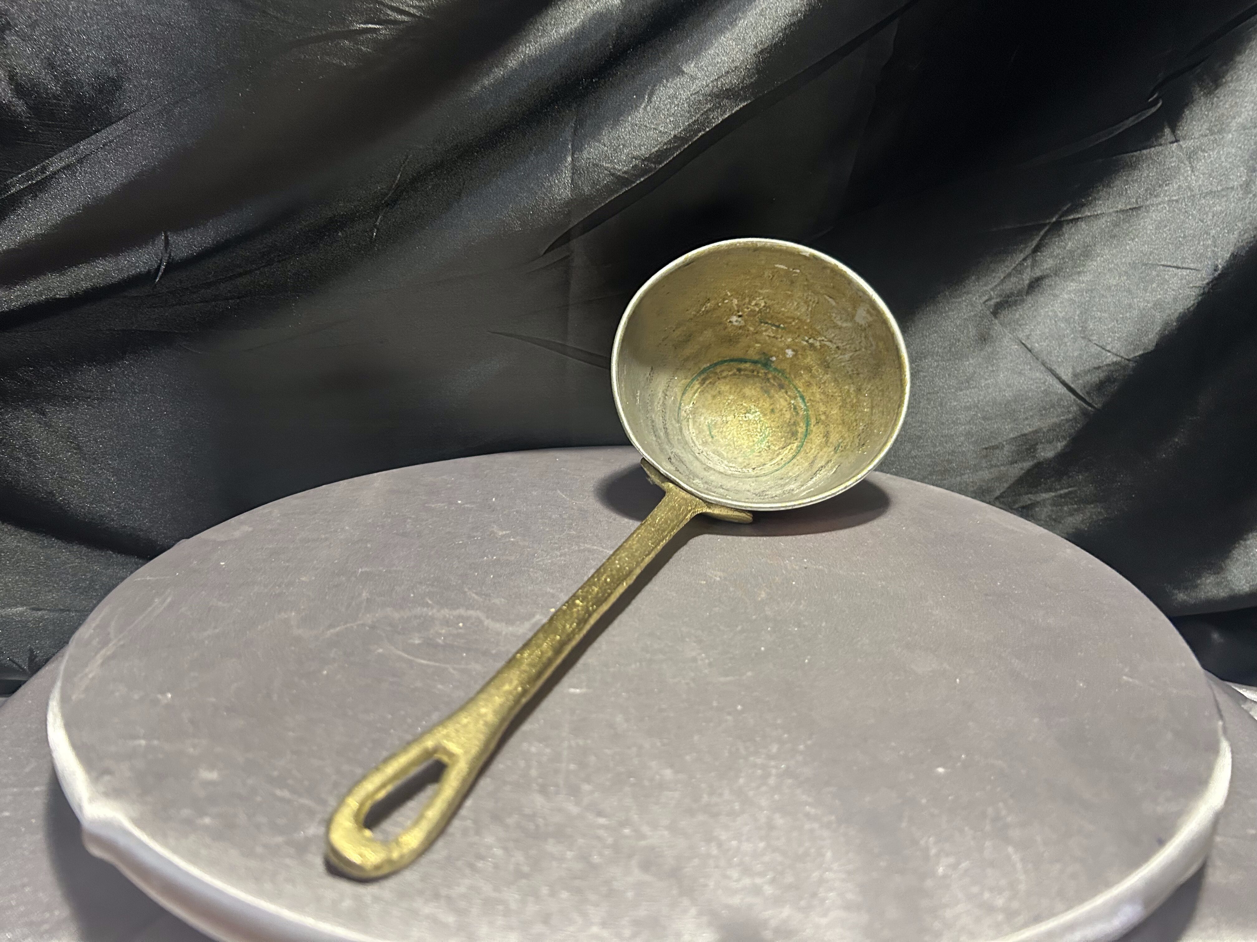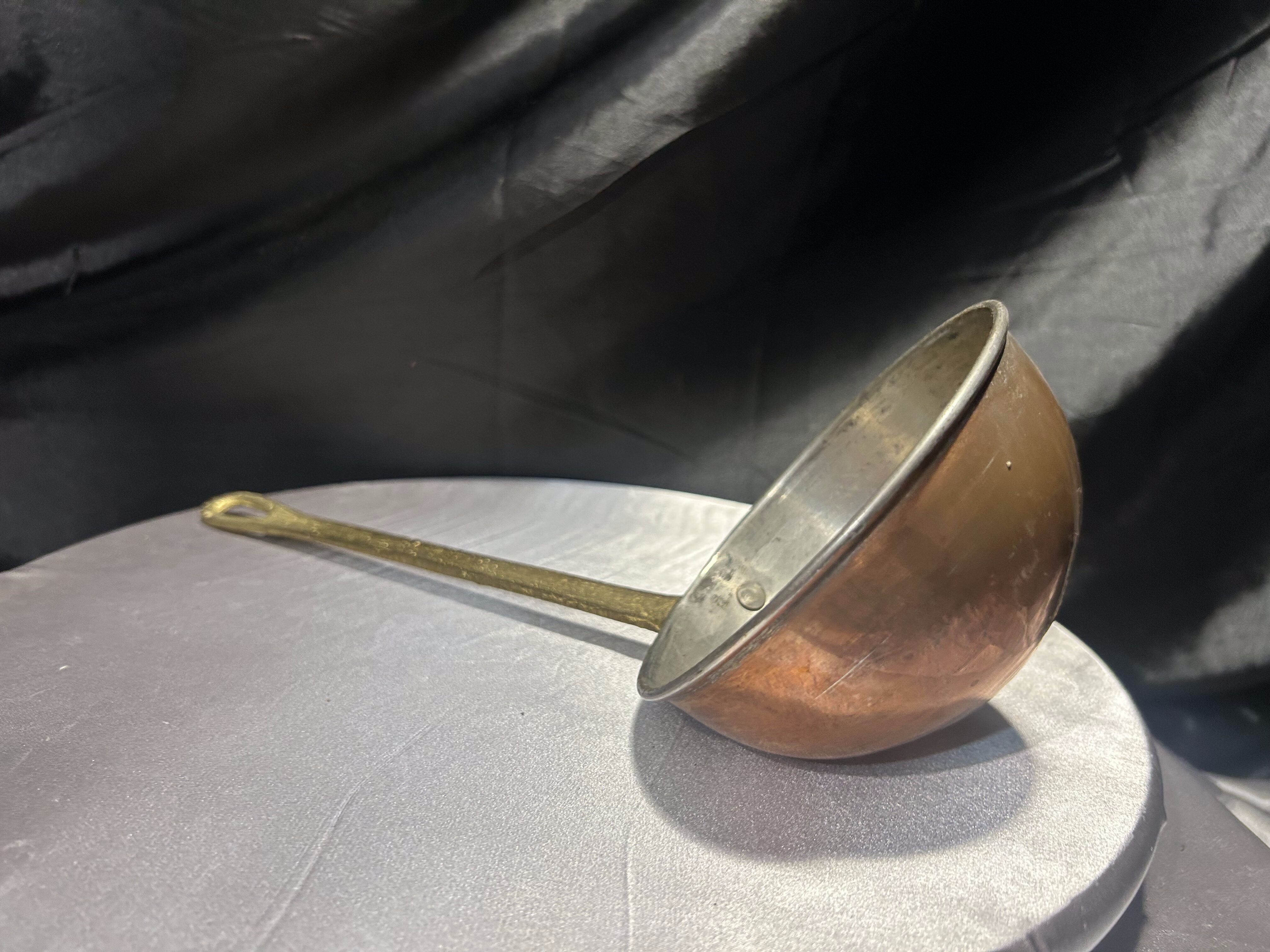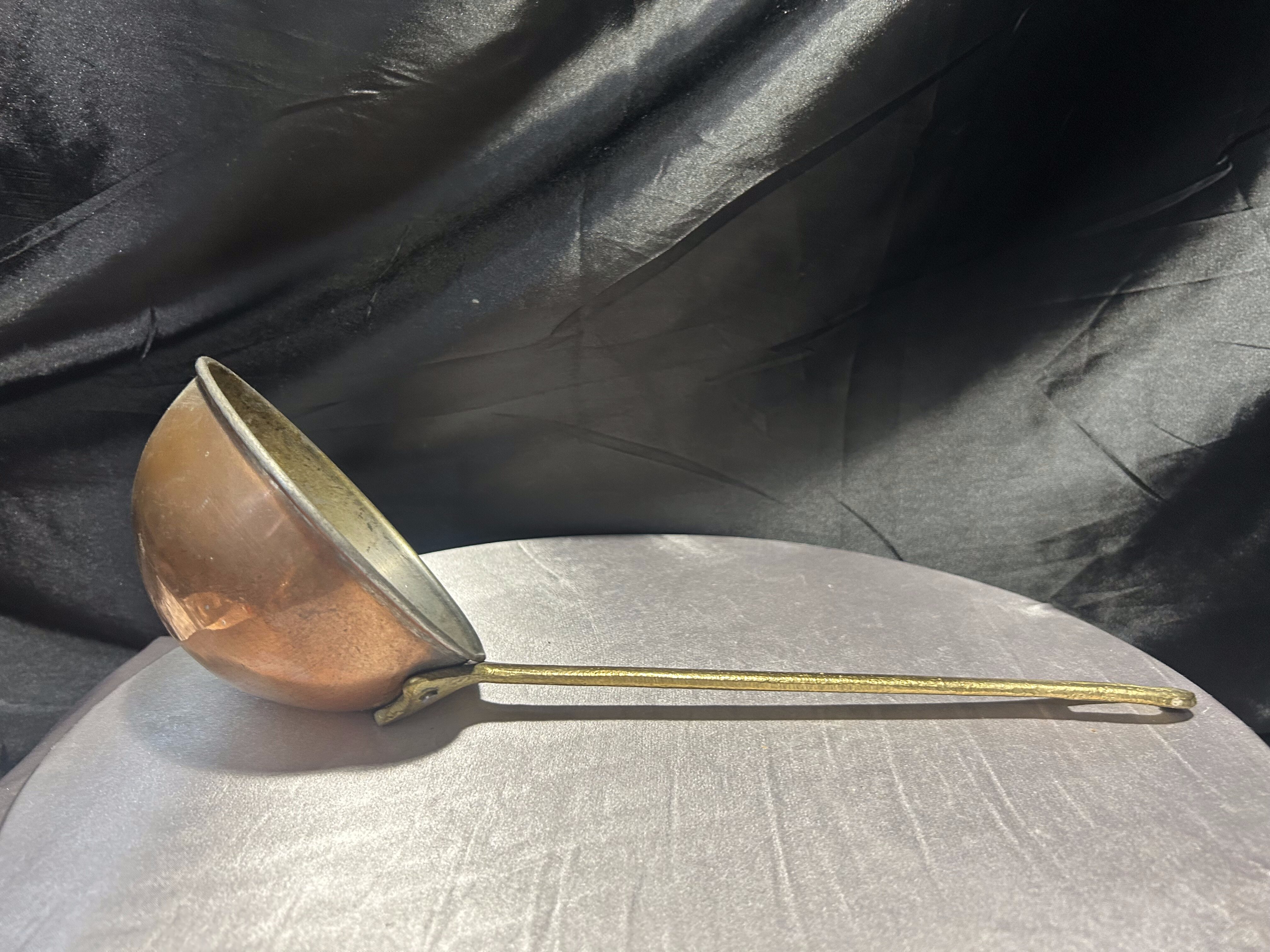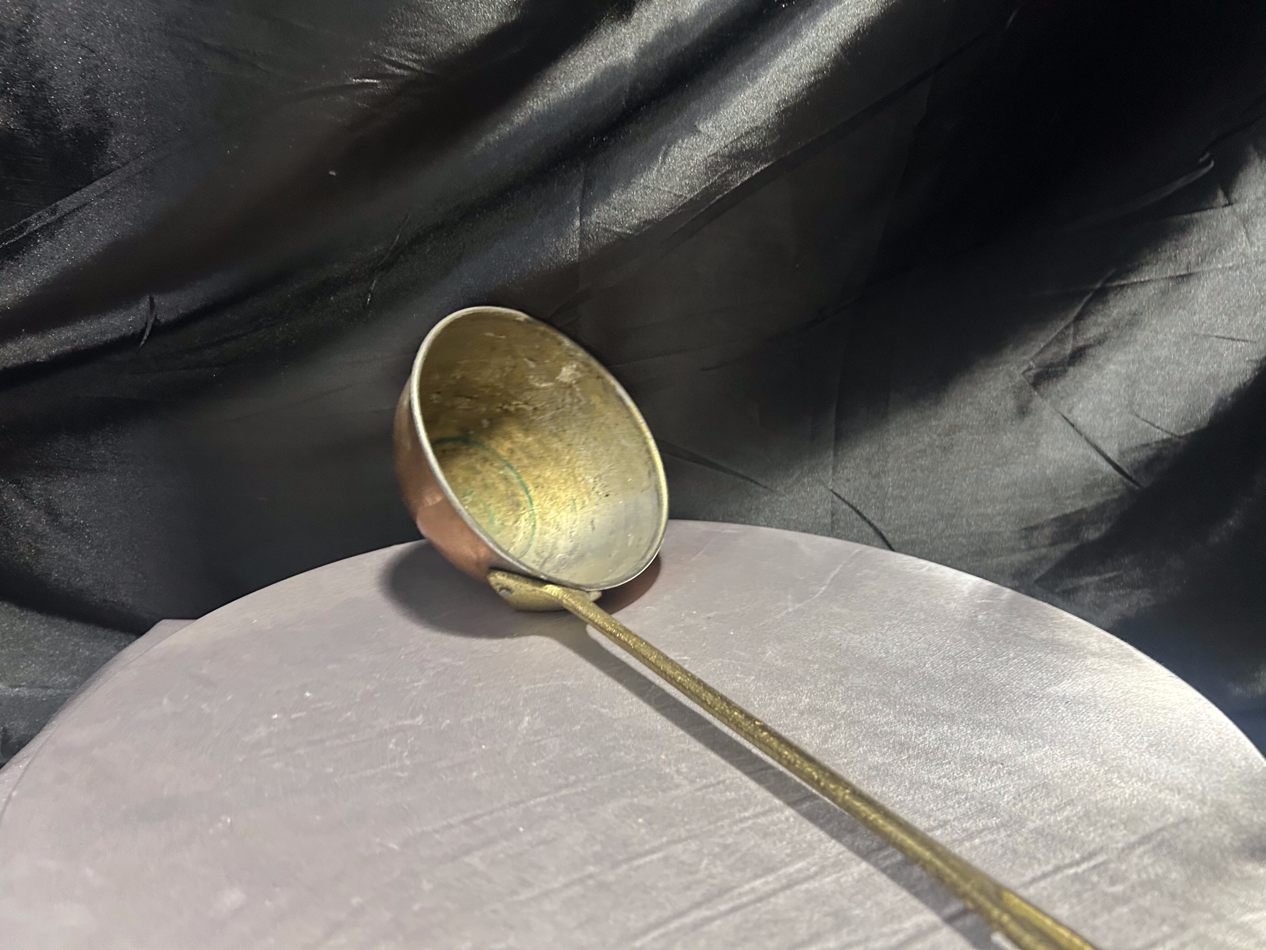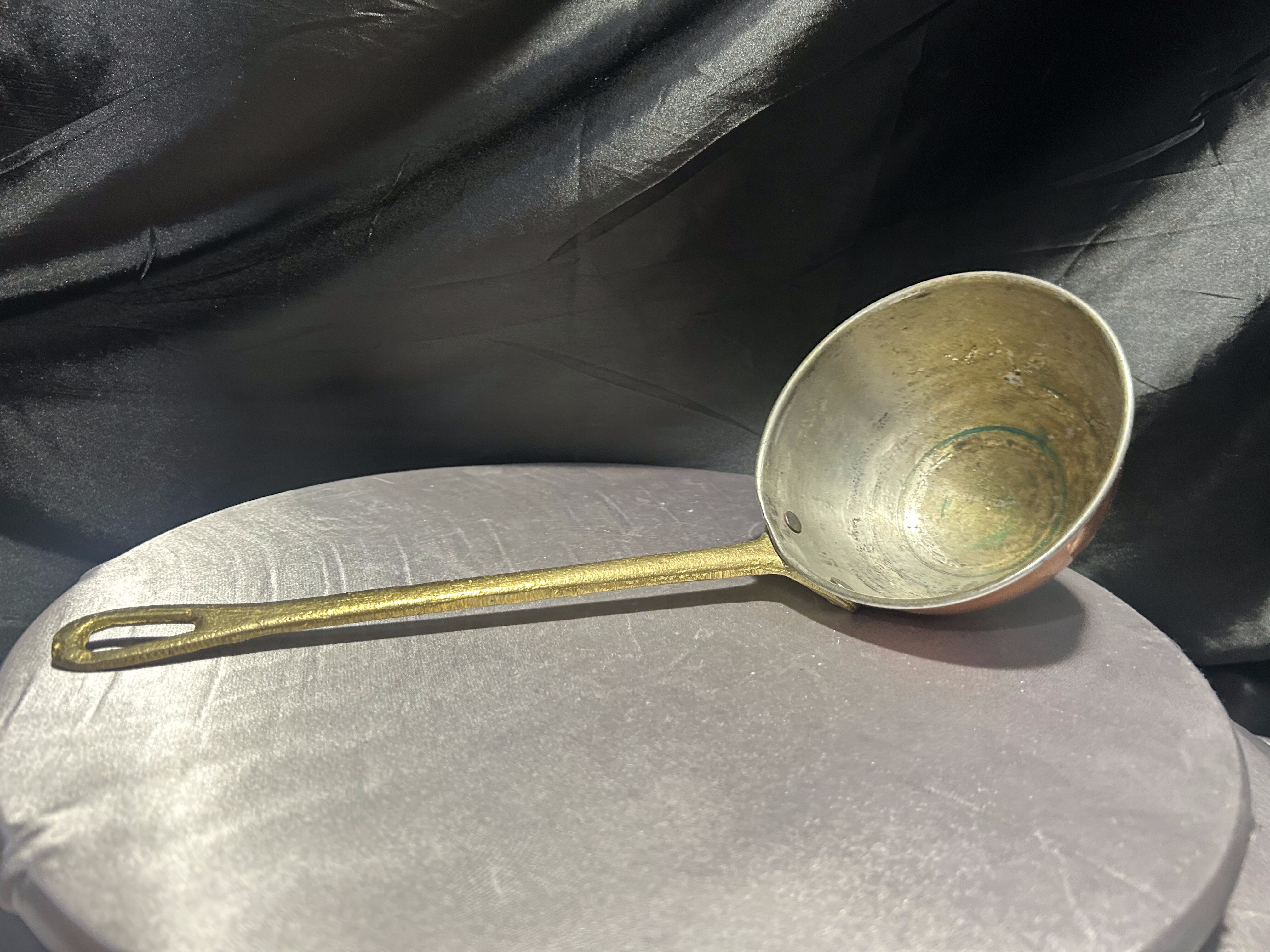 Duża miedziana chochla – Długa kuta rączka – Styl rustykalny