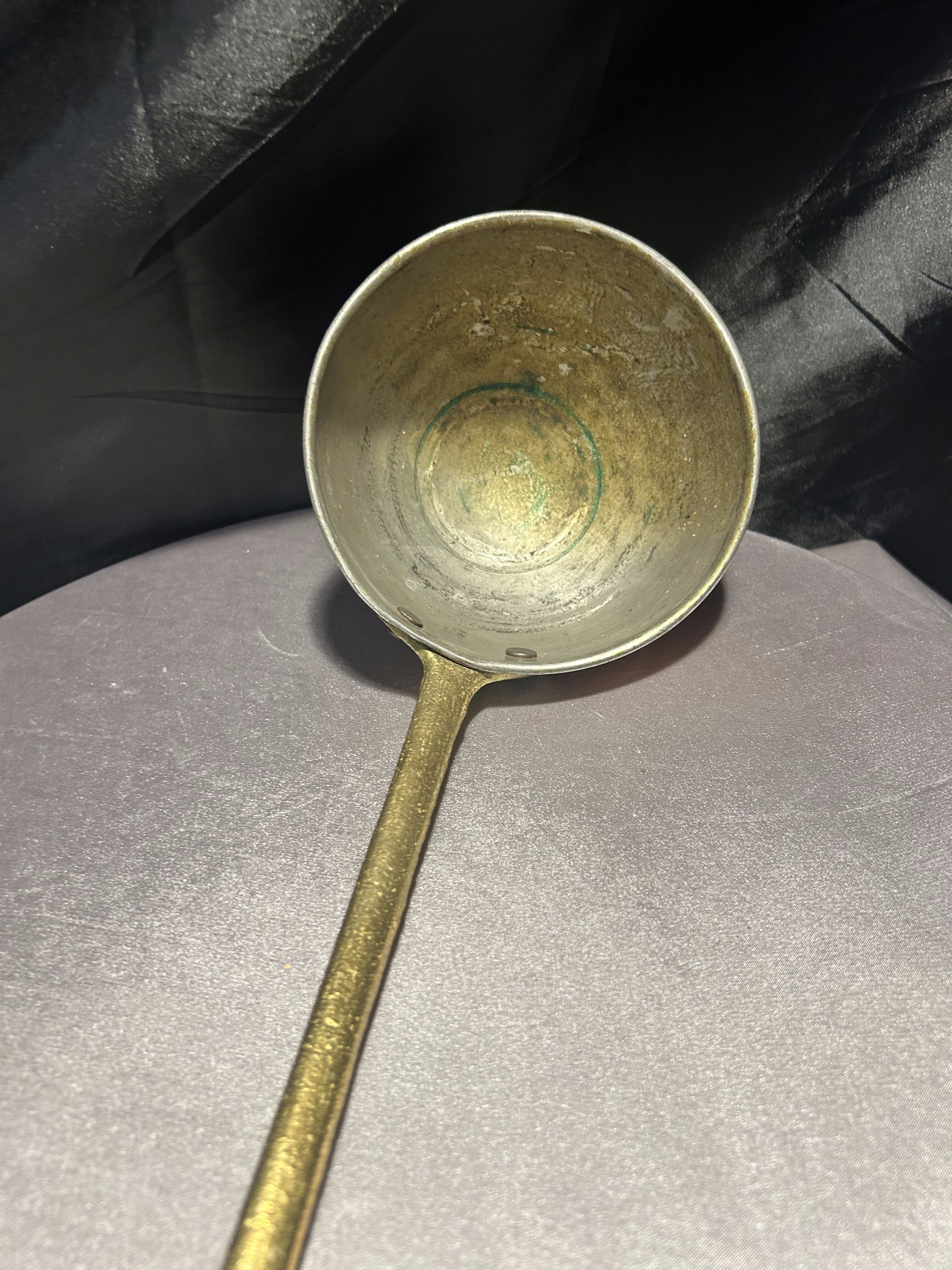 Miedziana łyżka cedzakowa – Kuta rączka – Styl rustykalny