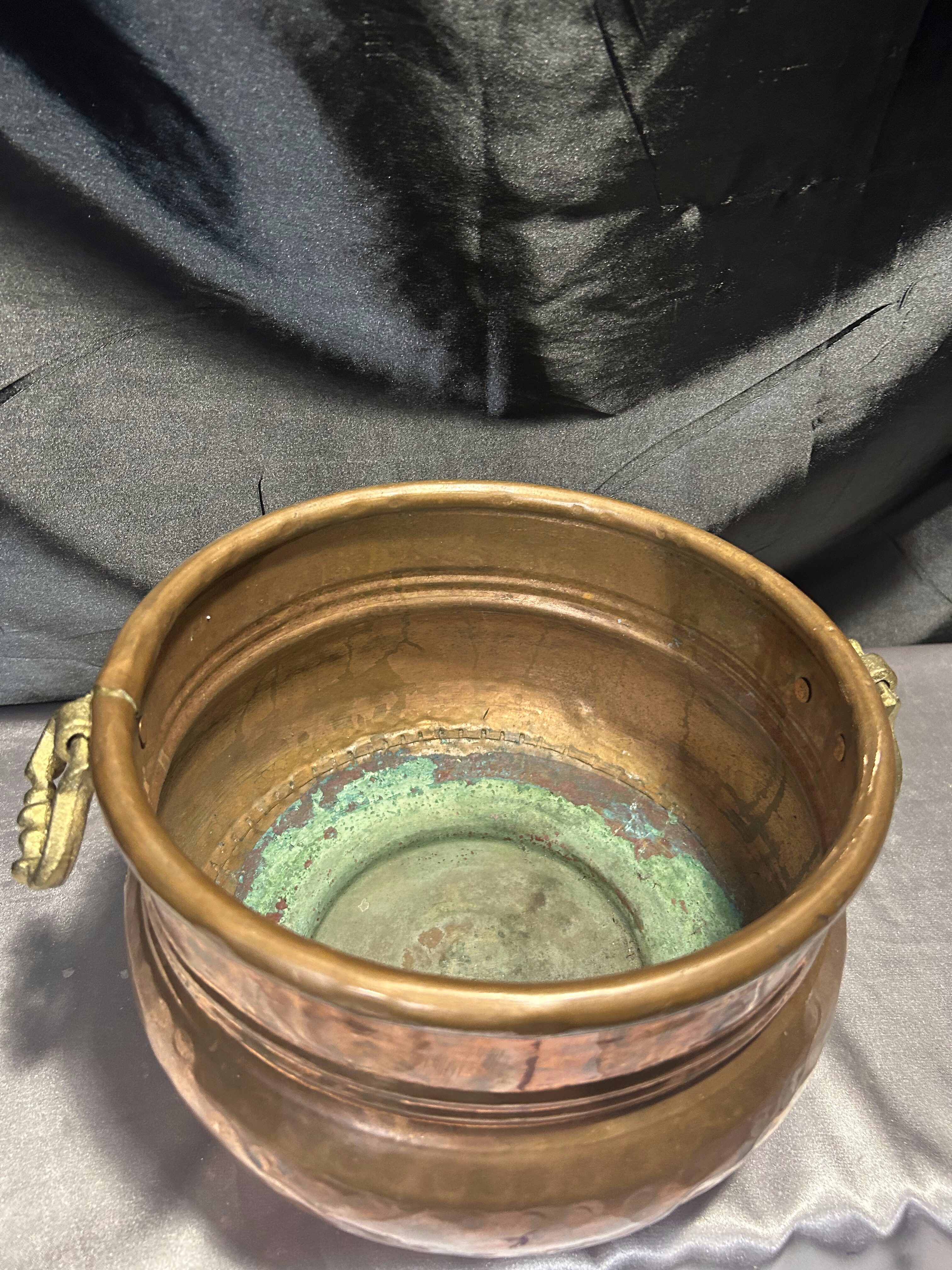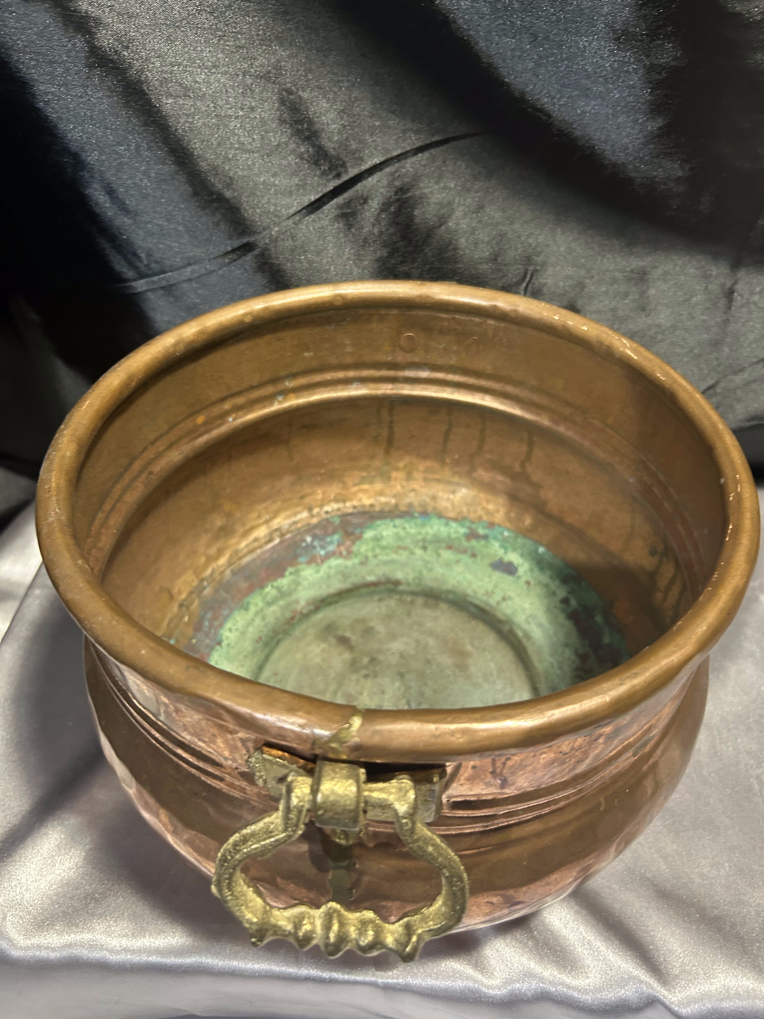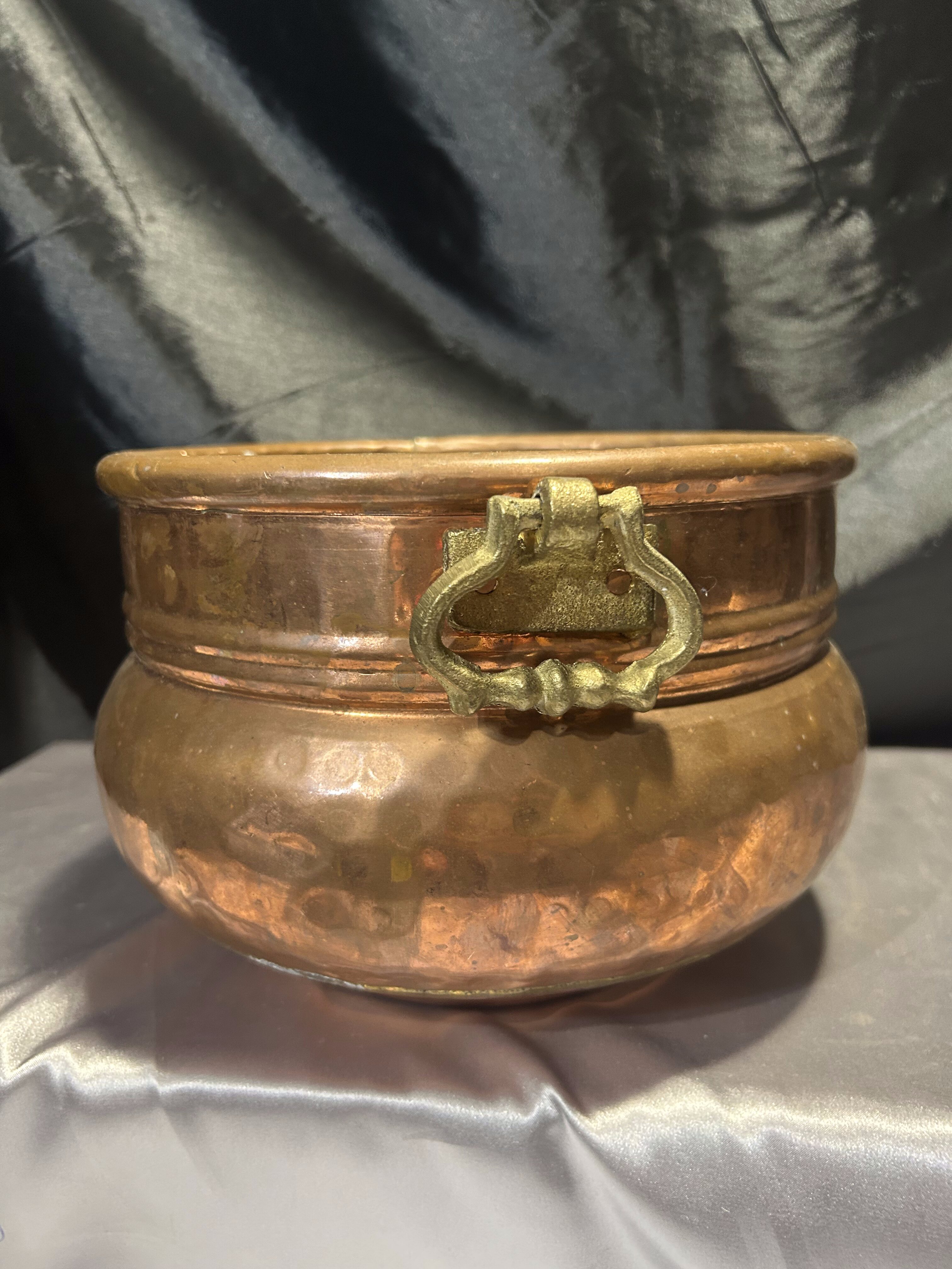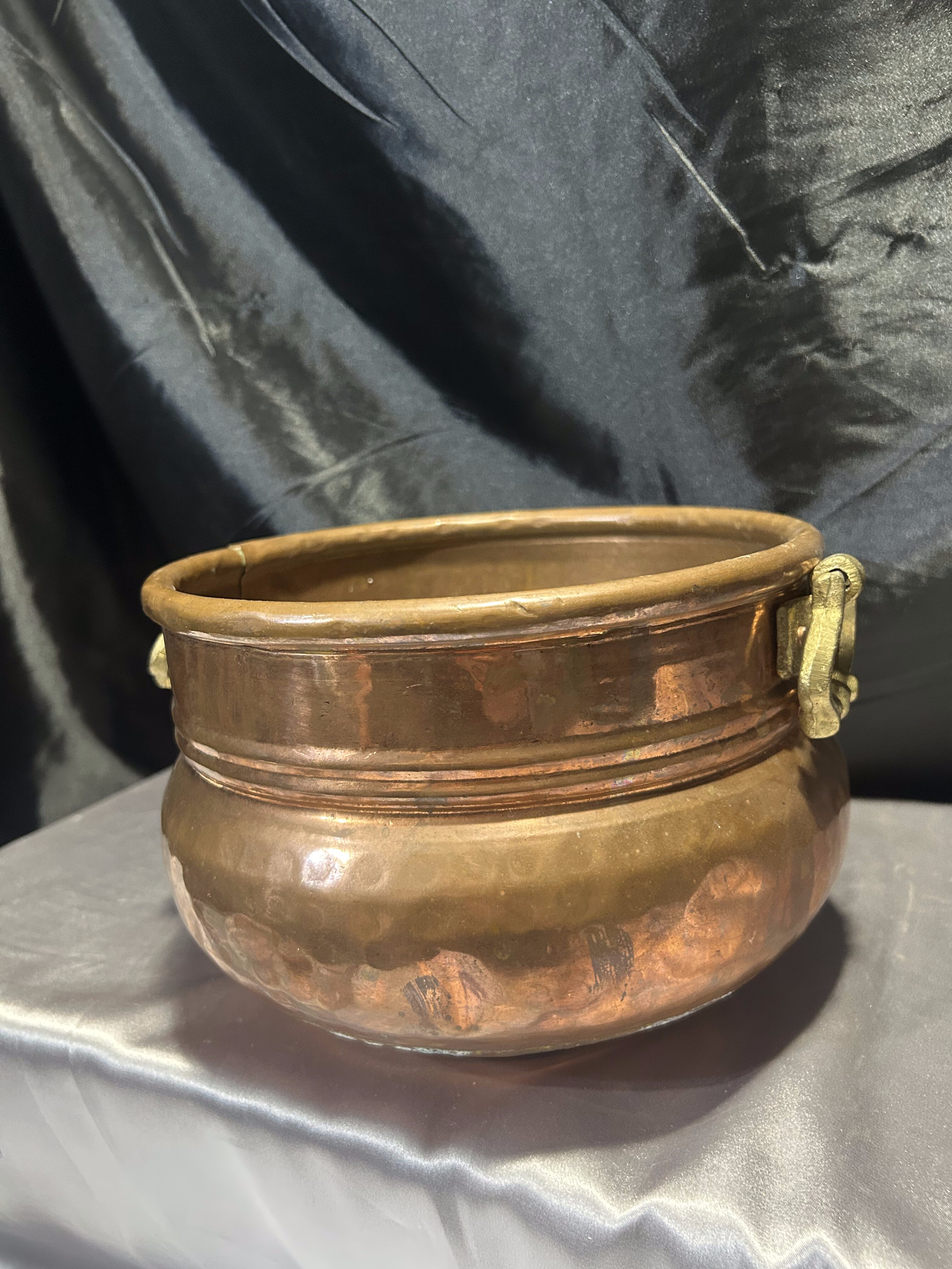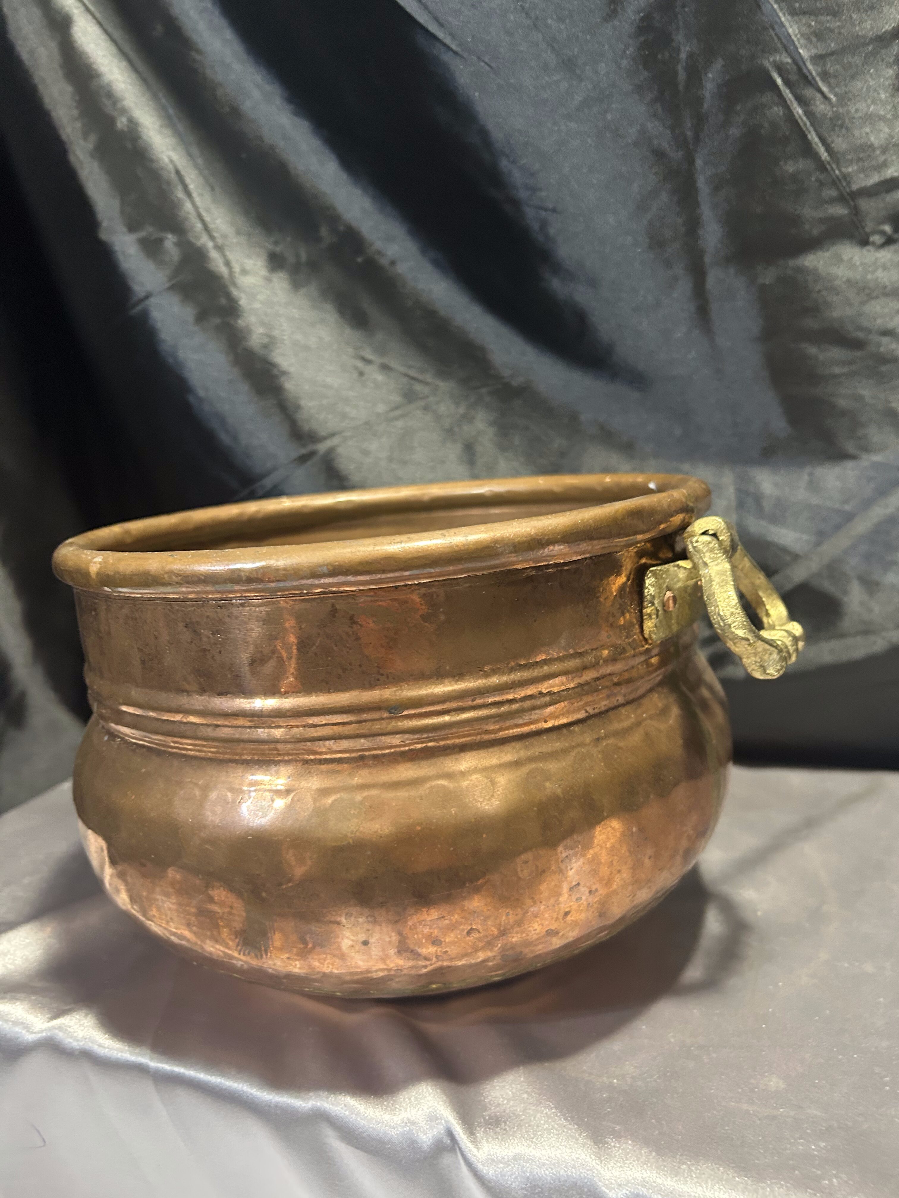 Na sprzedaż elegancka miedziana donica w formie dekoracyjnej misy, ozdobiona solidnymi mosiężnymi uchwytami. Stylowy design oraz klasyczne połączenie miedzi i mosiądzu nadają jej unikatowego charakteru. Doskonale sprawdzi się jako osłonka na rośliny, dekoracyjna misa lub pojemnik na drobiazgi.