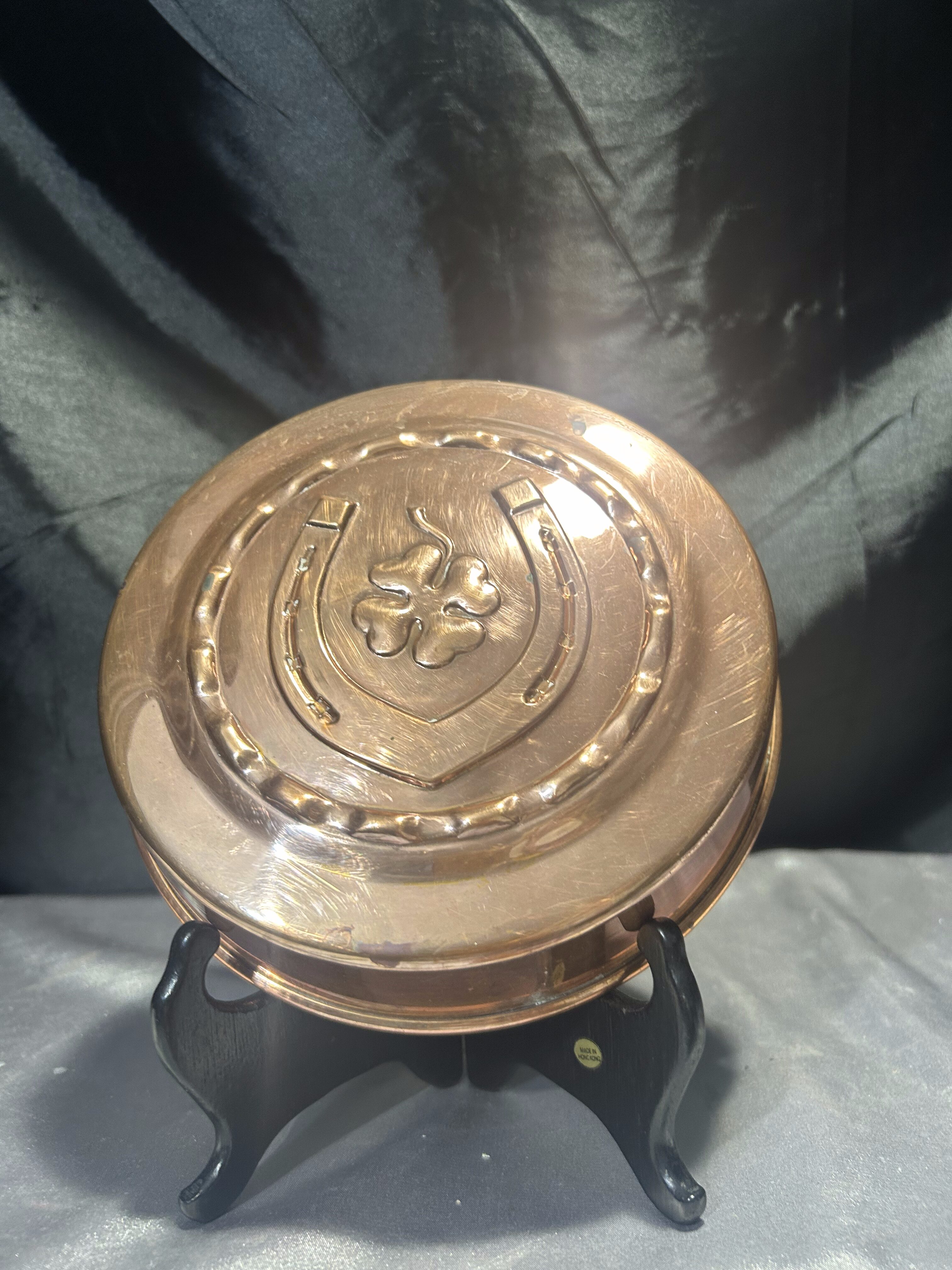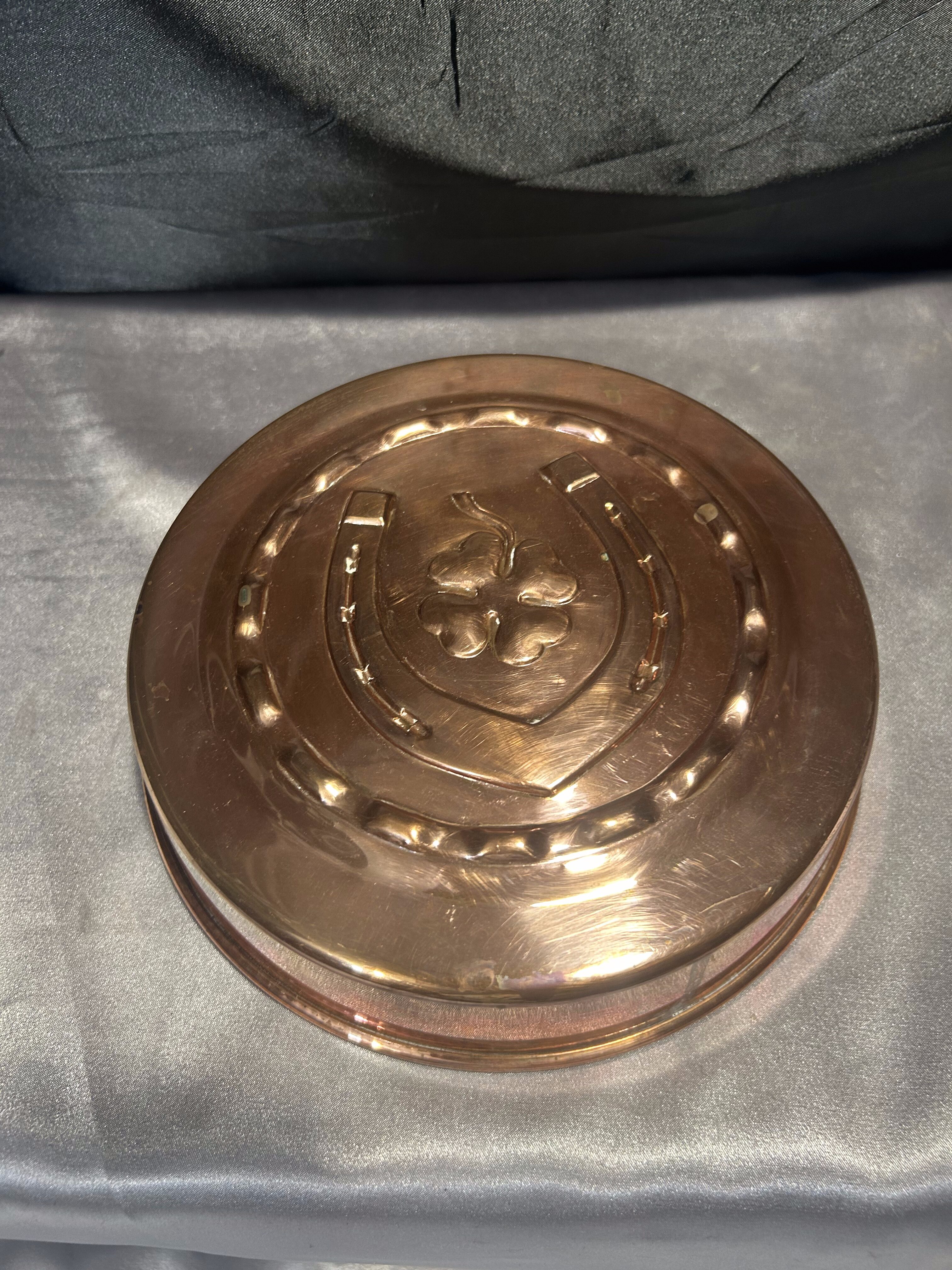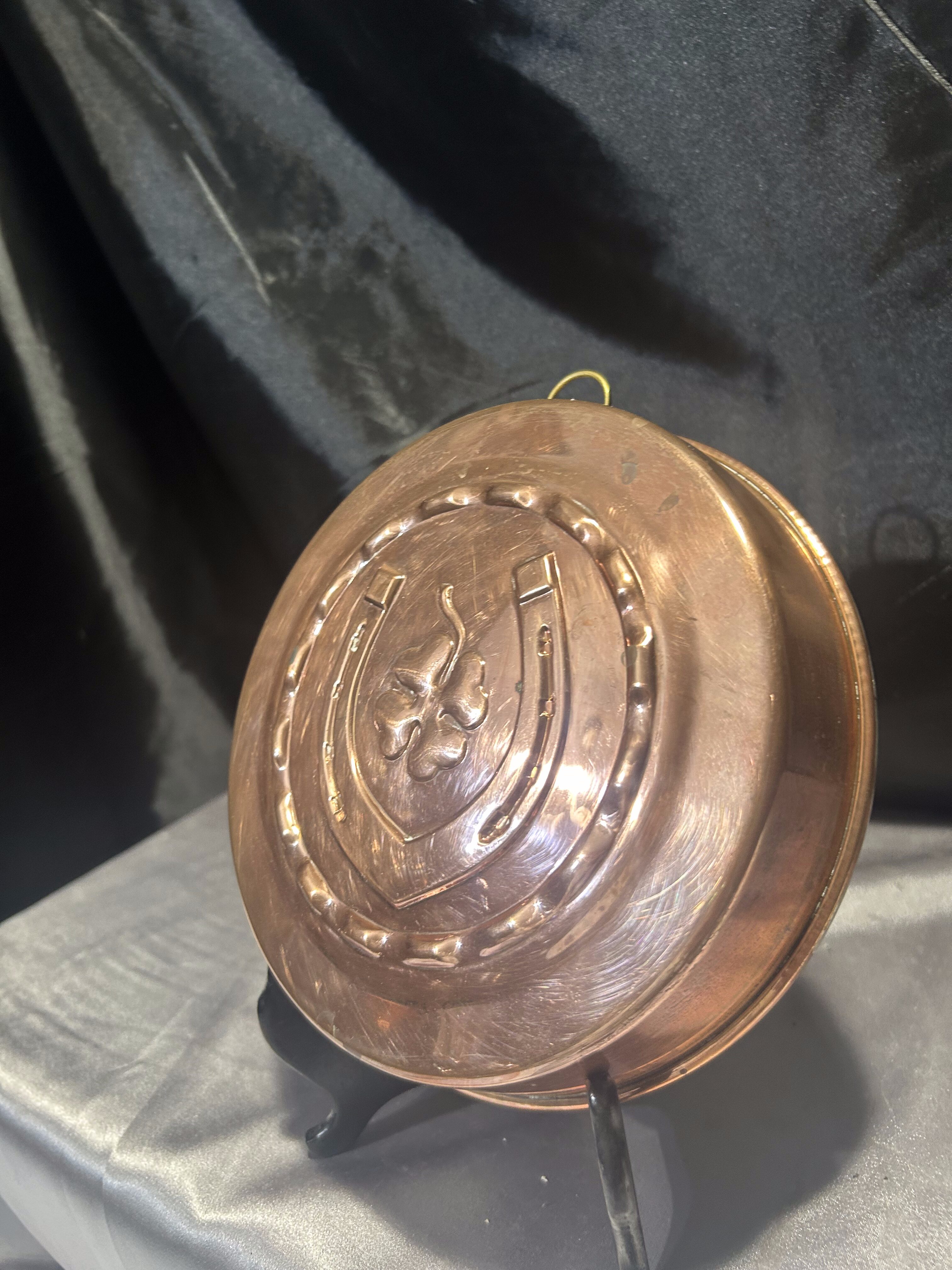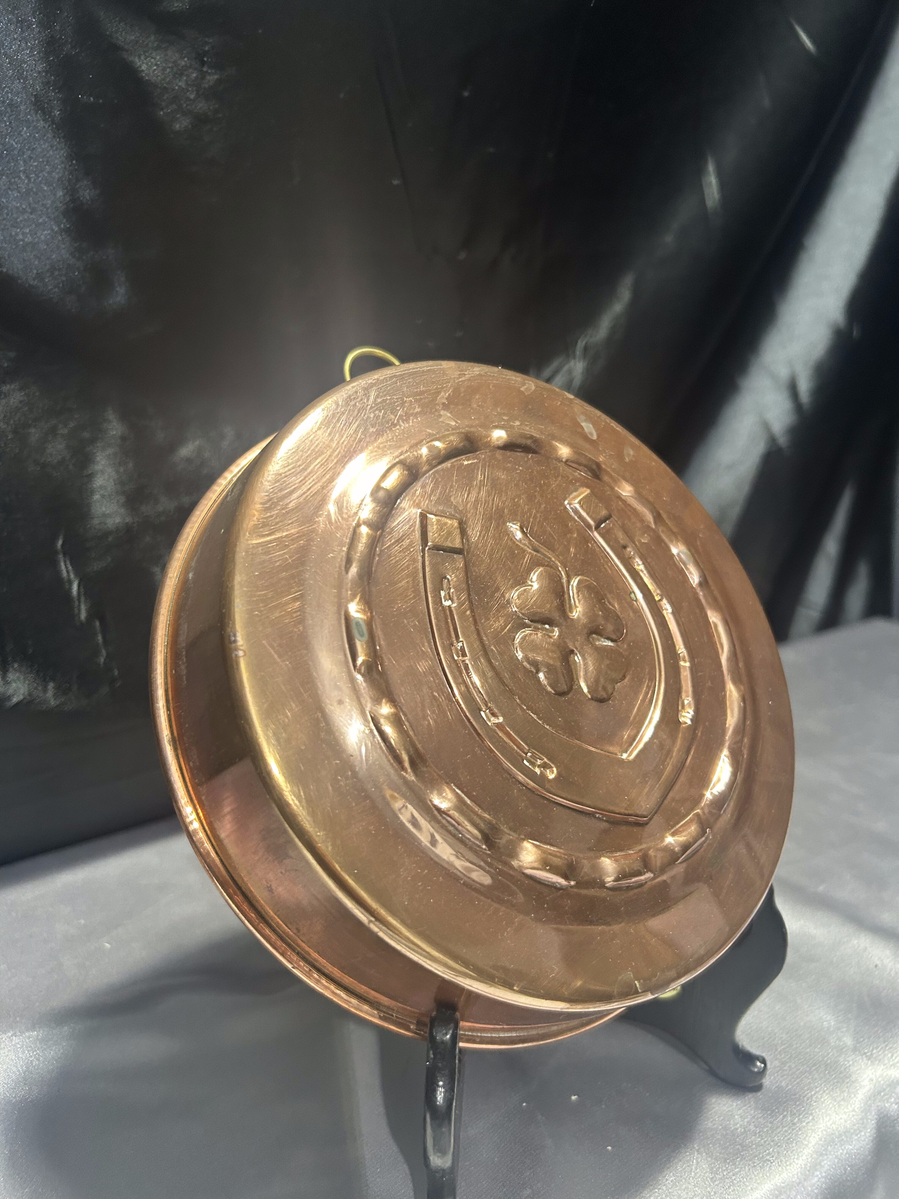 - Miedziana Foremka do Ciasta – Sygnowana, Motyw Koniczyny w Podkowie