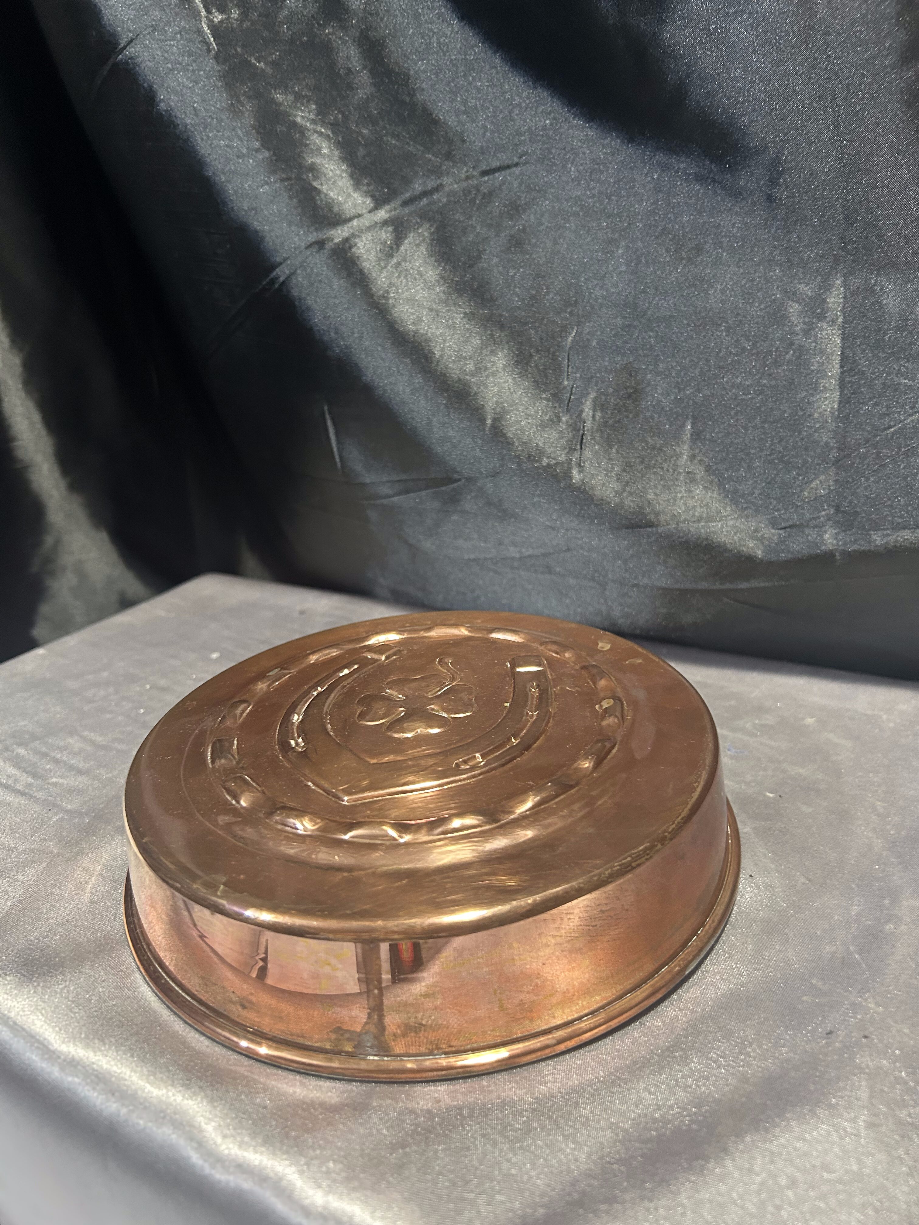 Miedziana Foremka do Ciasta – Sygnowana, Motyw Koniczyny w Podkowie