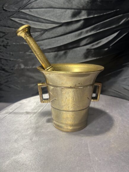 Moździerz z mosiądzu z tłuczkiem – duży, ciężki – klasyczna forma