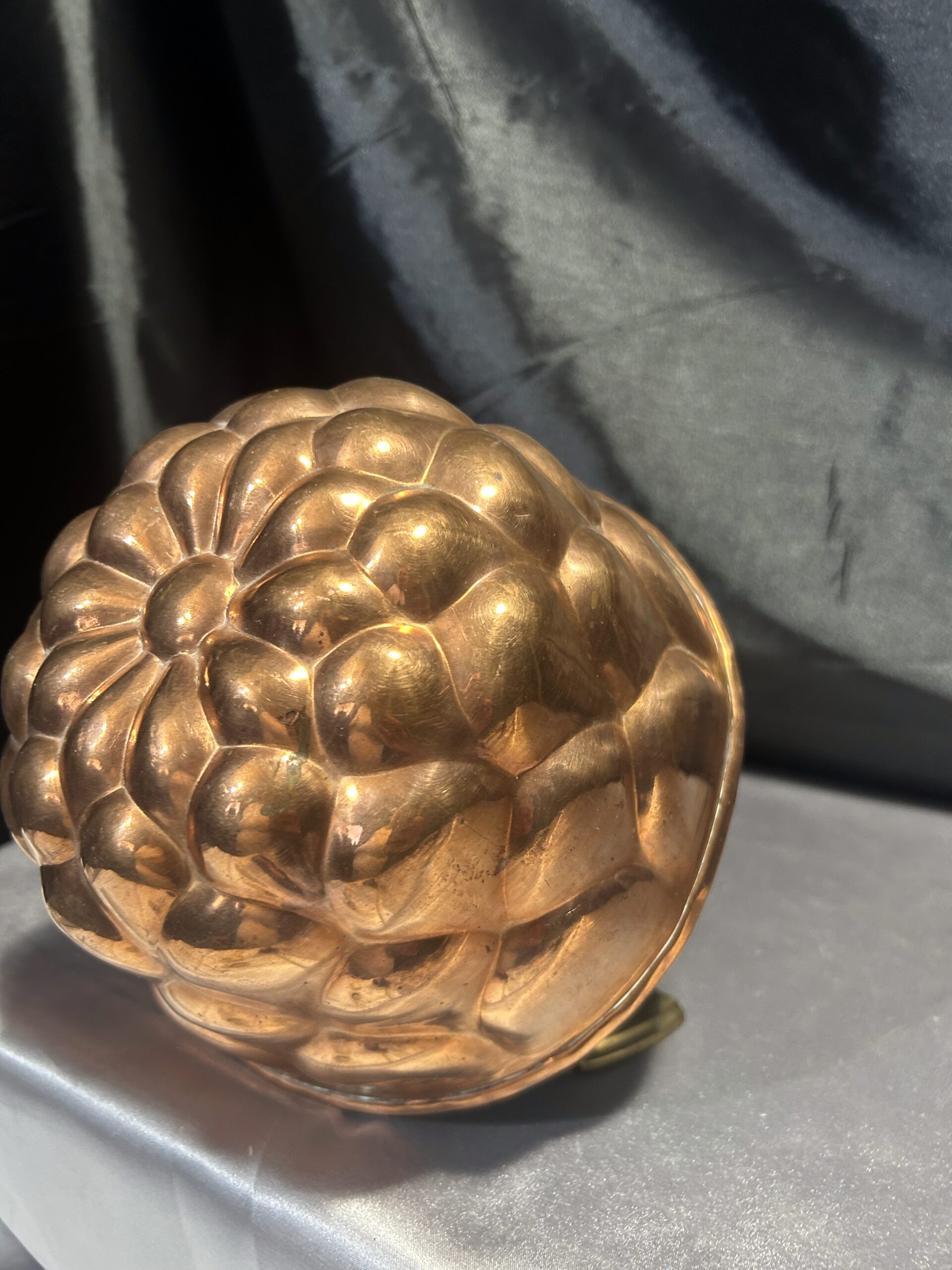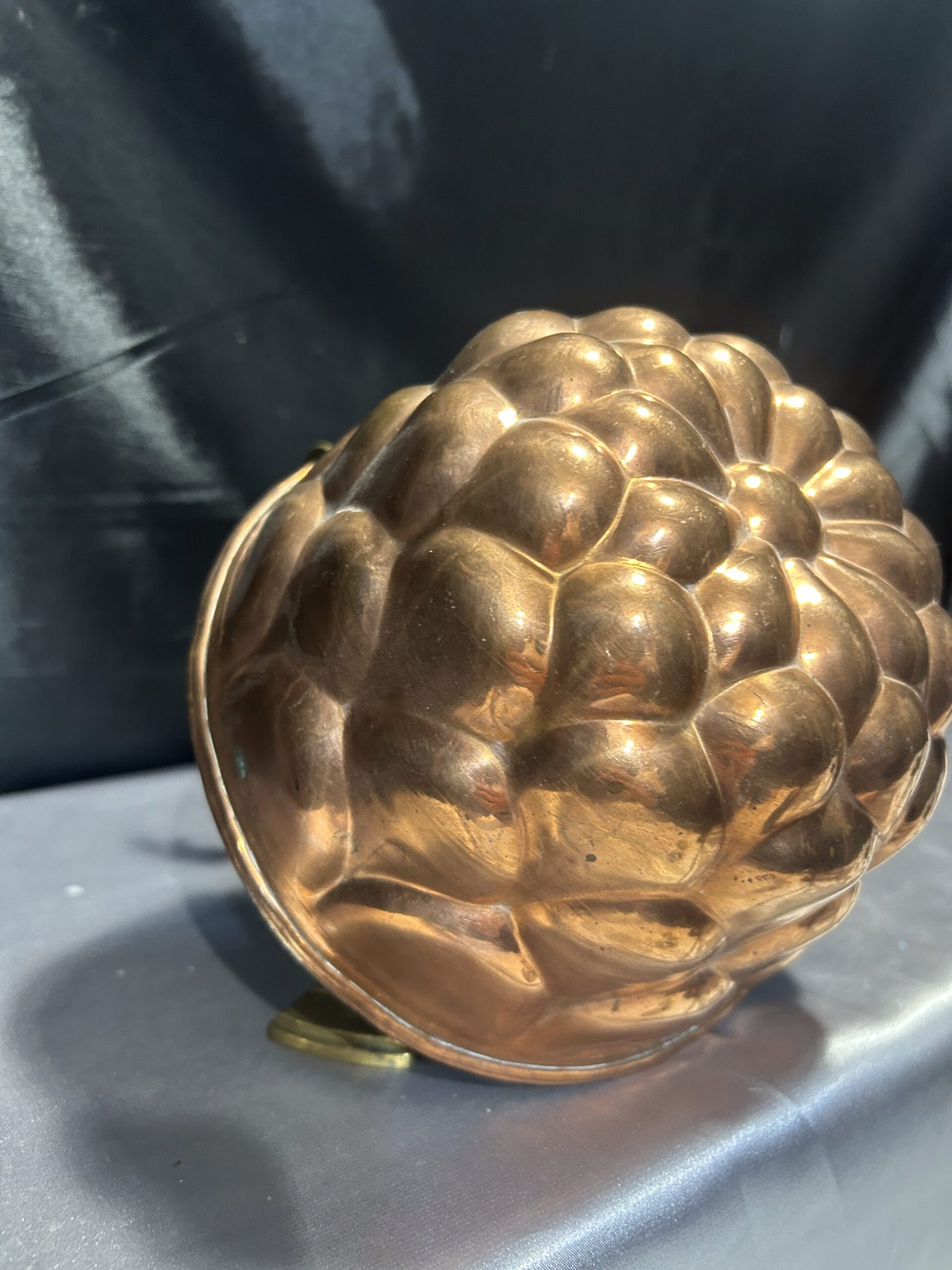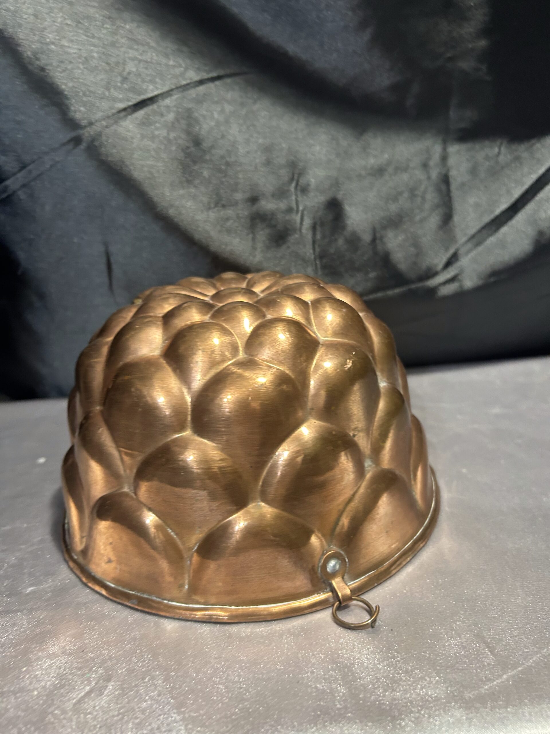 Stylowa foremka na babkę wykonana z miedzi, łącząca tradycyjny design z funkcjonalnością. Dzięki solidnej konstrukcji może być używana zarówno do pieczenia, jak i jako dekoracyjny element kuchni. Wyposażona w praktyczne kółeczko, które umożliwia jej zawieszenie na ścianie, co podkreśla jej rustykalny i vintage charakter.