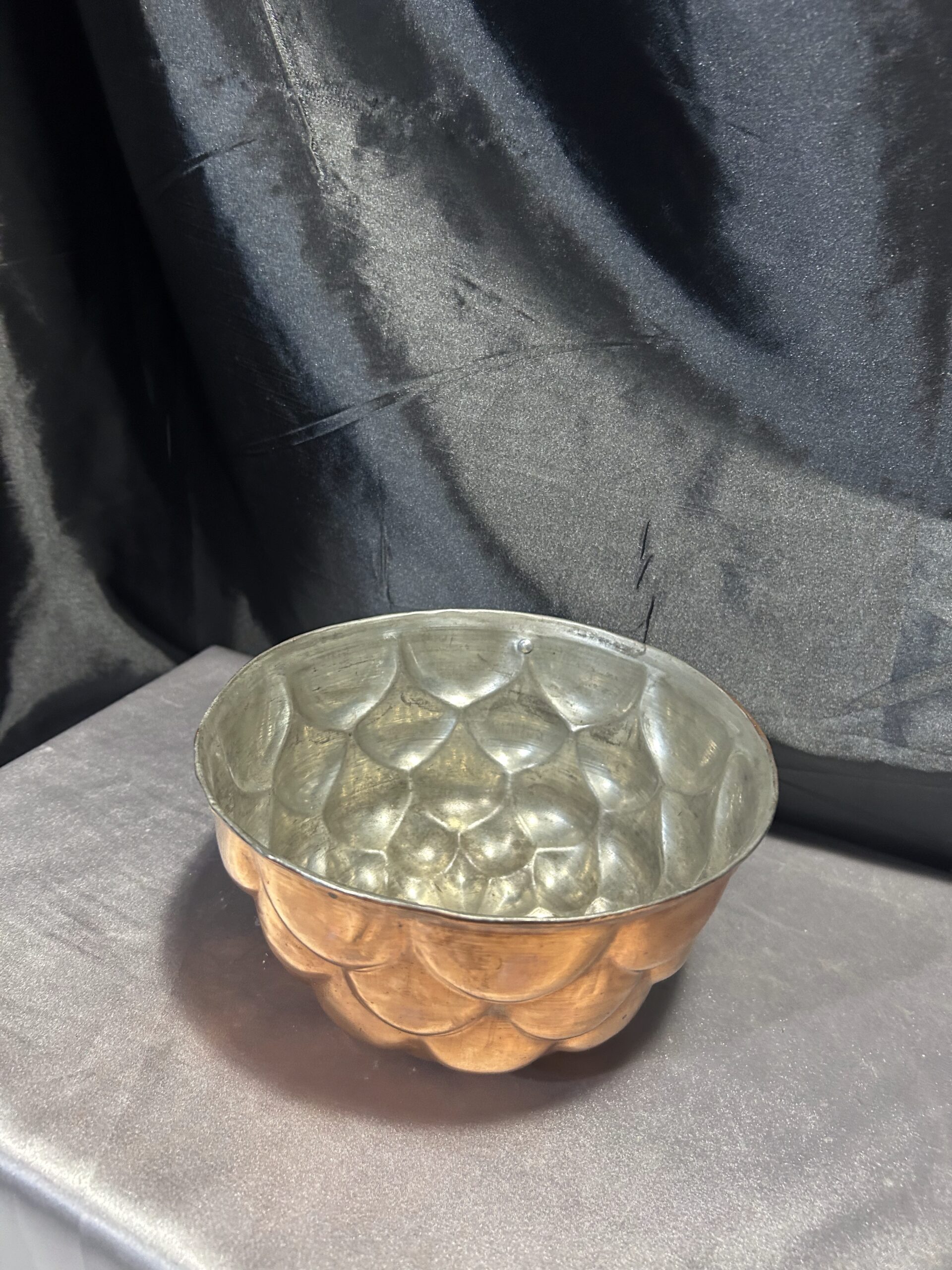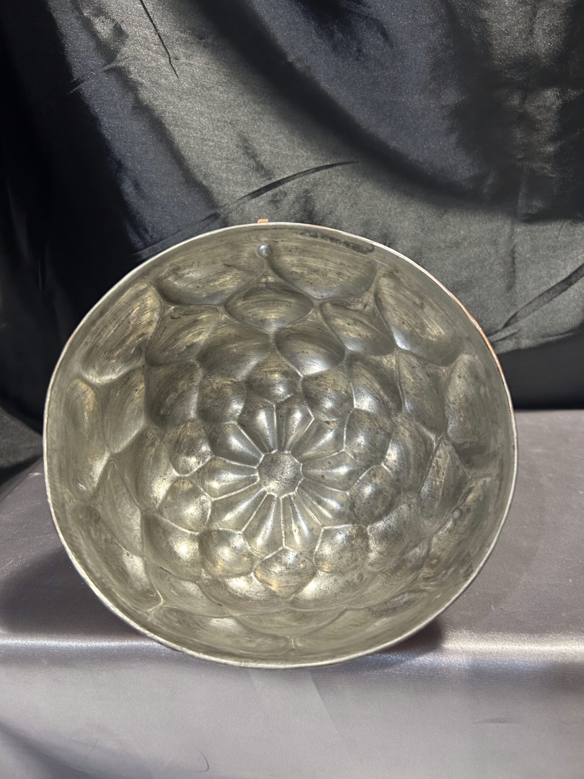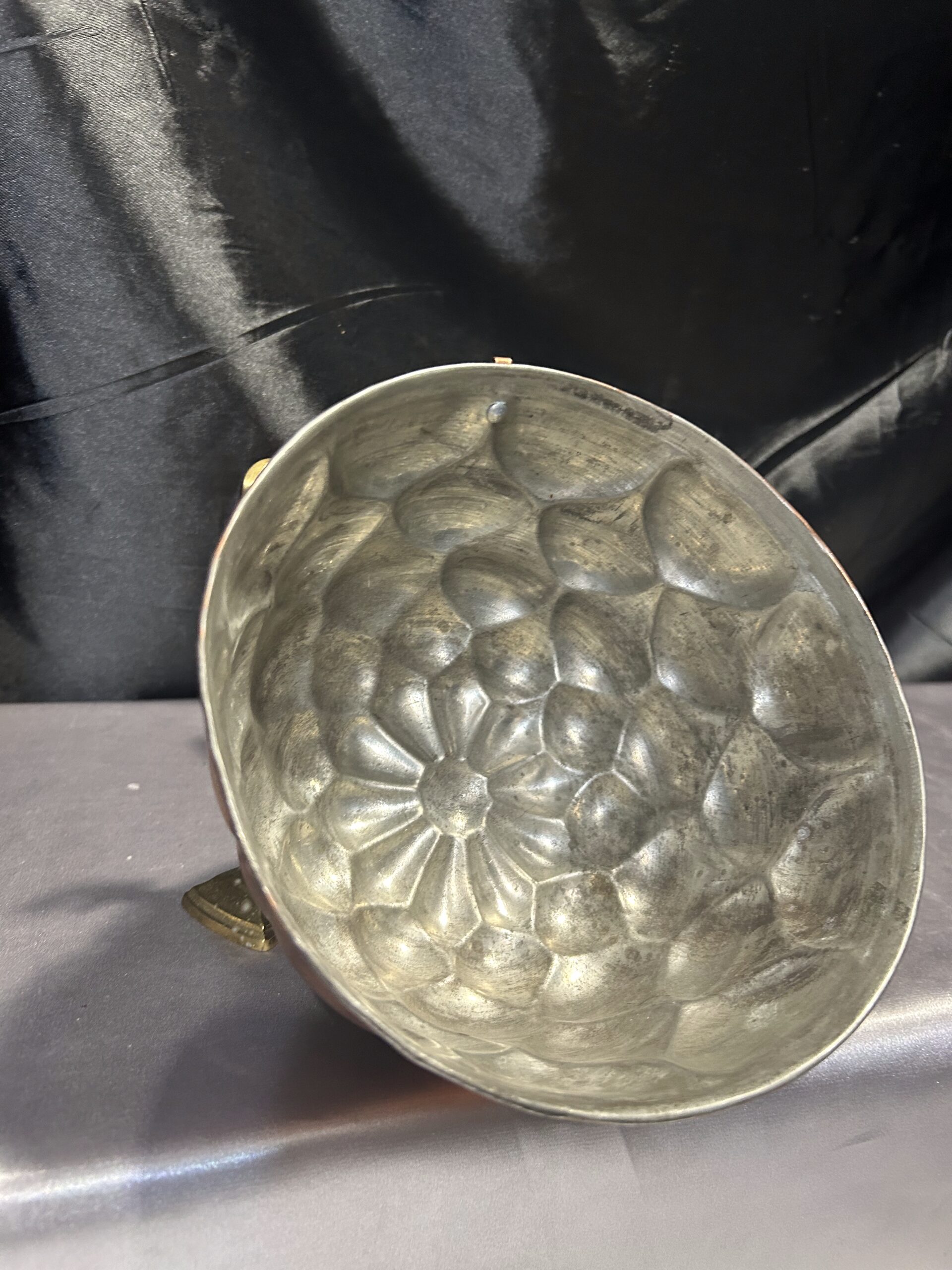 Stylowa foremka na babkę wykonana z miedzi, łącząca tradycyjny design z funkcjonalnością. Dzięki solidnej konstrukcji może być używana zarówno do pieczenia, jak i jako dekoracyjny element kuchni. Wyposażona w praktyczne kółeczko, które umożliwia jej zawieszenie na ścianie, co podkreśla jej rustykalny i vintage charakter.