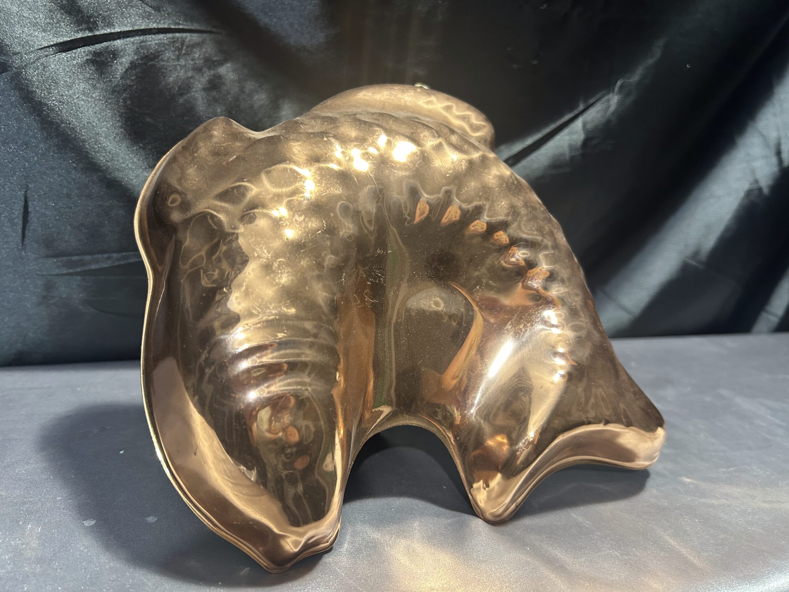 Wyjątkowa foremka na ciasto wykonana z miedzi, w kształcie ryby. Sygnowana J. SANTOS, co podkreśla jej unikalność i wartość kolekcjonerską. Dzięki praktycznemu kółeczku można ją zawiesić na ścianie, tworząc stylowy akcent w kuchni. Może być używana zarówno do pieczenia, jak i jako dekoracyjny element wnętrza.