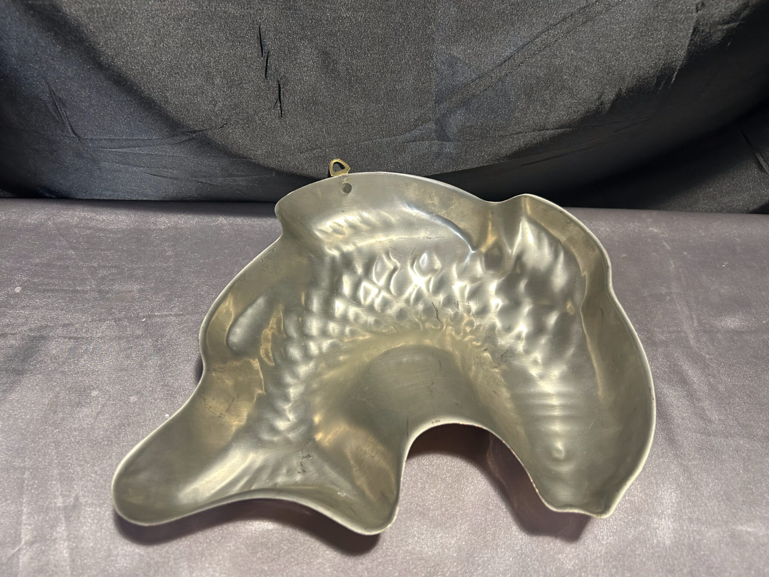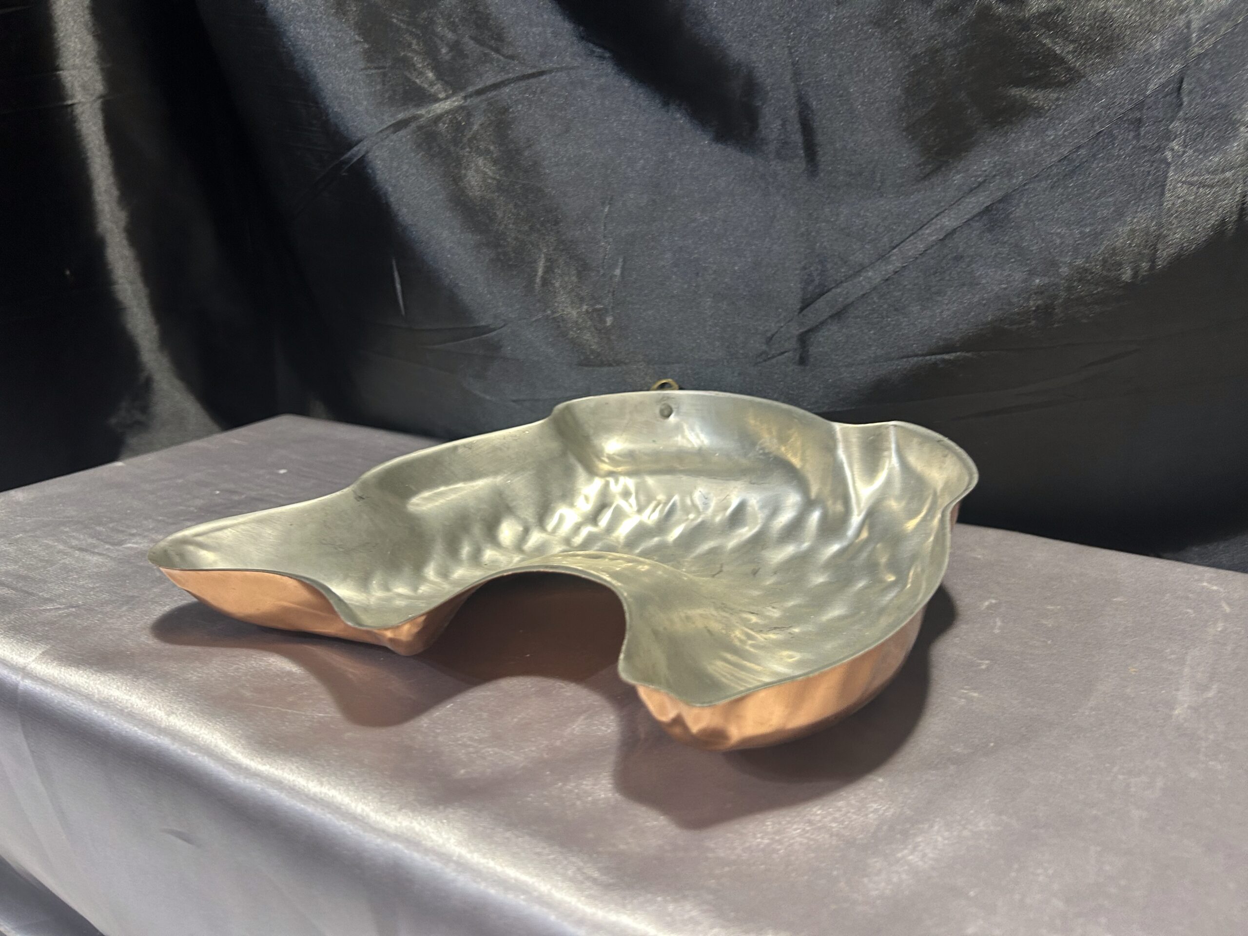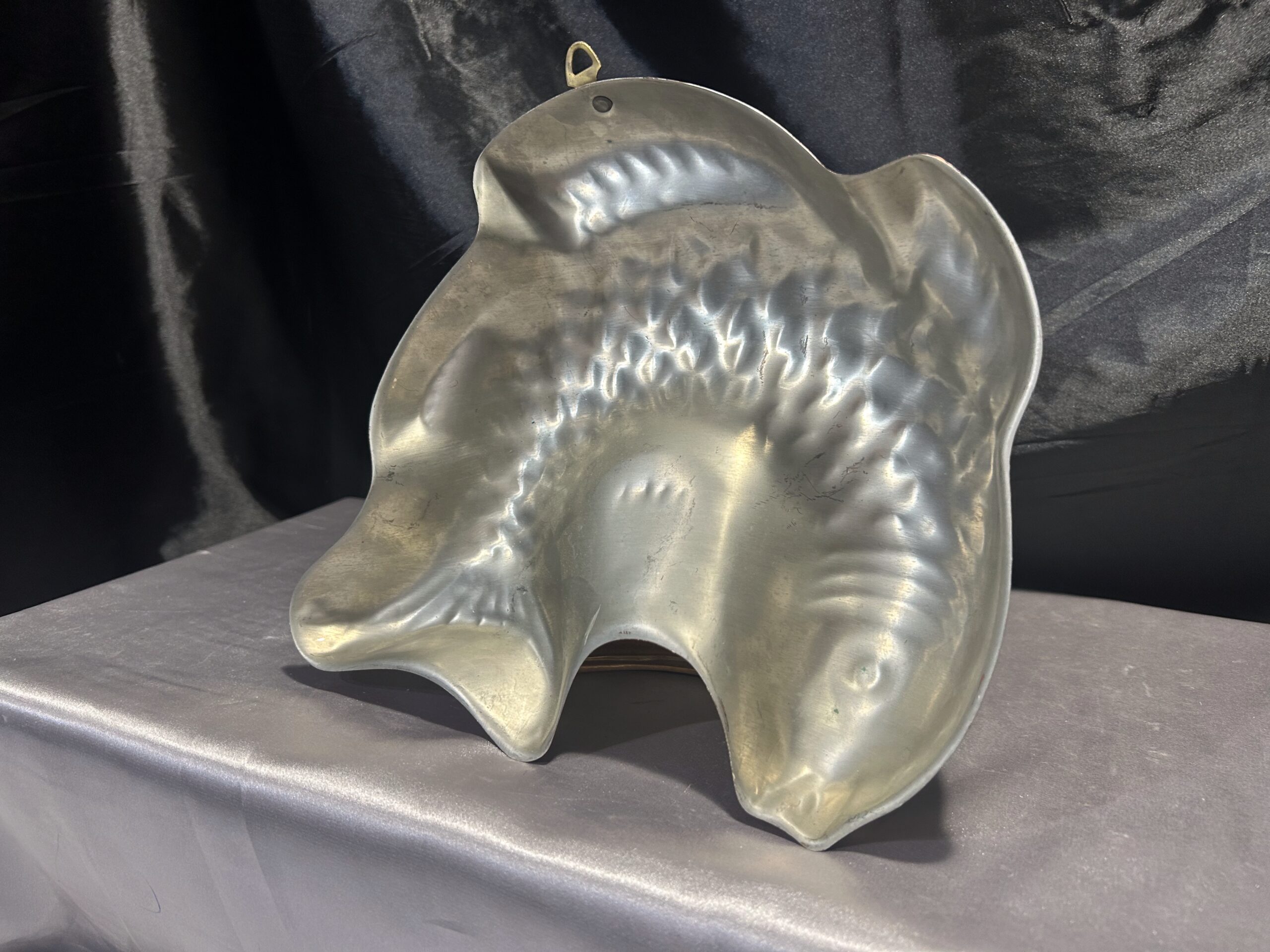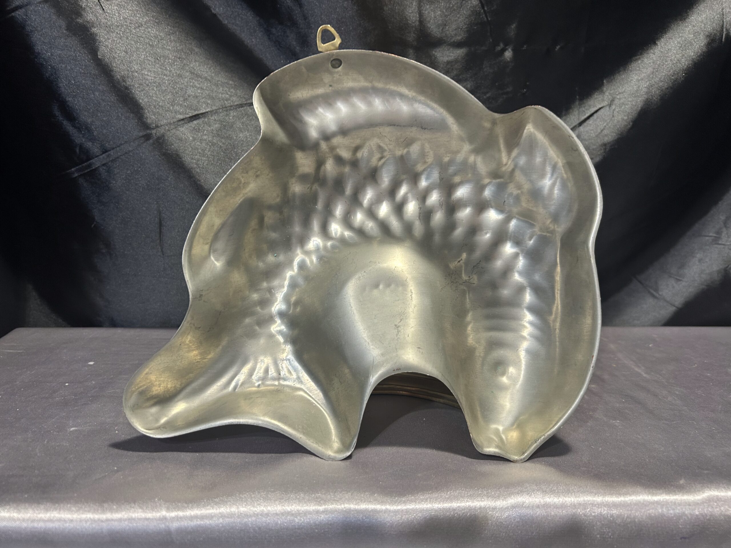 - Miedziana Foremka na Ciasto – W Kształcie Ryb, Sygnowana J. SANTOS