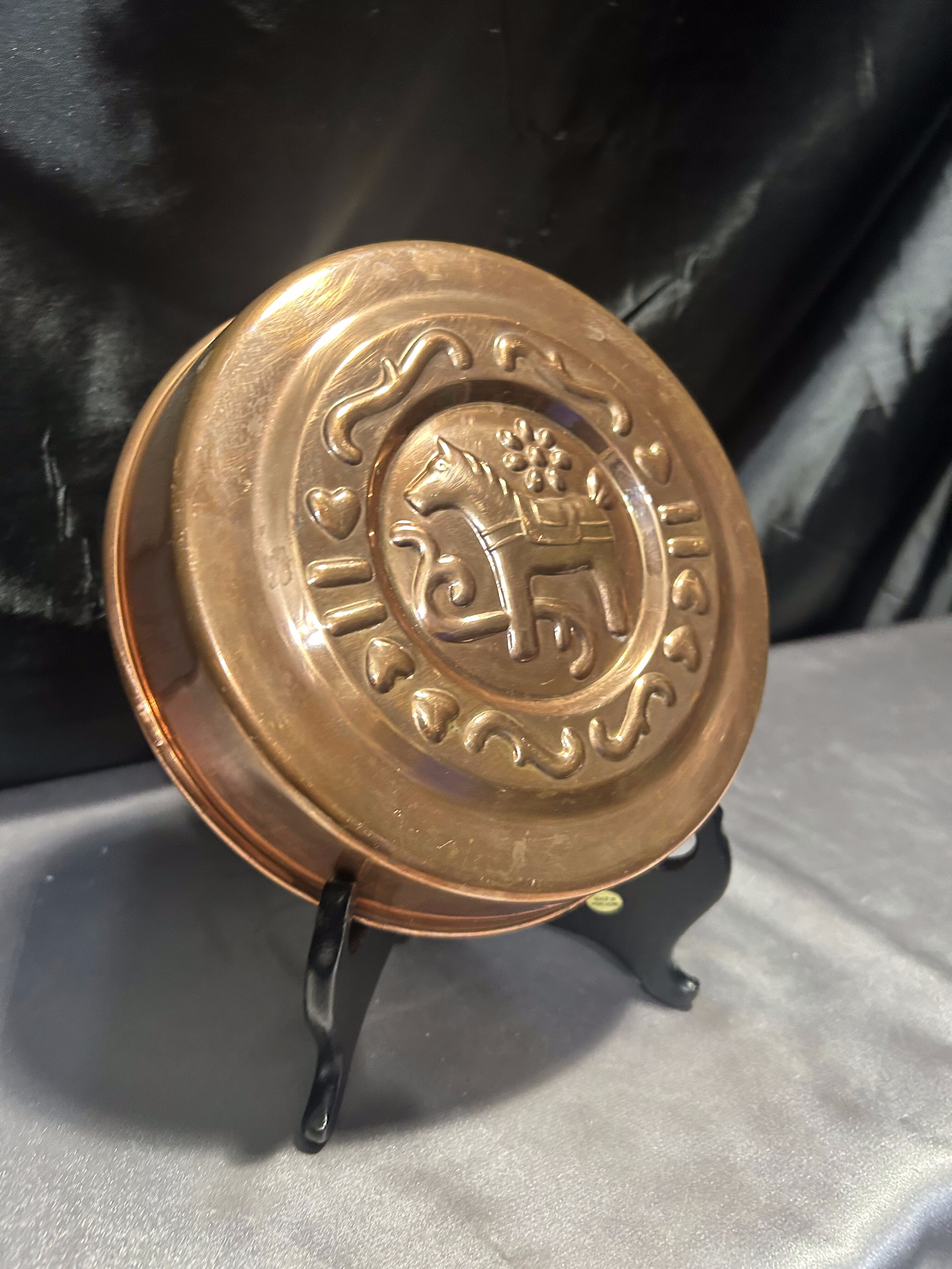 Miedziana Foremka na Ciasto – Zdobiona z Motywem Konika – Sygnowana Nilsjohan Sweden