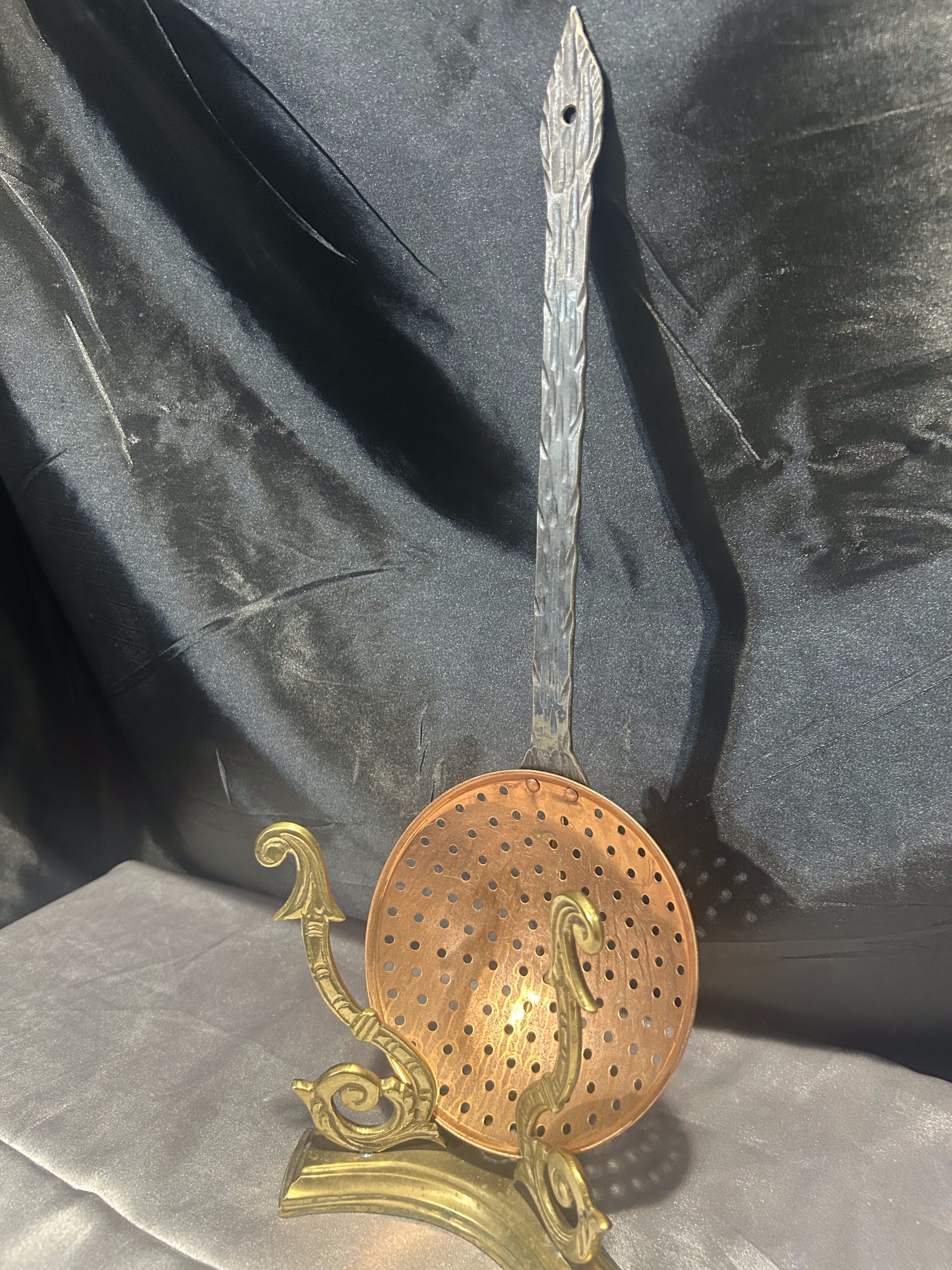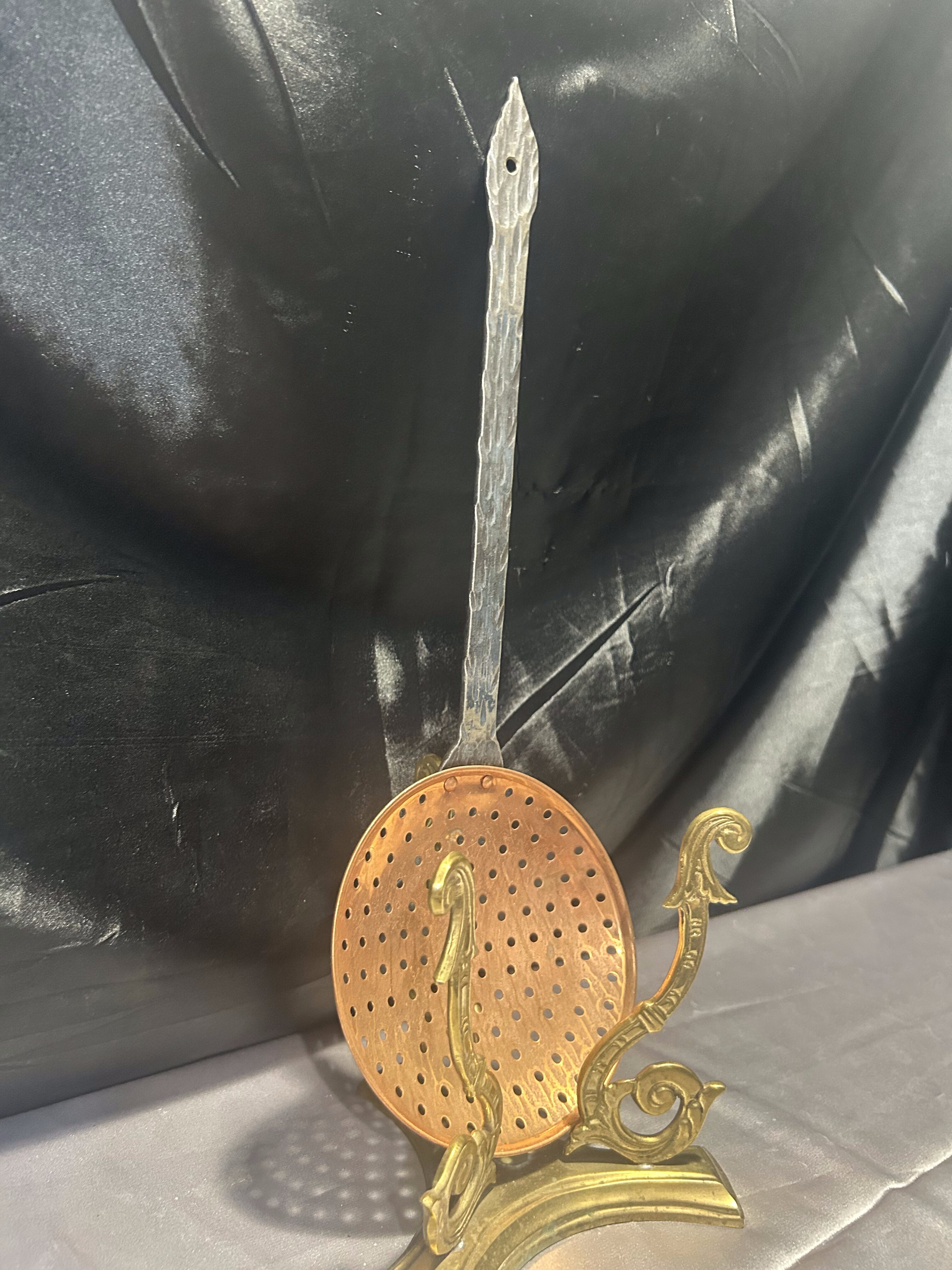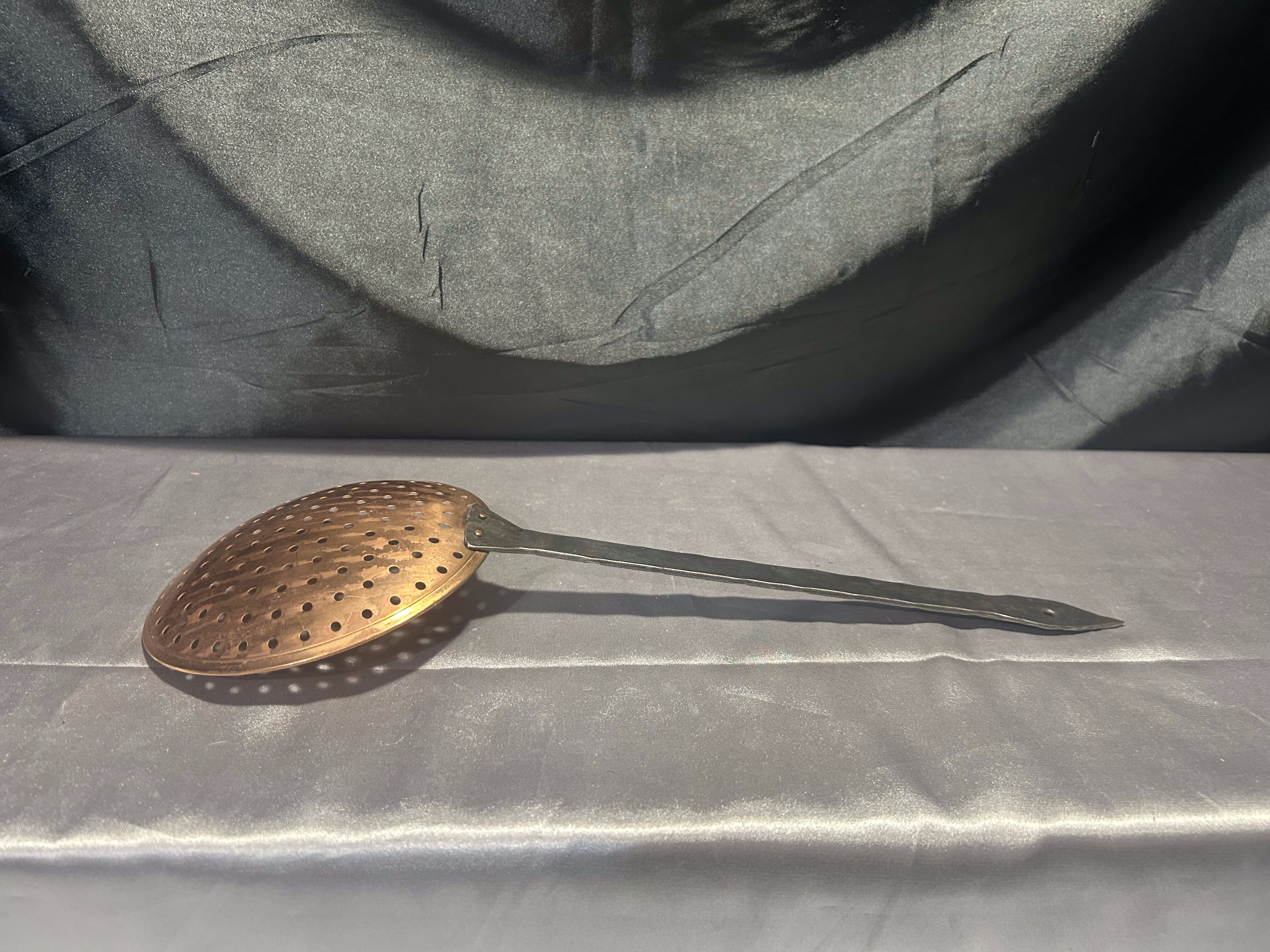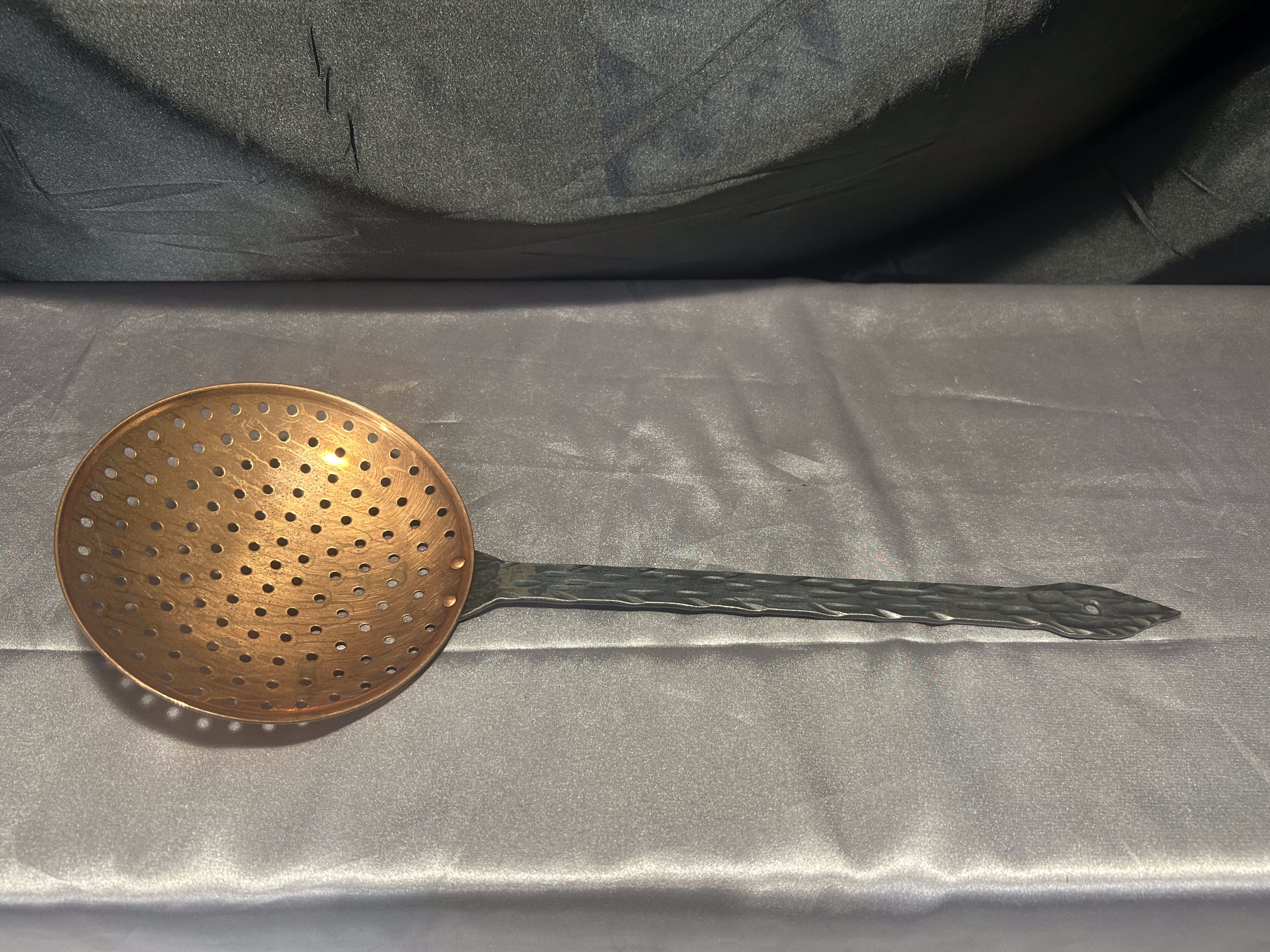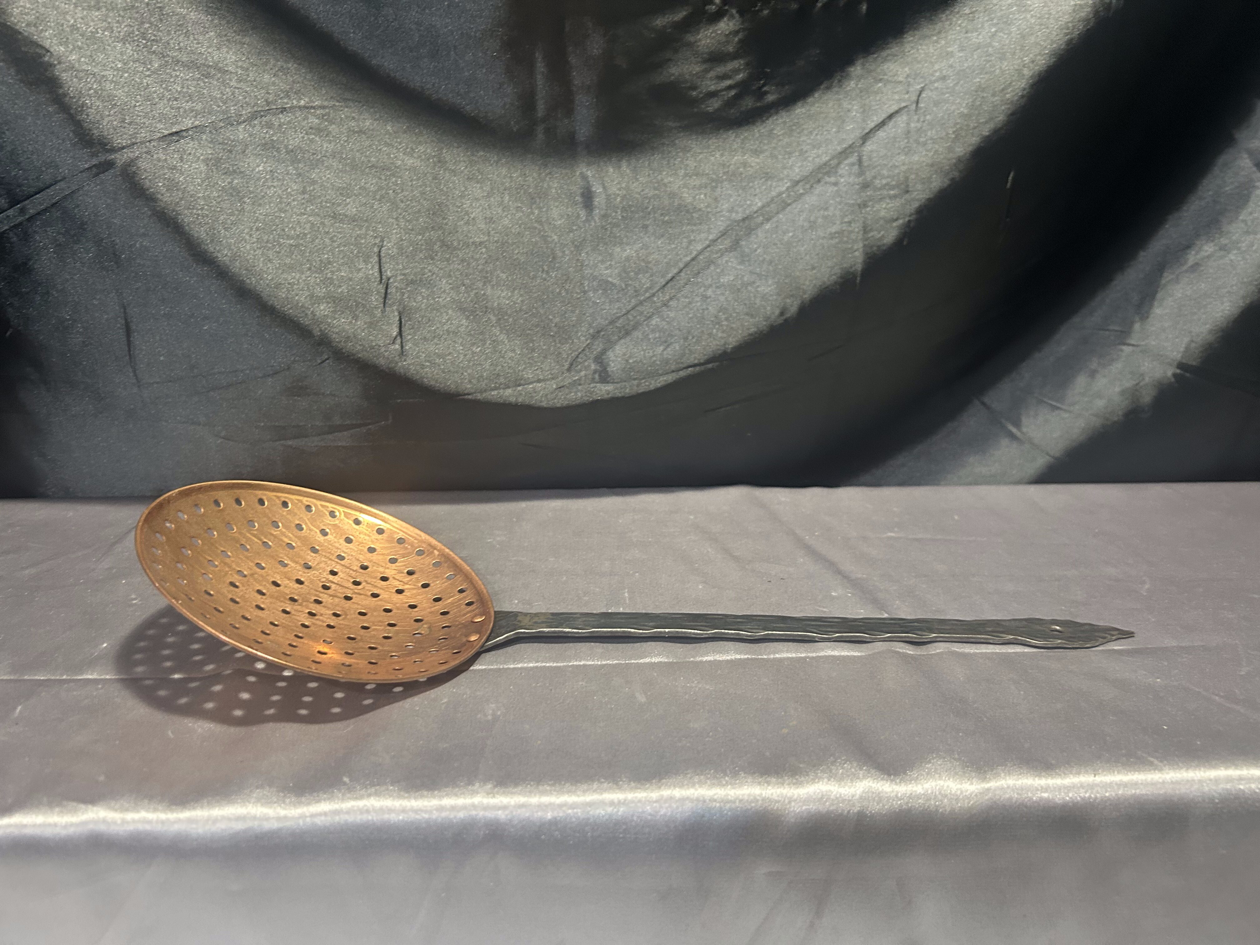 Miedziana łyżka cedzakowa – Kuta rączka – Styl rustykalny