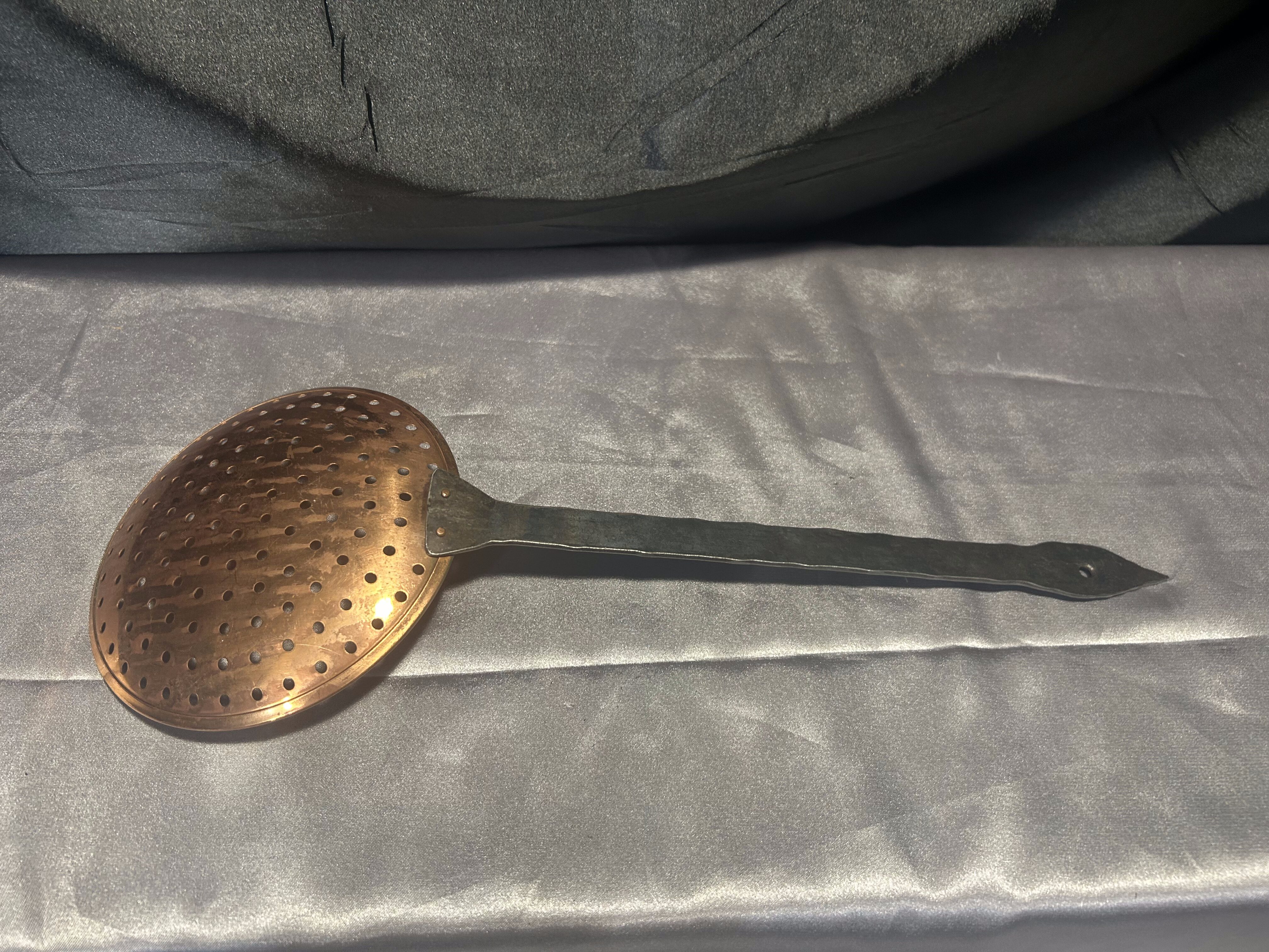 - Miedziana łyżka cedzakowa – Kuta rączka – Styl rustykalny