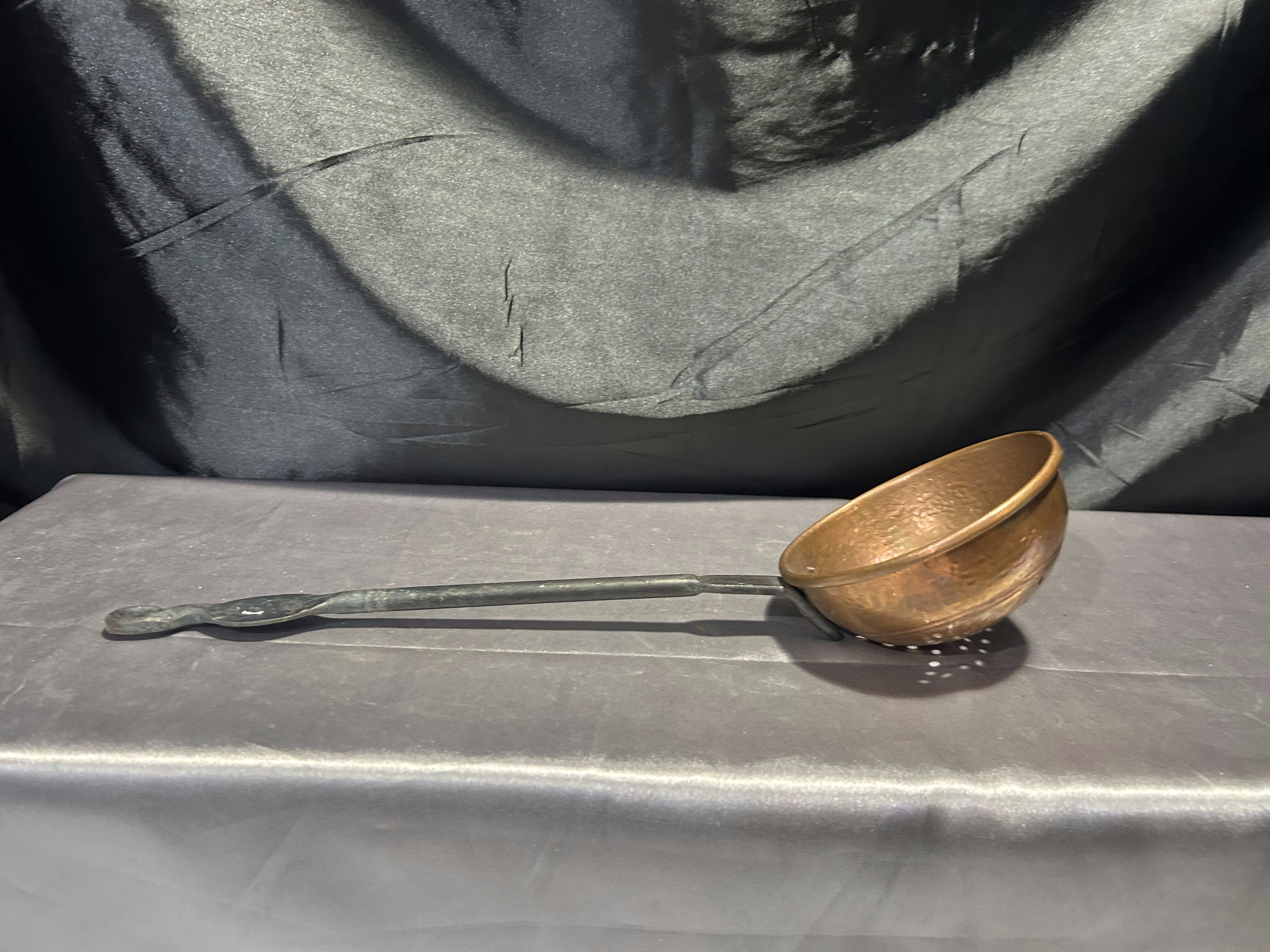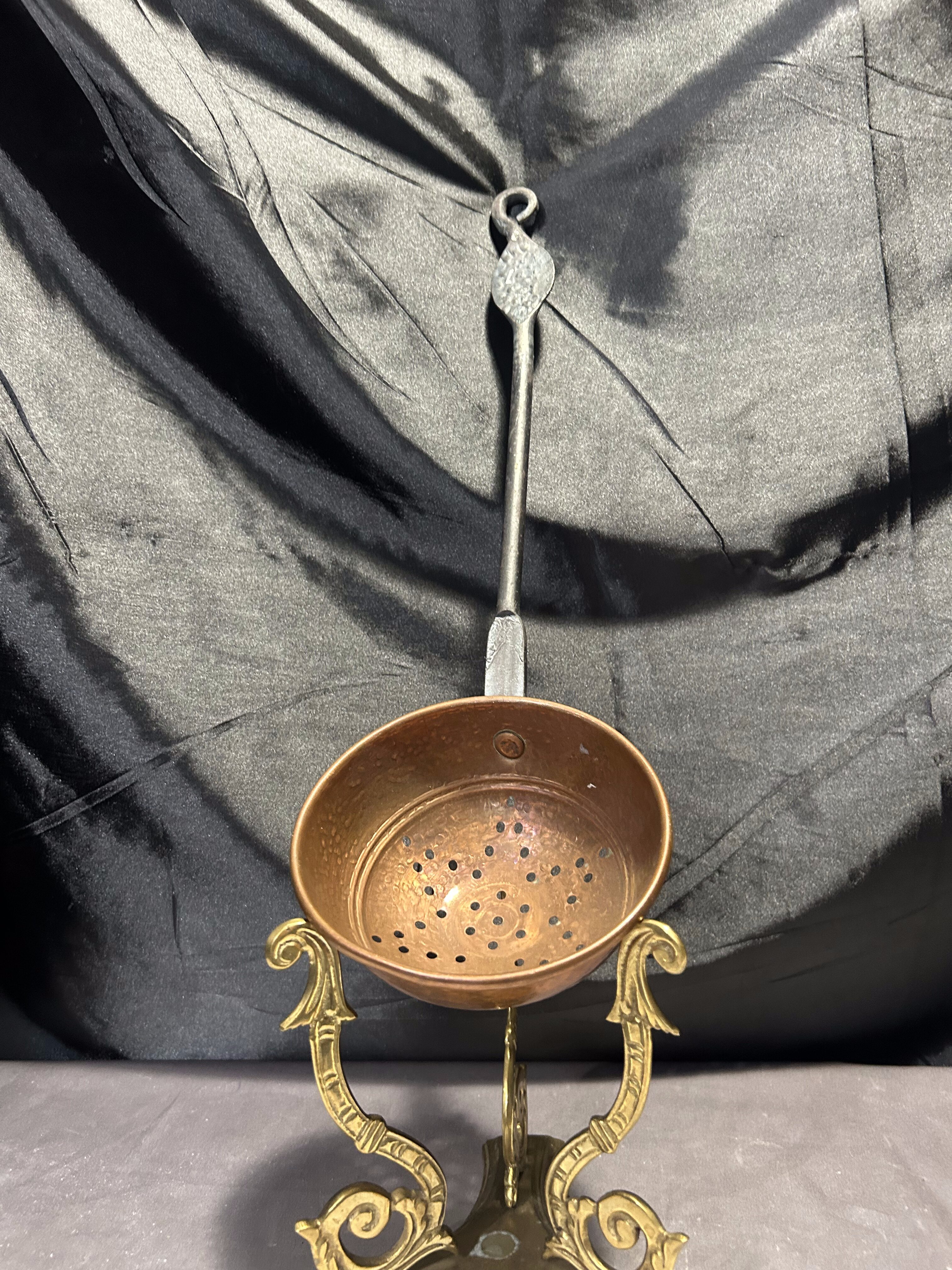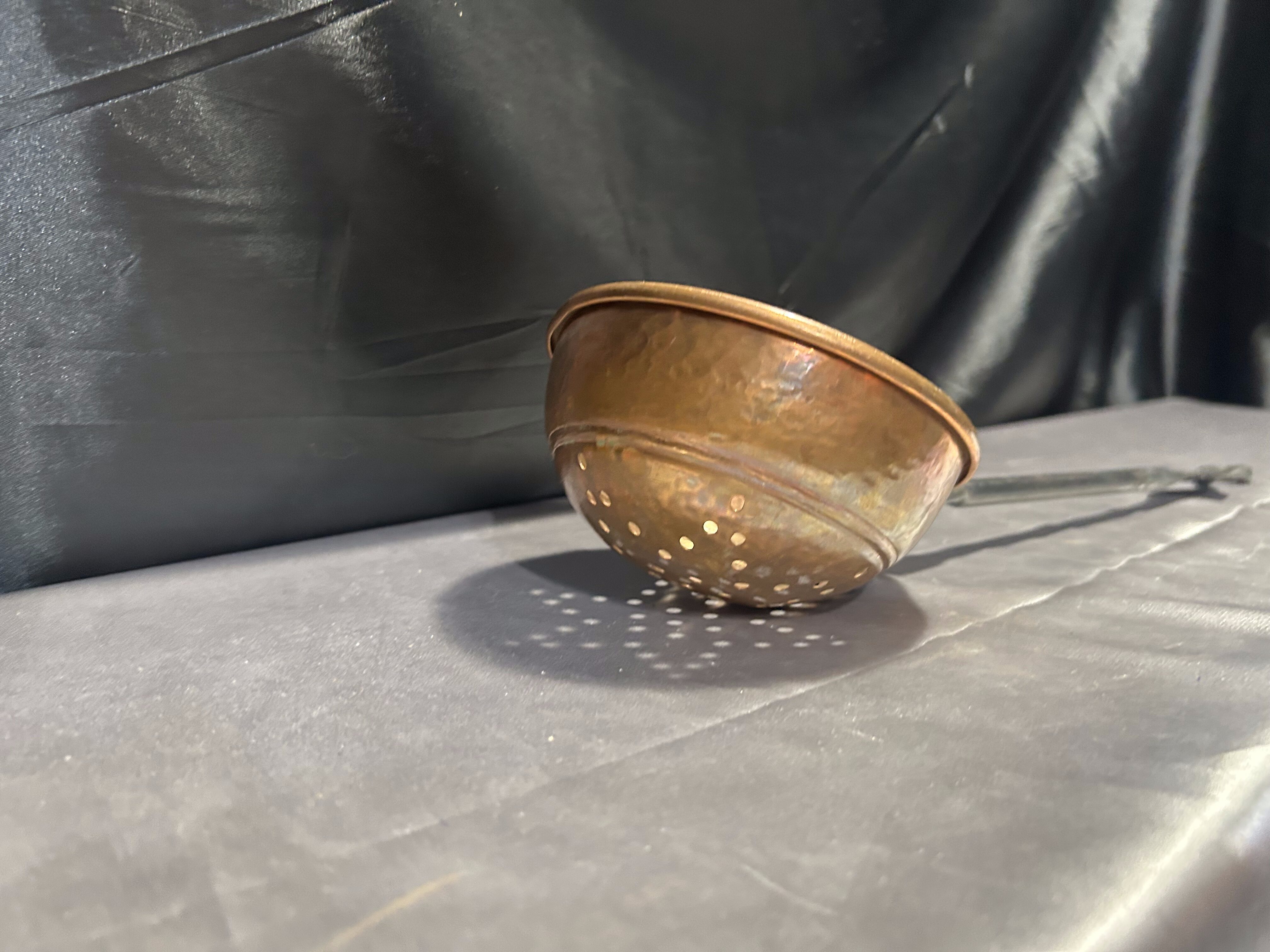Miedziana łyżka cedzakowa – Kuta rączka z haczykiem – Styl rustykalny