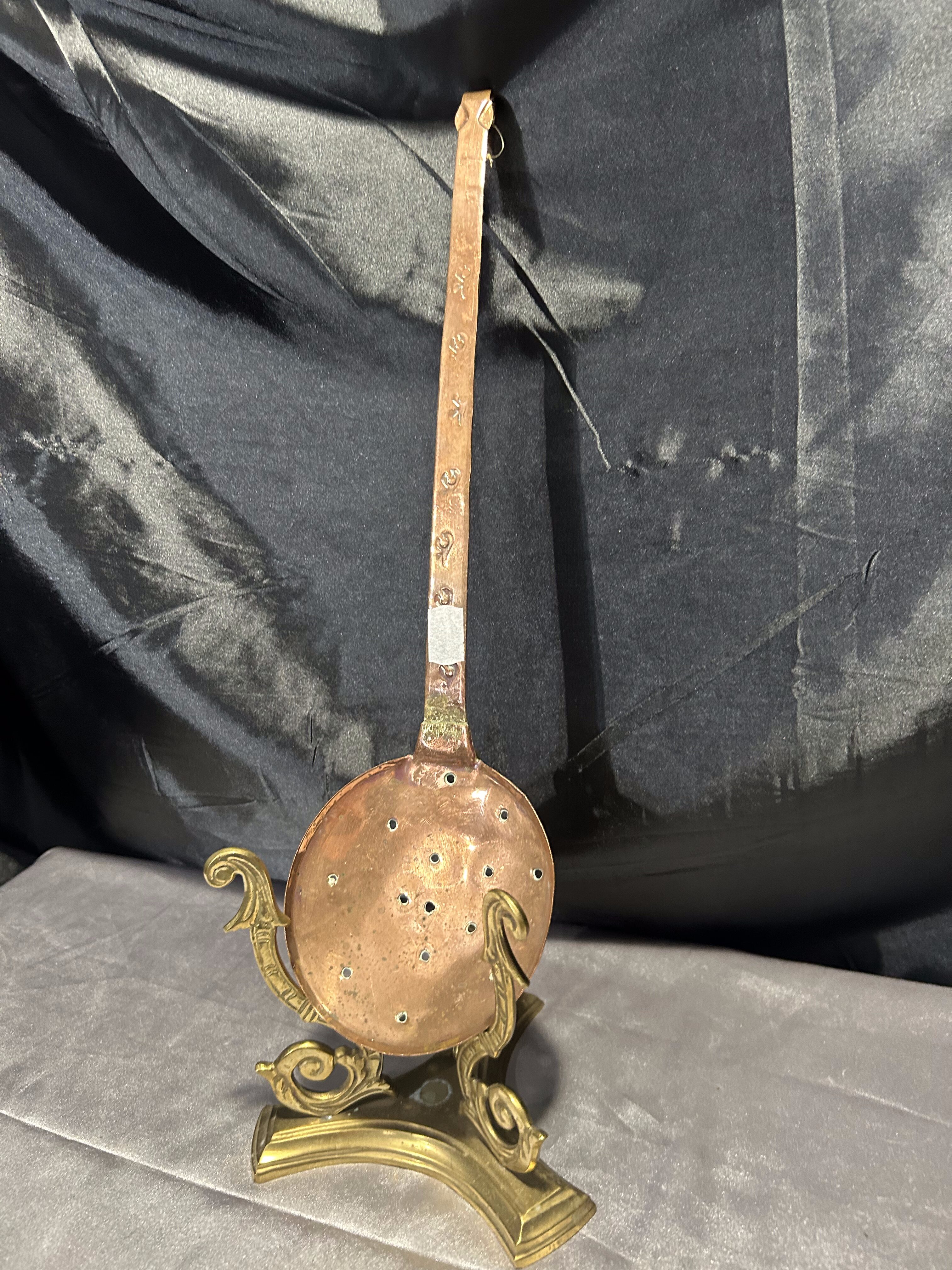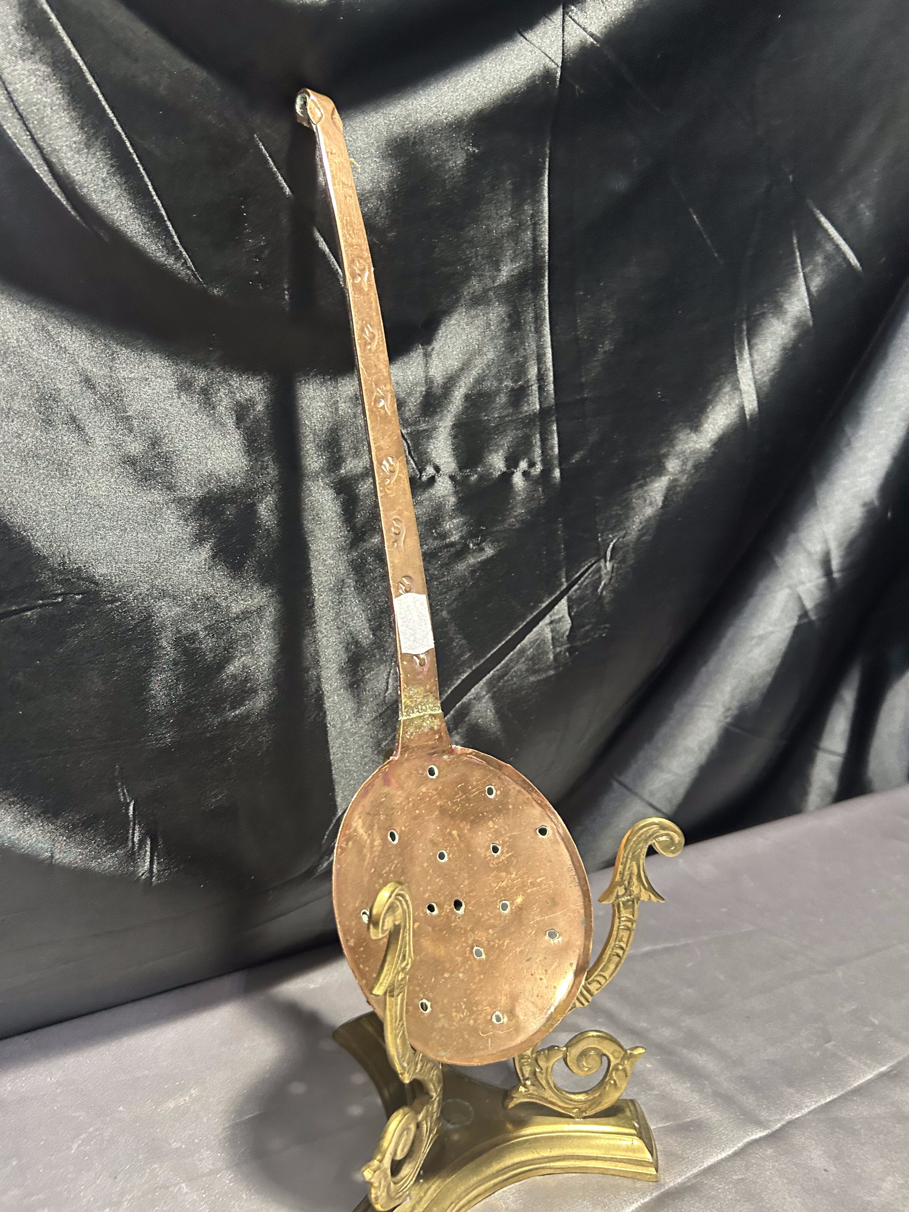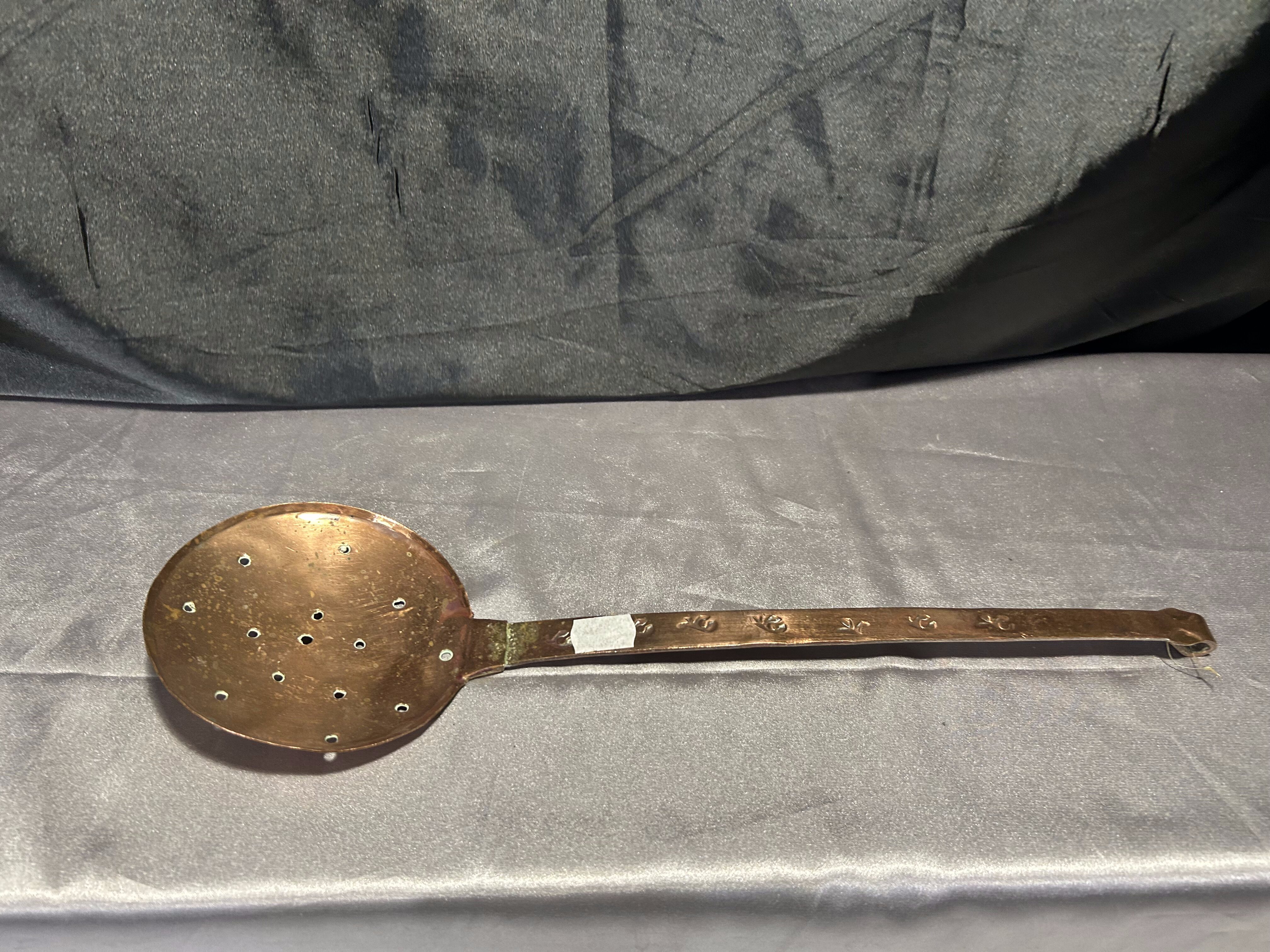 - Miedziana łyżka cedzakowa – Ręcznie zdobiona – Styl vintage