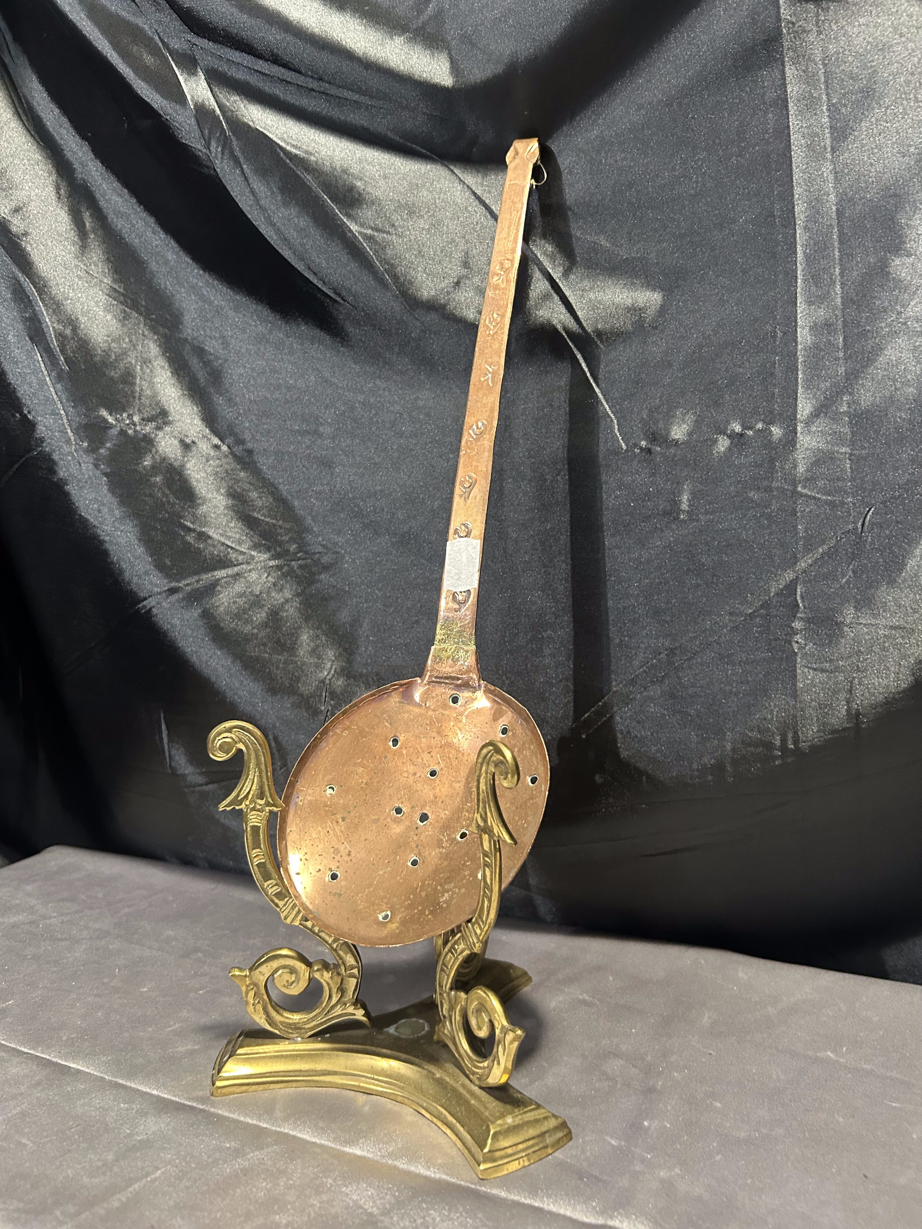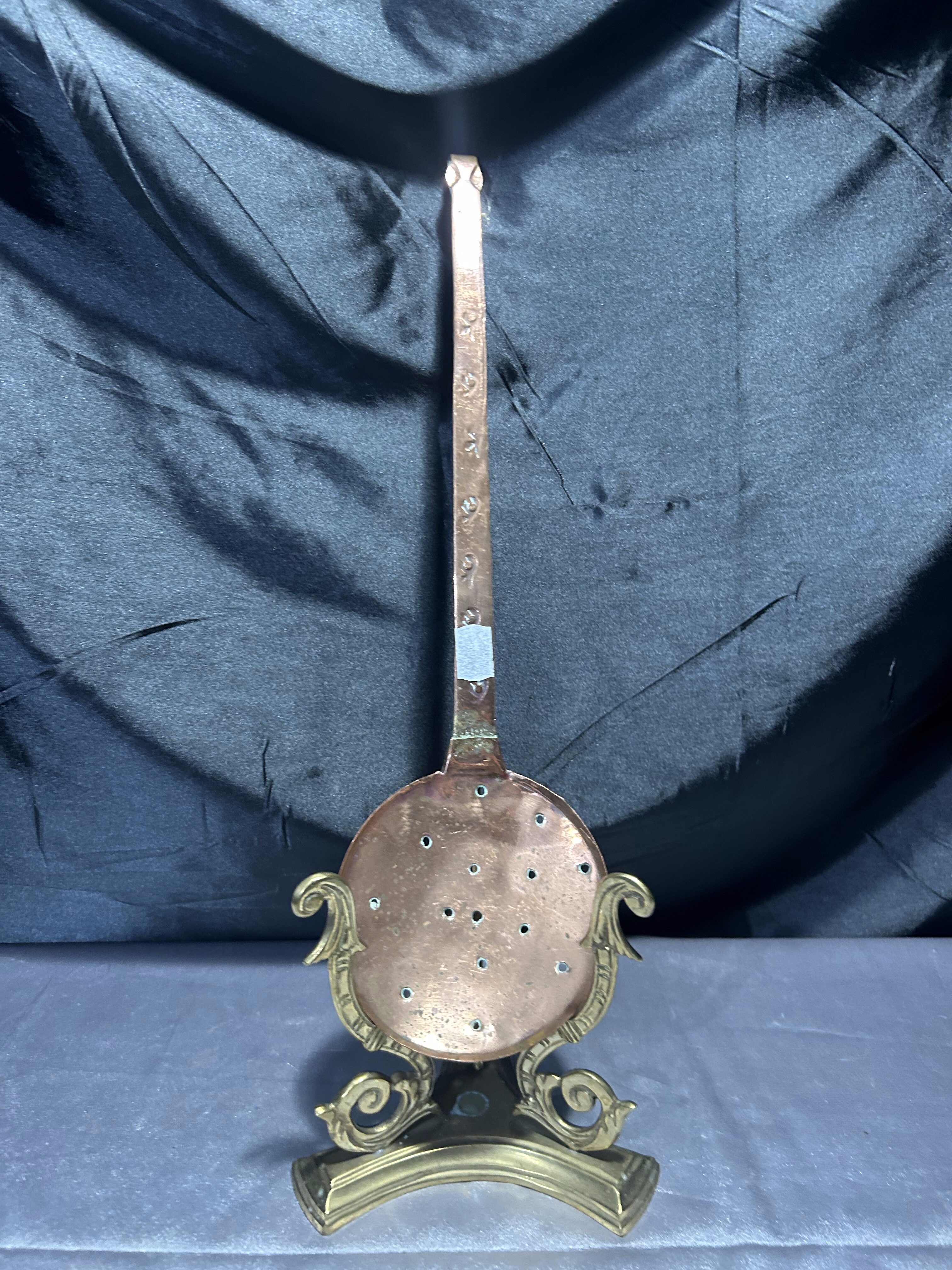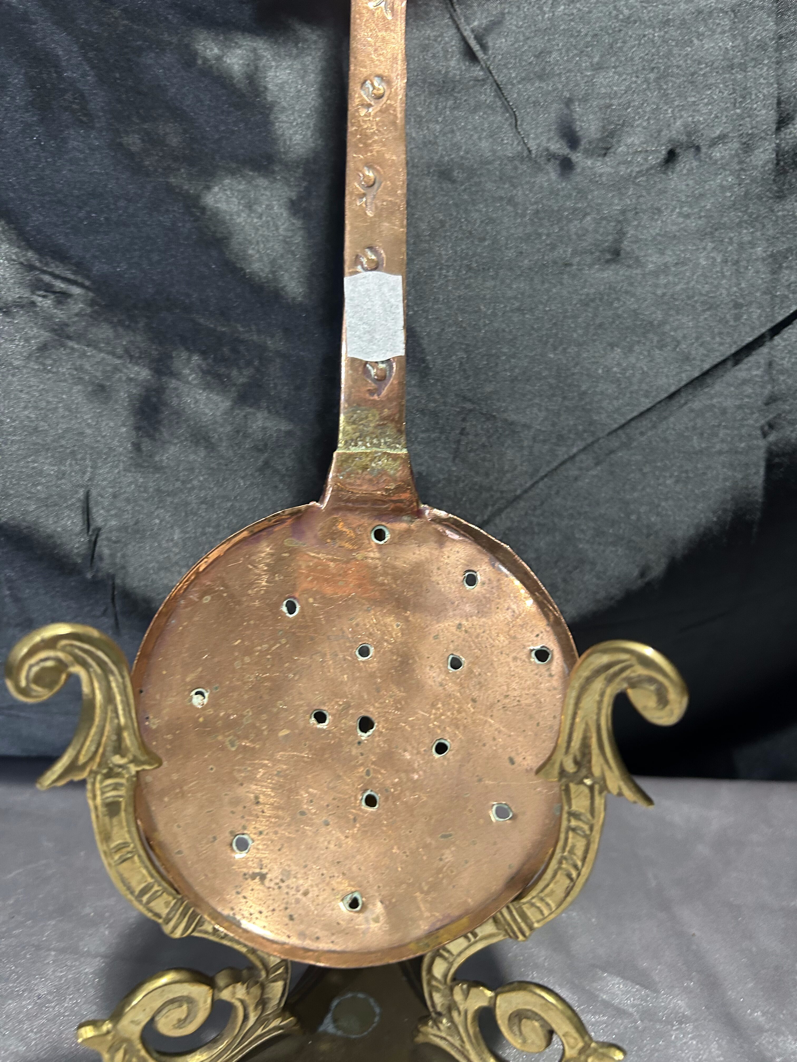 - Miedziana łyżka cedzakowa – Ręcznie zdobiona – Styl vintage
