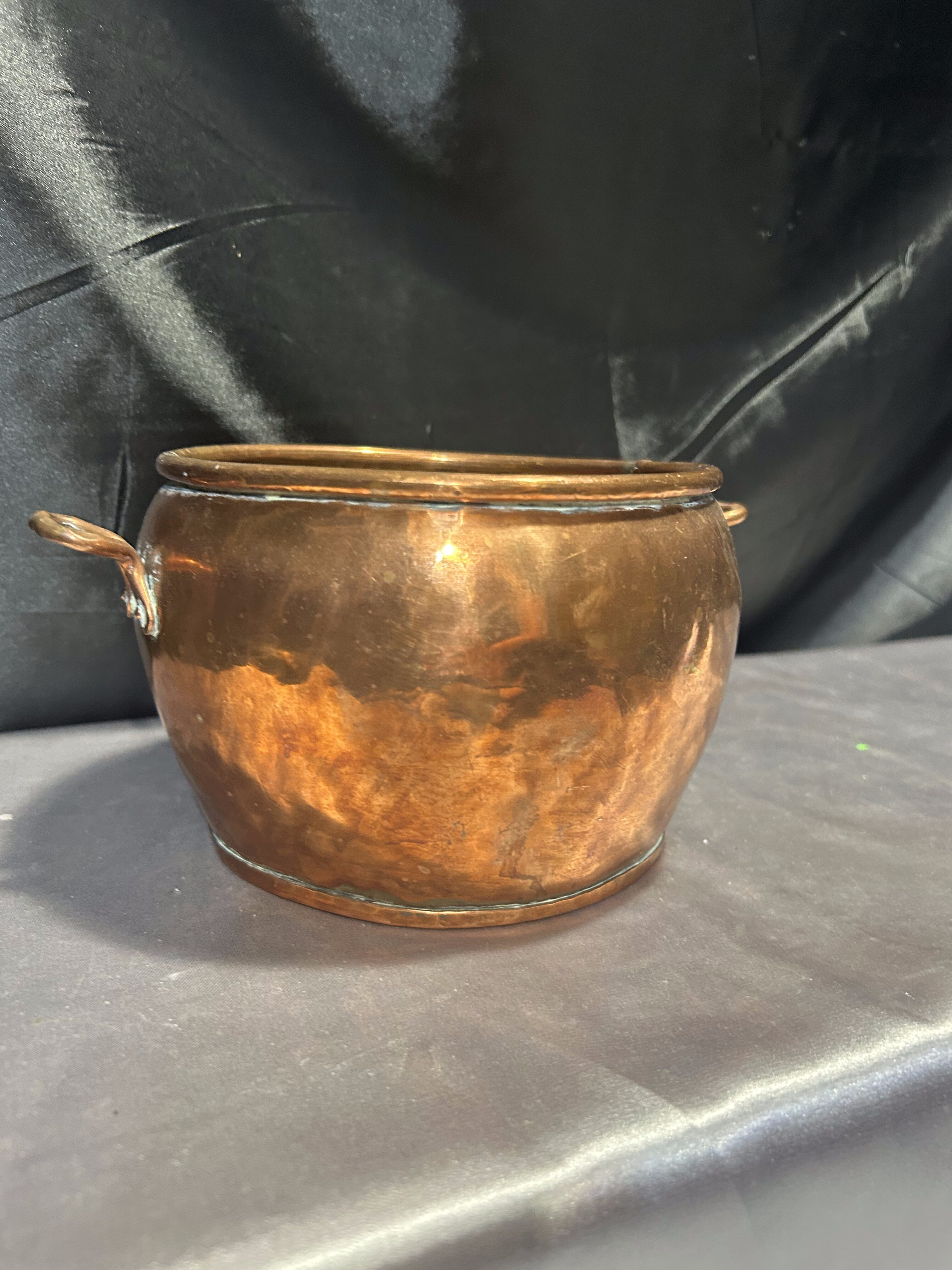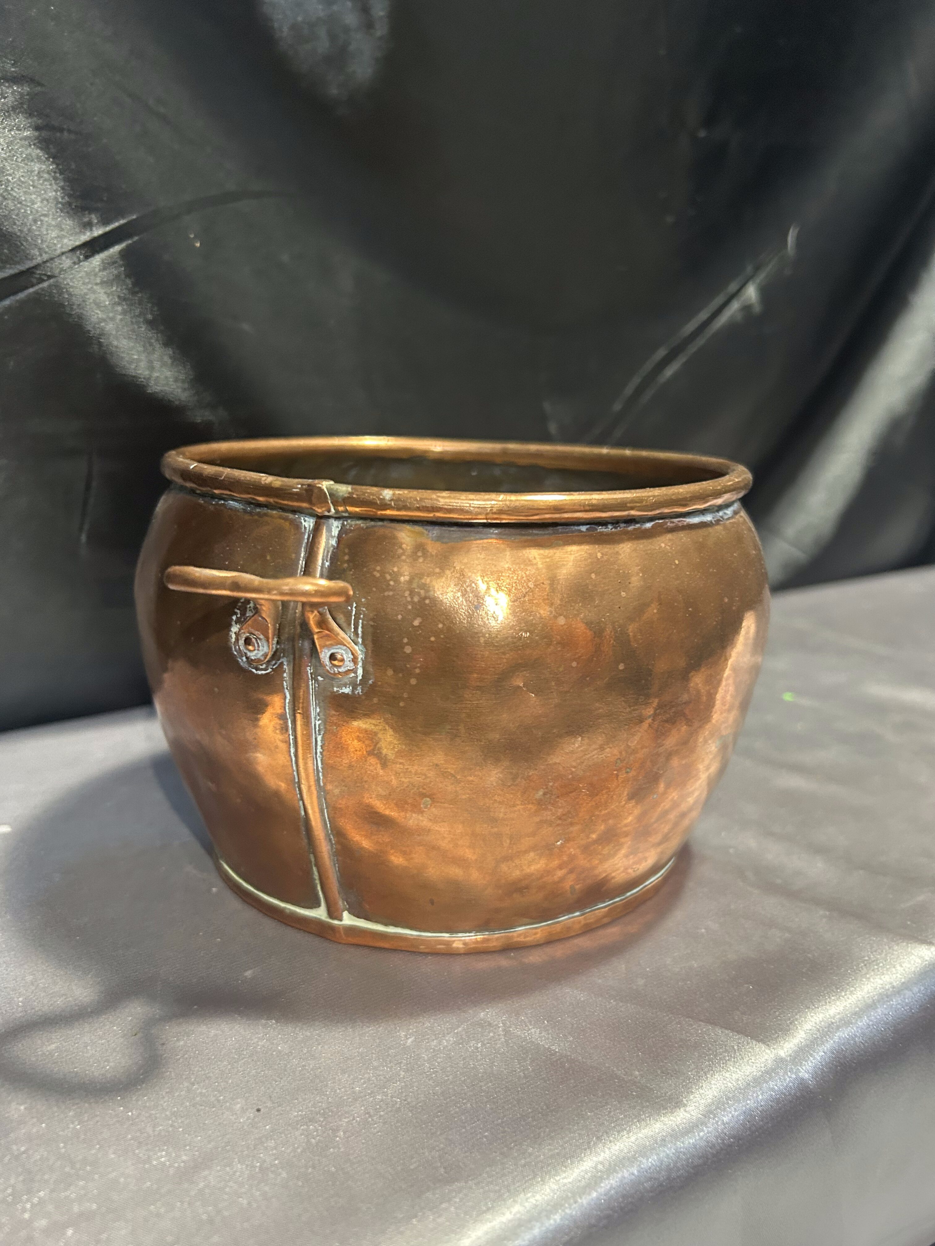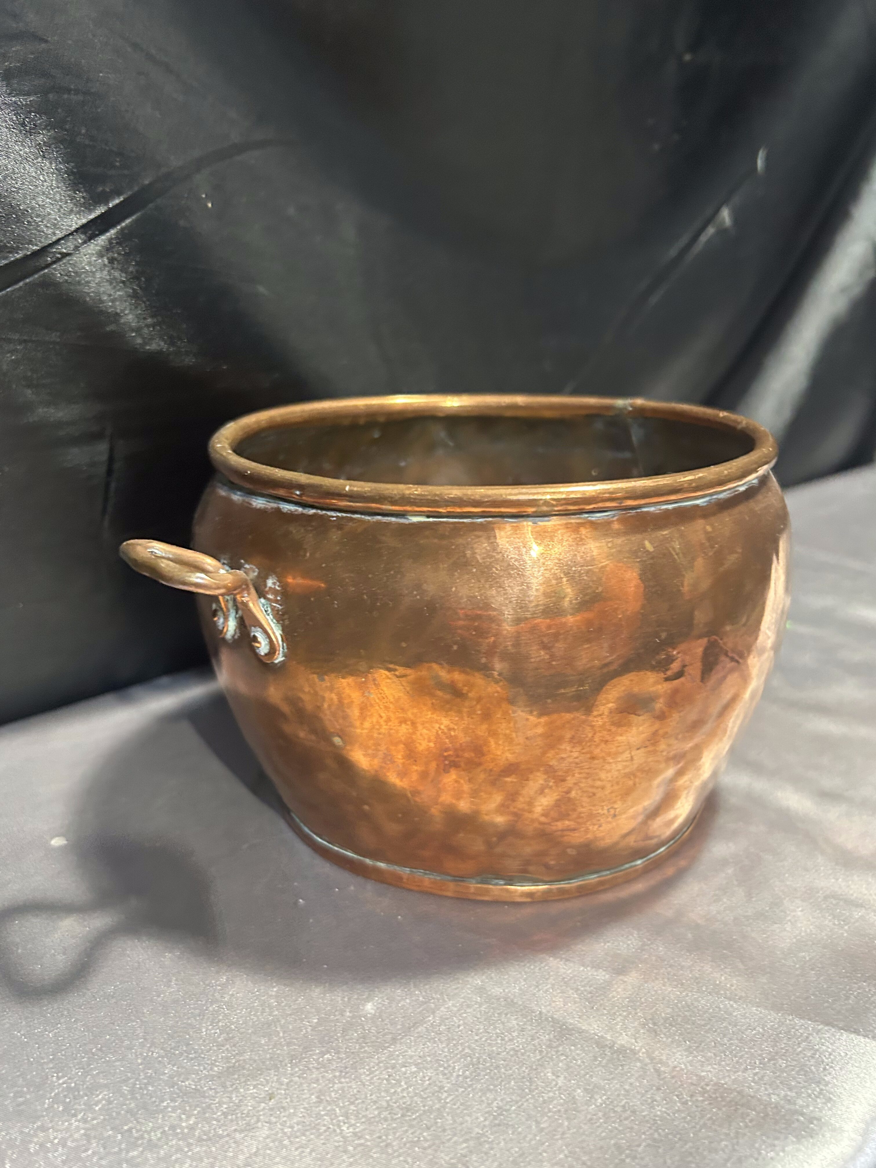 Kwietnik Miedziany z Kutymi Nogami i Uchwytami – Duży Pojemnik na Drewno