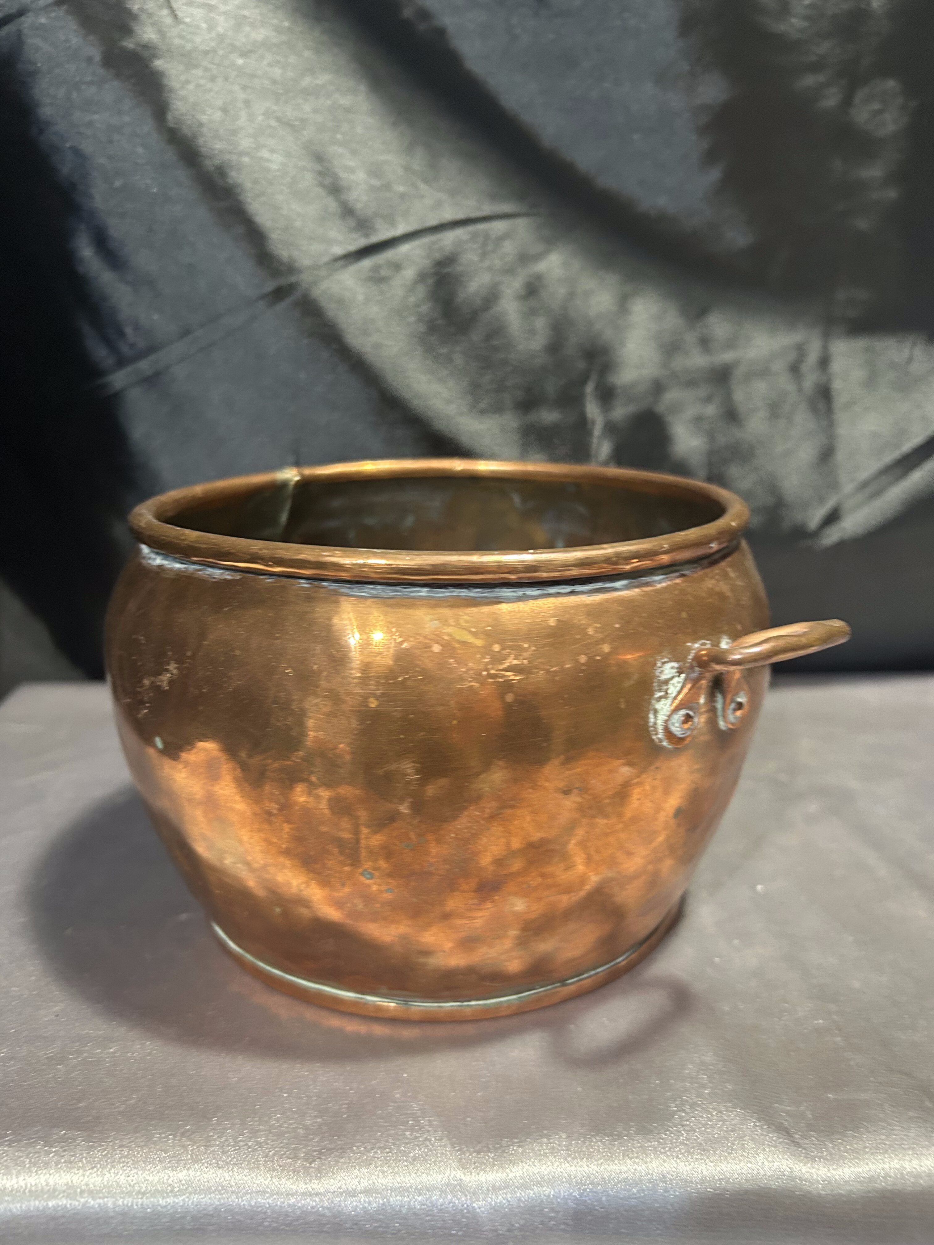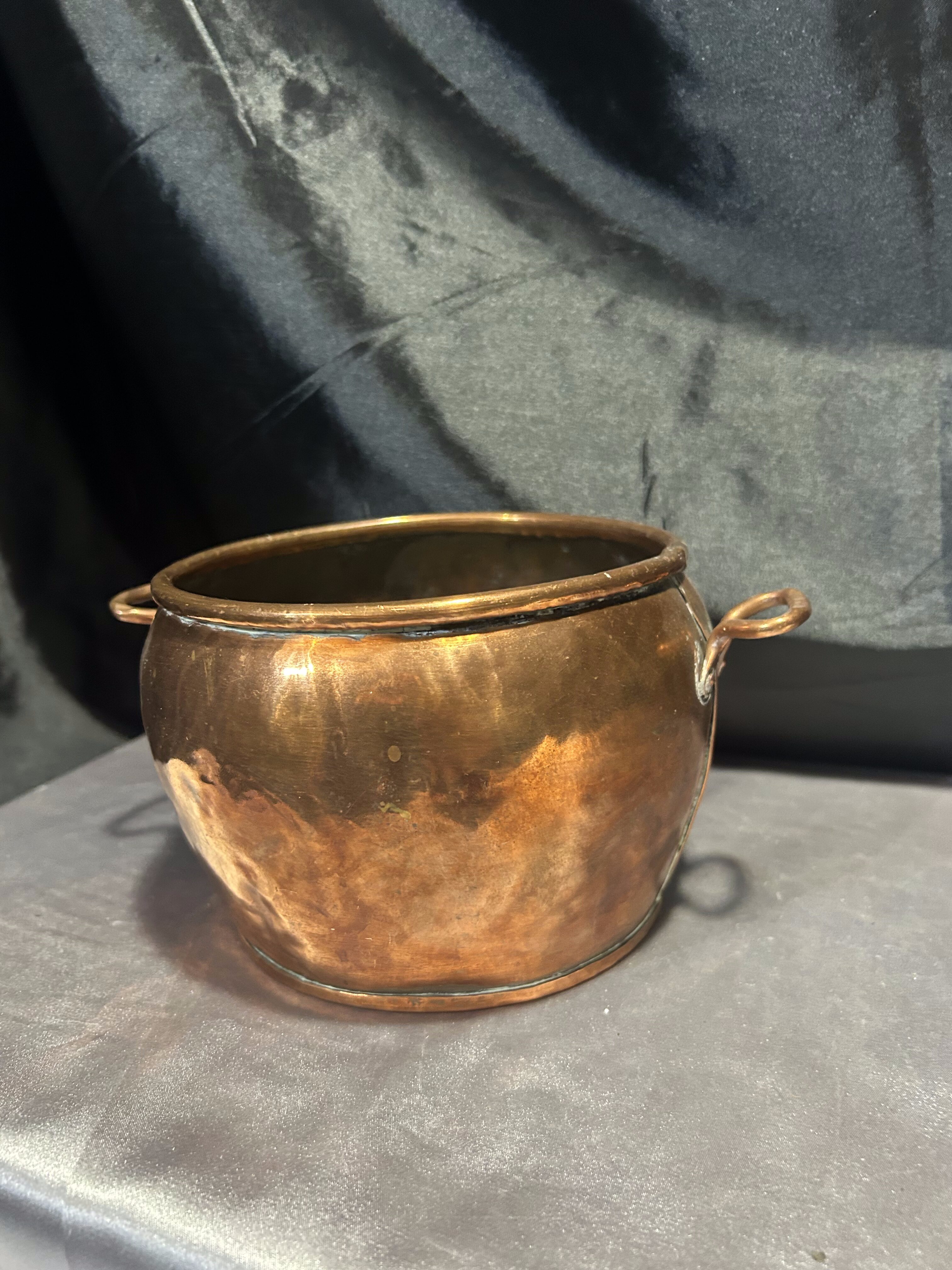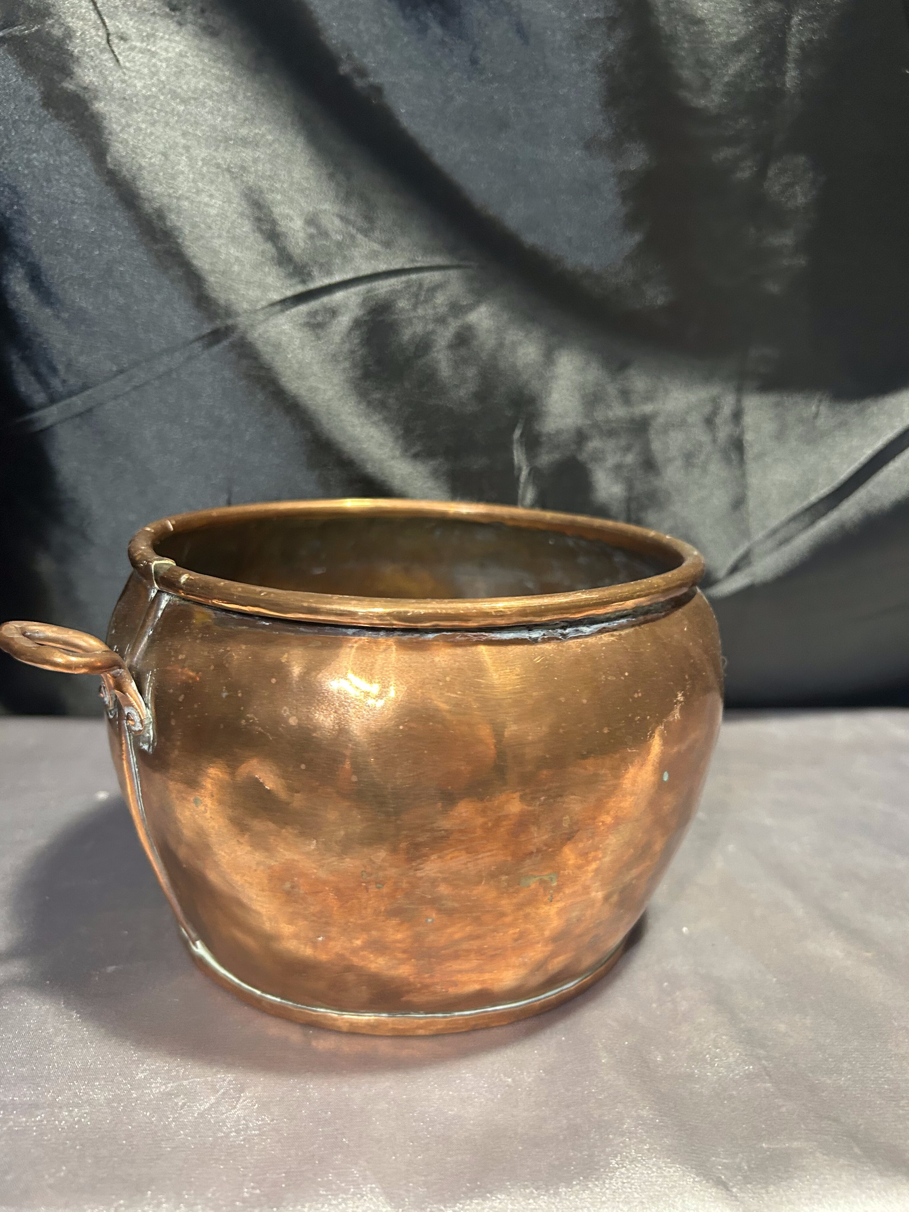 Kwietnik Miedziany z Kutymi Nogami i Uchwytami – Duży Pojemnik na Drewno