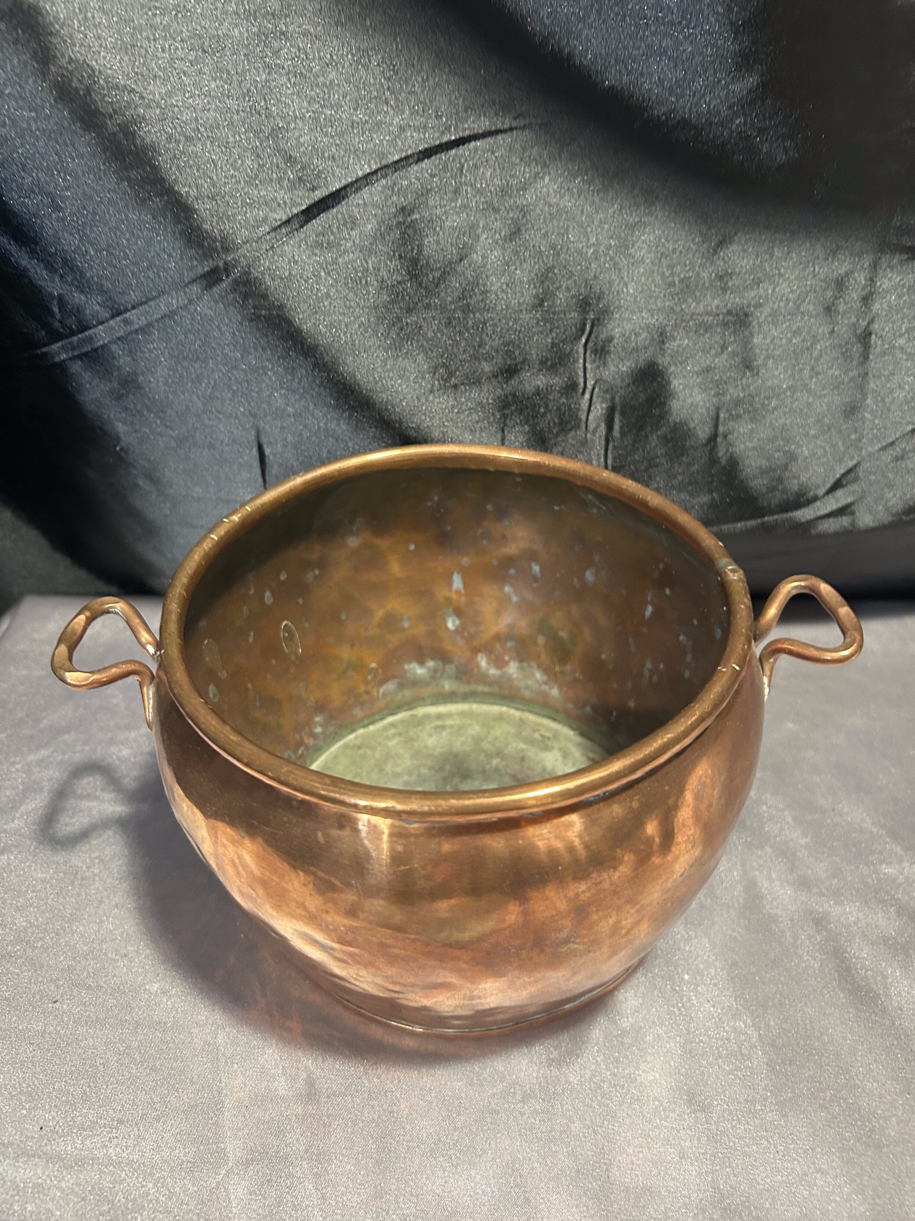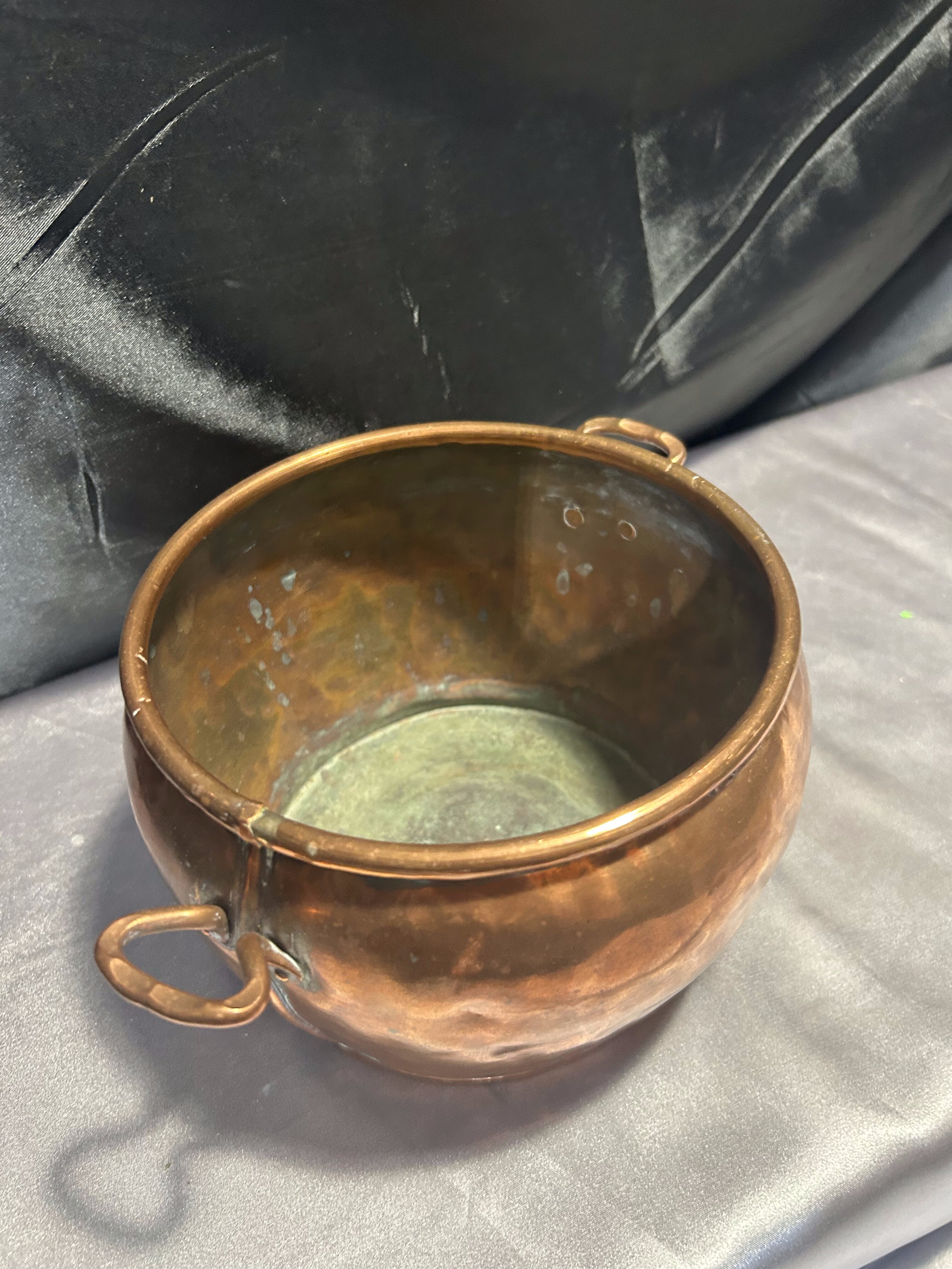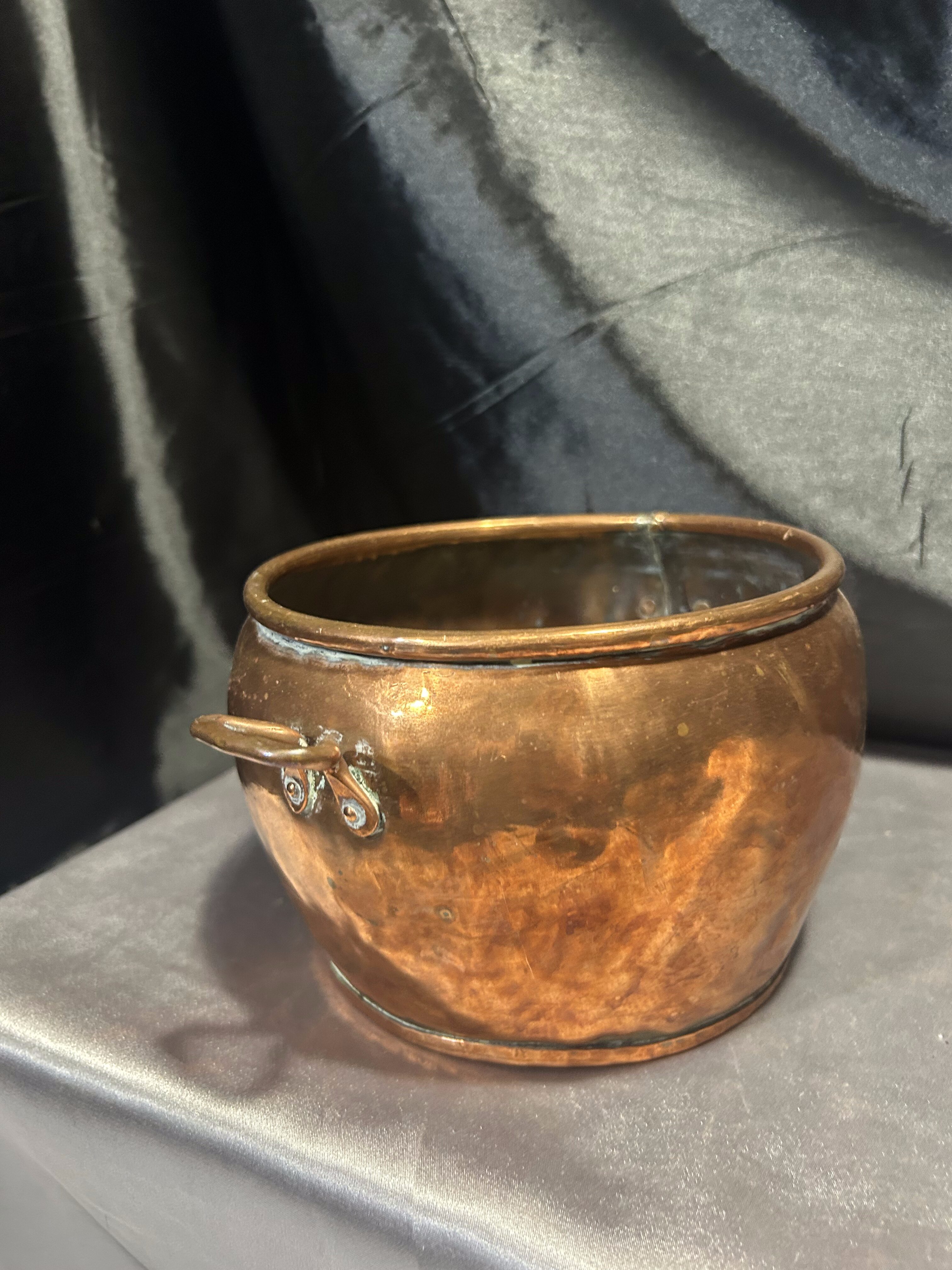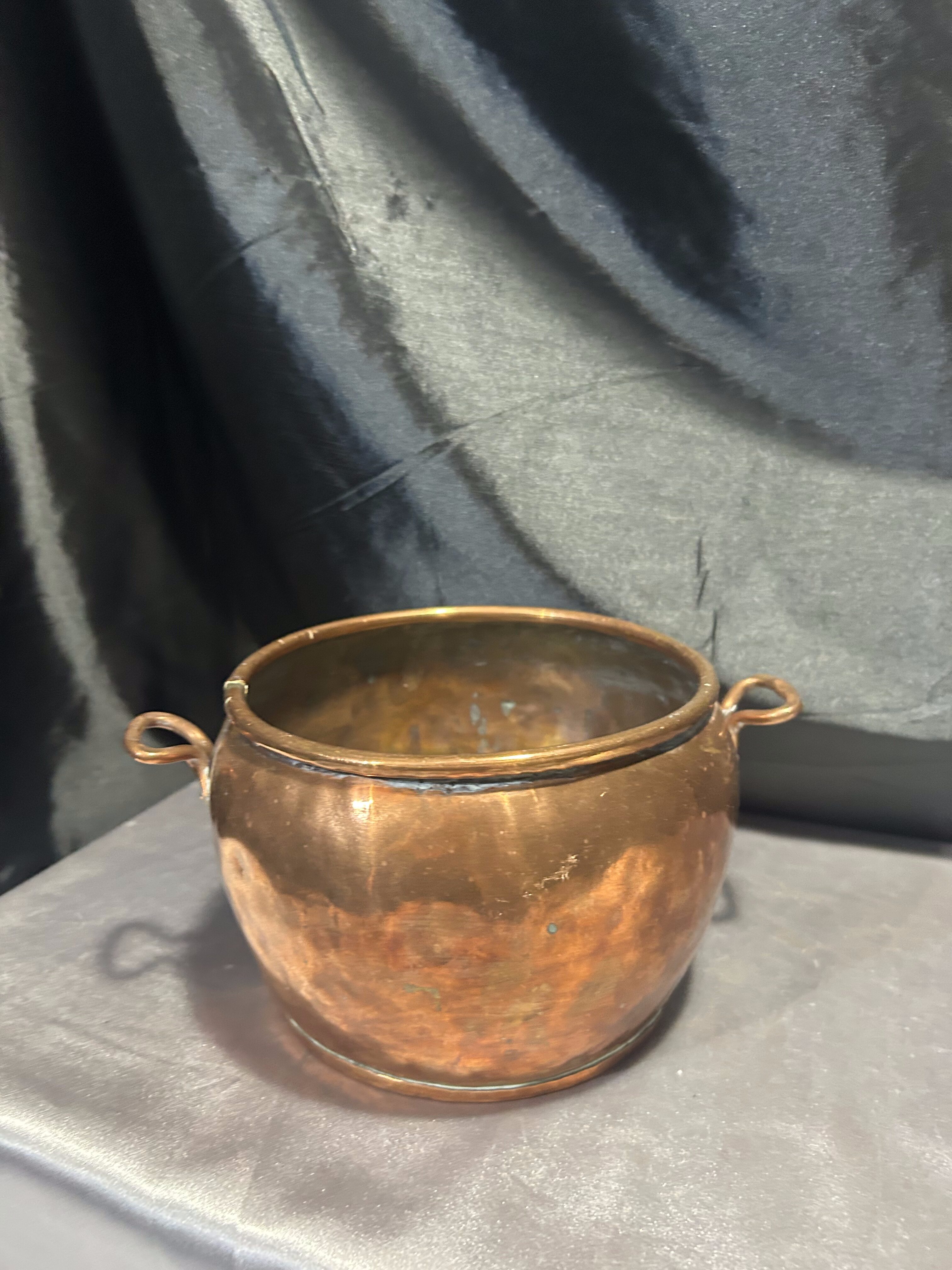 Na sprzedaż elegancka miedziana osłonka na doniczkę z dwoma ozdobnymi uszami, idealna jako kwietnik lub dekoracyjny pojemnik. Jej klasyczny design, ciepły odcień miedzi oraz subtelna patyna nadają jej wyjątkowego uroku. Doskonale sprawdzi się zarówno we wnętrzach, jak i jako element dekoracyjny na tarasie czy w ogrodzie.