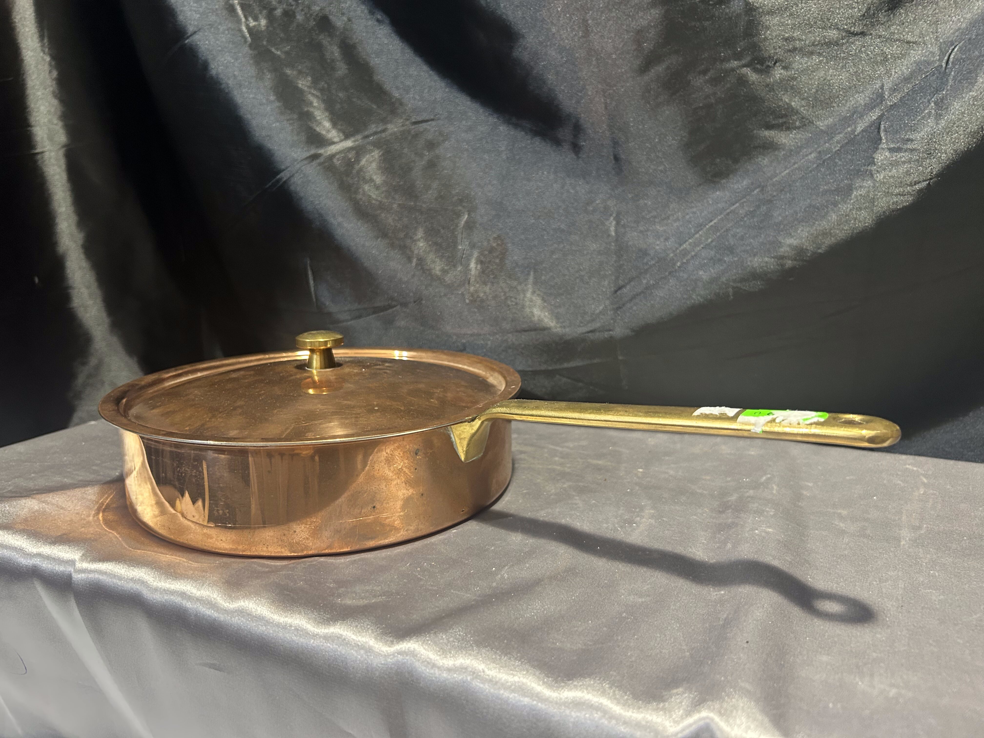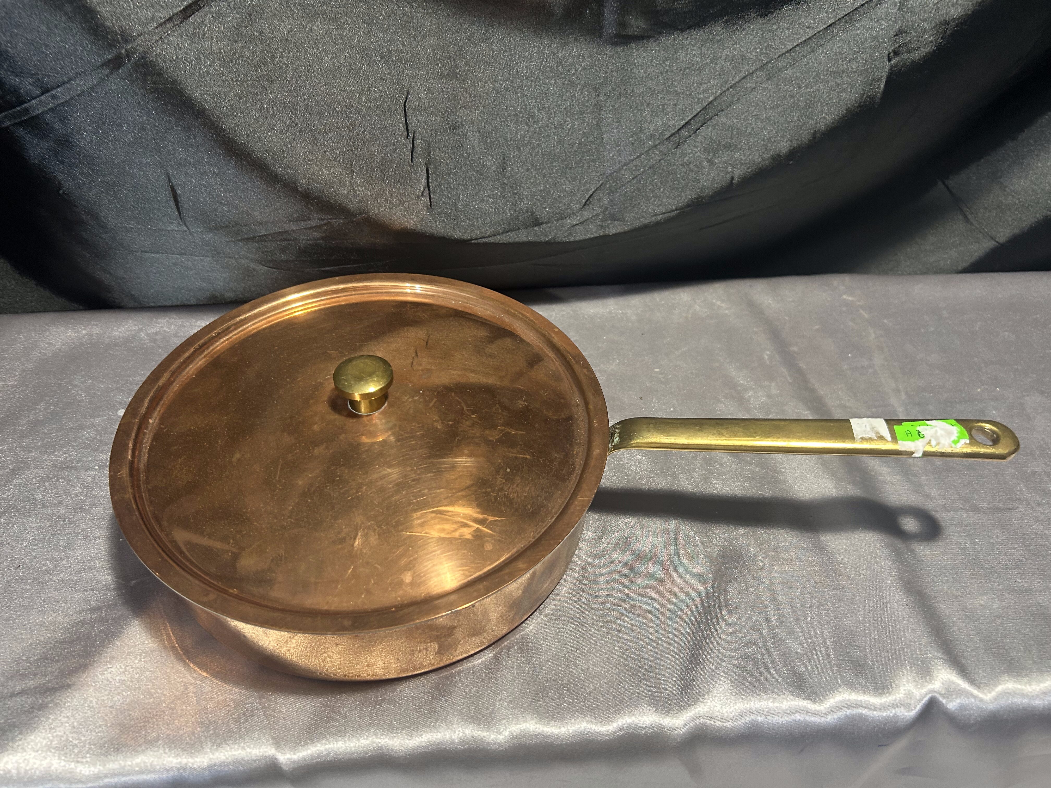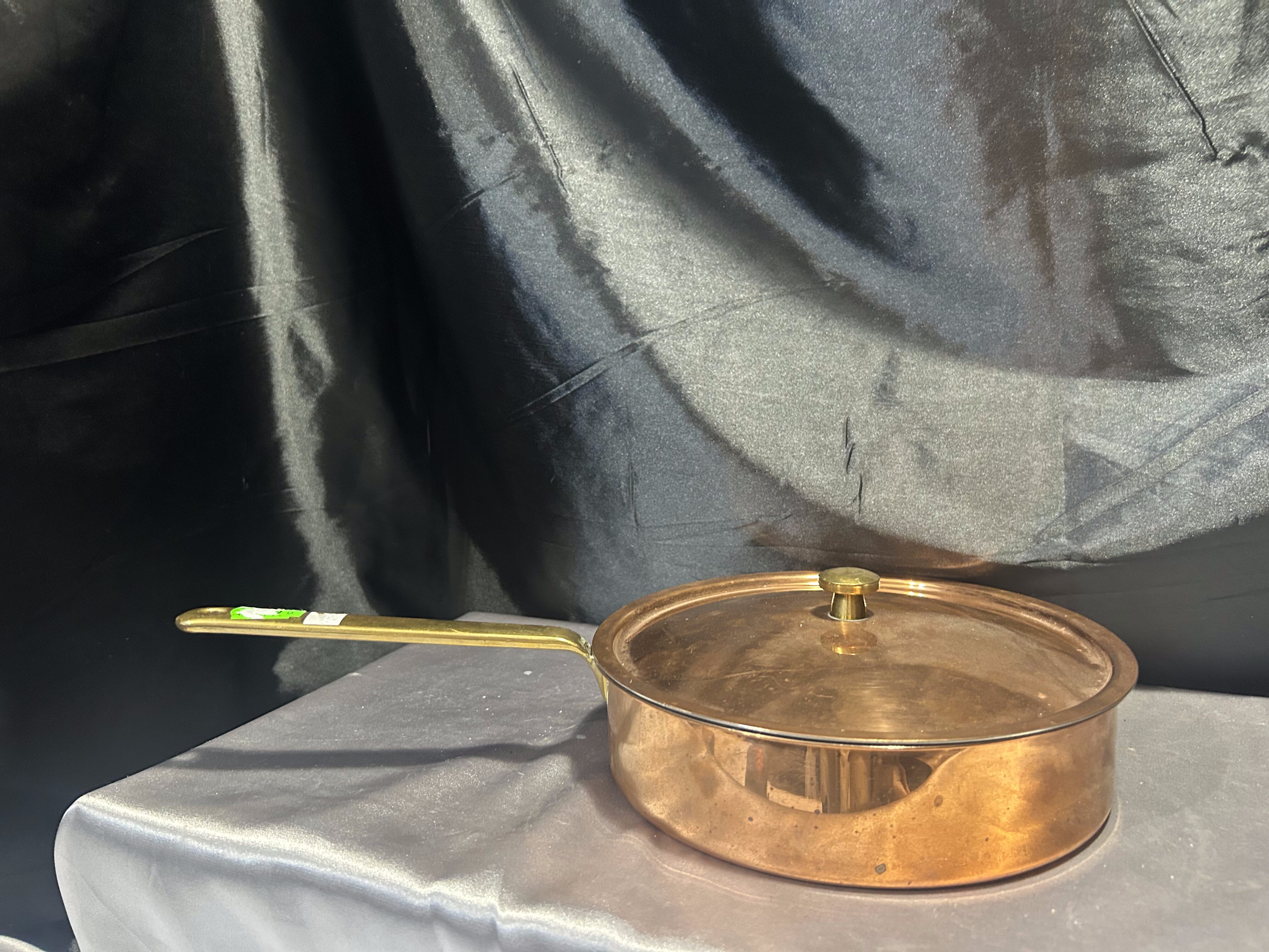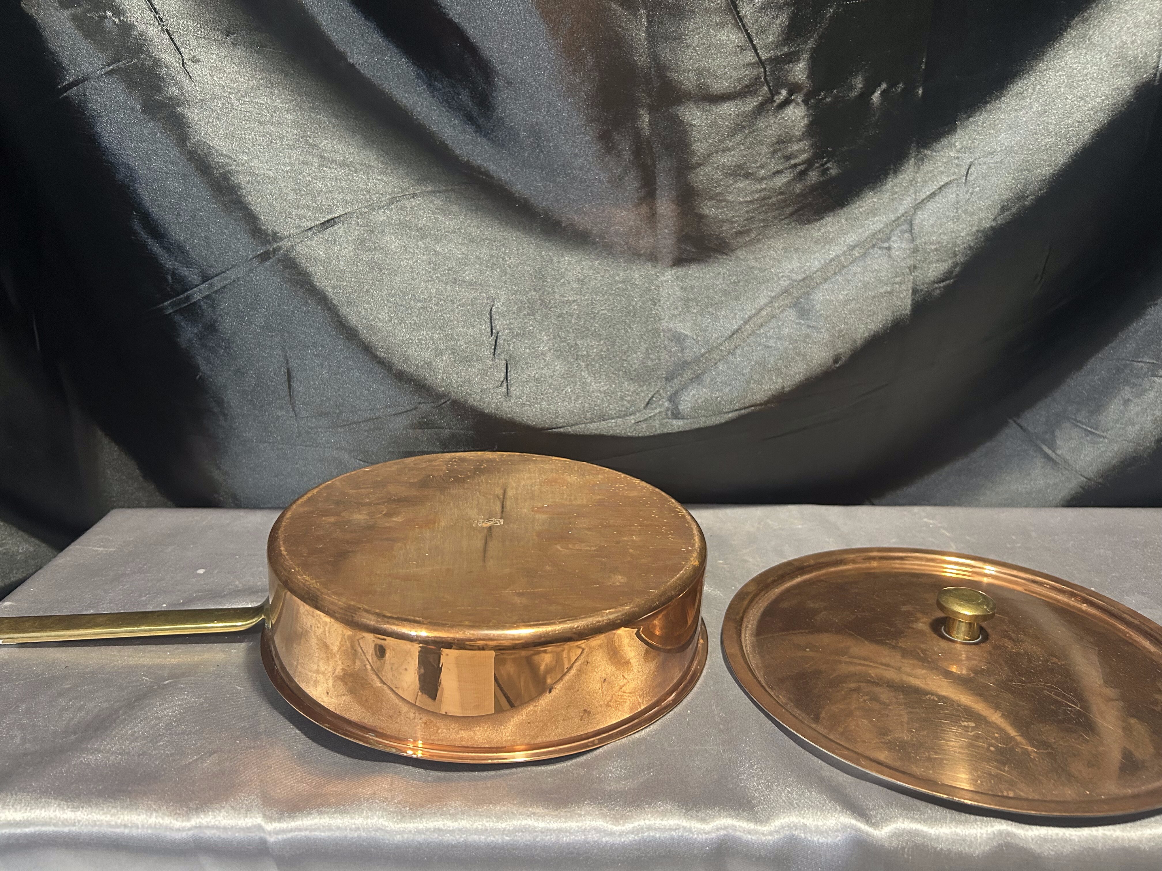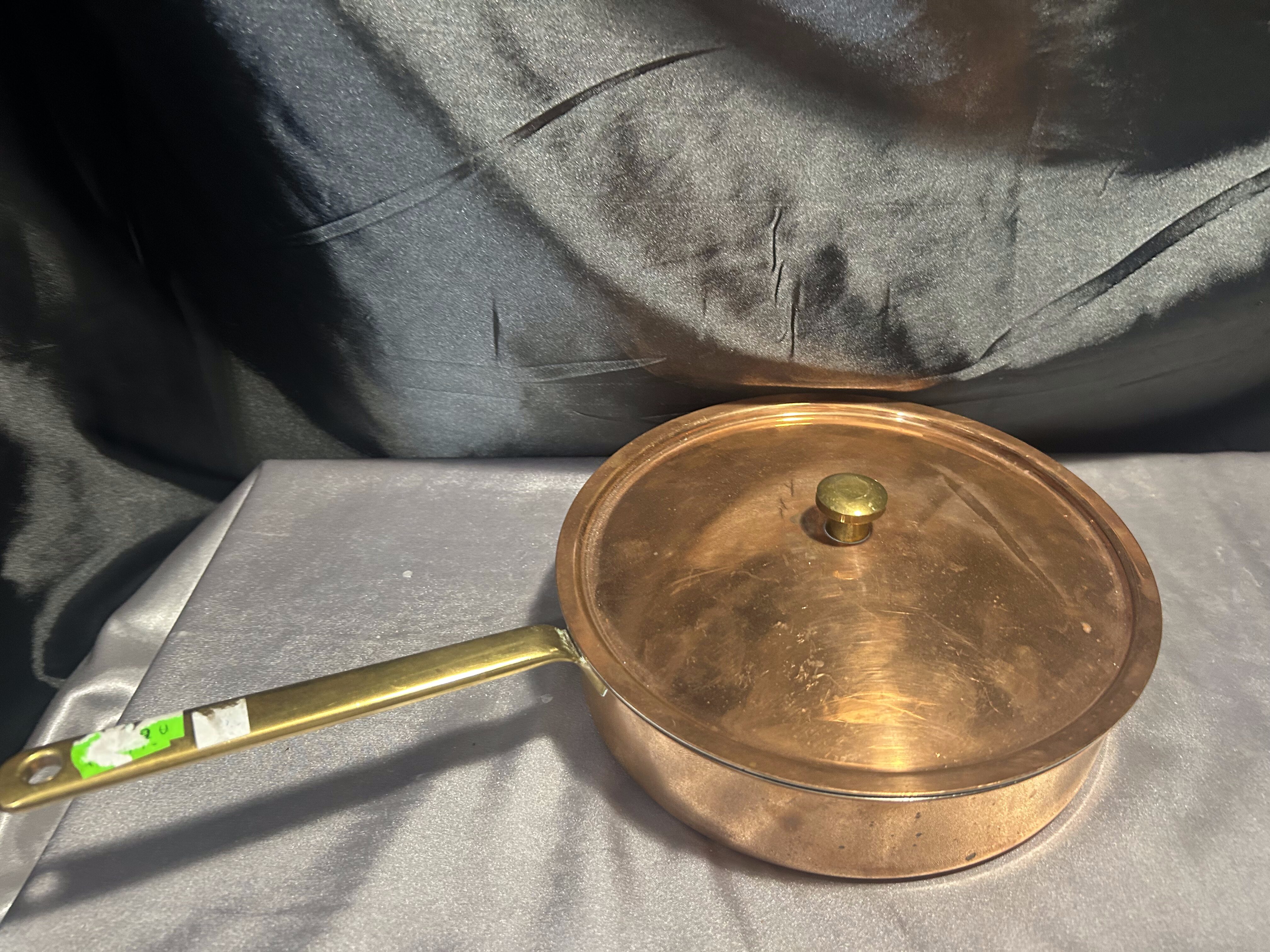 Miedziana Patelnia z Pokrywką – Sygnowana, Mosiężna Rączka, 1,245 kg