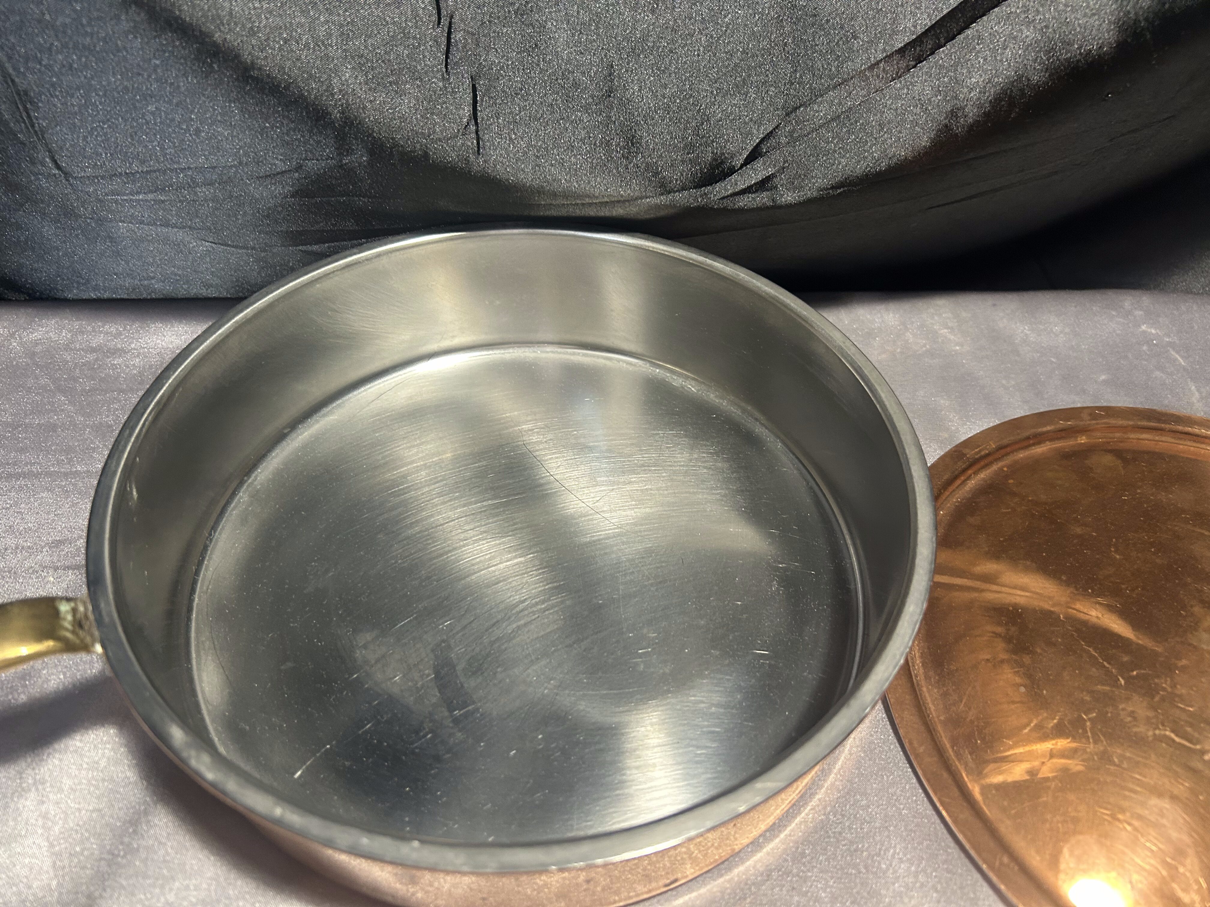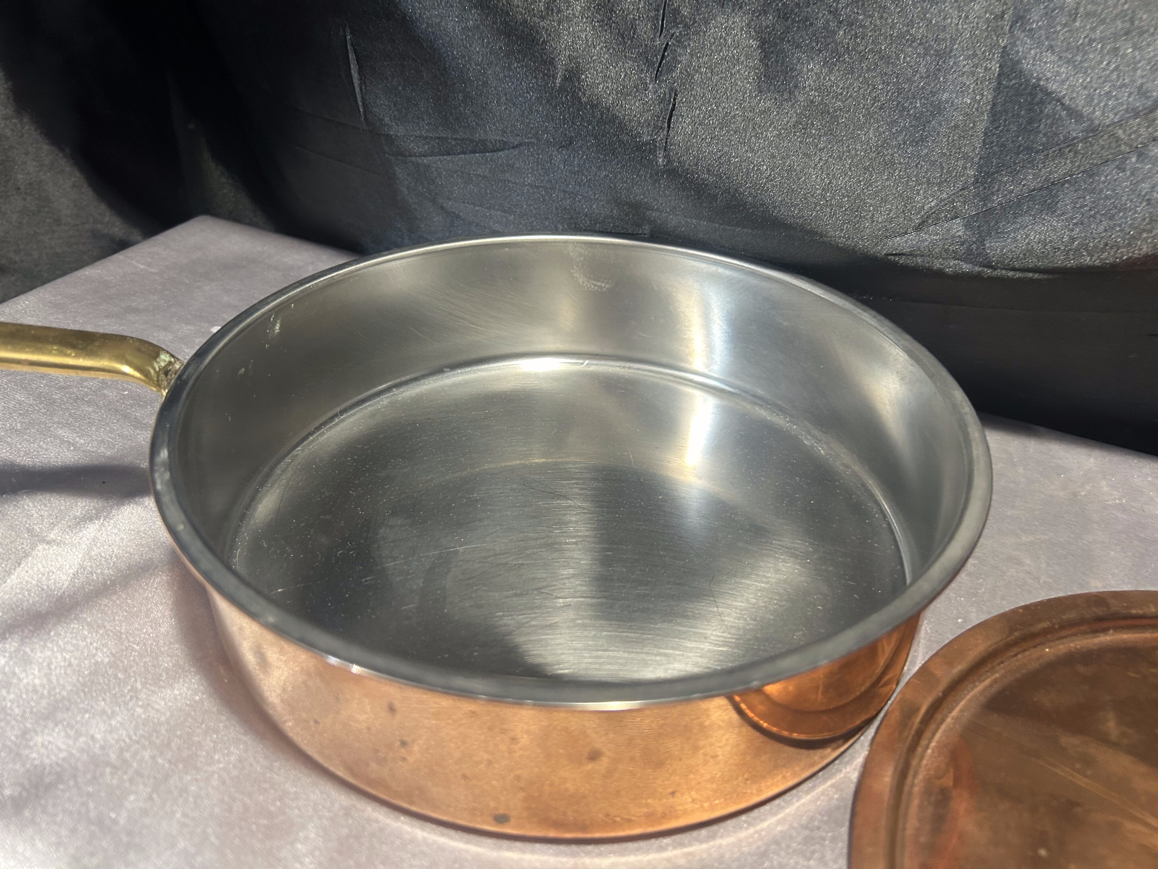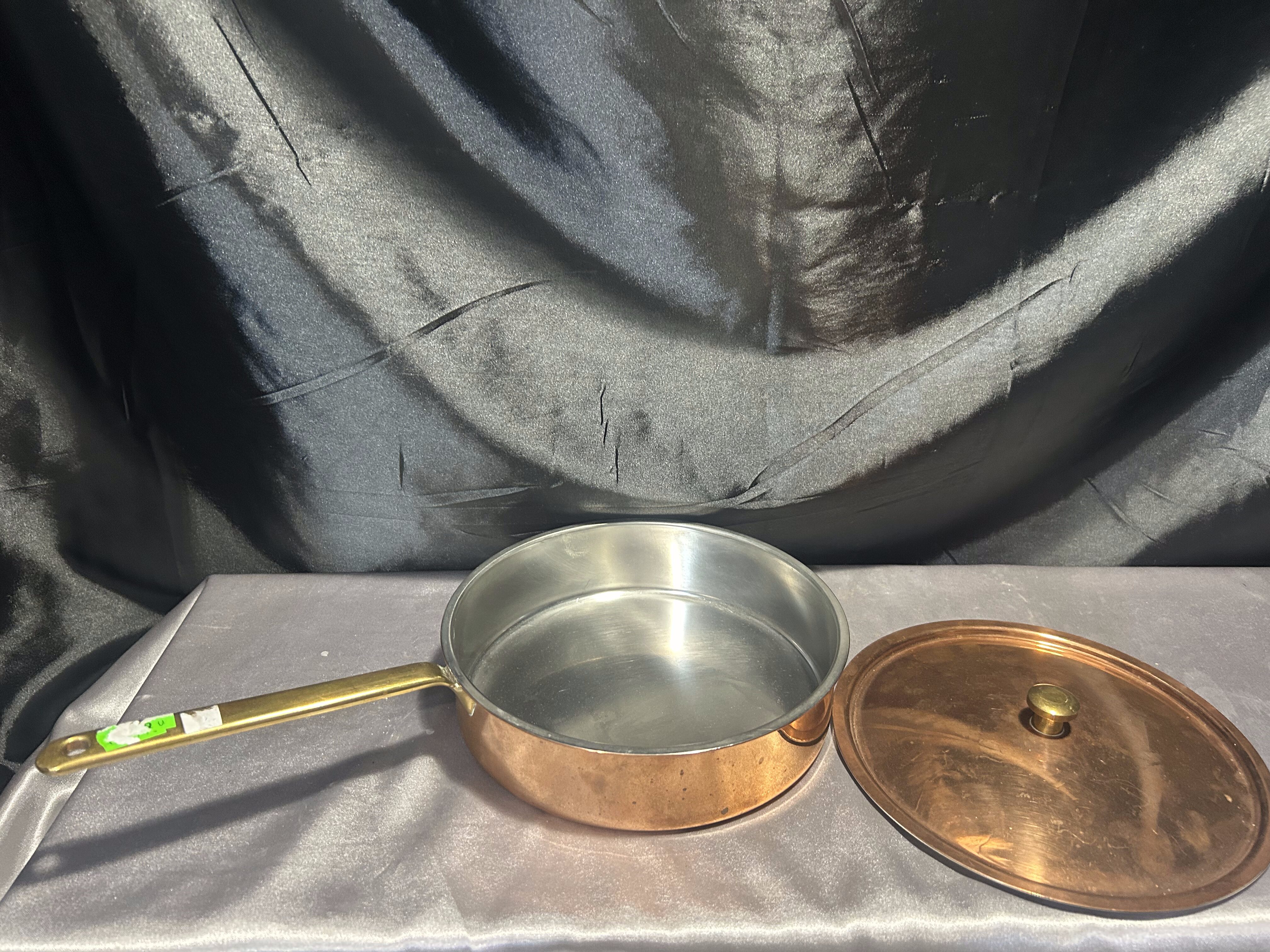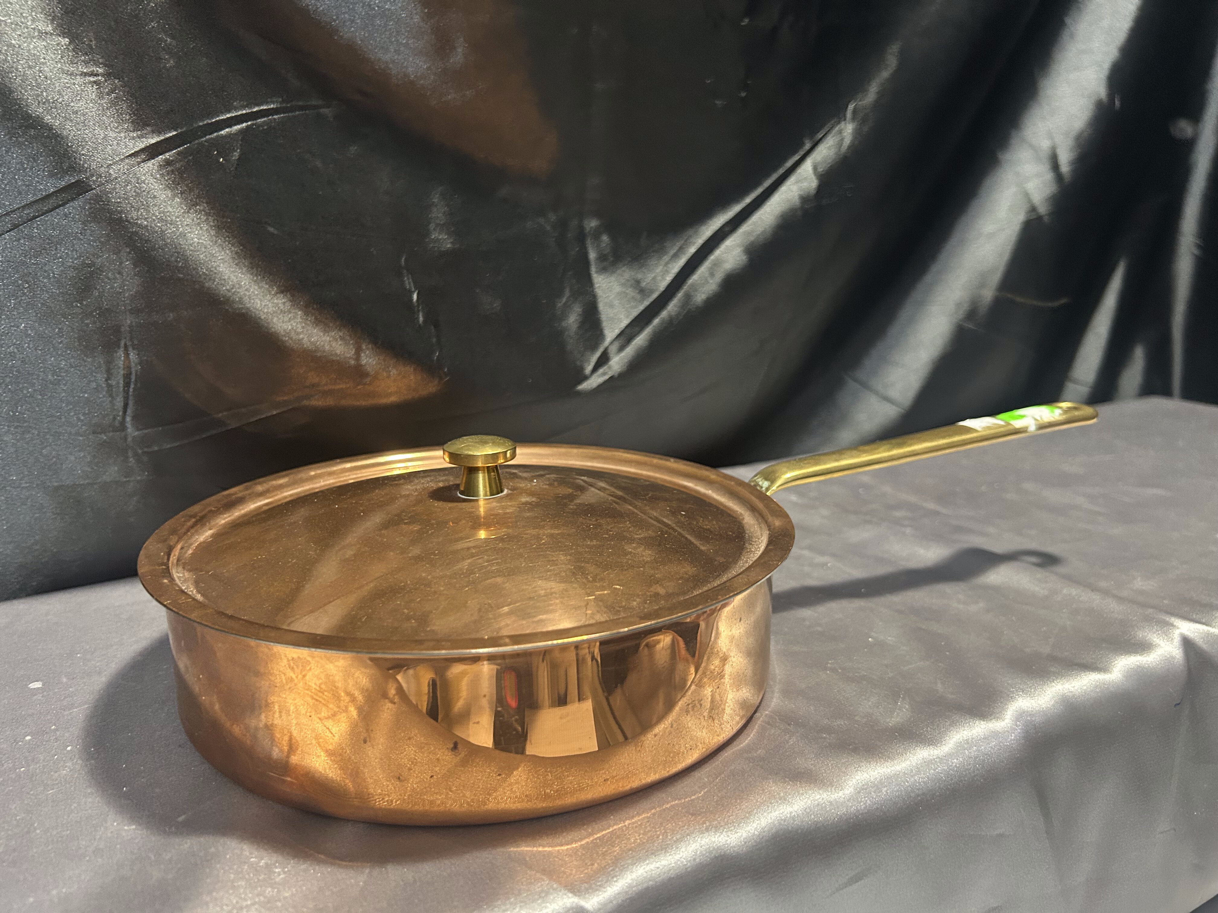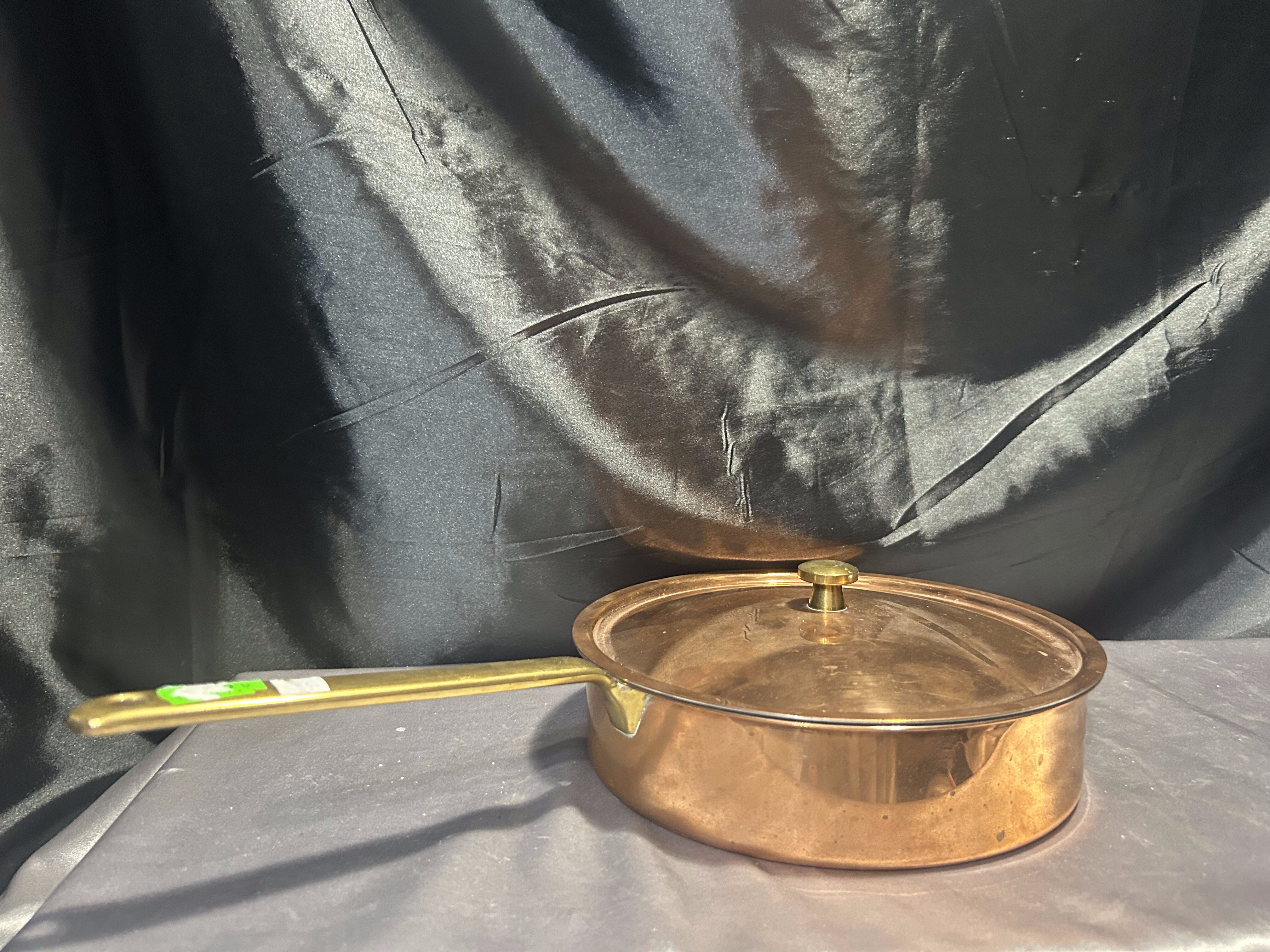 Miedziana Patelnia z Pokrywką – Sygnowana, Mosiężna Rączka, 1,245 kg