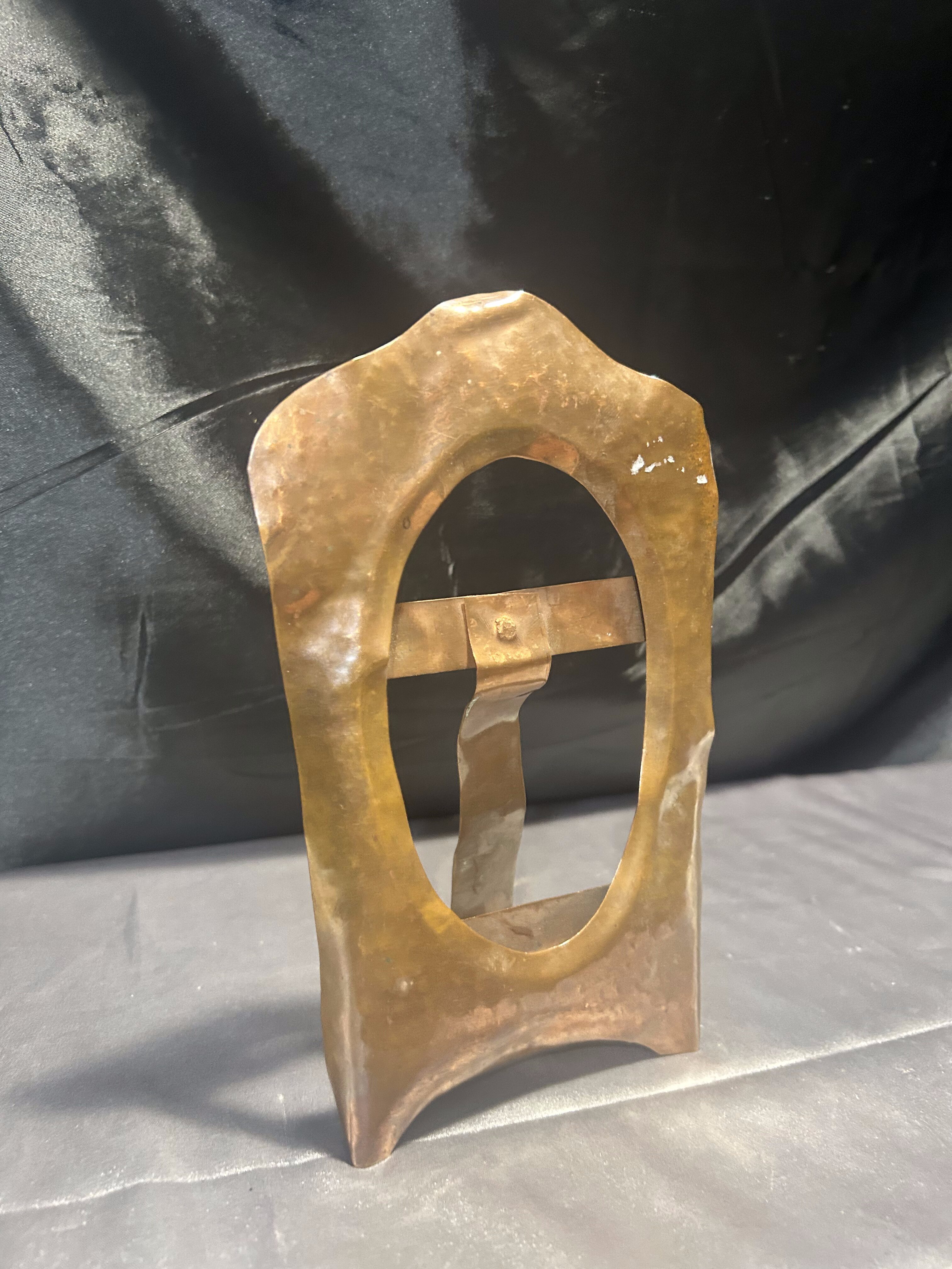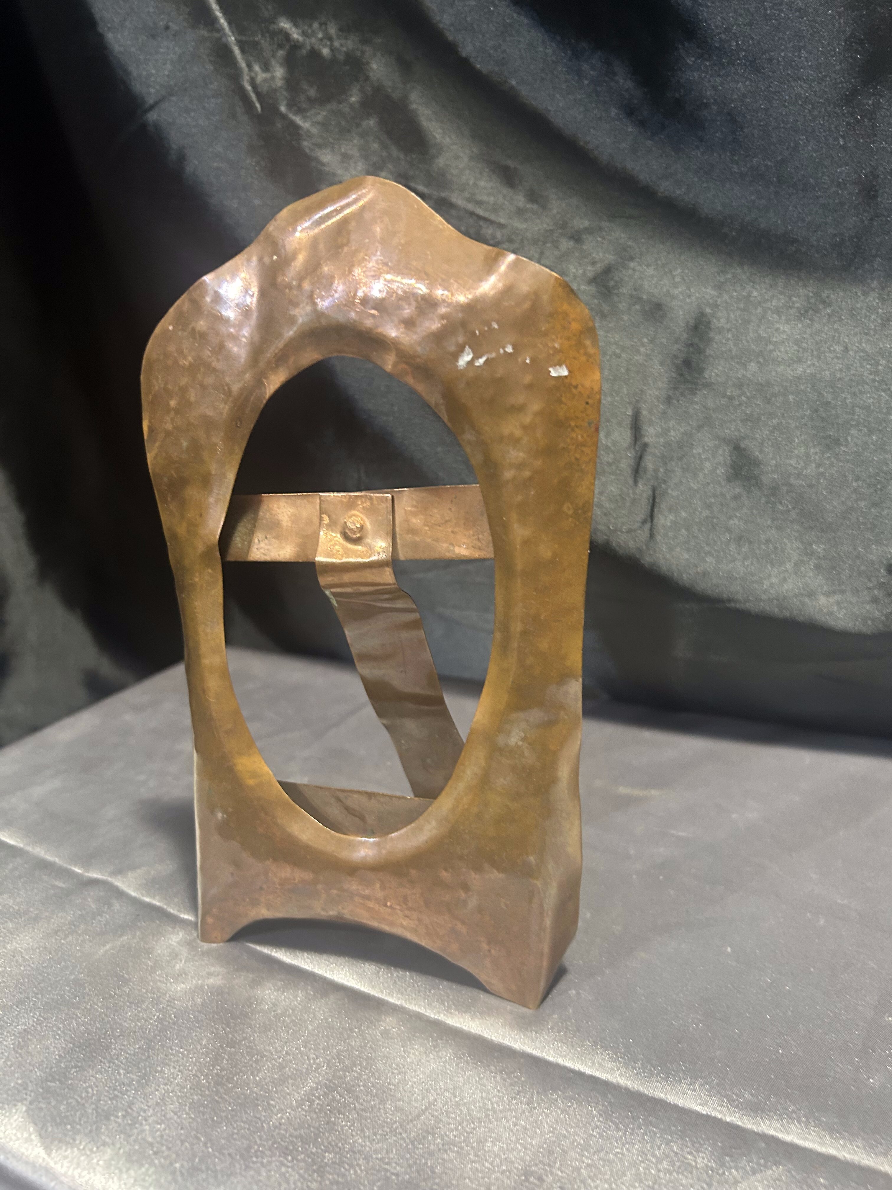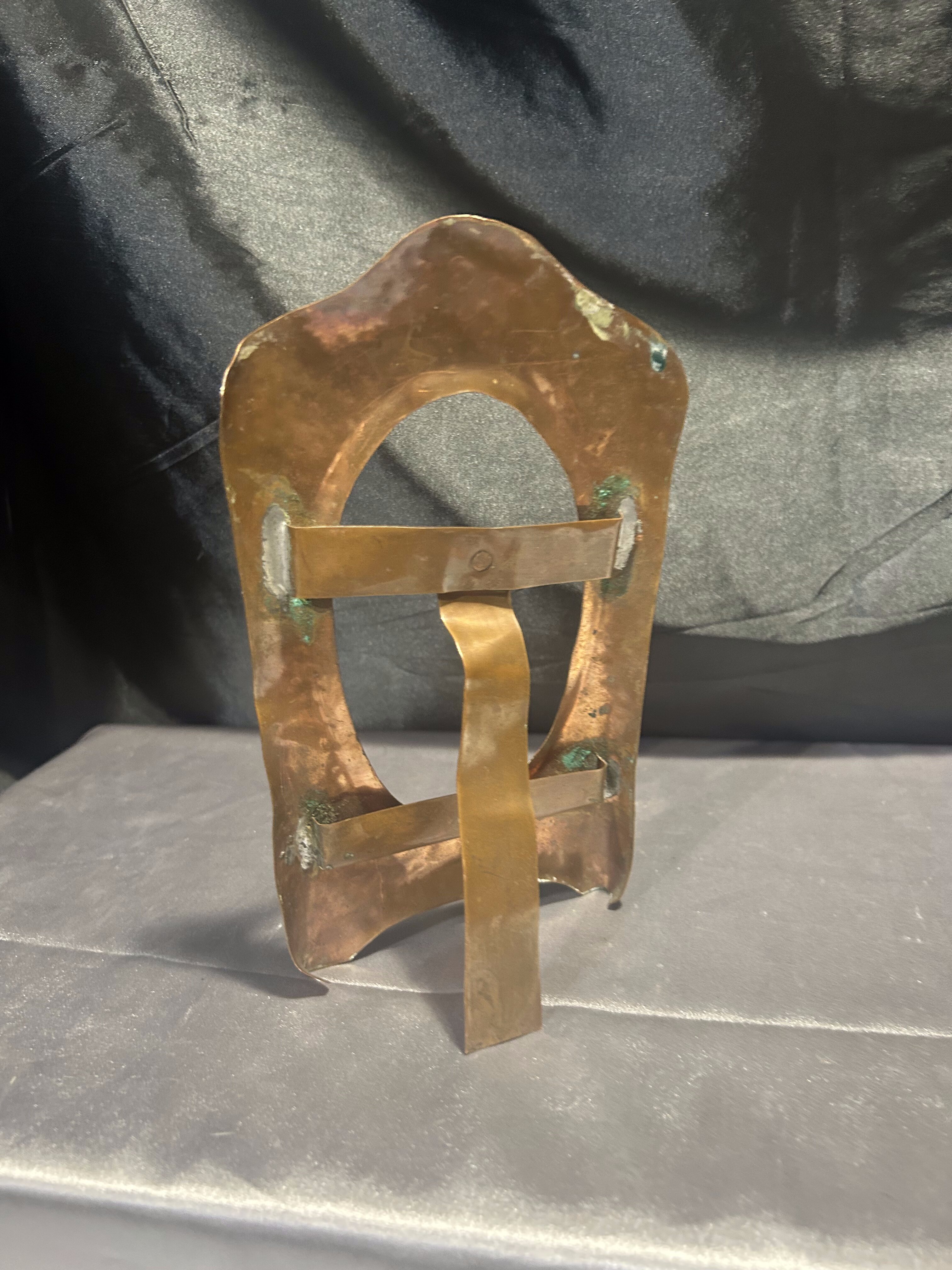 Na sprzedaż stylowa ramka na zdjęcie wykonana z miedzi, przeznaczona do postawienia na komodzie, półce lub biurku. Klasyczny, prostokątny kształt i ciepły metaliczny połysk sprawiają, że doskonale eksponuje ulubione fotografie, dodając wnętrzu elegancji i osobistego charakteru.