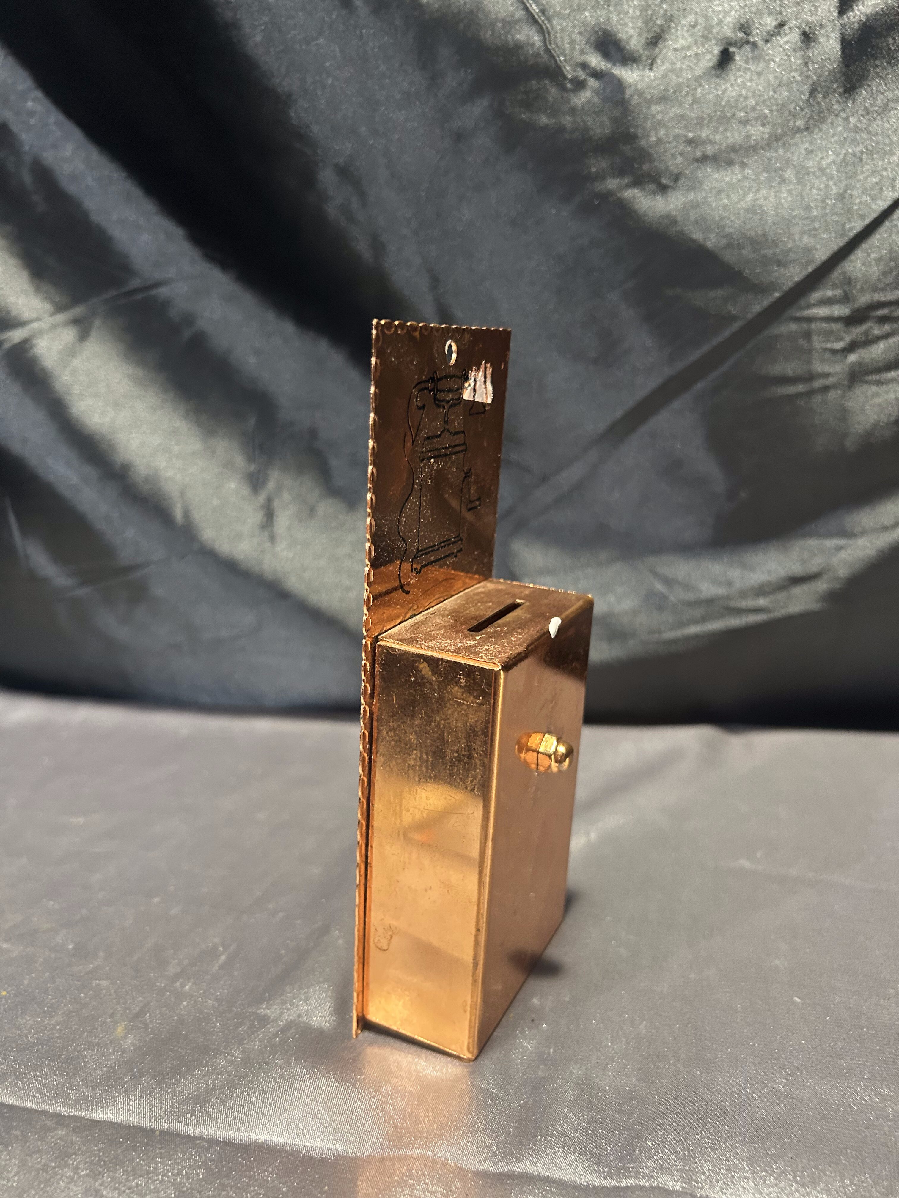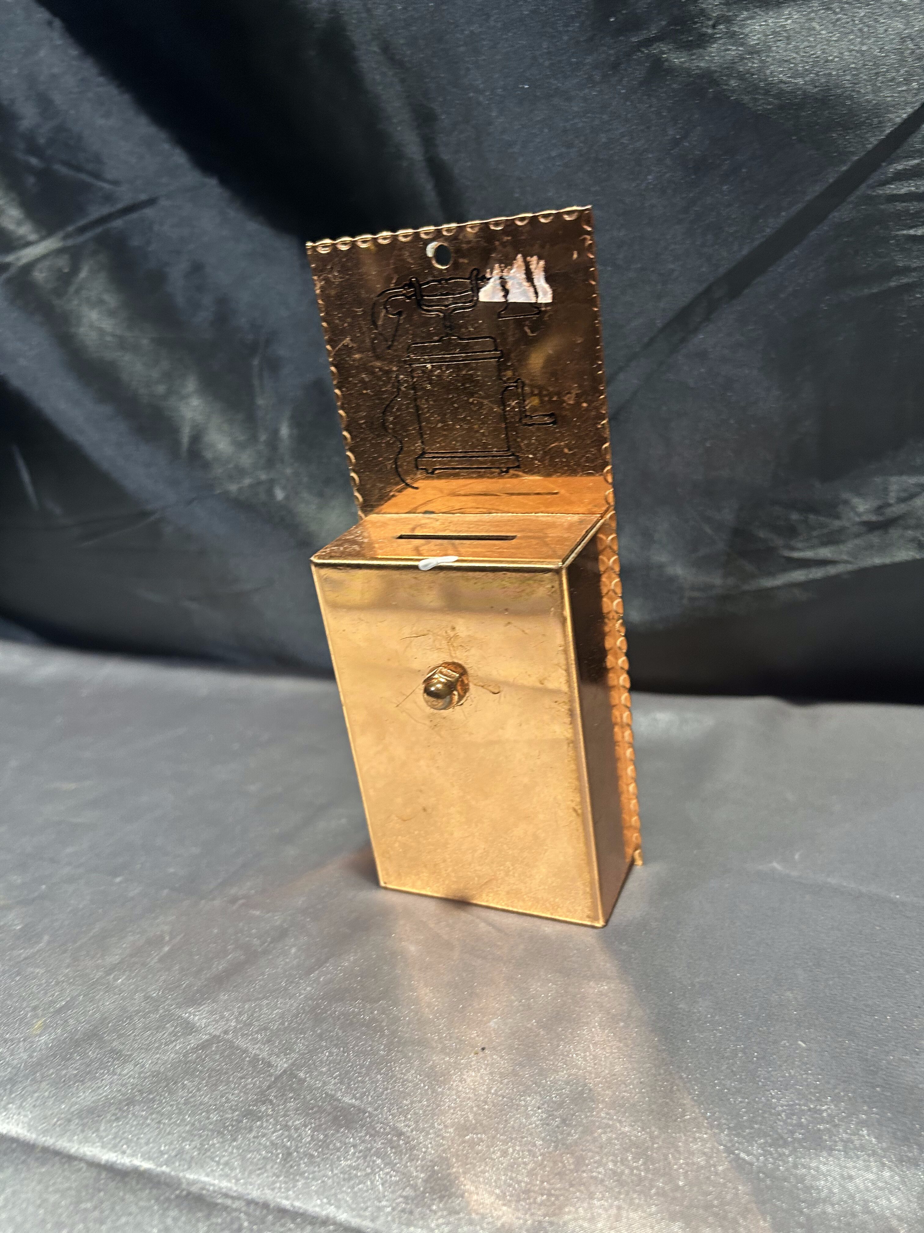 Stylowa skarbonka wykonana z miedzi, zaprojektowana z myślą o zawieszeniu na ścianie. Jej połyskliwa powierzchnia przyciąga wzrok, a delikatne tłoczenia z motywem retro nadają jej unikalnego charakteru. Idealna jako dekoracja do kuchni, warsztatu, biura lub wnętrz w stylu vintage. Rzadko spotykany przedmiot – łączy funkcję praktyczną z ozdobną.