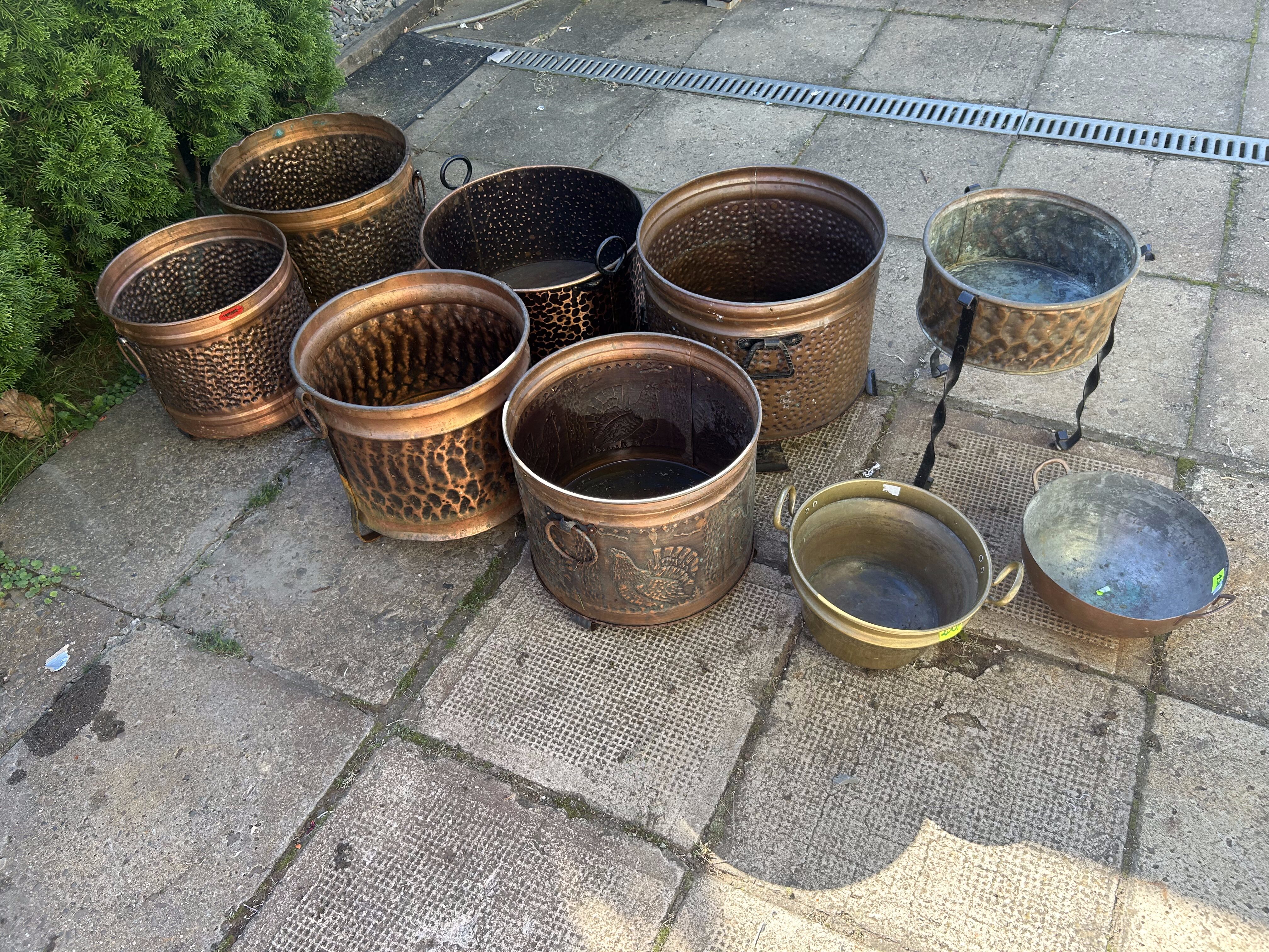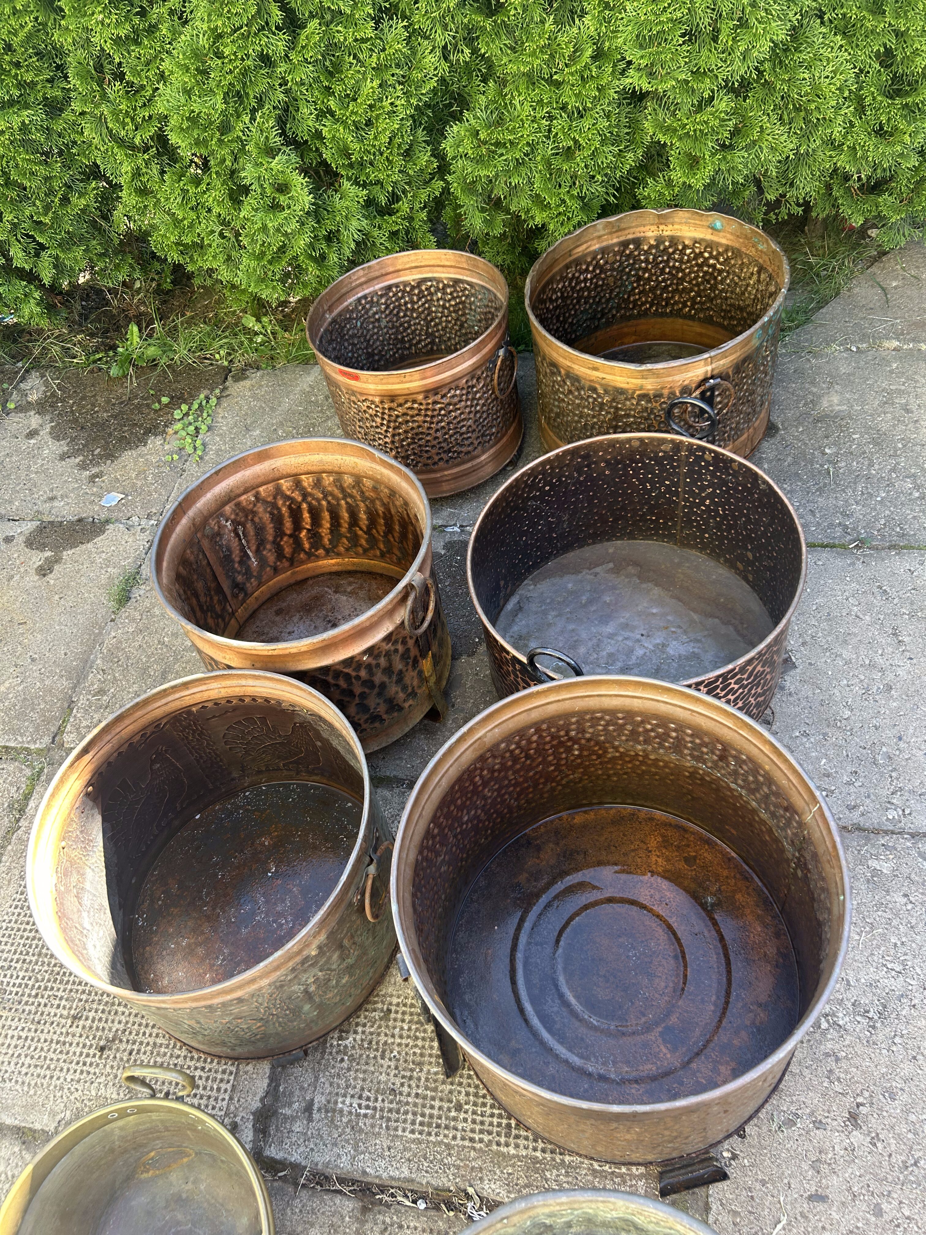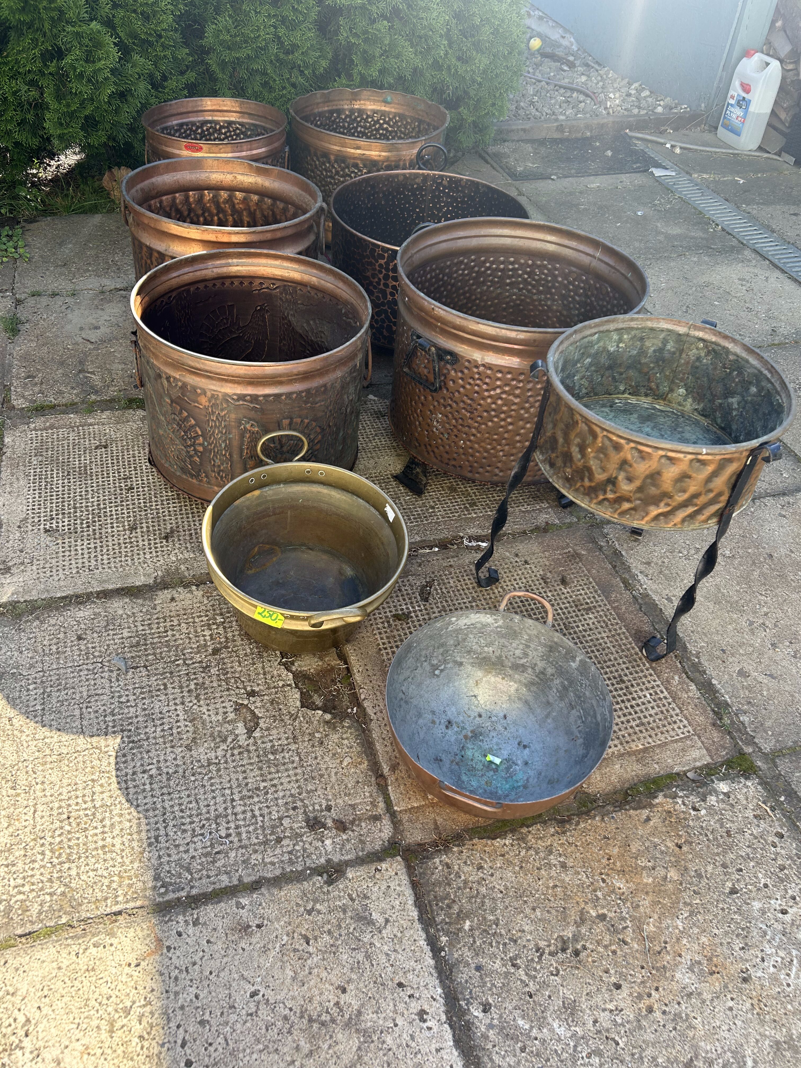 Kolekcja dziewięciu wyjątkowych pojemników, wykonanych z miedzi, z elementami żeliwnymi i metalowymi. Każdy egzemplarz ma swój unikalny charakter – od misternie zdobionych wzorów po eleganckie wykończenie młotkowane. Mogą służyć jako praktyczne pojemniki na drewno przy kominku lub pełnić funkcję efektownych, dużych kwietników w domu czy ogrodzie. Solidna konstrukcja zapewnia trwałość, a dekoracyjne detale nadają im niepowtarzalnego uroku.