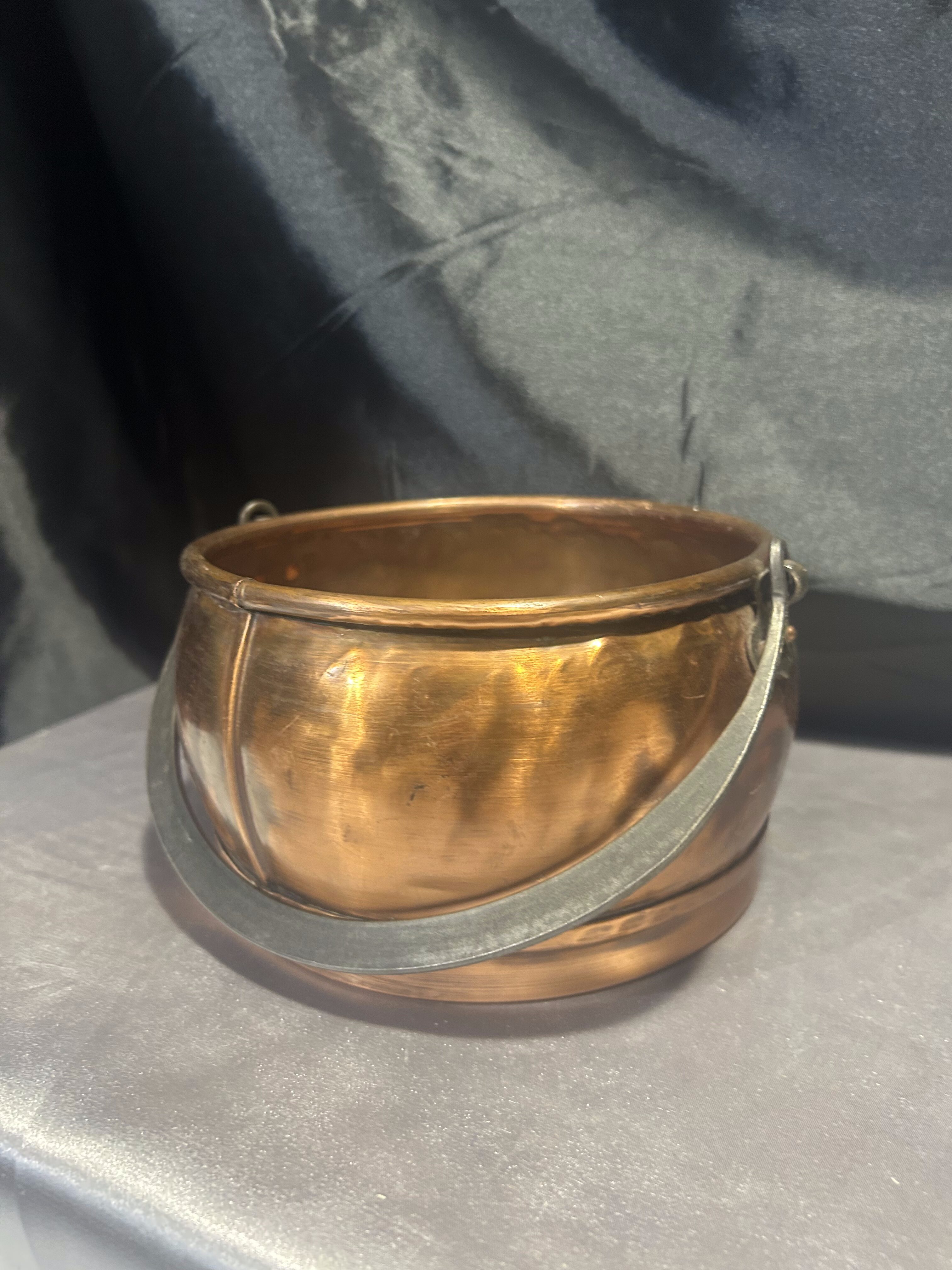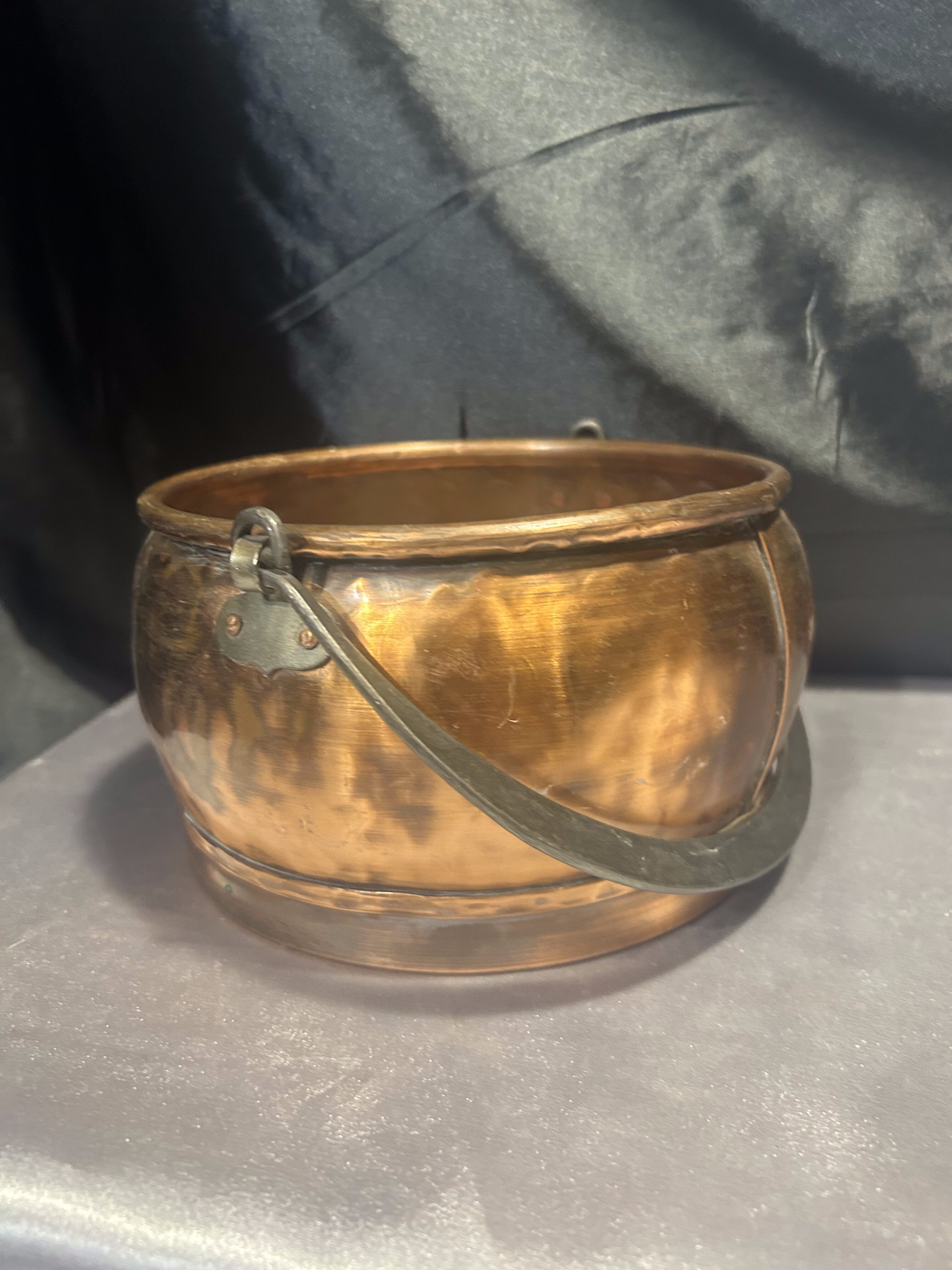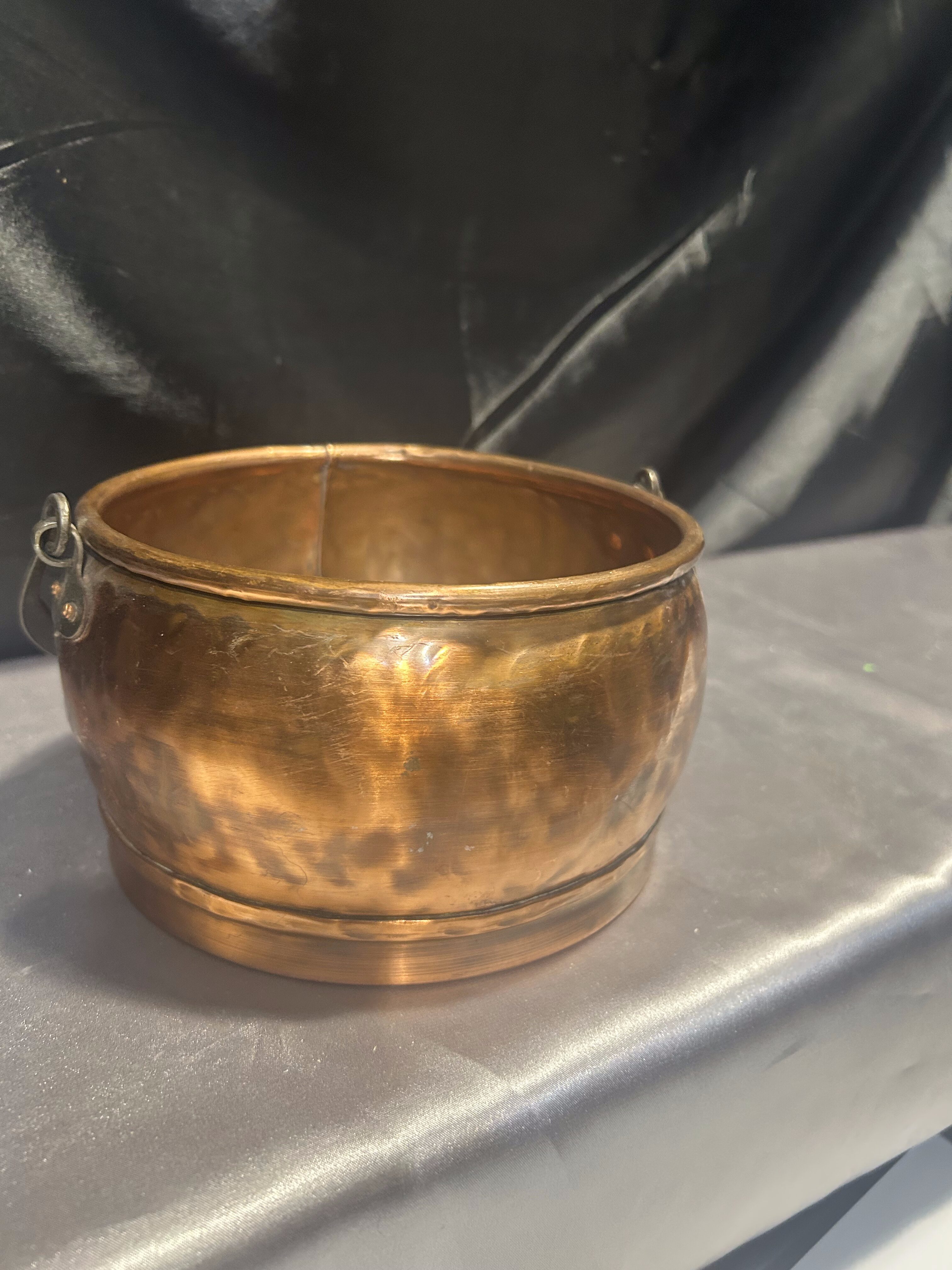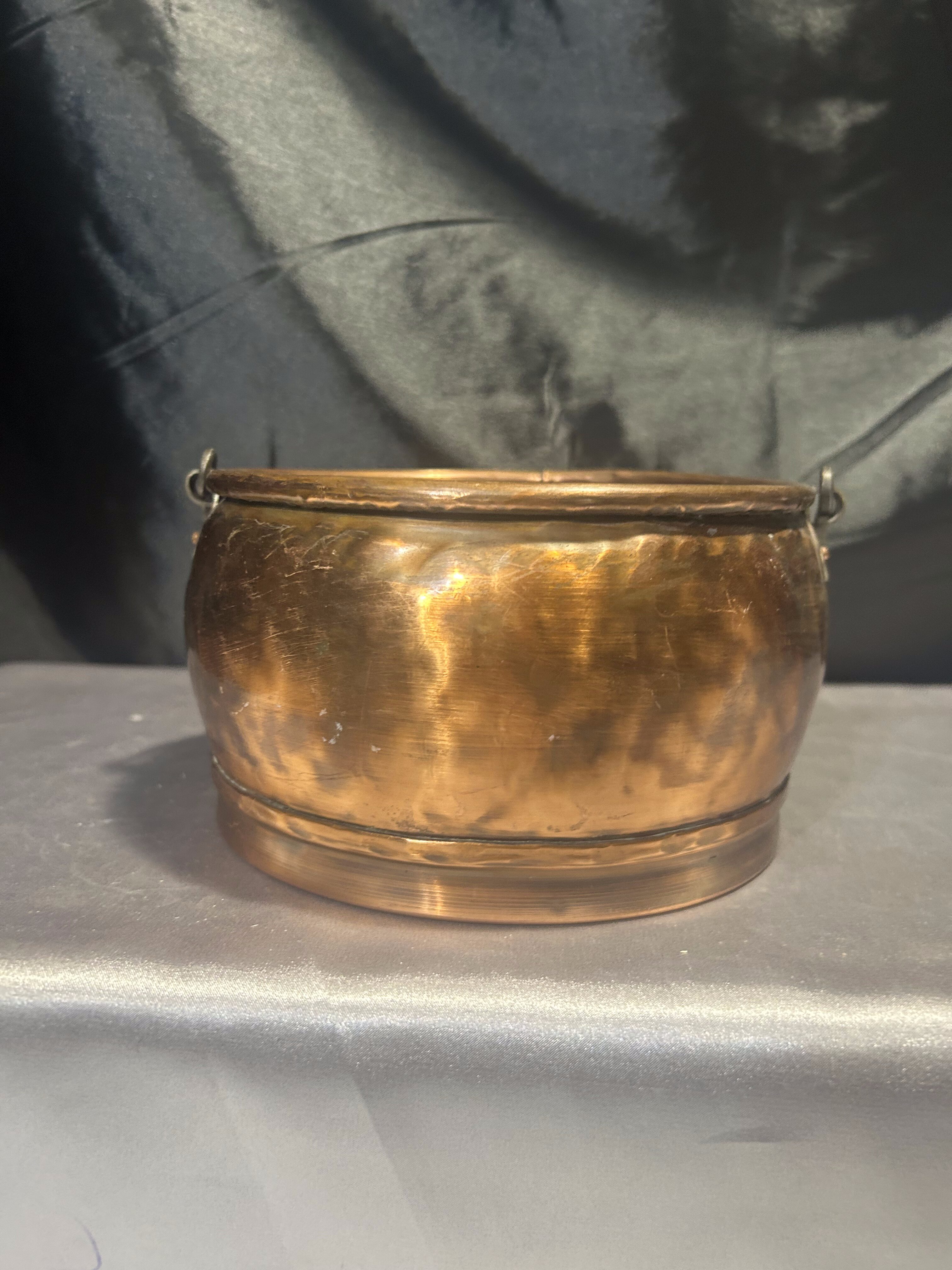 Typ: miedziane wiaderko / kwietnik z kutą rączką