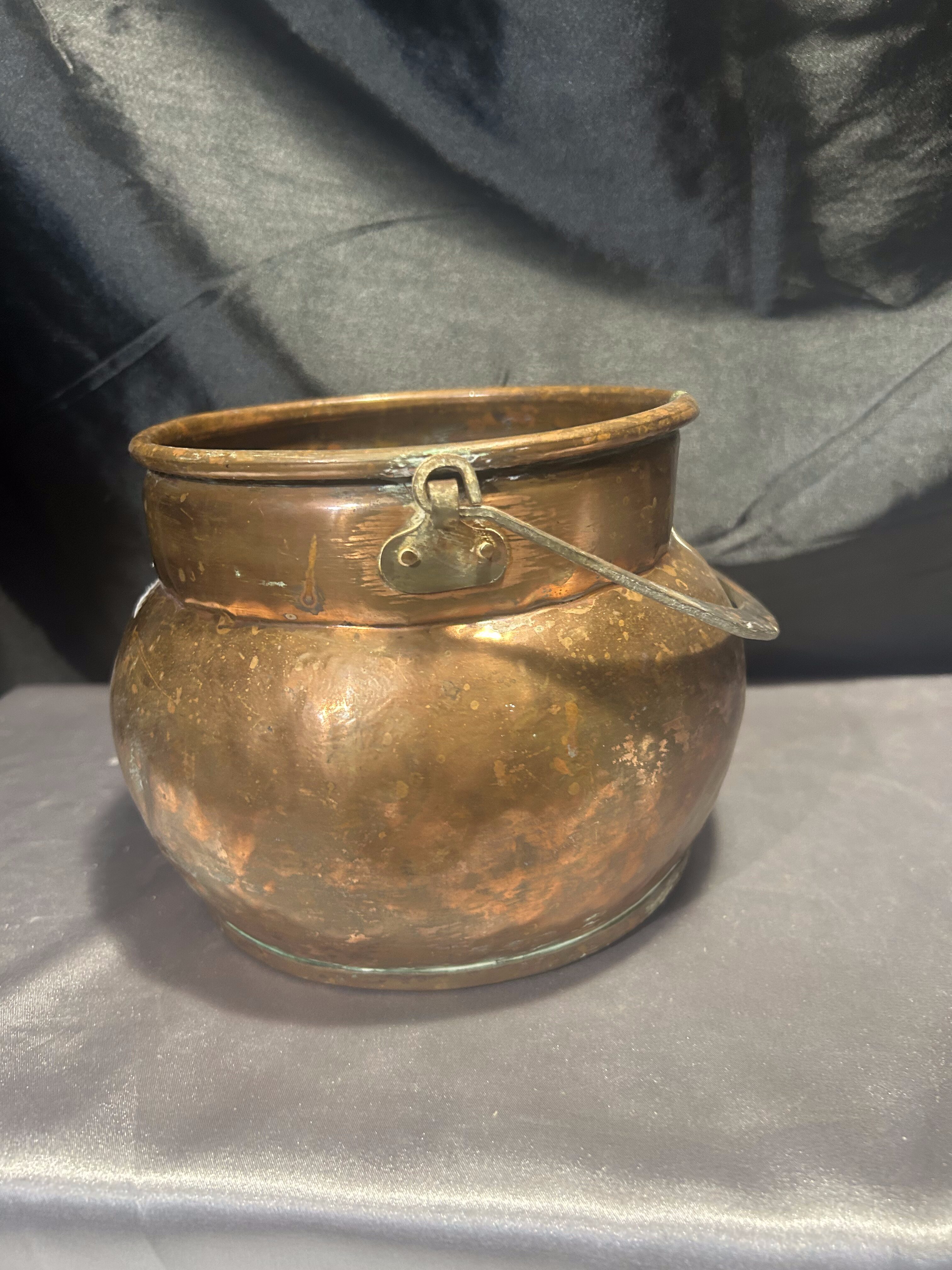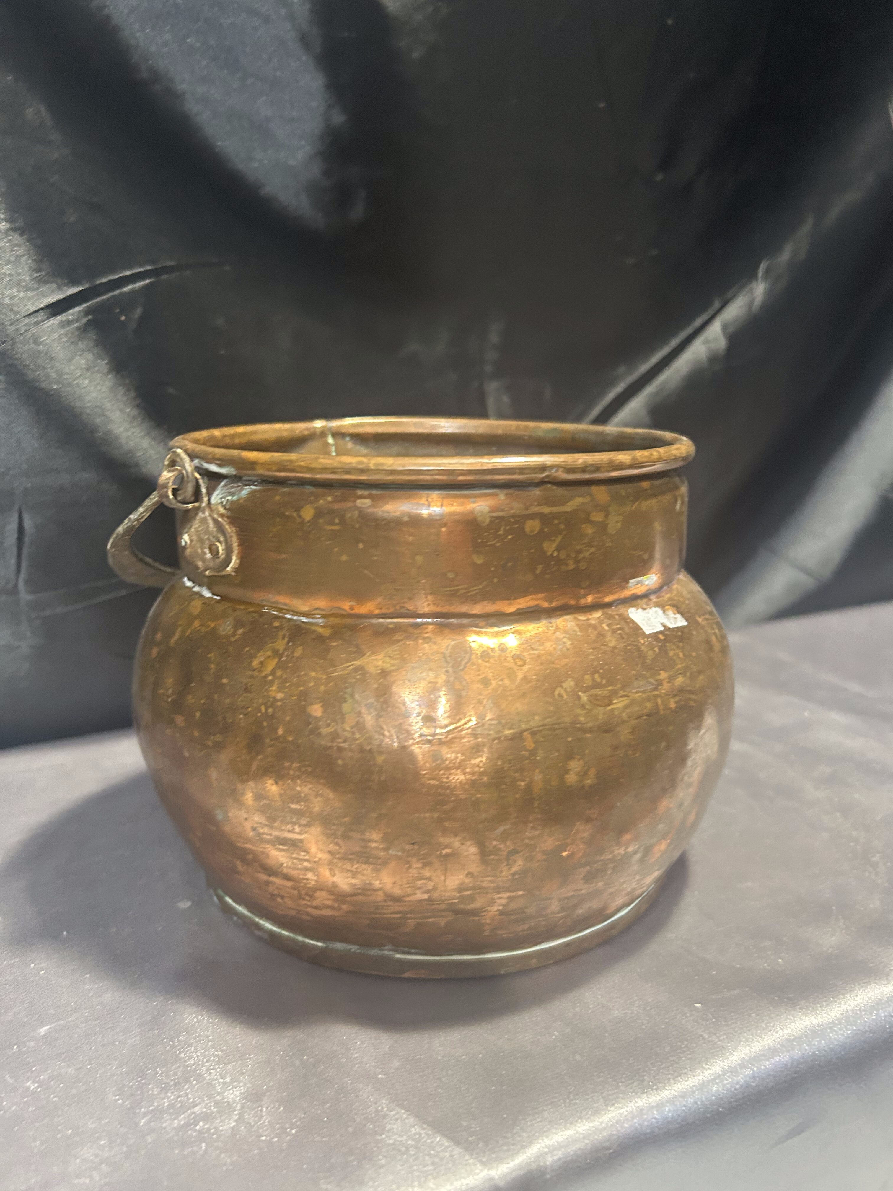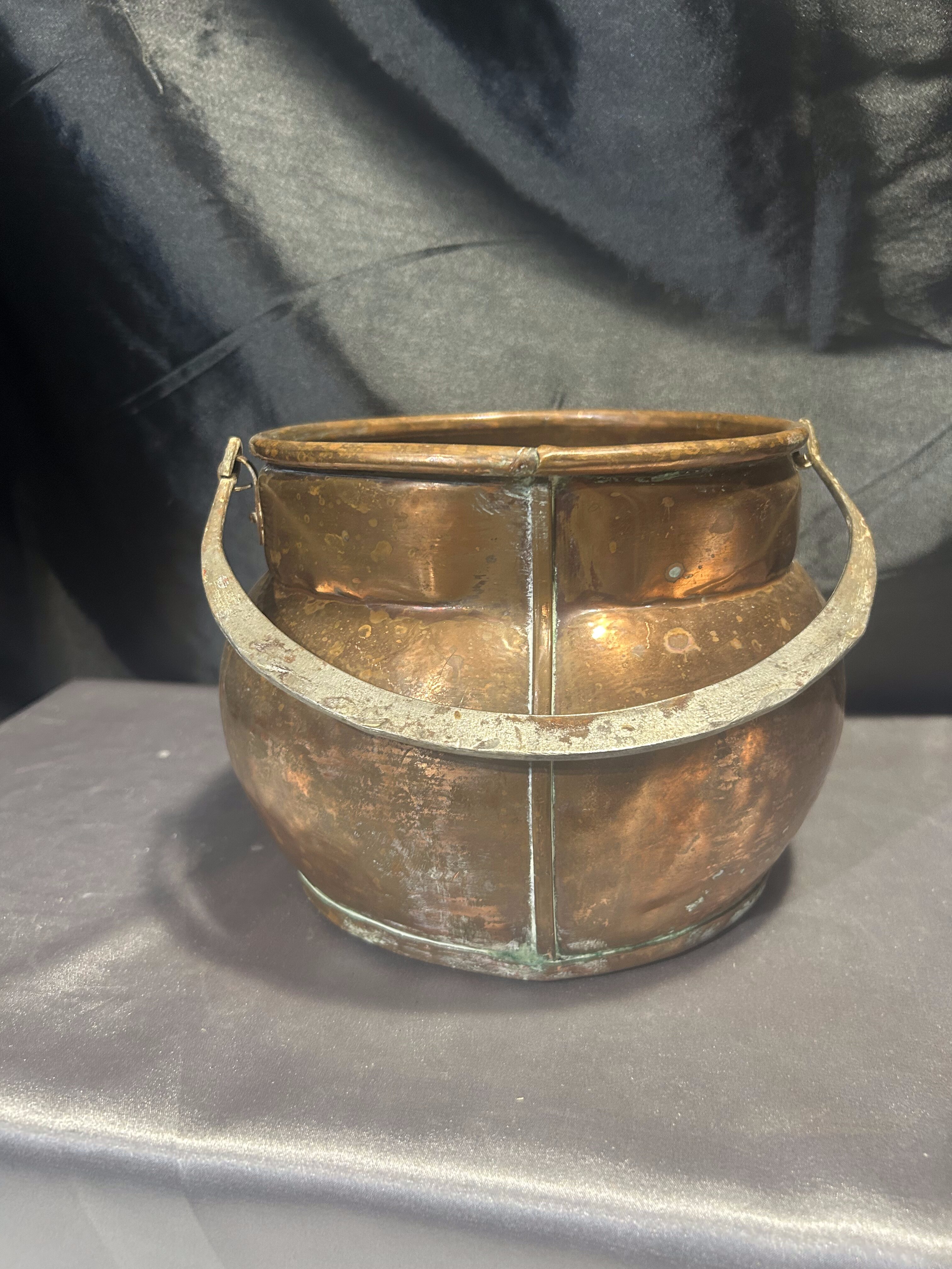 Typ: miedziane wiaderko / kwietnik z kutą rączką