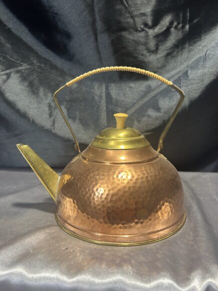 Czajnik miedziany – Mosiężne detale – Pleciona rączka – Styl vintage