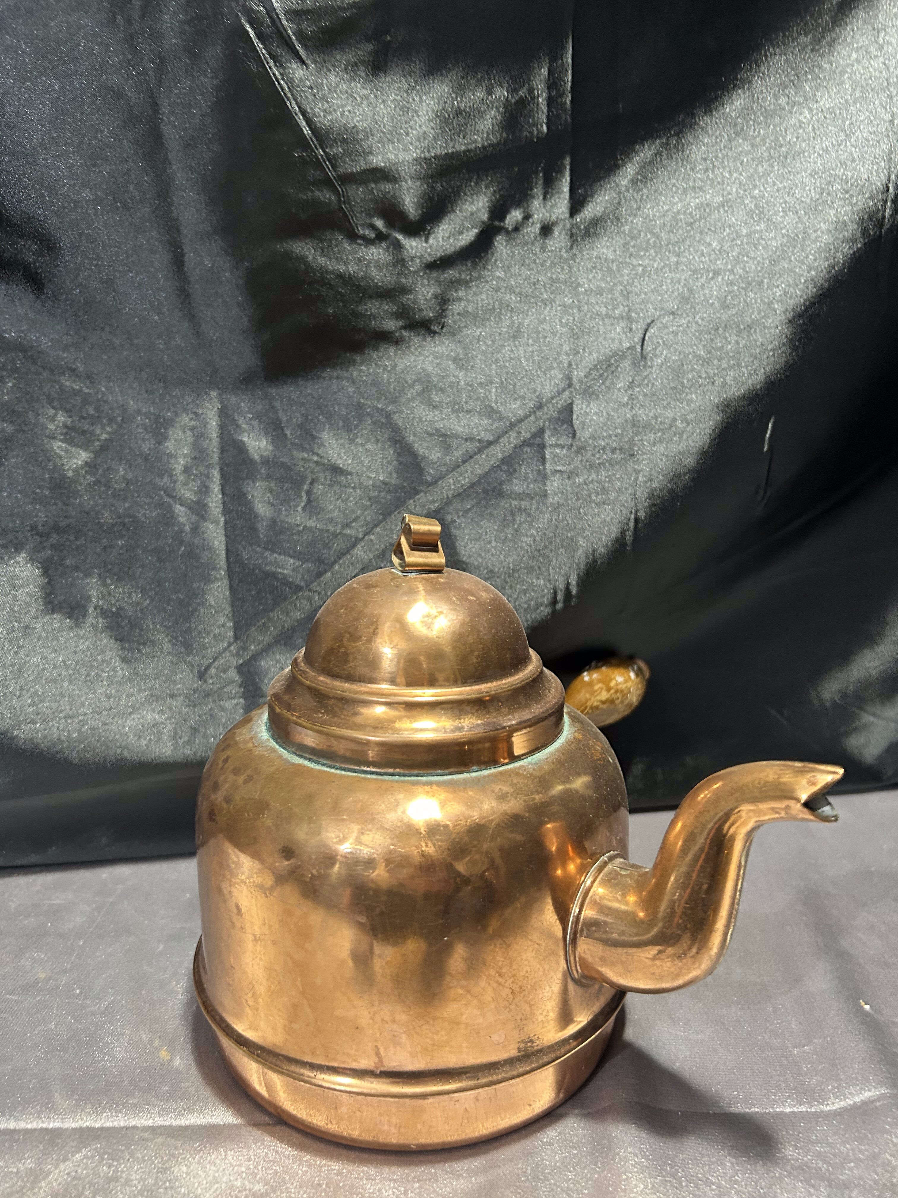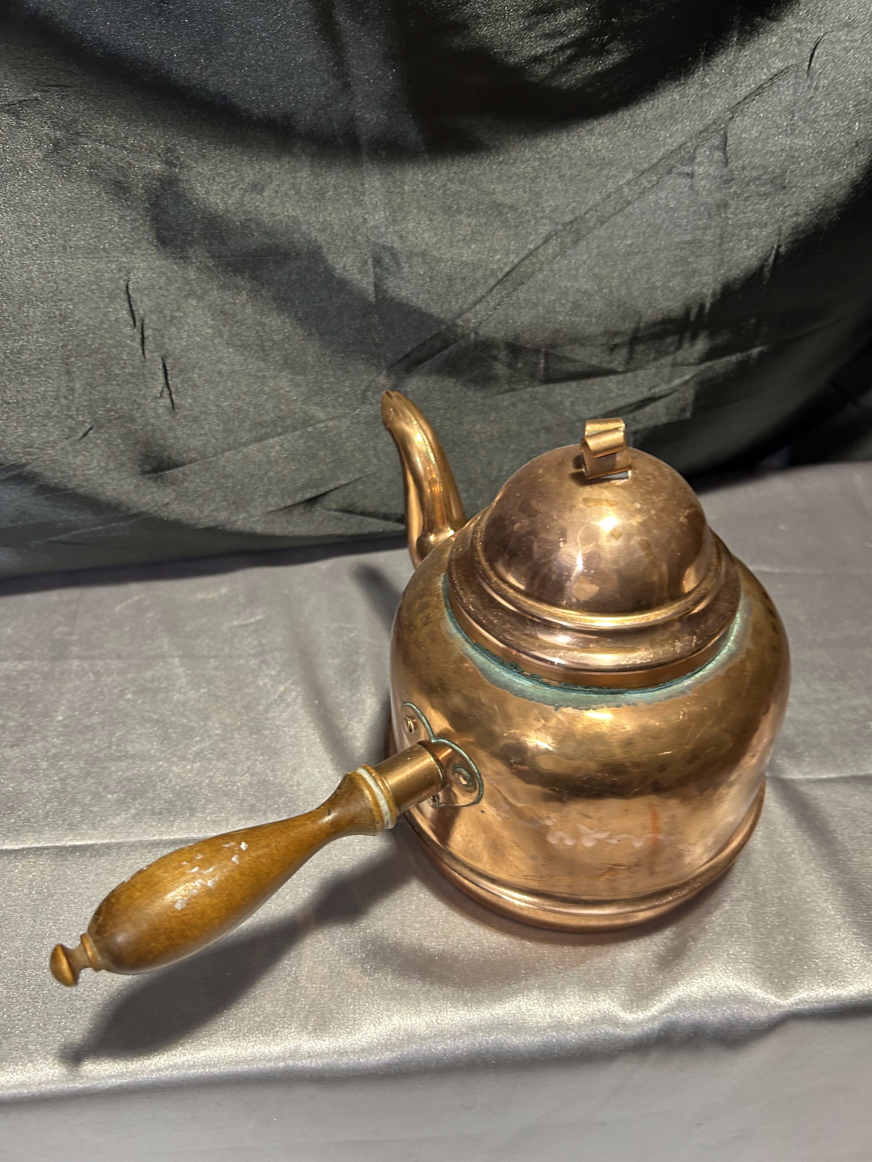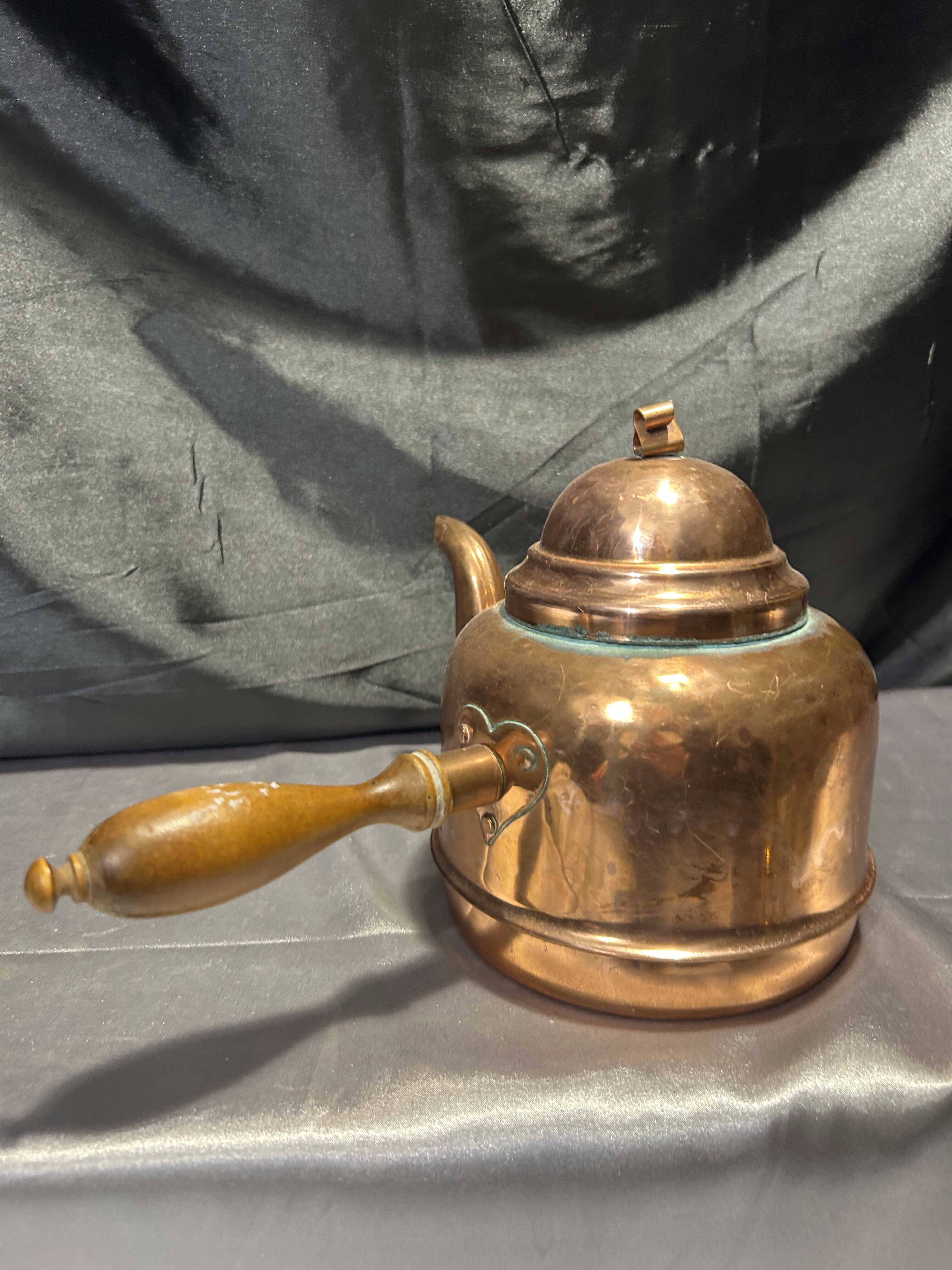 Solidny czajnik wykonany z miedzi, wyposażony w boczną rączkę z drewna oraz charakterystyczny rant u podstawy – idealny do gotowania na tradycyjnych piecach z fajerkami. Klasyczna forma i szlachetne materiały sprawiają, że jest to nie tylko przedmiot użytkowy, ale i dekoracyjny – w sam raz do wnętrz w stylu rustykalnym, retro czy skandynawskim.